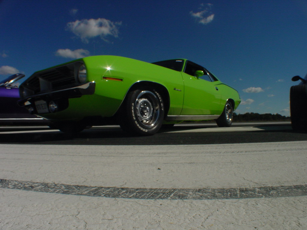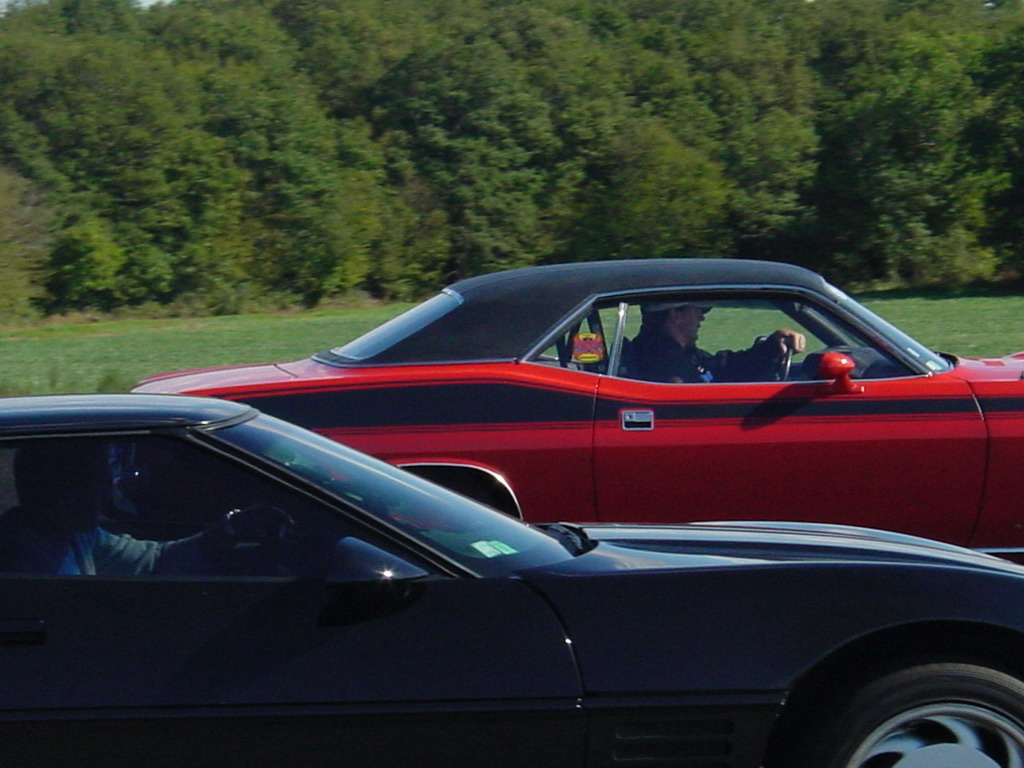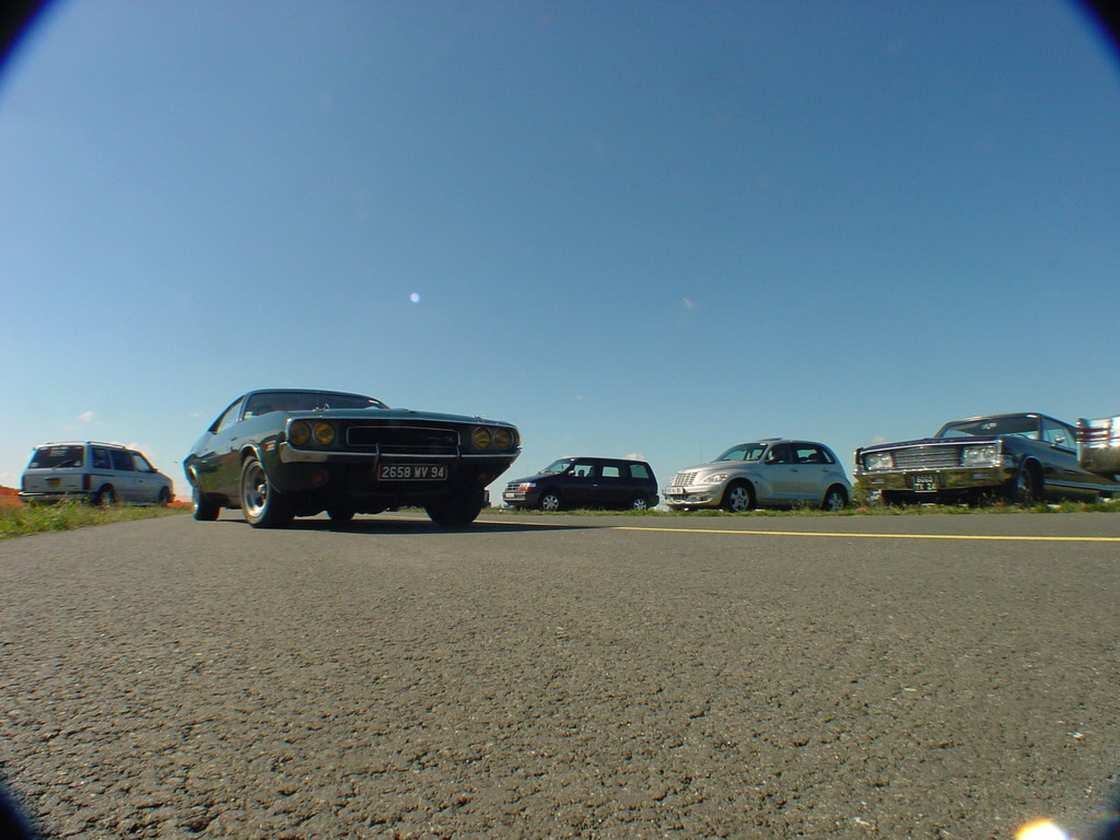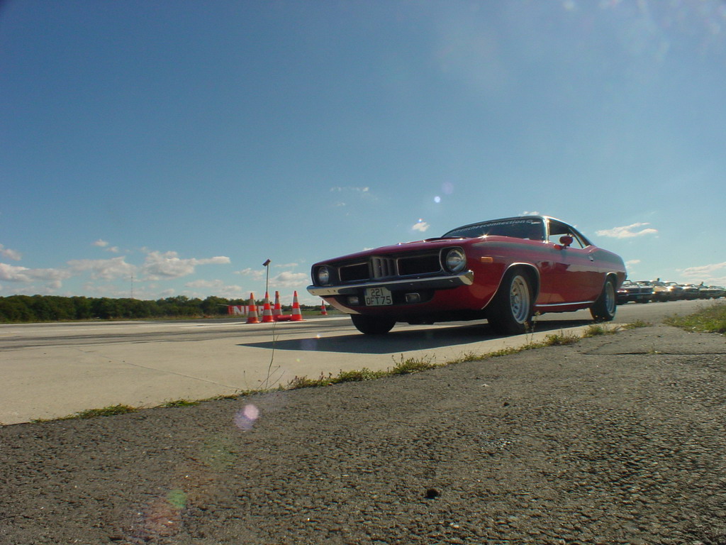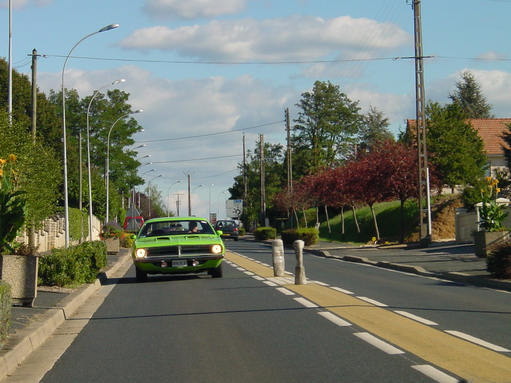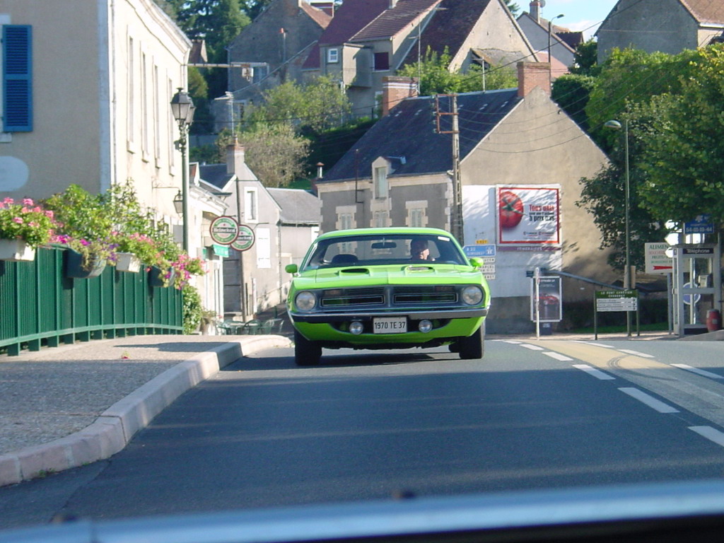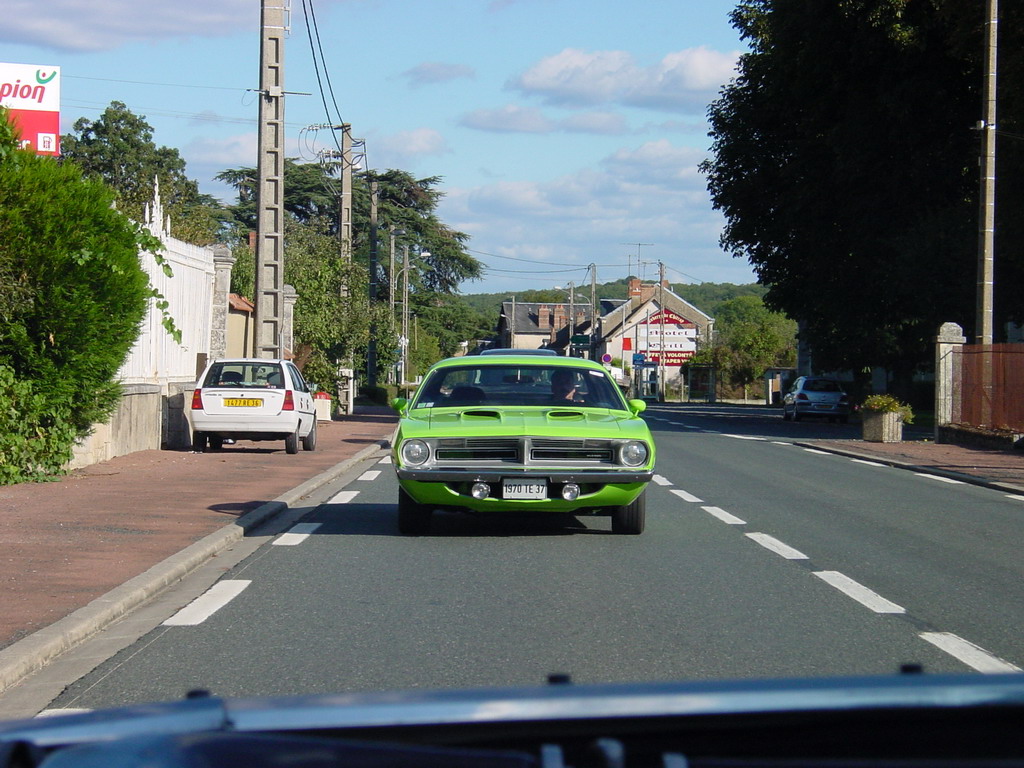 un piti peu dessus, c'est pas que la Cuda roule déjà ....) surveillée par la