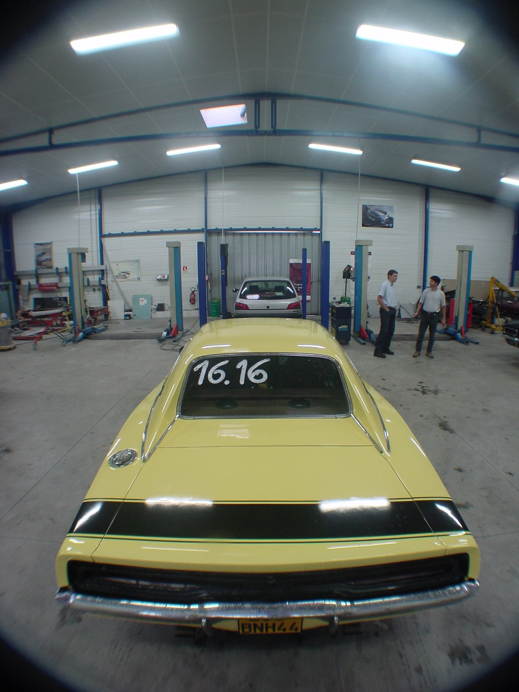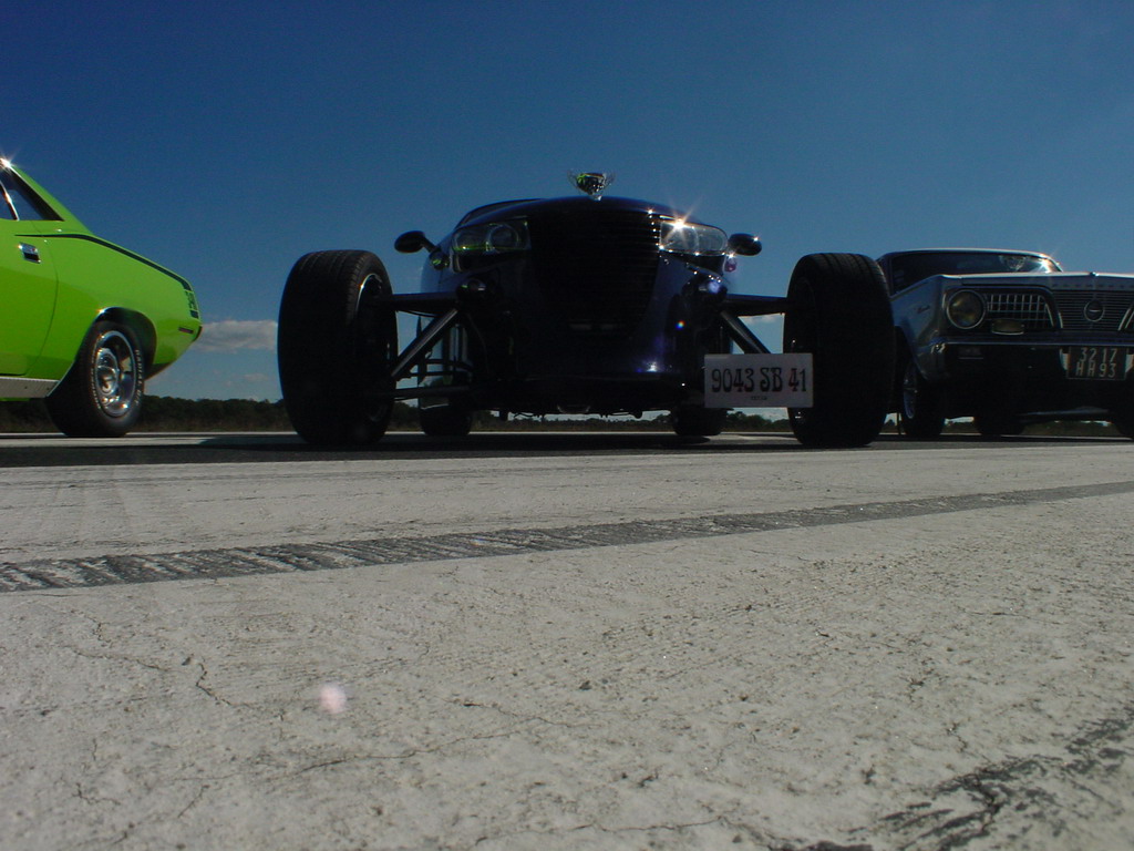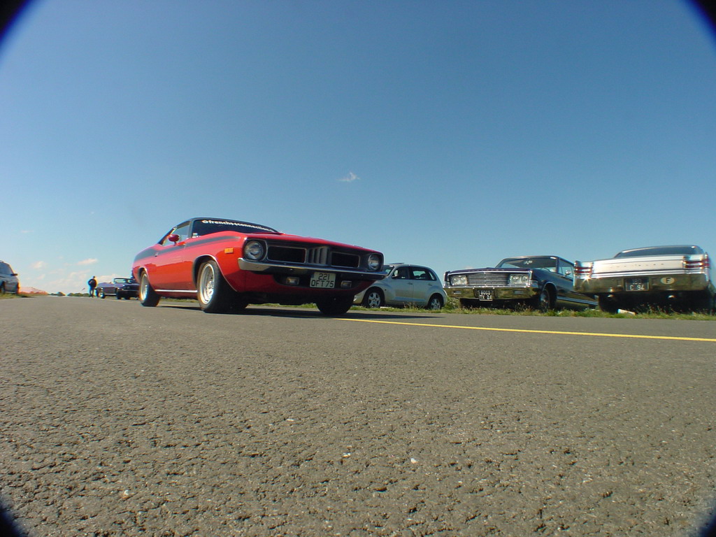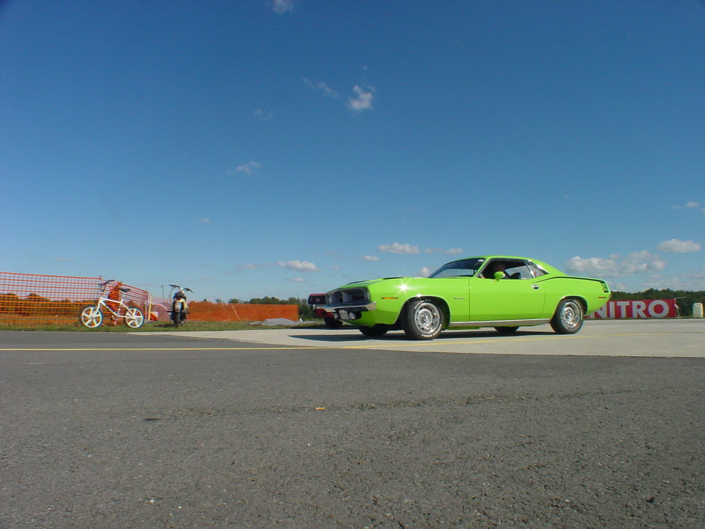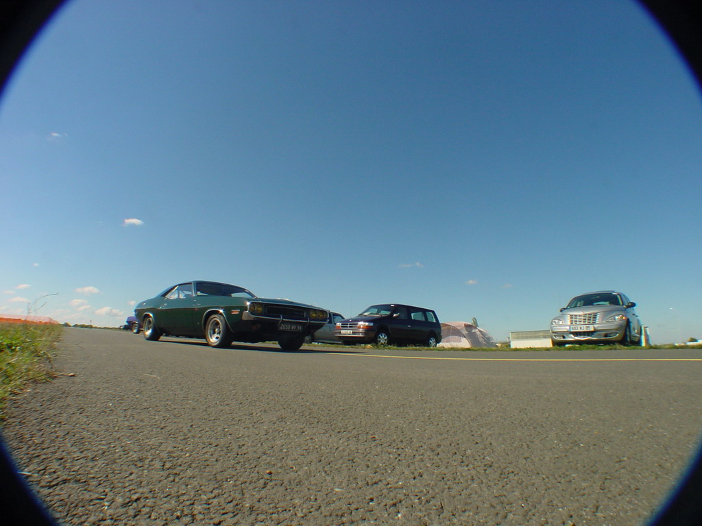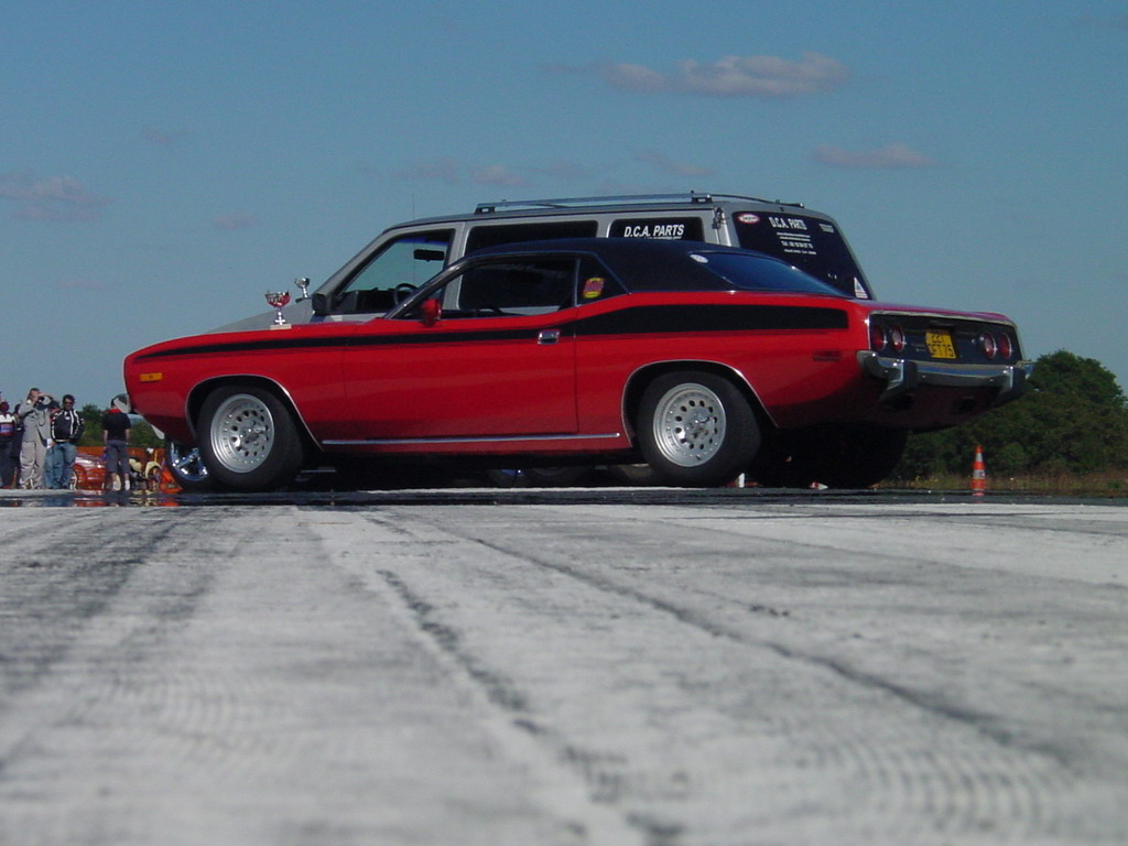 un piti peu dessus, c'est pas que la Cuda roule déjà ....) surveillée par la