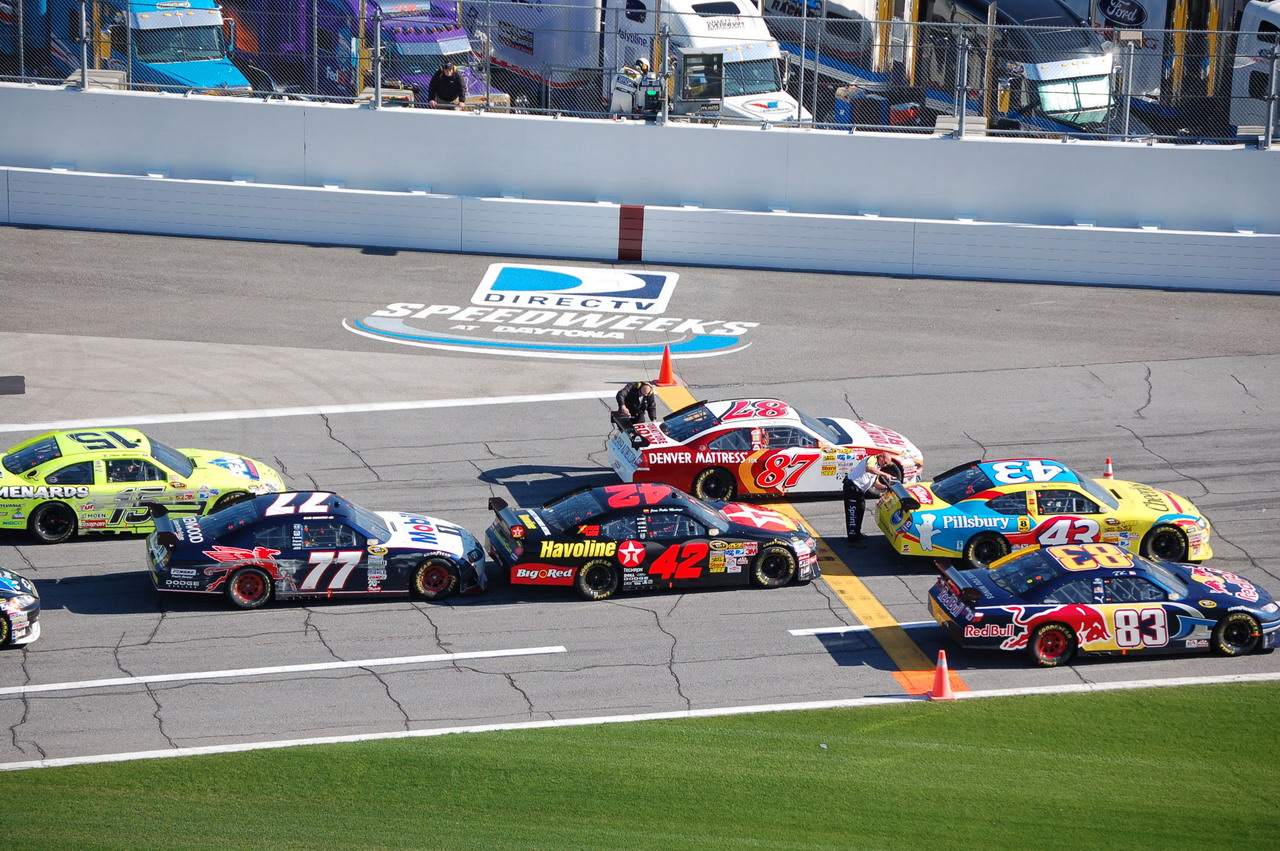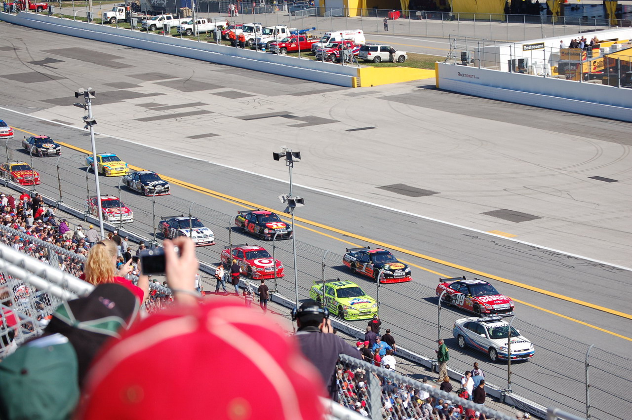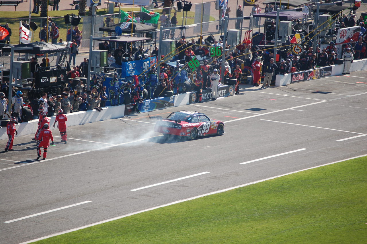 après la finish lane, et au milieu le vainqueur #11 Denny Hamlin |