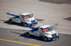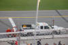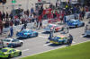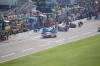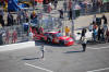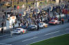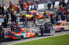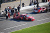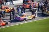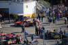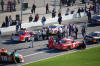 mise en place à la "poussette" de toutes les voitures sur la pit-lane |