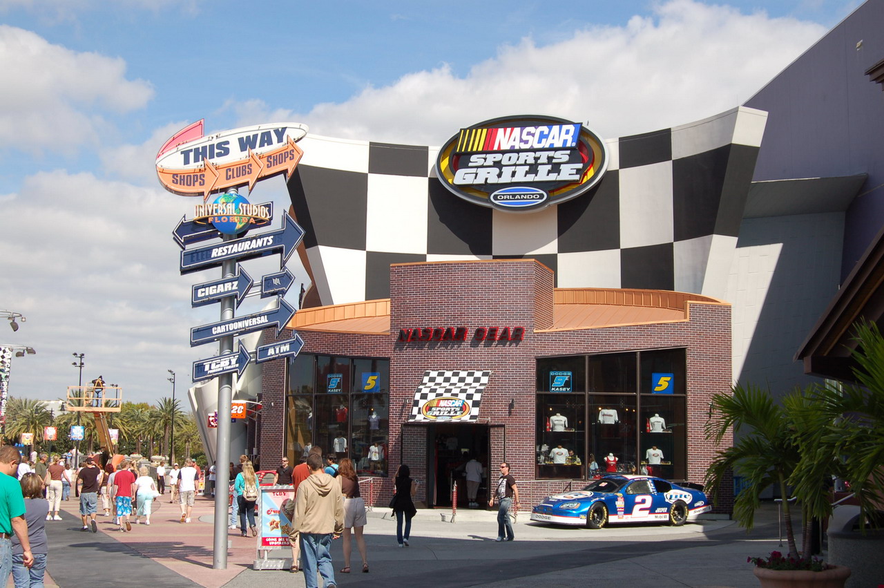 la course de Truck étant le soir, le départ pour le speedway est prévu en milieu d'après-midi, donc quartier libre le matin ! nous en profitons pour aller faire un tour à Orlando, en particulier dans le quartier Universal, et en particulier CityWalk, et surtout en particulier le Nascar Sports Grille !!!!