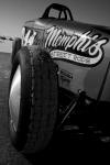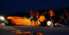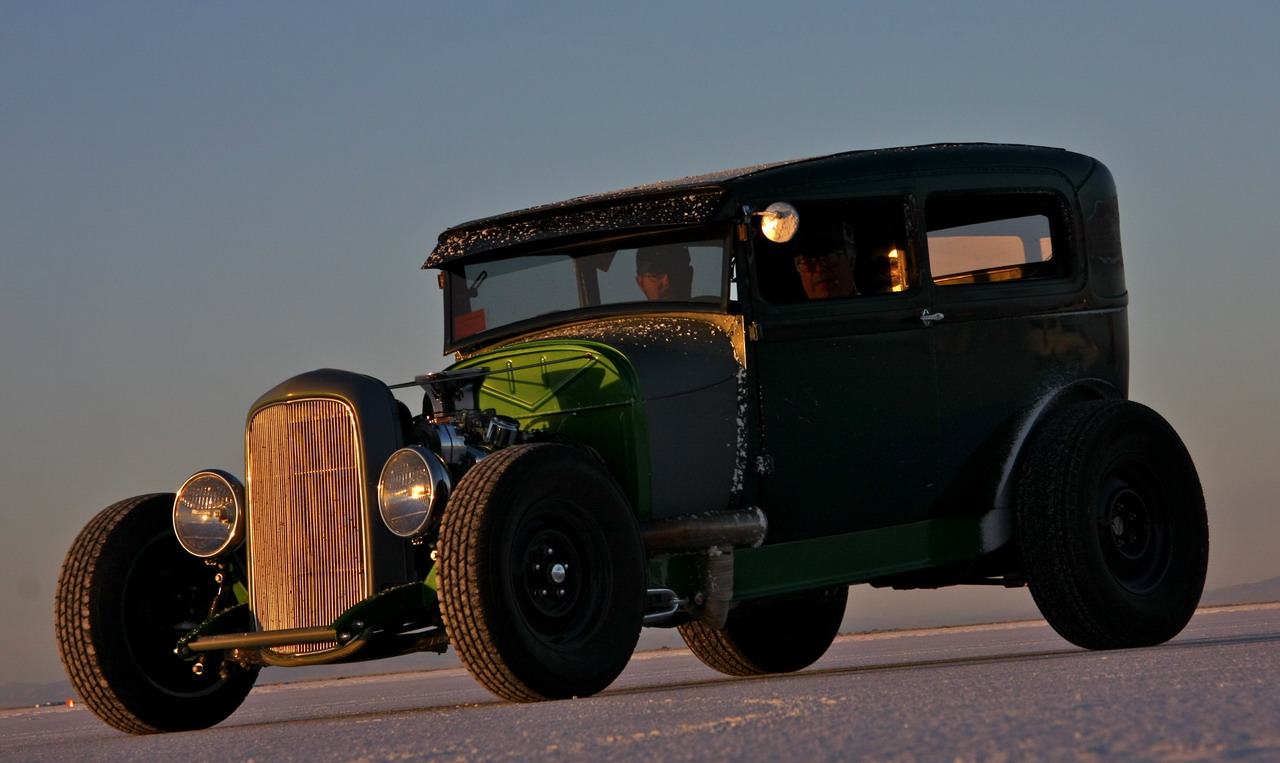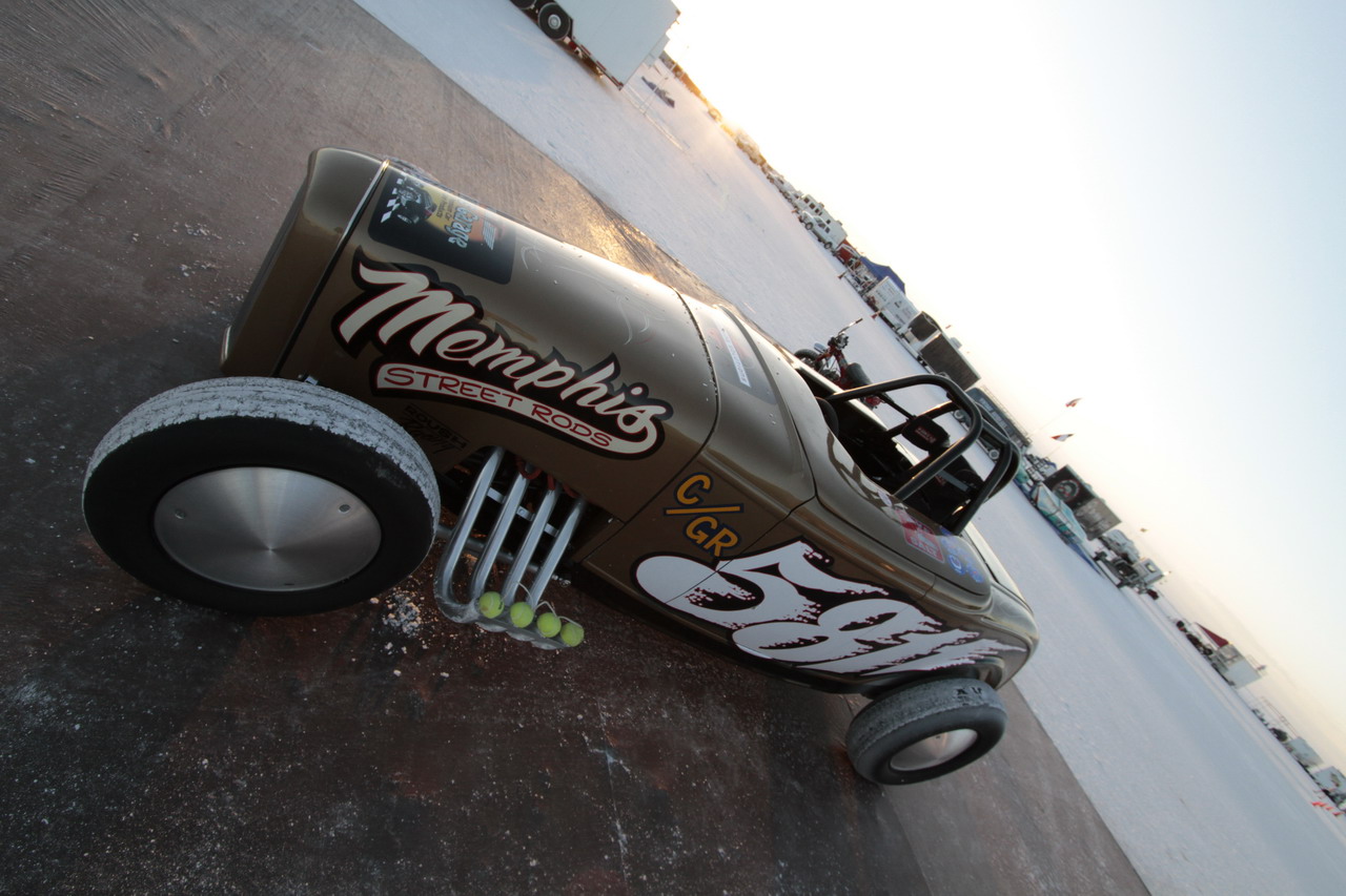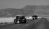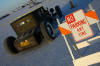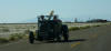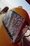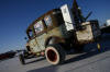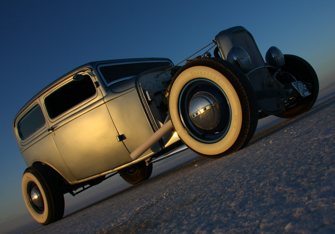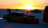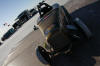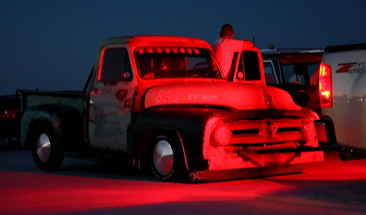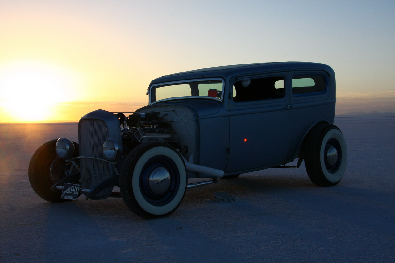 et nous n'allons pas être déçu coté sensations, émotions, spectacle et beauté.... nous quittons donc Wendover à 6h00 du mat, il fait une température idéale pour rouler en Stang décapotée (déjà 86°F soit 30°C!!), il fait nuit noire, nous nous dirigeons vers l'est et découvrons enfin le fameux panneau "Bonneville Speedway Exit 4", nous prenons la bretelle et nous engageons sur une route goudronnée entourée d'une immensité plate, il fait tellement noir que nous ne distinguons absolument rien autour, heureusement nous ne sommes pas seuls et nous guidons sur les feux rouges devant nous .... puis, à un moment un petit dévers en pente devant nous, que nous descendons, puis plus rien, plus de goudron, plus de traces, rien, le vide total, l'immensité totale.... Franck Sinatra à la radio, le moment est grandiose.... nous continuons quand même, à allure réduite, sans aucun repère, sur une surface totalement étrangère mais où la Stang se comporte plutôt bien, puis nous commençons à nous faire dépasser par des voitures sur autant de pistes parallèles qu'il peut y avoir de feux rouges !! Nous les suivons donc, et sans s'en rendre compte vu qu'il fait toujours nuit noire et au bout de quelques miles, nous pénétrons en Stang à l'intérieur de l'Impound, c'est genre comme si vous rentriez dans un paddock de F1 et que vous circuliez en voiture à travers les semis transportant les voitures, les motorhomes sans que vous en vous en rendiez compte, de la folie pure, la magie de Bonneville !! c'est après avoir fait le tour et stationné la Stang que nous nous rendons compte que nous étions dans le sanctuaire de l'Impound, nous prenons alors nos armes photographiques, et là, le spectacle son et lumière commence ....