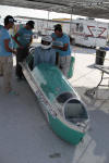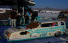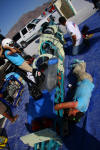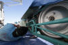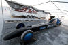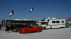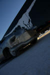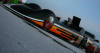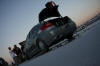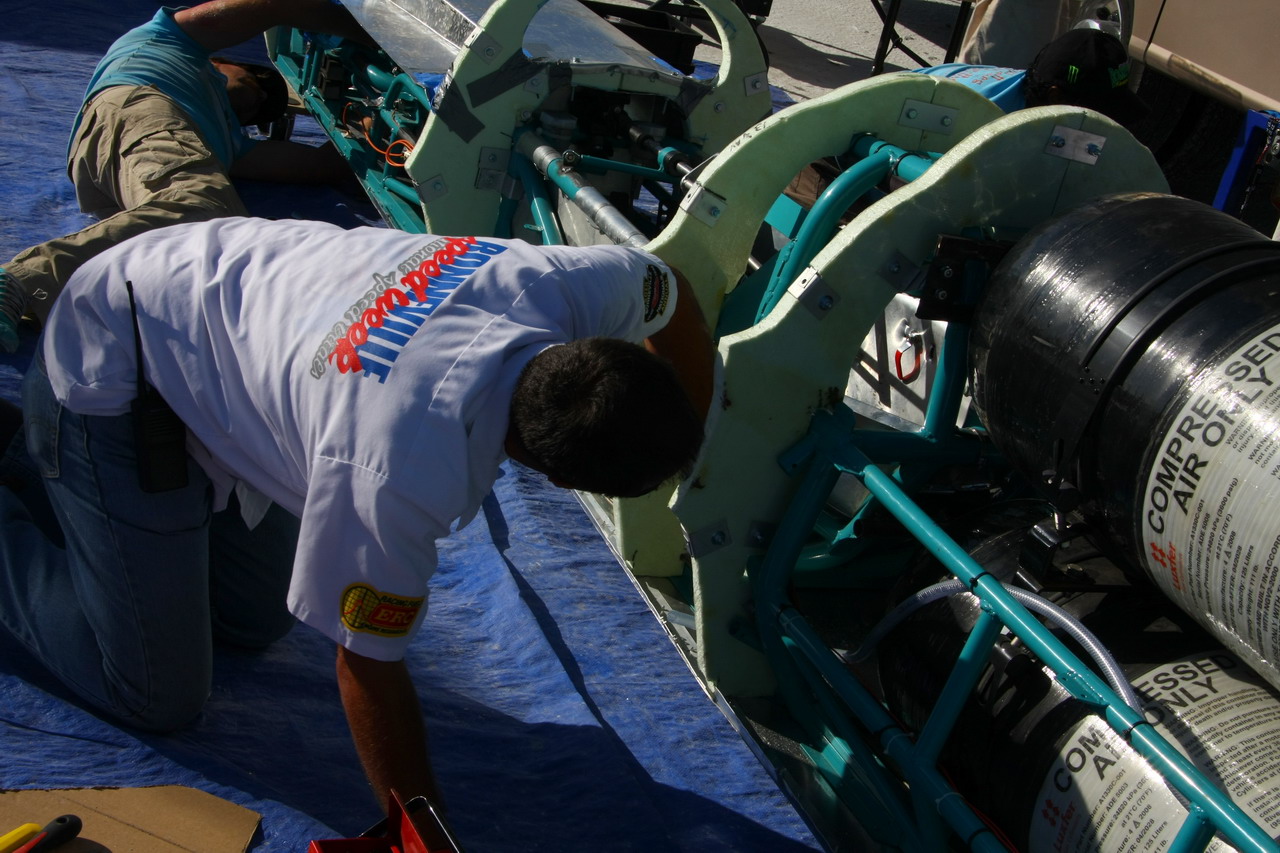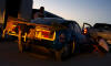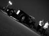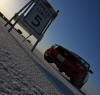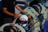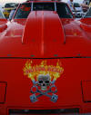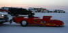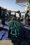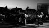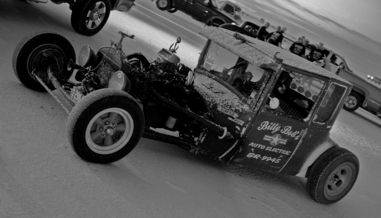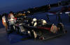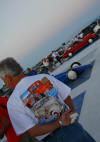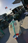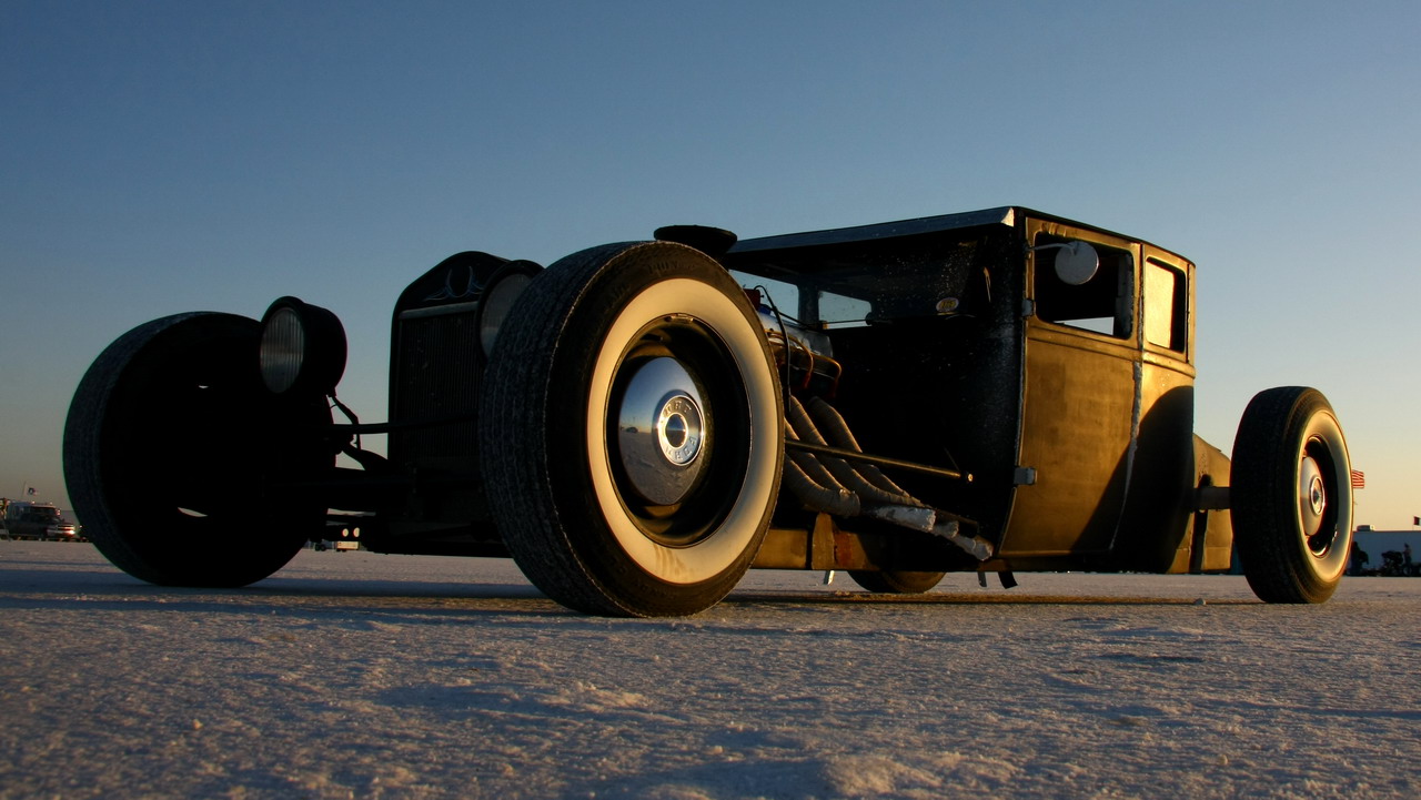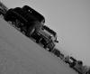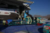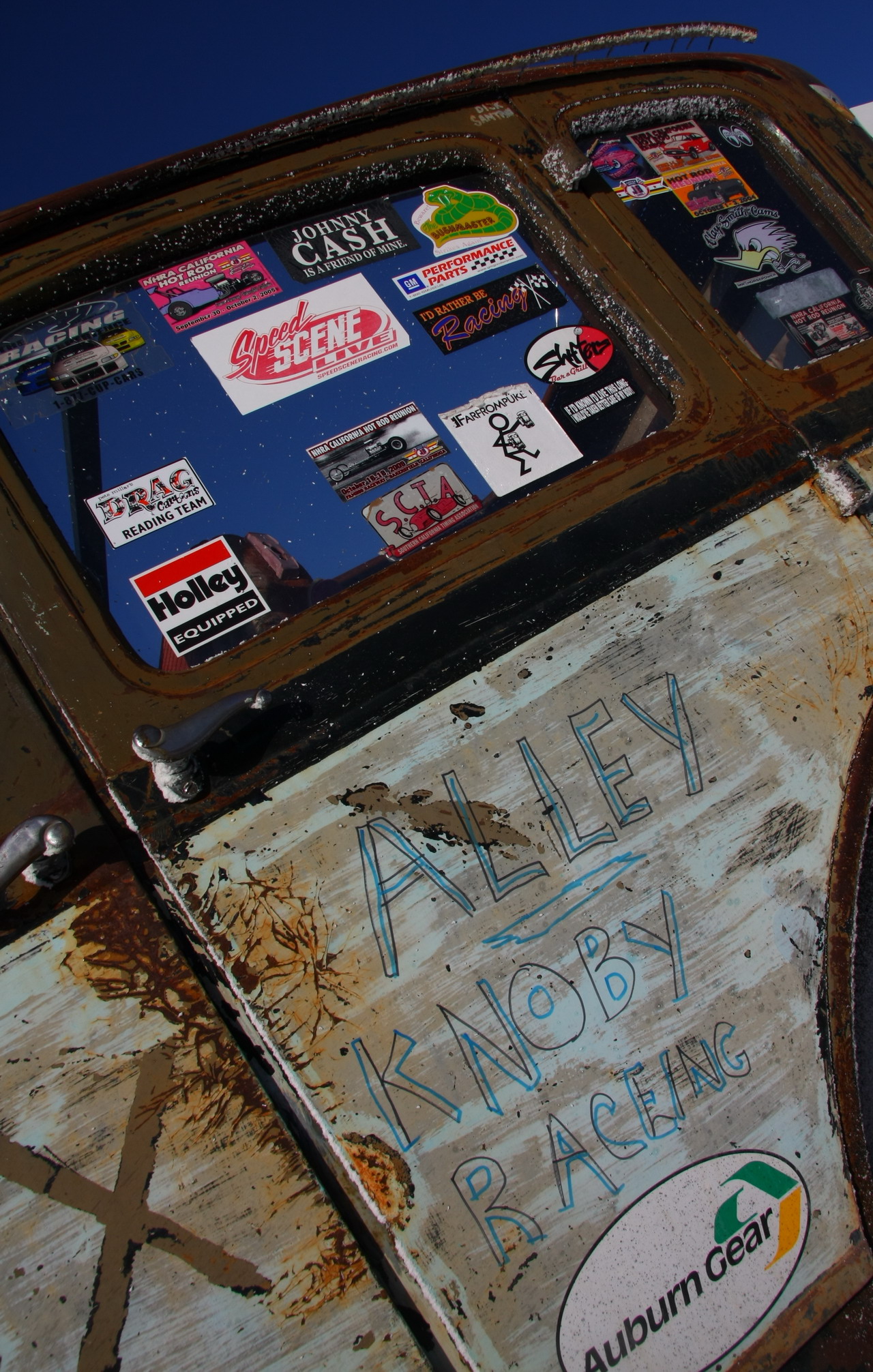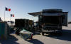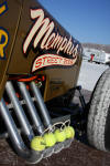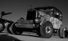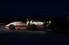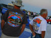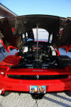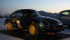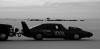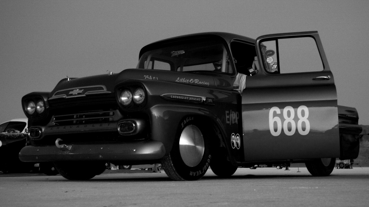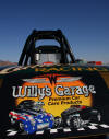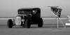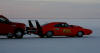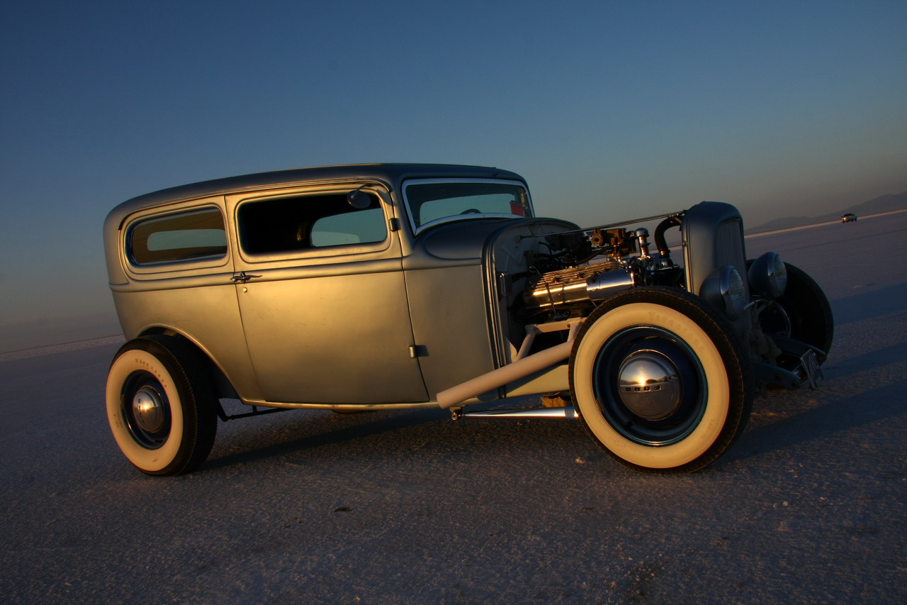 et nous n'allons pas être déçu coté sensations, émotions, spectacle et beauté.... nous quittons donc Wendover à 6h00 du mat, il fait une température idéale pour rouler en Stang décapotée (déjà 86°F soit 30°C!!), il fait nuit noire, nous nous dirigeons vers l'est et découvrons enfin le fameux panneau "Bonneville Speedway Exit 4", nous prenons la bretelle et nous engageons sur une route goudronnée entourée d'une immensité plate, il fait tellement noir que nous ne distinguons absolument rien autour, heureusement nous ne sommes pas seuls et nous guidons sur les feux rouges devant nous .... puis, à un moment un petit dévers en pente devant nous, que nous descendons, puis plus rien, plus de goudron, plus de traces, rien, le vide total, l'immensité totale.... Franck Sinatra à la radio, le moment est grandiose.... nous continuons quand même, à allure réduite, sans aucun repère, sur une surface totalement étrangère mais où la Stang se comporte plutôt bien, puis nous commençons à nous faire dépasser par des voitures sur autant de pistes parallèles qu'il peut y avoir de feux rouges !! Nous les suivons donc, et sans s'en rendre compte vu qu'il fait toujours nuit noire et au bout de quelques miles, nous pénétrons en Stang à l'intérieur de l'Impound, c'est genre comme si vous rentriez dans un paddock de F1 et que vous circuliez en voiture à travers les semis transportant les voitures, les motorhomes sans que vous en vous en rendiez compte, de la folie pure, la magie de Bonneville !! c'est après avoir fait le tour et stationné la Stang que nous nous rendons compte que nous étions dans le sanctuaire de l'Impound, nous prenons alors nos armes photographiques, et là, le spectacle son et lumière commence ....