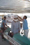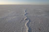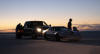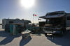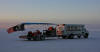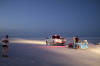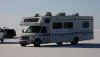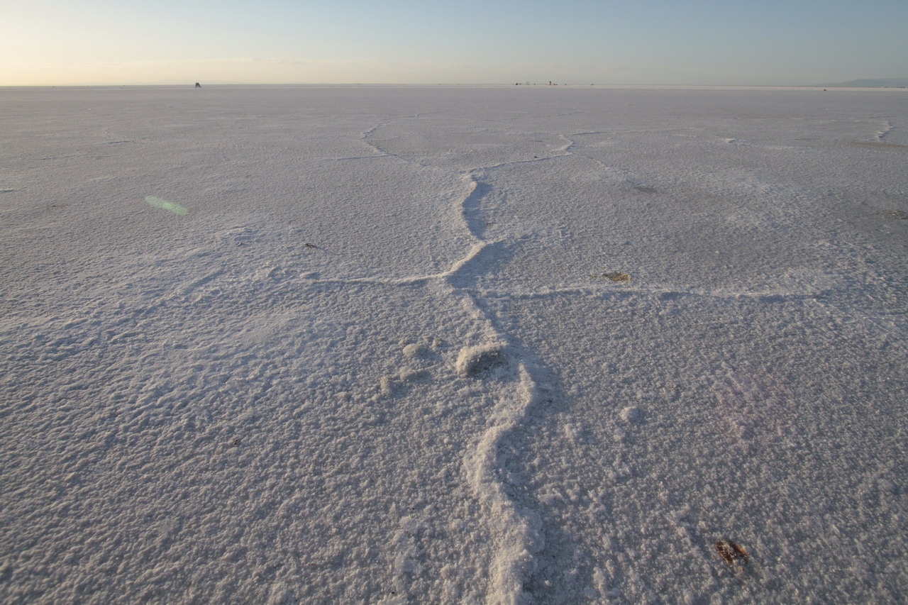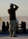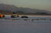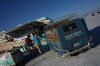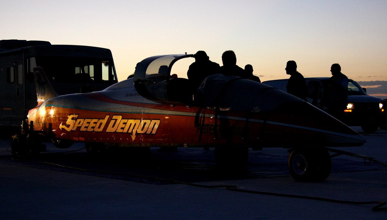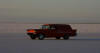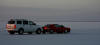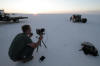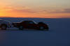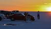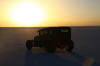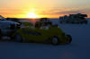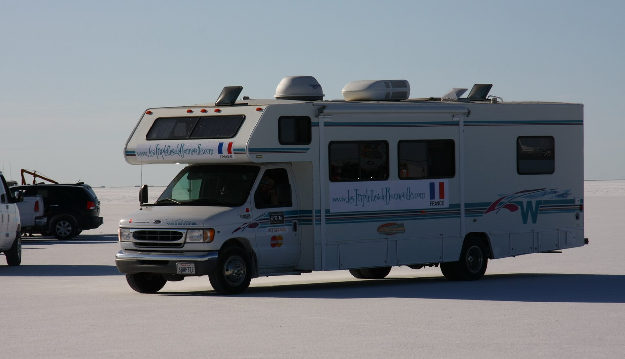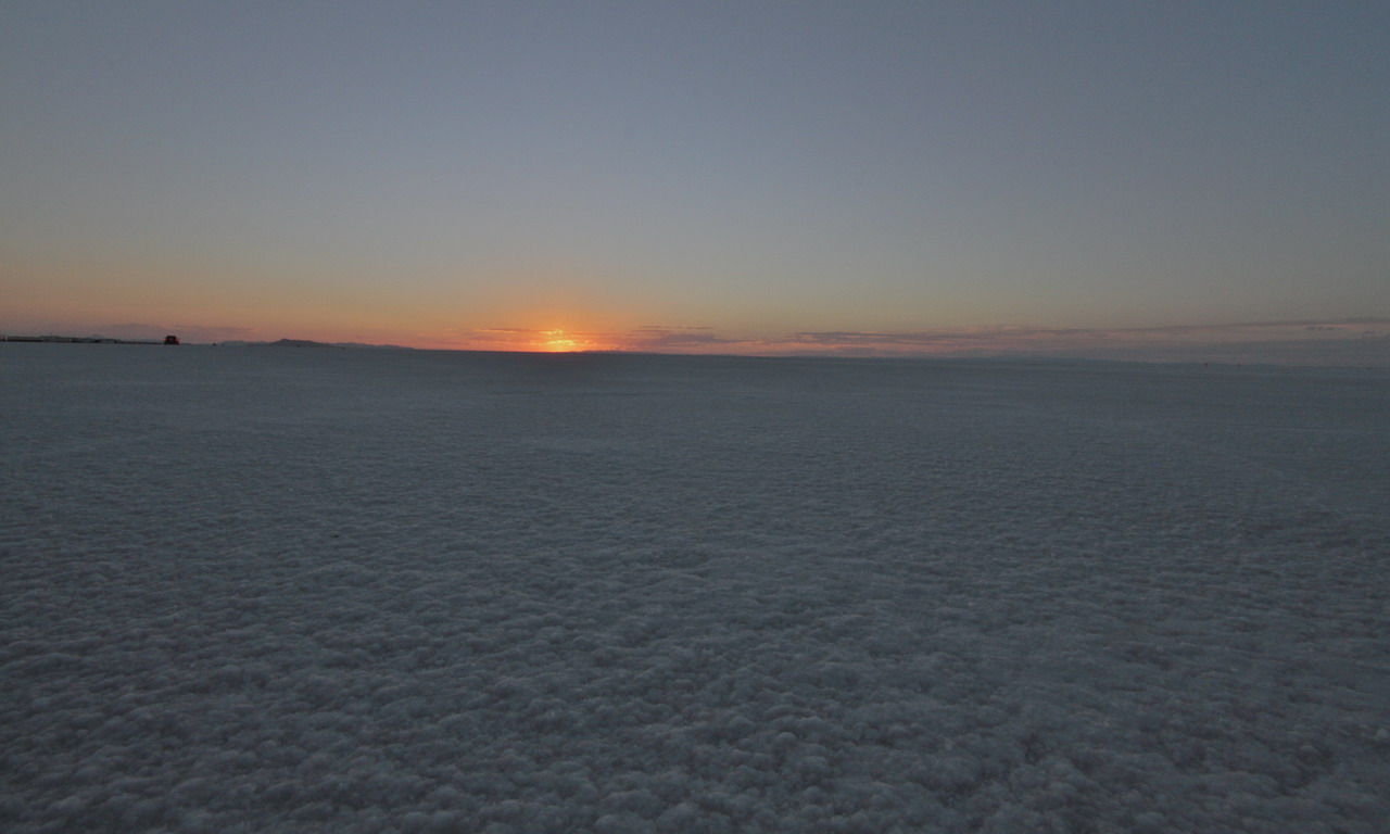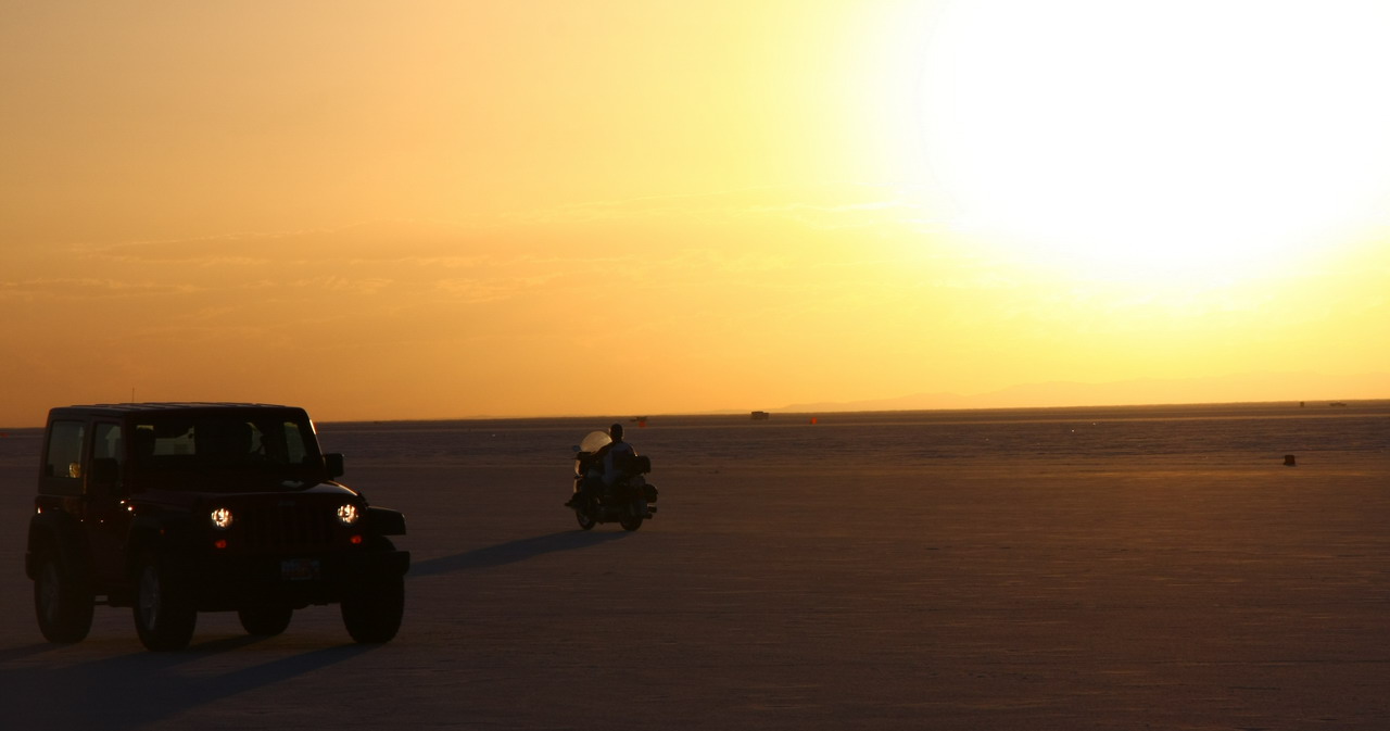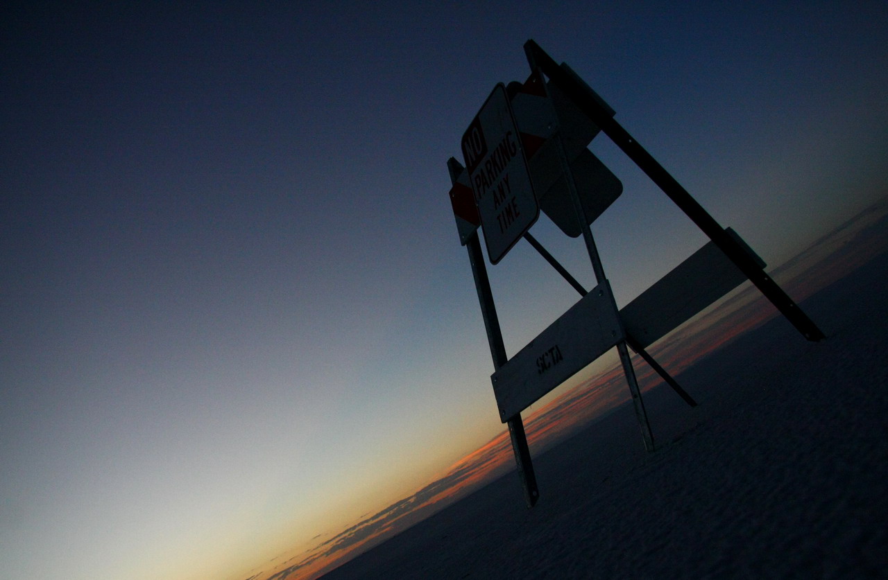 Conseillé par des figures locales, nous avions décidé de partir de nuit, d'une part pour voir l'éveil de l'impound (lieu où sont parkés les engins pour confirmer leur record par un run au petit matin) et d'autre part pour assister au lever de soleil sur l'immense étendue du lac salé, qui est, parait-il, une vraie splendeur en soi ....