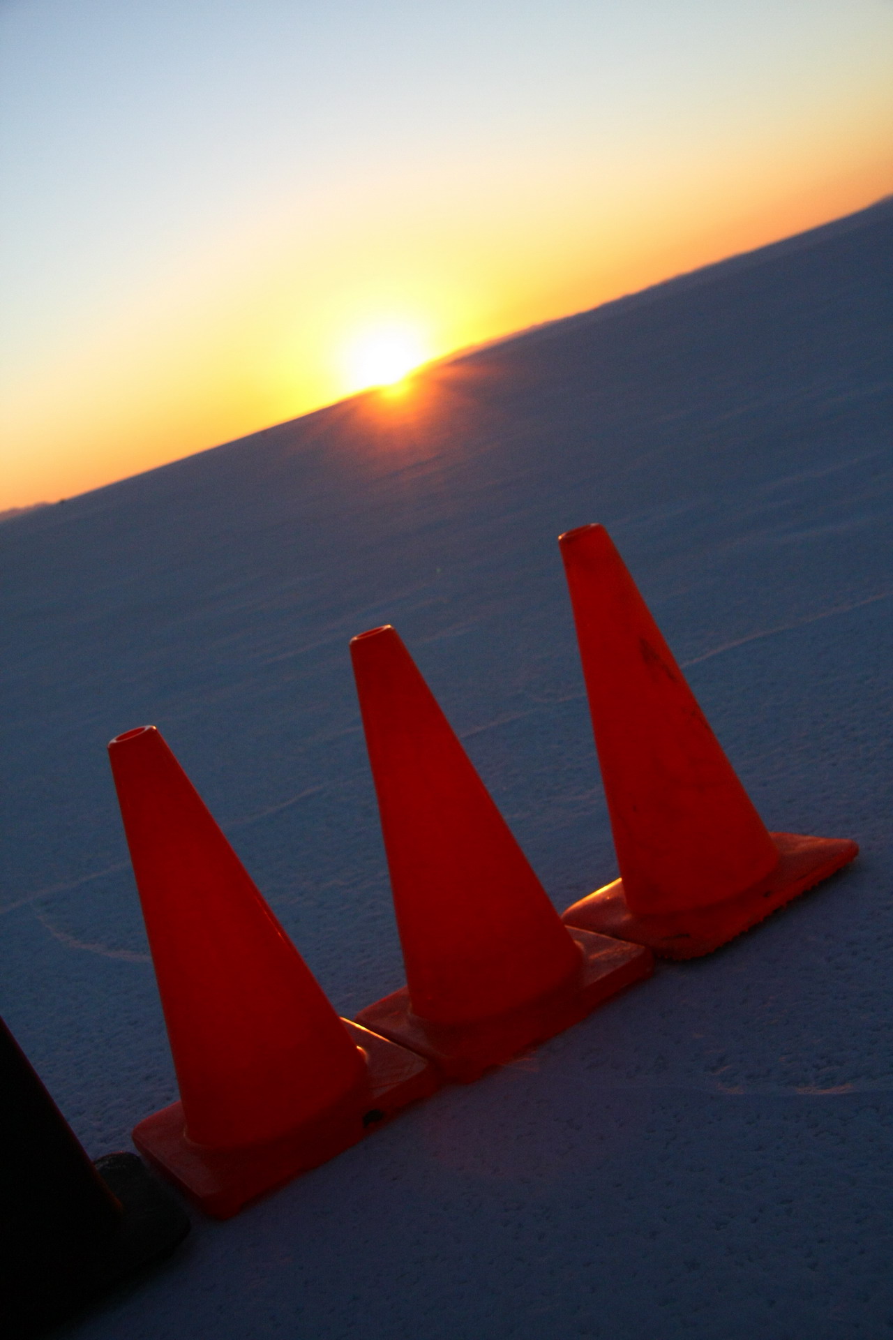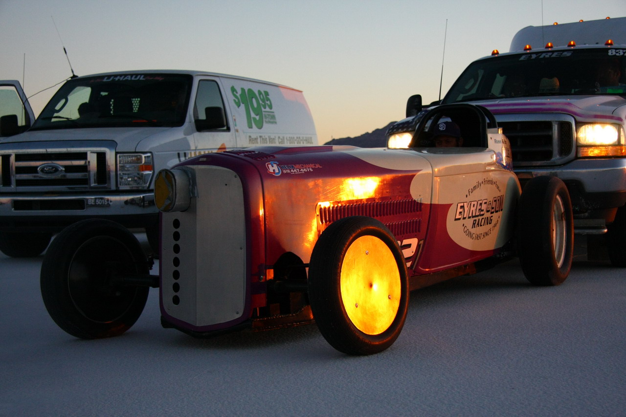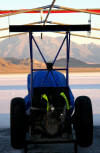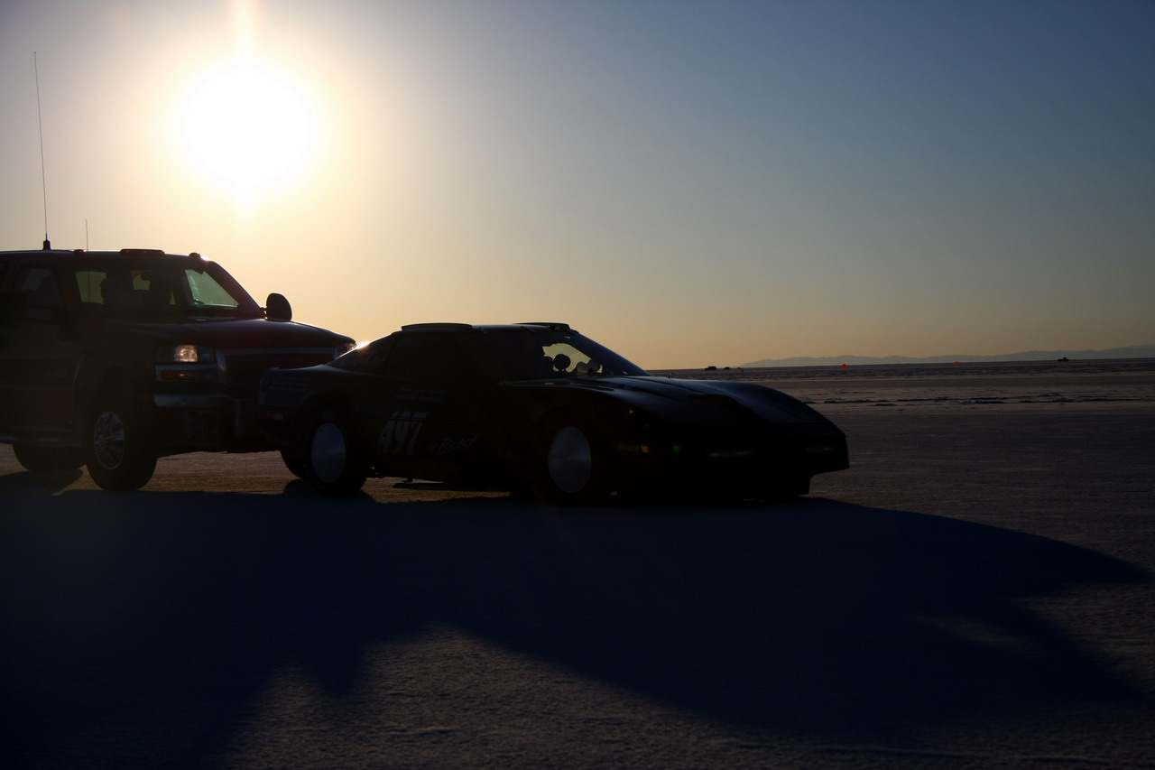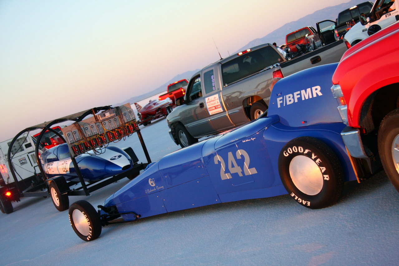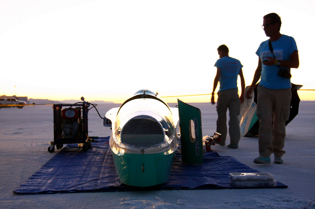 C'est le dernier jour de la Speedweek, qui ferme ses portes qui plus est à midi, les derniers runners vont donc s'activer dare-dare pour battre les derniers records!! Dernier jour, on refait l'effort de se refaire un lever de soleil sur le lac, donc départ de Wendover à 6h00, il fait toujours aussi bon à rouler décapoté mais cette fois la lumière est très différente, il ne fait pas nuit noire comme mercredi, on aura ainsi des conditions différentes, mais moins la magie (et l'angoisse??!!) de ténèbres absolues .... comme mercredi, on file direct dans l'Impound pour assister au réveil des hommes et des machines, puis nous errerons à travers le paddock, à traquer le bon angle et la bonne lumière pour immortaliser les derniers rescapés de cette fabuleuse speedweek....