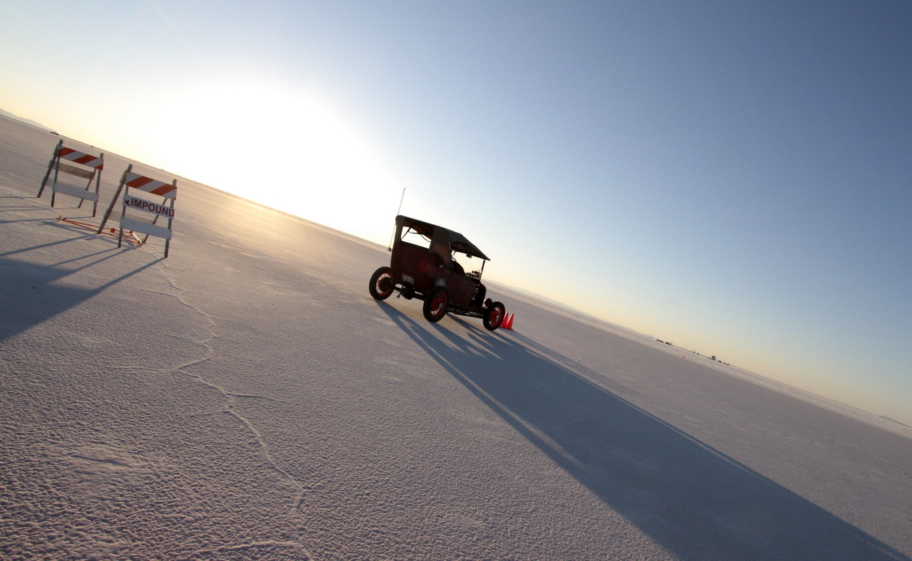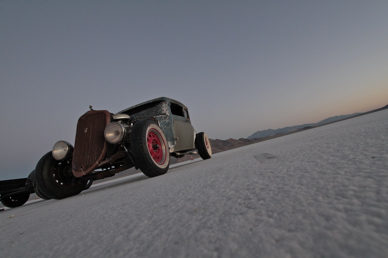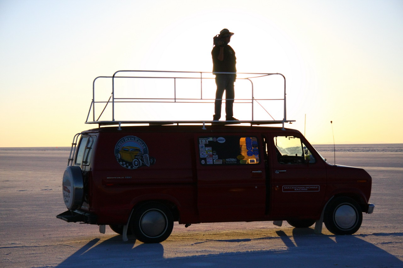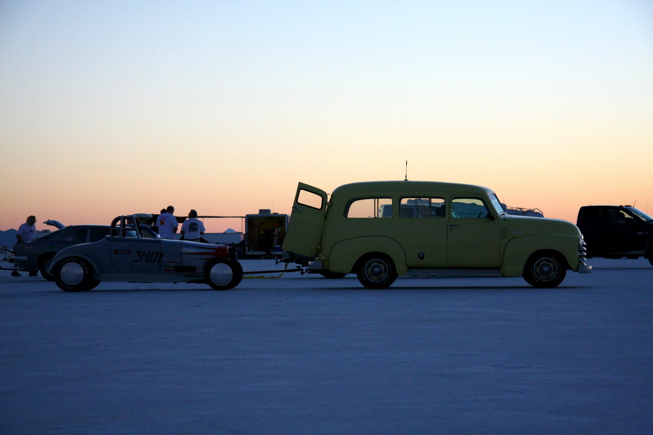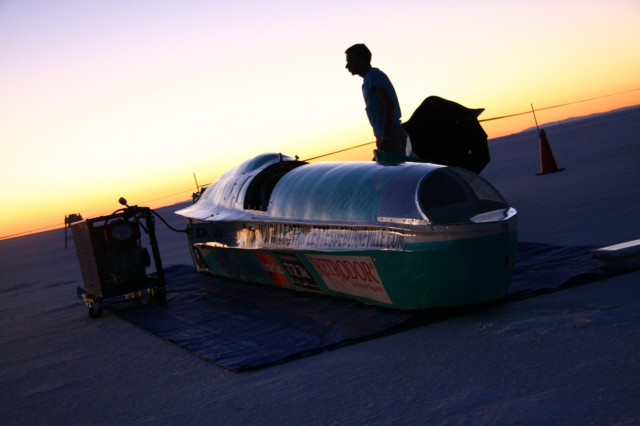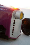 C'est le dernier jour de la Speedweek, qui ferme ses portes qui plus est à midi, les derniers runners vont donc s'activer dare-dare pour battre les derniers records!! Dernier jour, on refait l'effort de se refaire un lever de soleil sur le lac, donc départ de Wendover à 6h00, il fait toujours aussi bon à rouler décapoté mais cette fois la lumière est très différente, il ne fait pas nuit noire comme mercredi, on aura ainsi des conditions différentes, mais moins la magie (et l'angoisse??!!) de ténèbres absolues .... comme mercredi, on file direct dans l'Impound pour assister au réveil des hommes et des machines, puis nous errerons à travers le paddock, à traquer le bon angle et la bonne lumière pour immortaliser les derniers rescapés de cette fabuleuse speedweek....