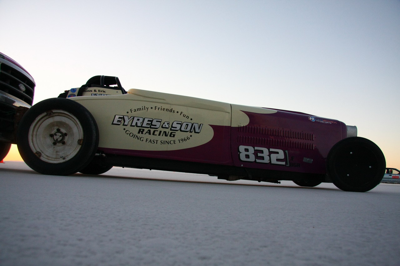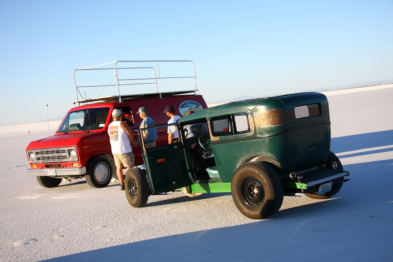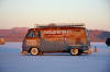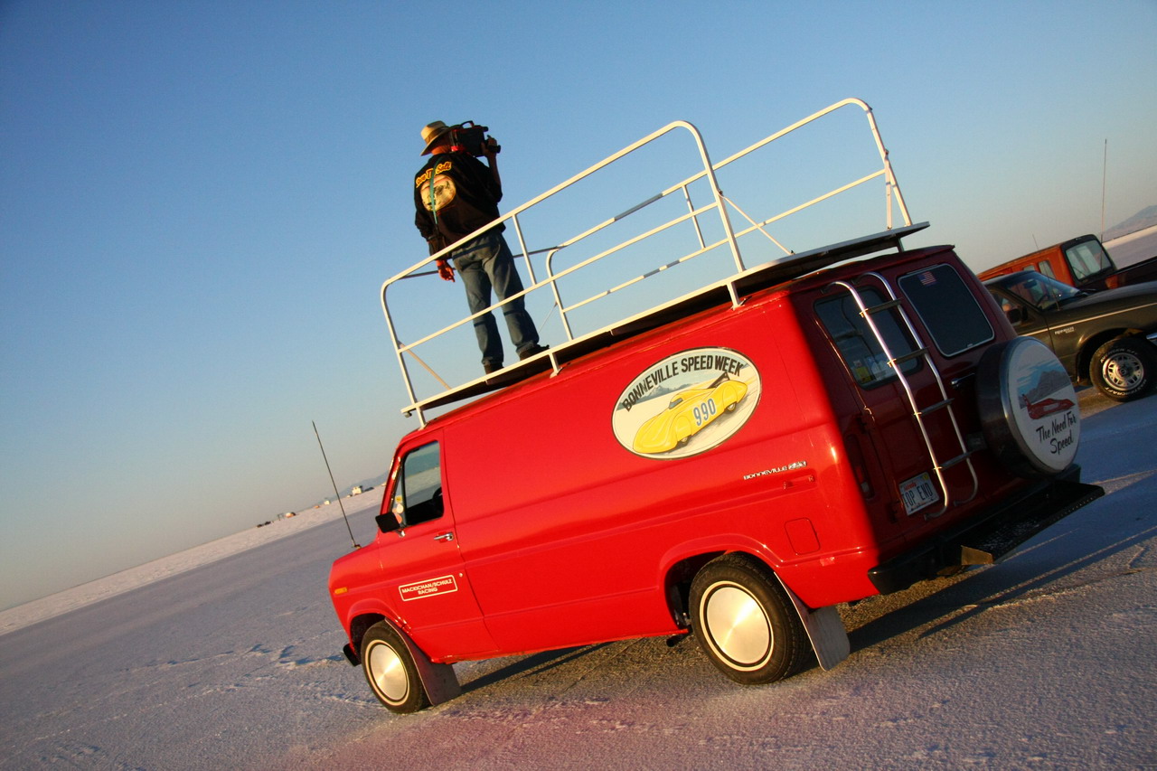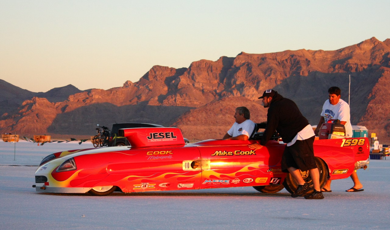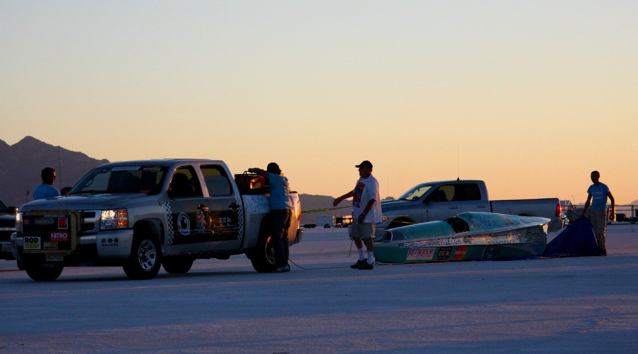 C'est le dernier jour de la Speedweek, qui ferme ses portes qui plus est à midi, les derniers runners vont donc s'activer dare-dare pour battre les derniers records!! Dernier jour, on refait l'effort de se refaire un lever de soleil sur le lac, donc départ de Wendover à 6h00, il fait toujours aussi bon à rouler décapoté mais cette fois la lumière est très différente, il ne fait pas nuit noire comme mercredi, on aura ainsi des conditions différentes, mais moins la magie (et l'angoisse??!!) de ténèbres absolues .... comme mercredi, on file direct dans l'Impound pour assister au réveil des hommes et des machines, puis nous errerons à travers le paddock, à traquer le bon angle et la bonne lumière pour immortaliser les derniers rescapés de cette fabuleuse speedweek....