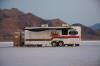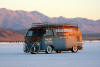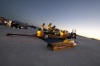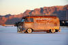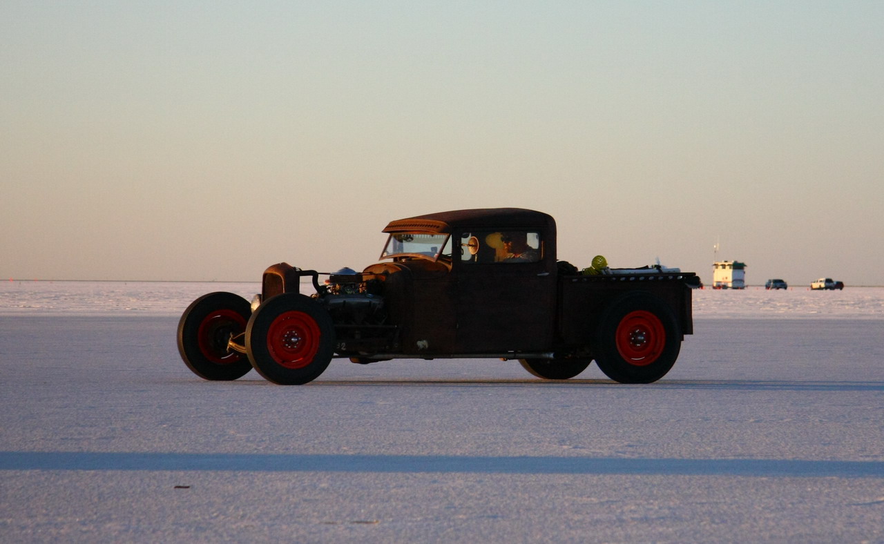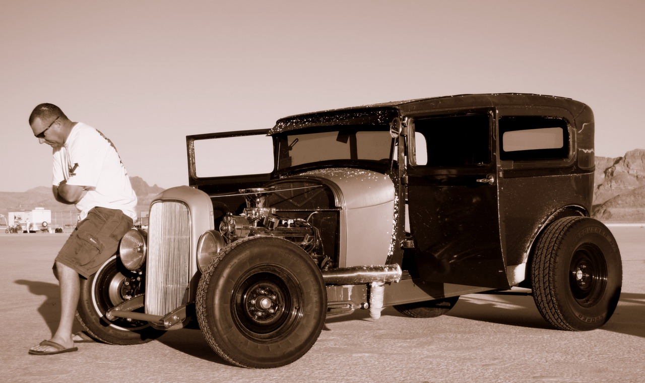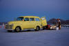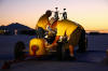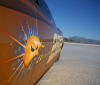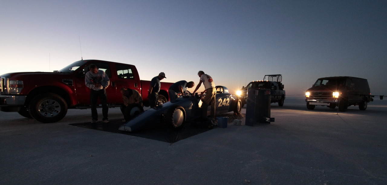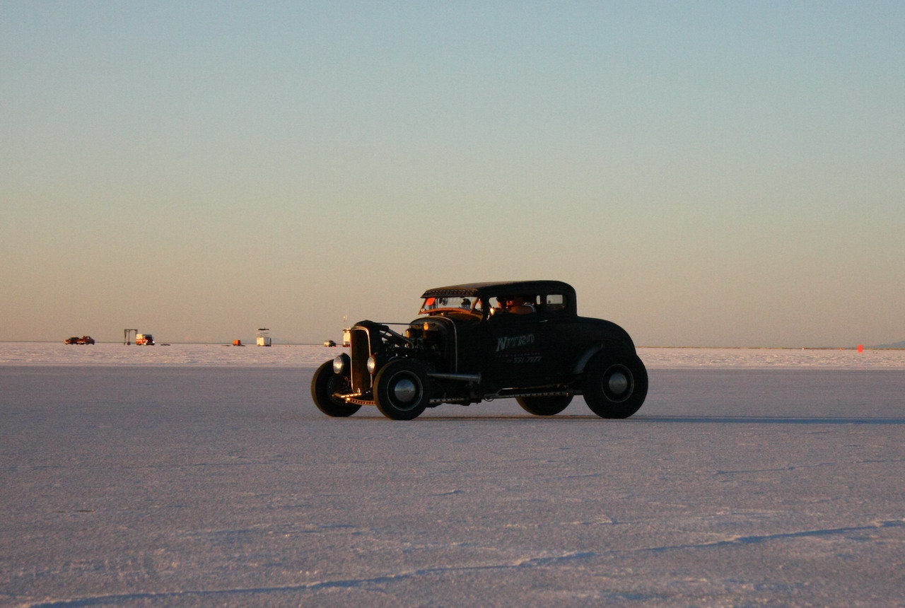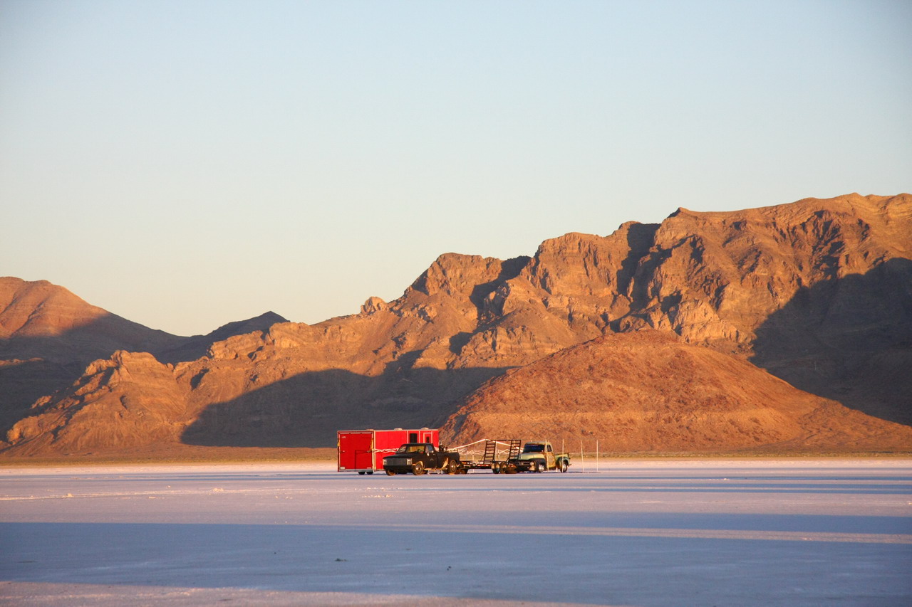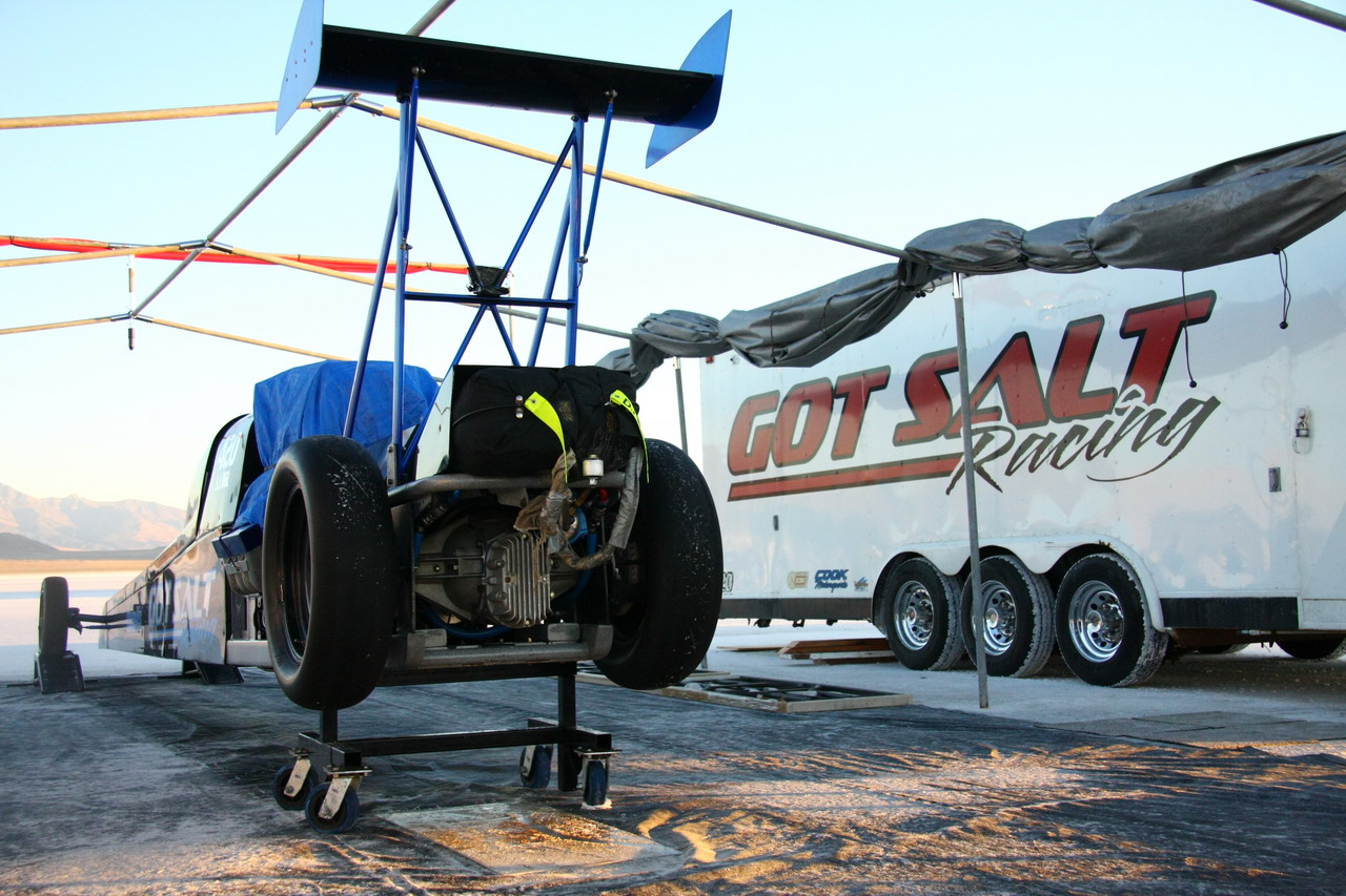 C'est le dernier jour de la Speedweek, qui ferme ses portes qui plus est à midi, les derniers runners vont donc s'activer dare-dare pour battre les derniers records!! Dernier jour, on refait l'effort de se refaire un lever de soleil sur le lac, donc départ de Wendover à 6h00, il fait toujours aussi bon à rouler décapoté mais cette fois la lumière est très différente, il ne fait pas nuit noire comme mercredi, on aura ainsi des conditions différentes, mais moins la magie (et l'angoisse??!!) de ténèbres absolues .... comme mercredi, on file direct dans l'Impound pour assister au réveil des hommes et des machines, puis nous errerons à travers le paddock, à traquer le bon angle et la bonne lumière pour immortaliser les derniers rescapés de cette fabuleuse speedweek....
