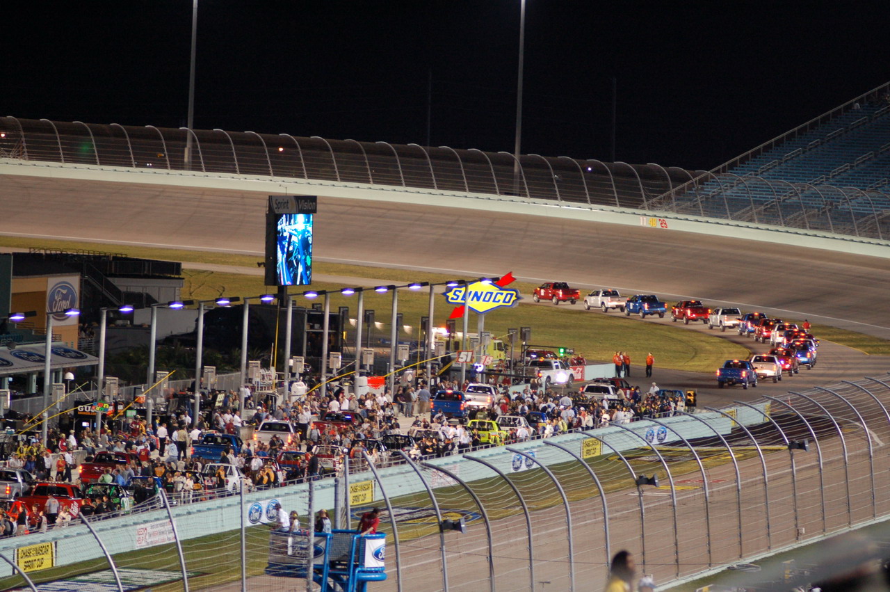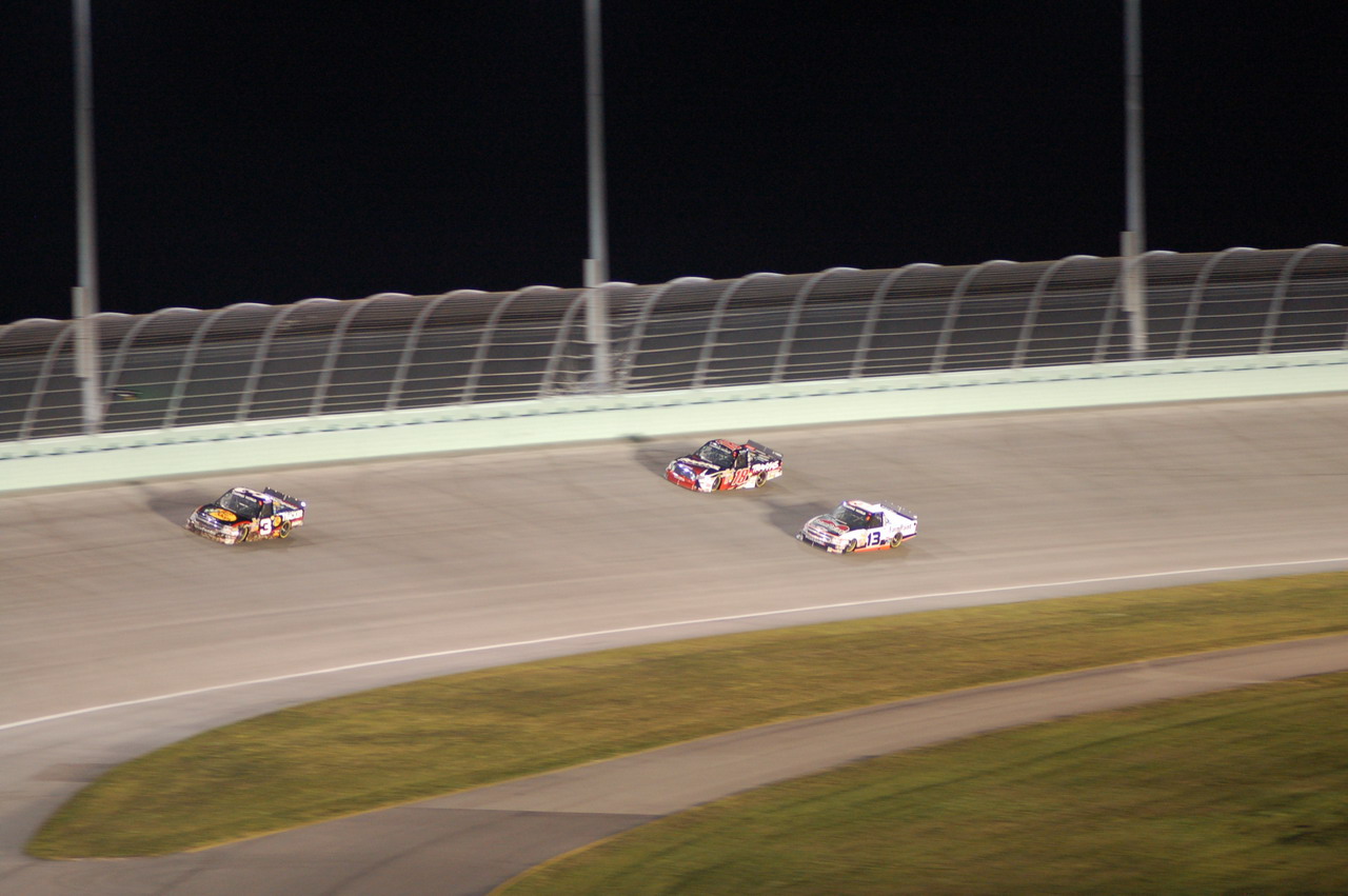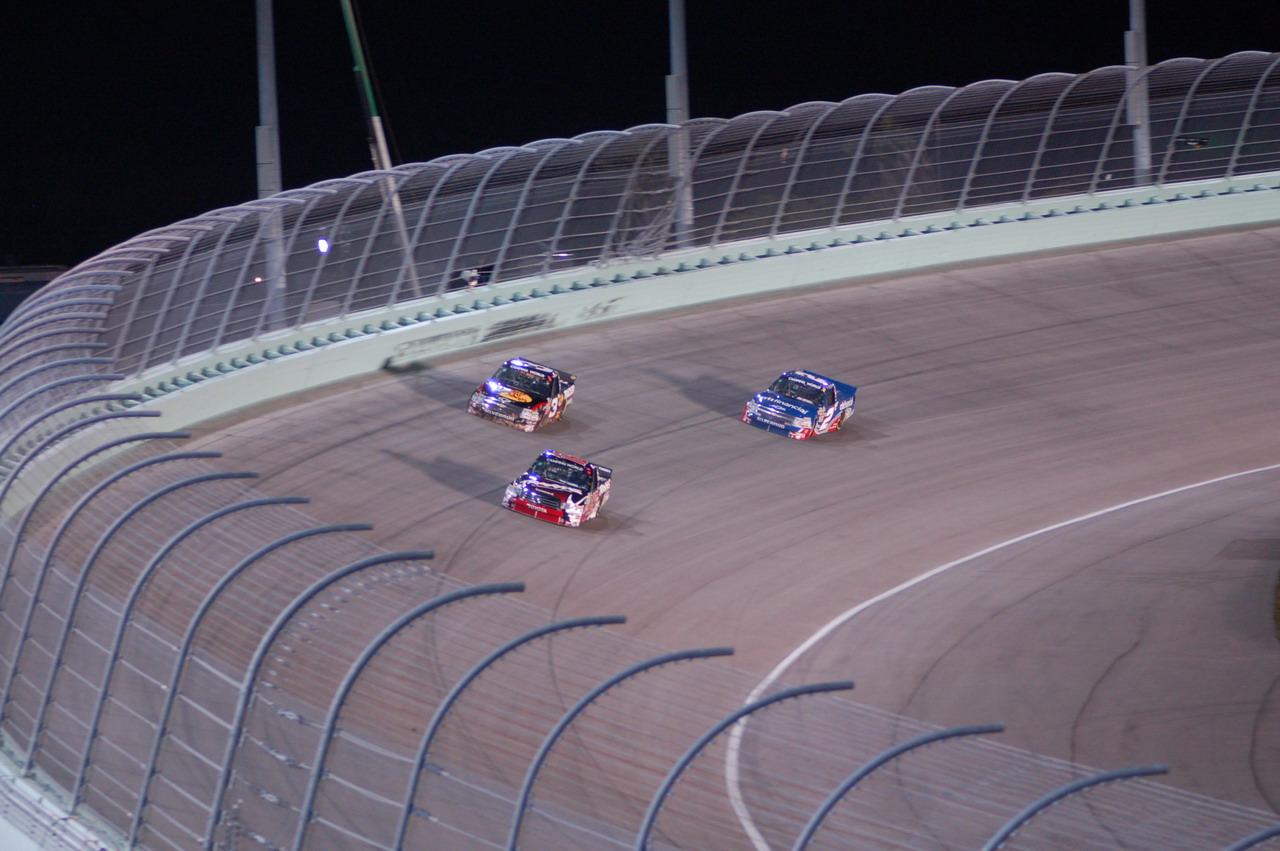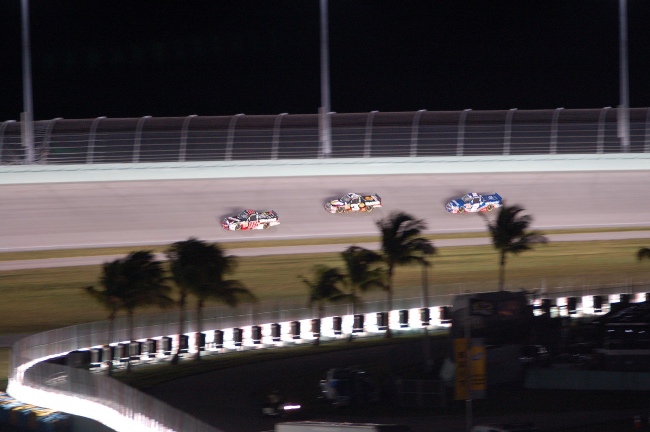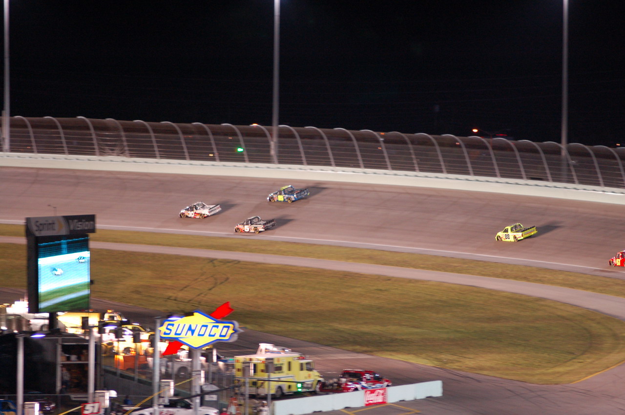 Comme nous sommes arrivés en début de soirée sur Miami, on balance nos valises à l'hotel à Cutler Bay, et on file fissa vers le Homestead-Miami Speedway pour tenter d'assister (même si ce n'était pas prévu au programme!!) à la course de Truck Series, et on arrivera à temps !!