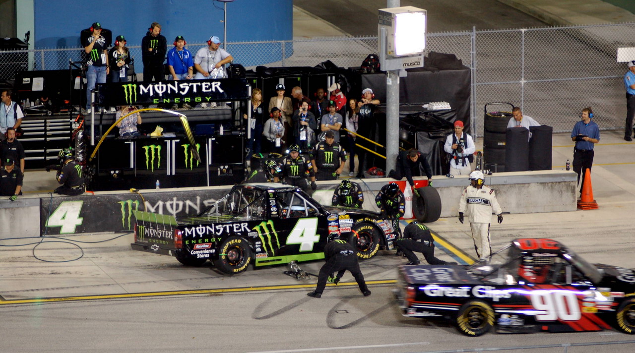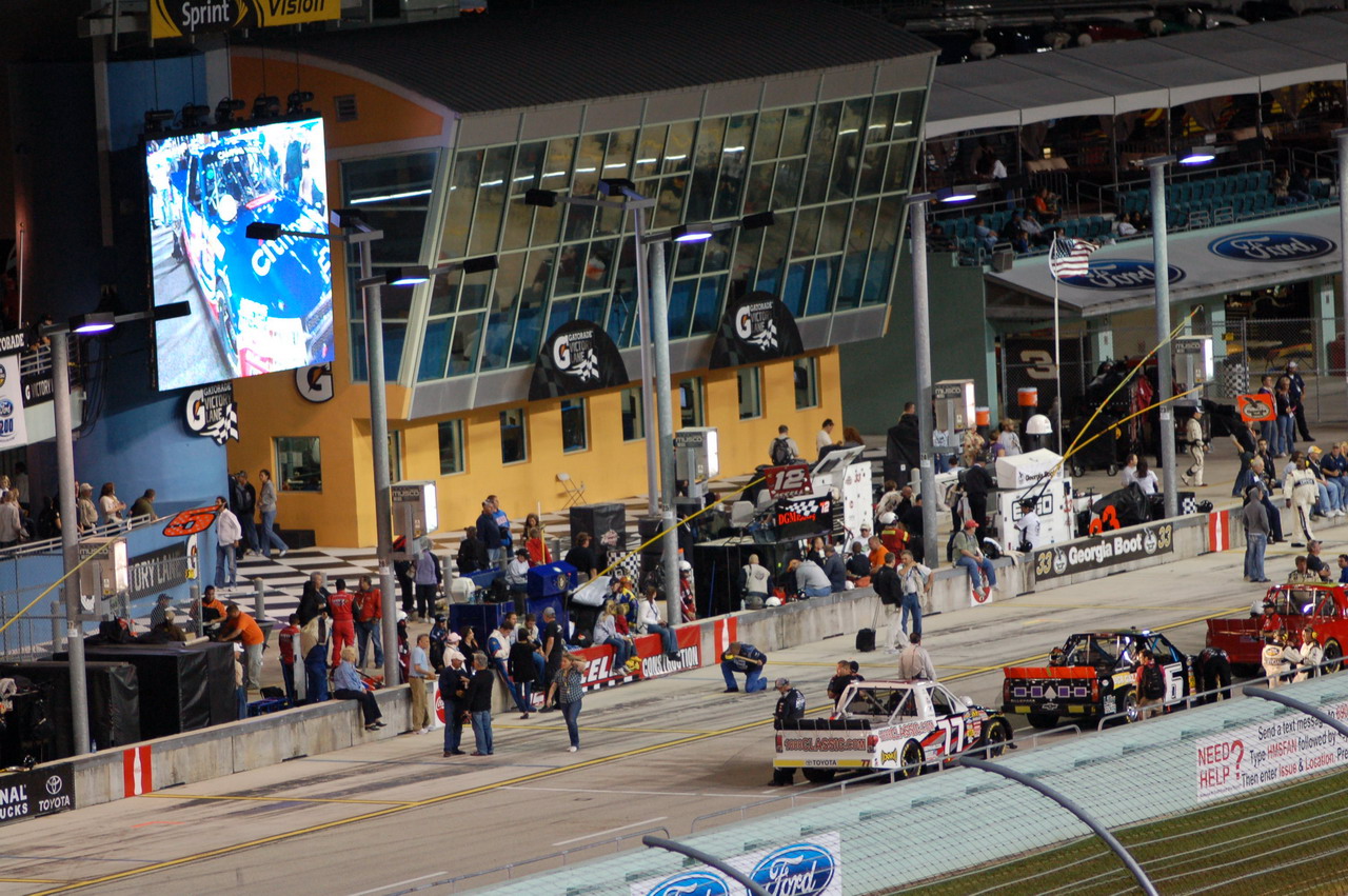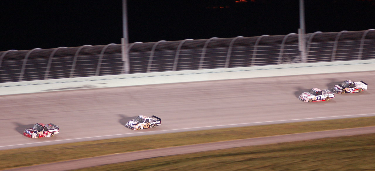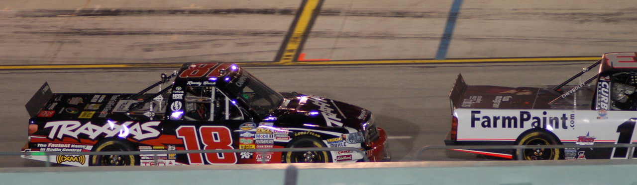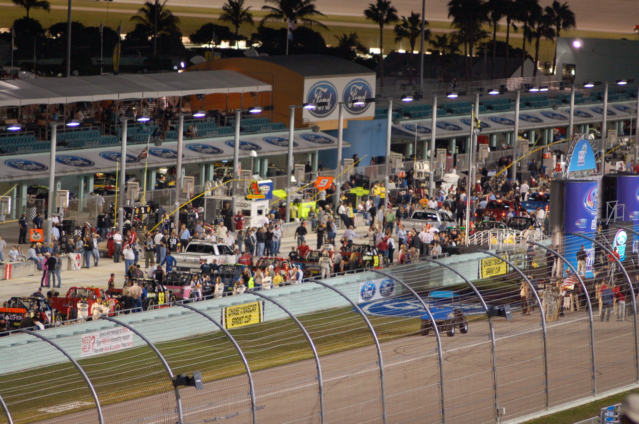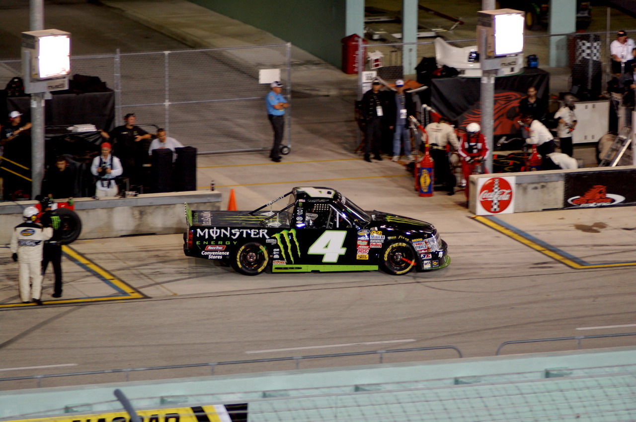 Comme nous sommes arrivés en début de soirée sur Miami, on balance nos valises à l'hotel à Cutler Bay, et on file fissa vers le Homestead-Miami Speedway pour tenter d'assister (même si ce n'était pas prévu au programme!!) à la course de Truck Series, et on arrivera à temps !!