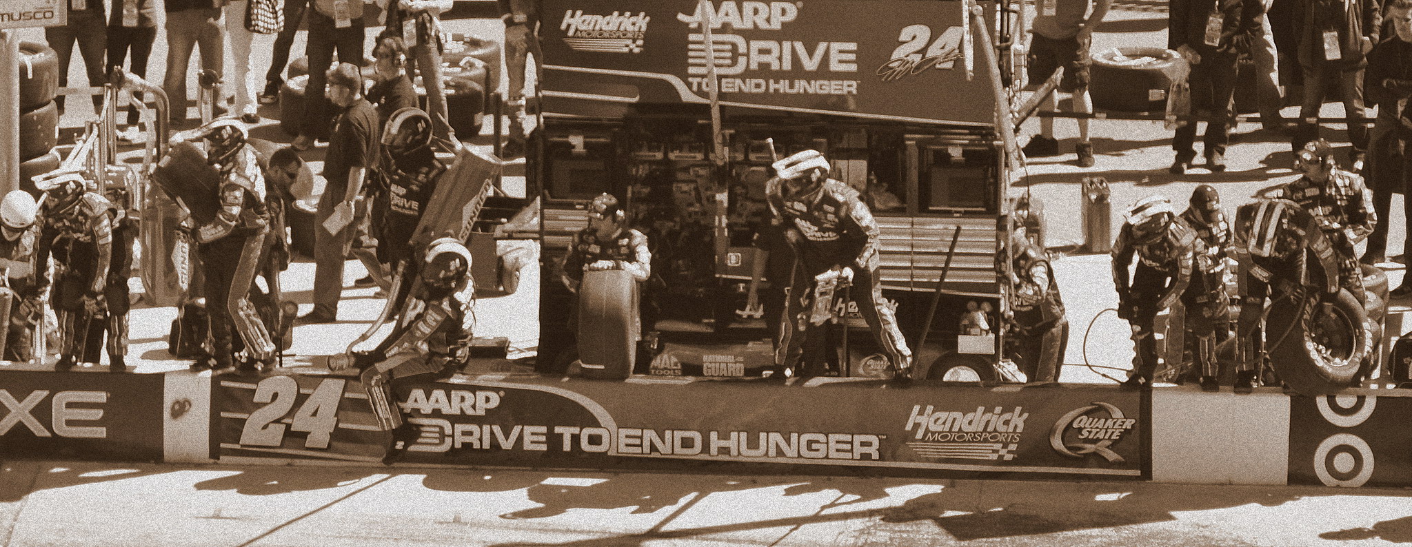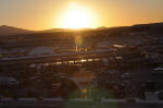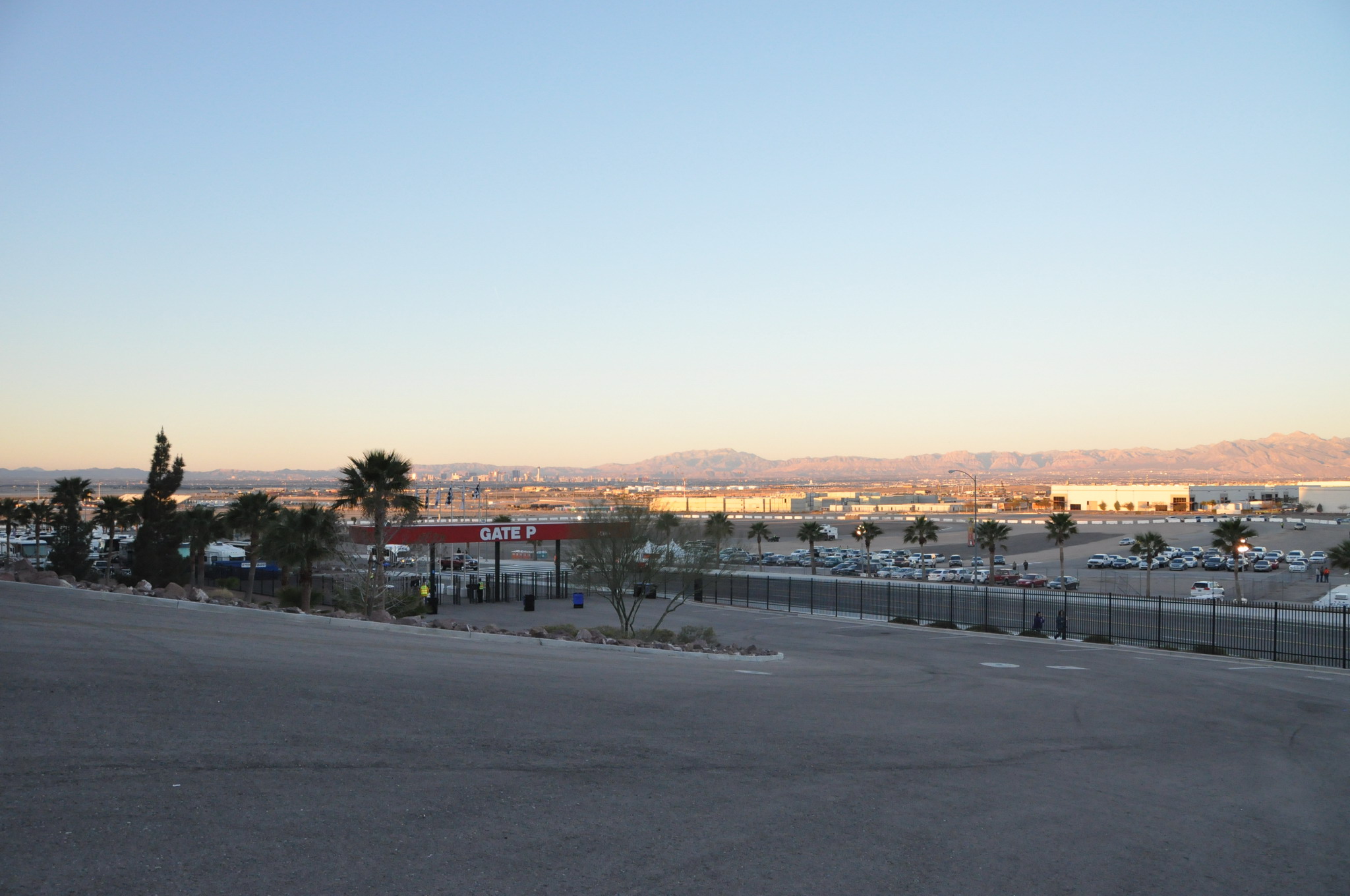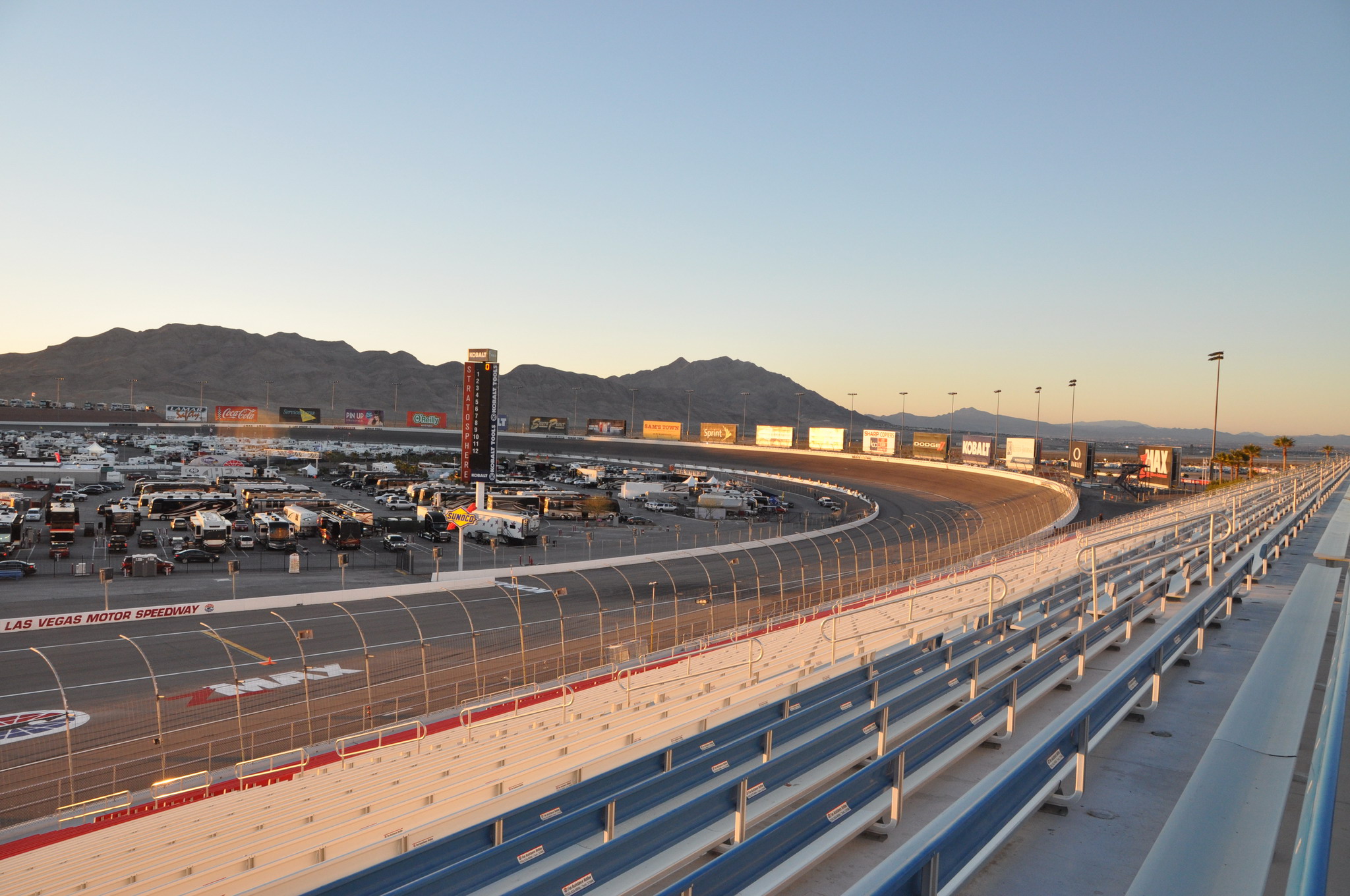 C'est dimanche et c'est donc jour de course aujourd'hui ! J'arrive à quitter l'hotel alors qu'il fait encore nuit, je remonte ainso tout le strip sans encombres et arrive au circuit sans aucun bouchon et retrouve une place sur le parking près du speedway. Les fans ne sont pas encore beaucoup arrivés, j'entre donc aussi dans le speedway sans attendre, et pour assister au lever de soleil au coeur de l'arène, splendide.... Et je fonce dans l'infield et sa fan zone qui surplombe les garages car les équipes, elles, sont levées depuis longtemps et bossent sur les voitures pour qu'elles soient fin prêtes pour la course et aller leur faire passer l'inspection d'avant-course.
