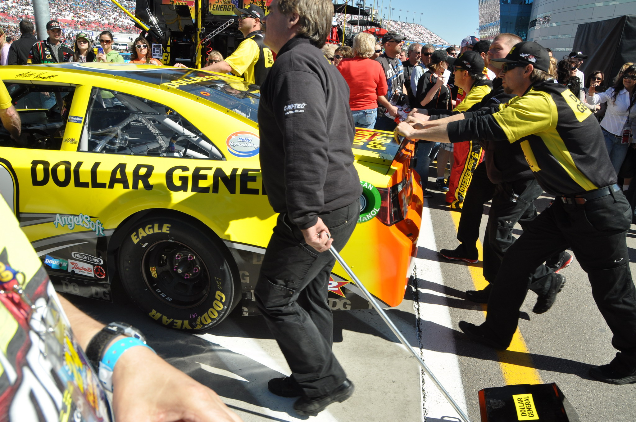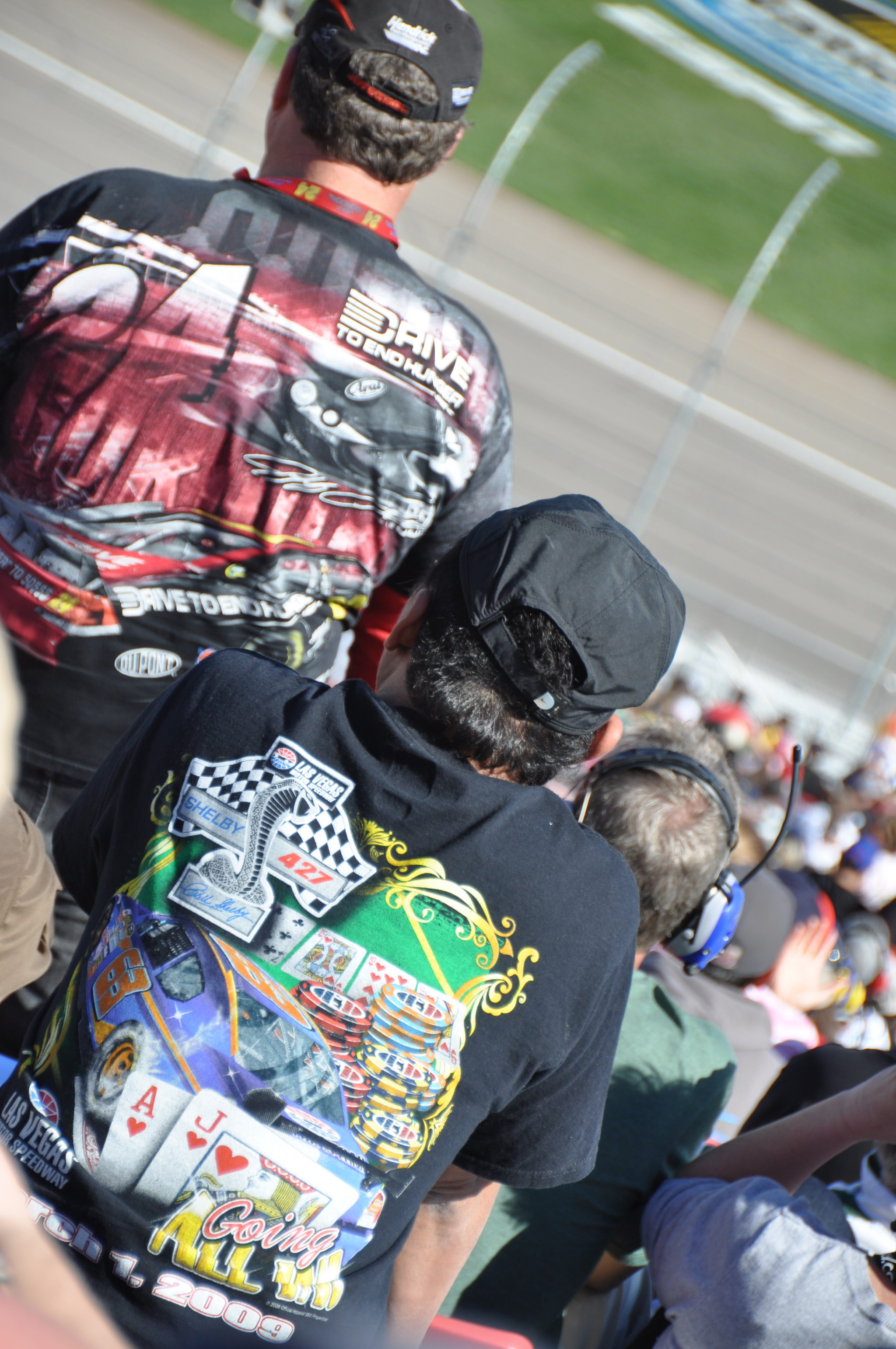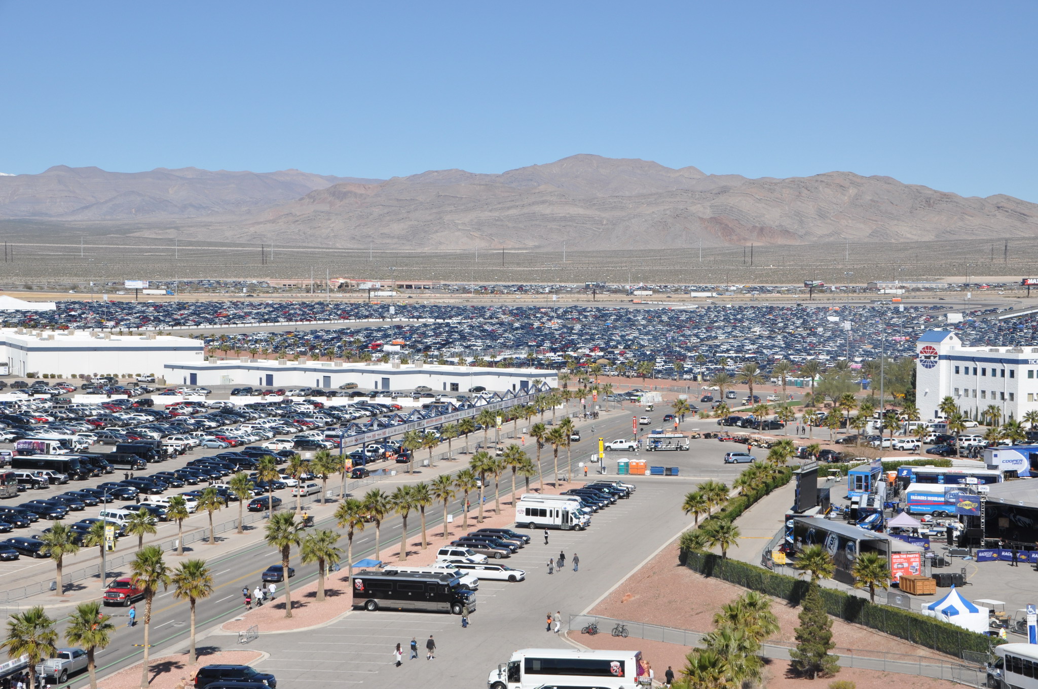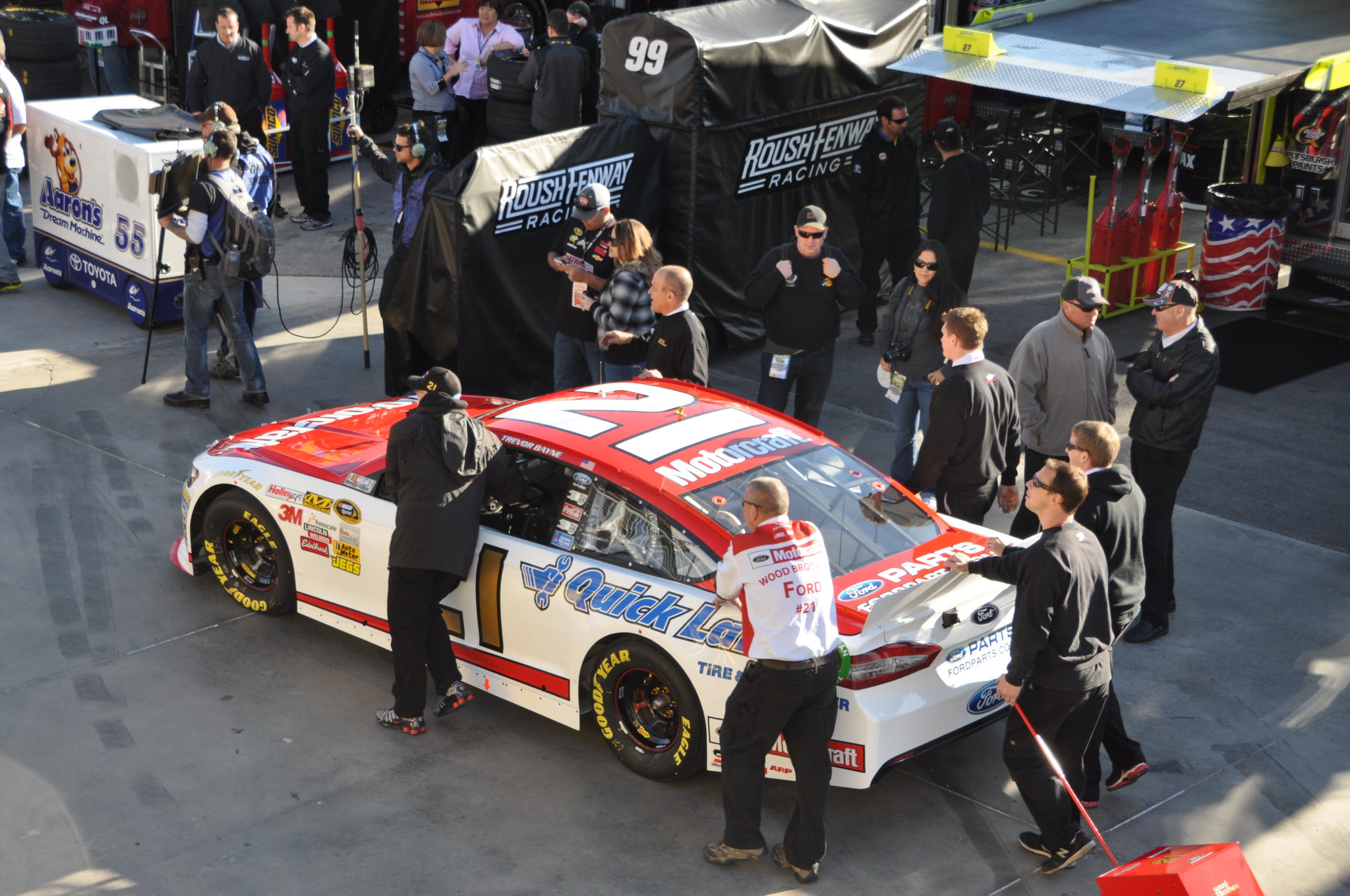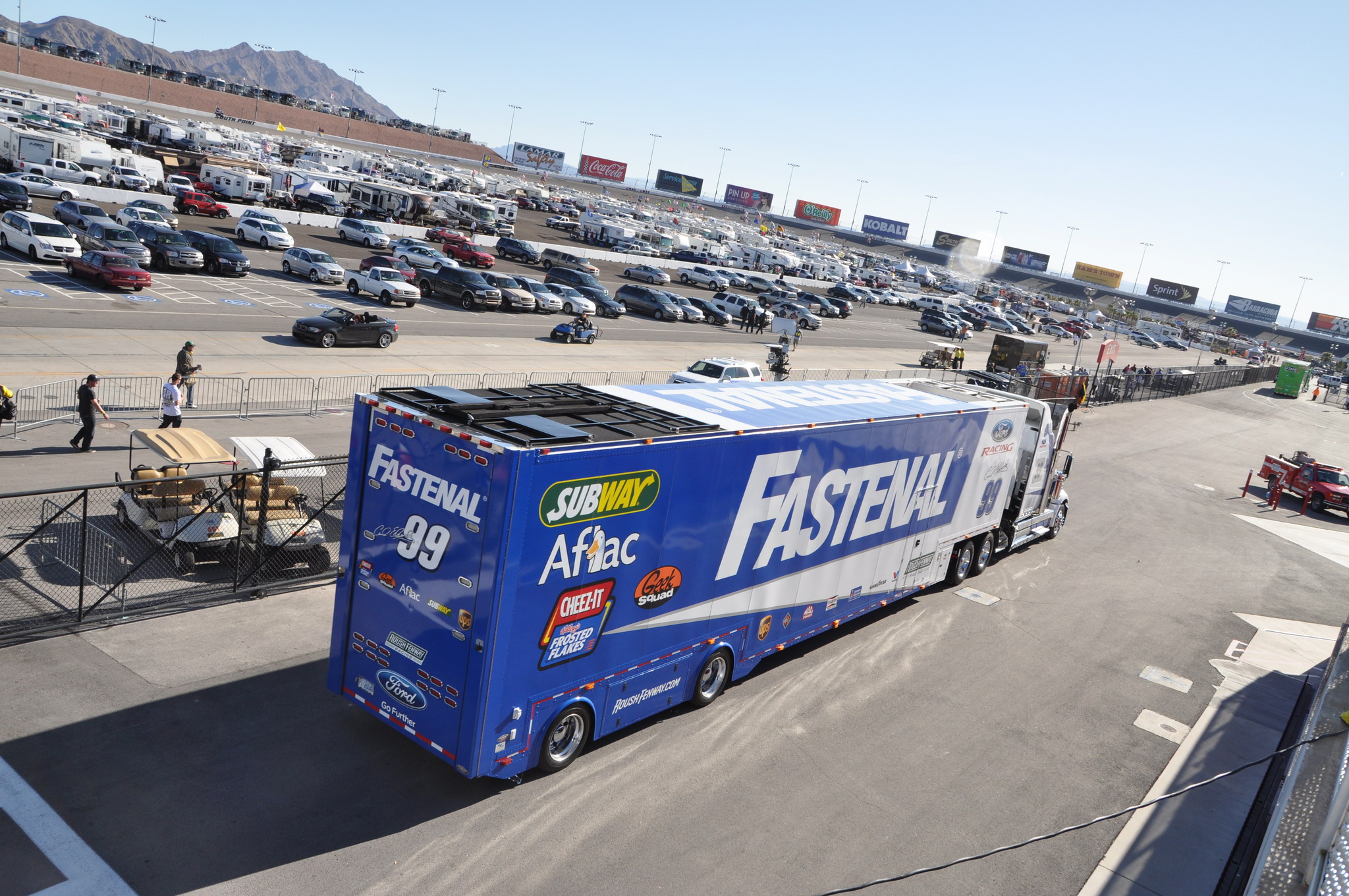Et comme c'est de tradition le dimanche juste avant la course, et c'est aussi pour ça qu'on m'avait particulièrement conseillé la course de Vegas, toute la ligne des stands est ouverte aux fans. Les équipes, après l'inspection, y mettent les voitures, ce qui permet de toutes les voir de près, quelques animations sont organisées, avec un peu de chance, il est possible de voir les pilotes de près, le vrai spectacle de la Nascar pour les fans.
