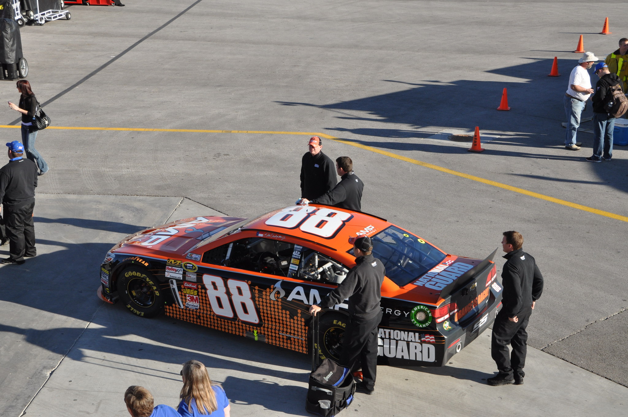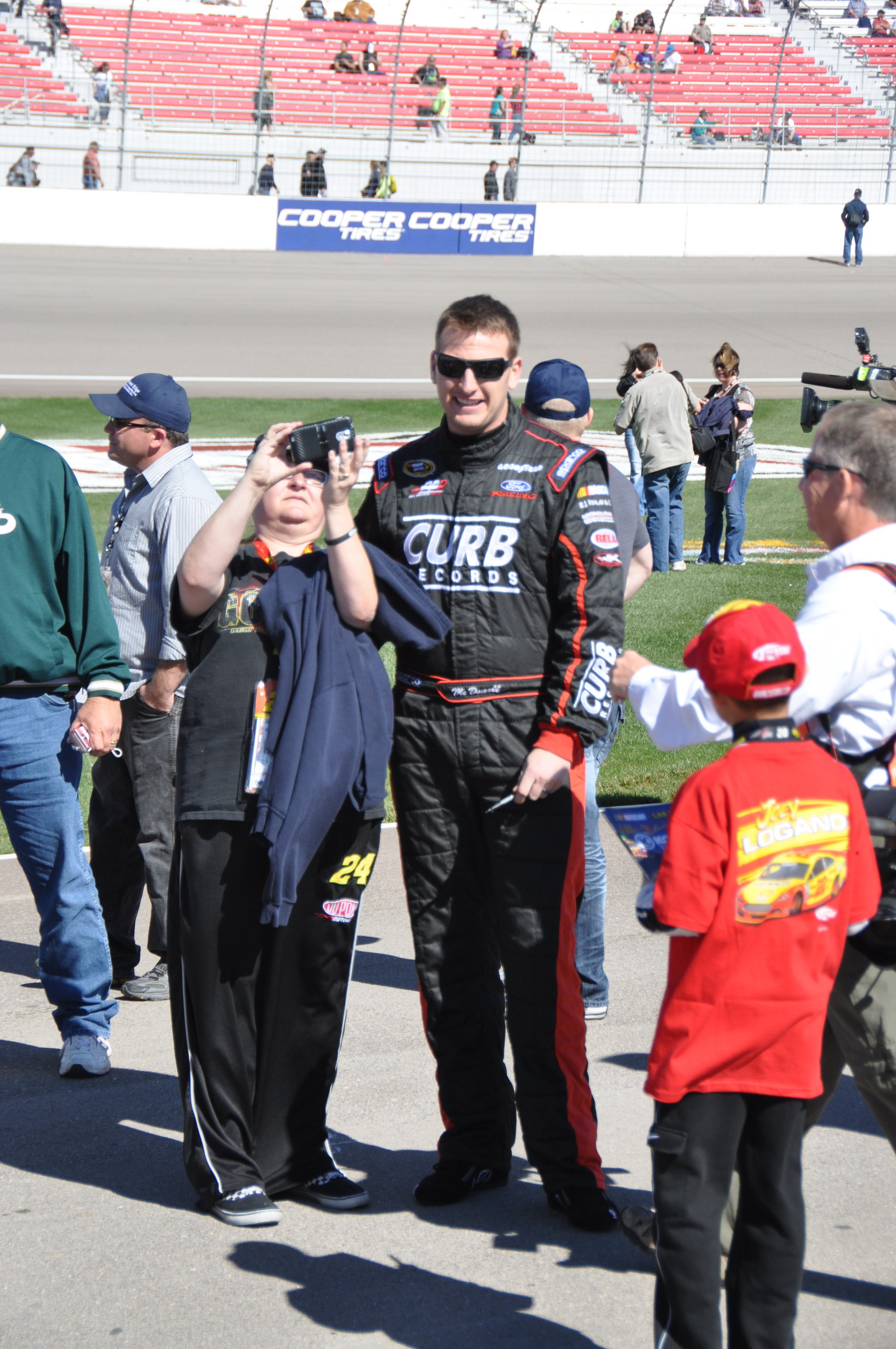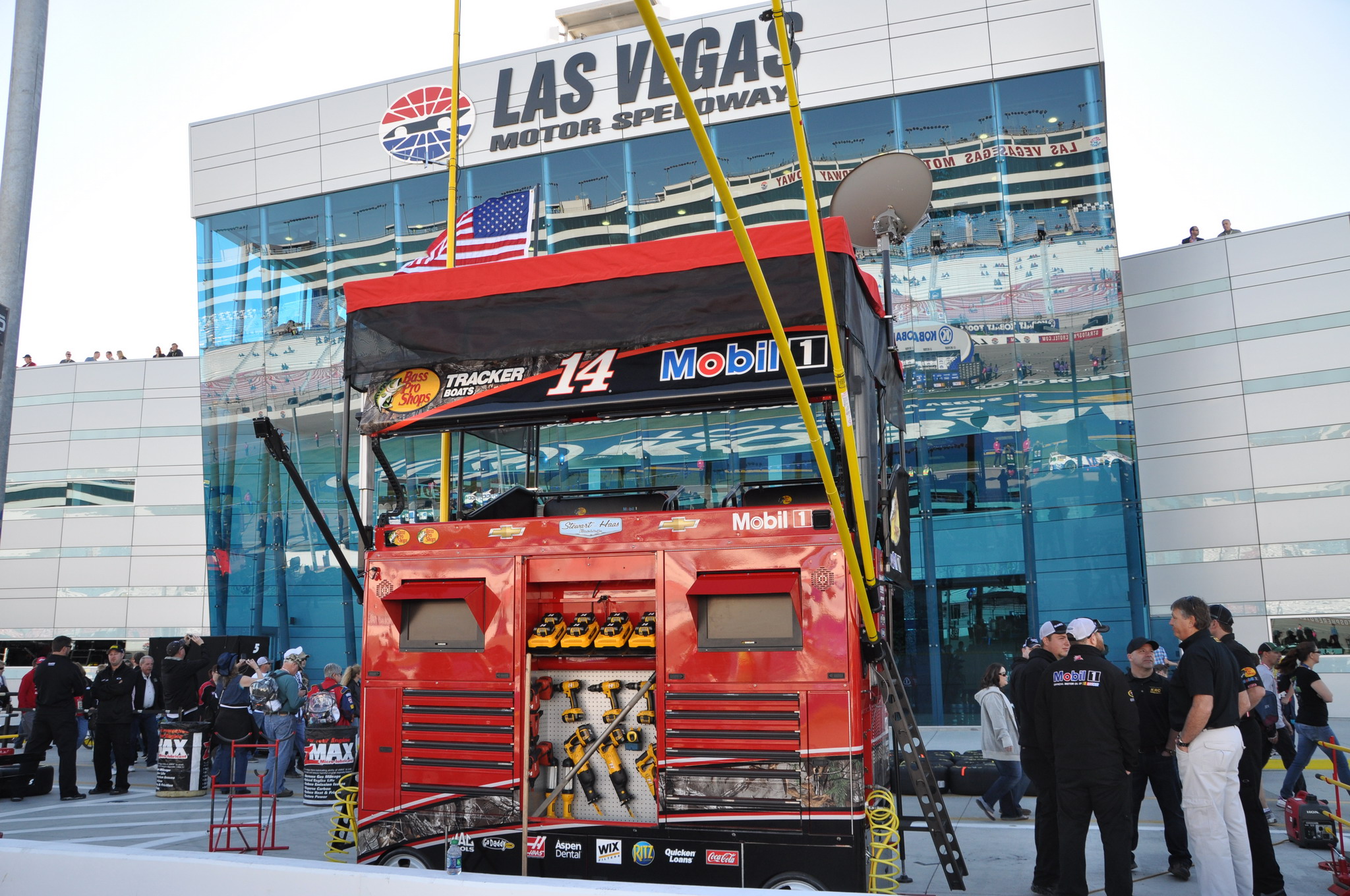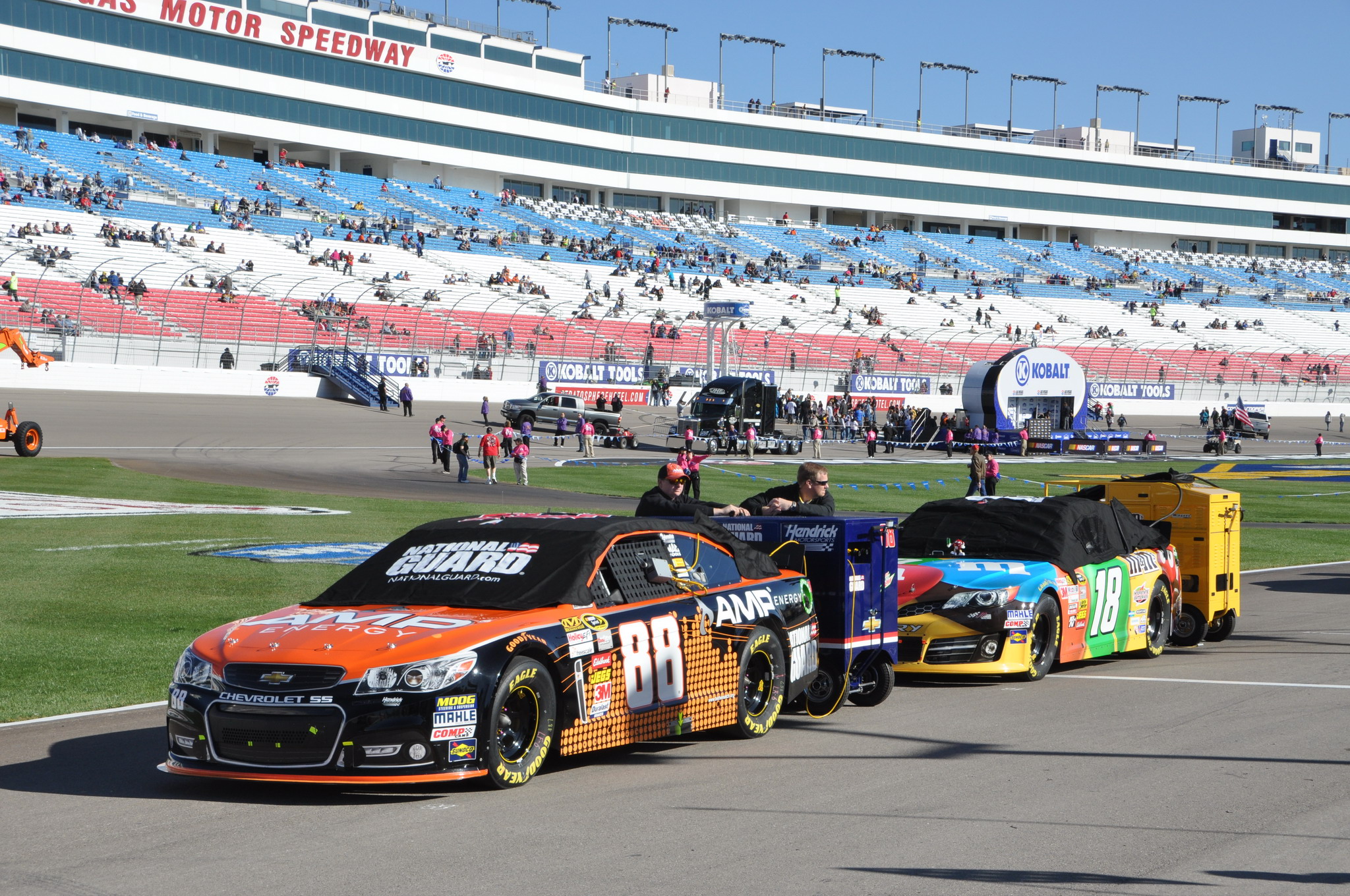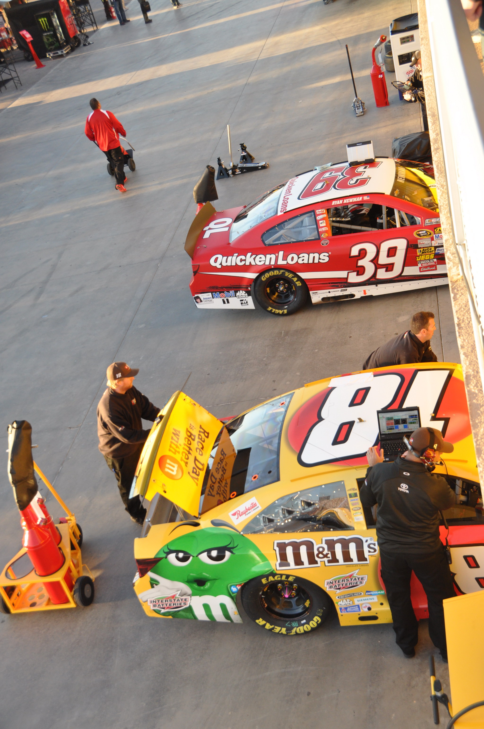 Et comme c'est de tradition le dimanche juste avant la course, et c'est aussi pour ça qu'on m'avait particulièrement conseillé la course de Vegas, toute la ligne des stands est ouverte aux fans. Les équipes, après l'inspection, y mettent les voitures, ce qui permet de toutes les voir de près, quelques animations sont organisées, avec un peu de chance, il est possible de voir les pilotes de près, le vrai spectacle de la Nascar pour les fans.