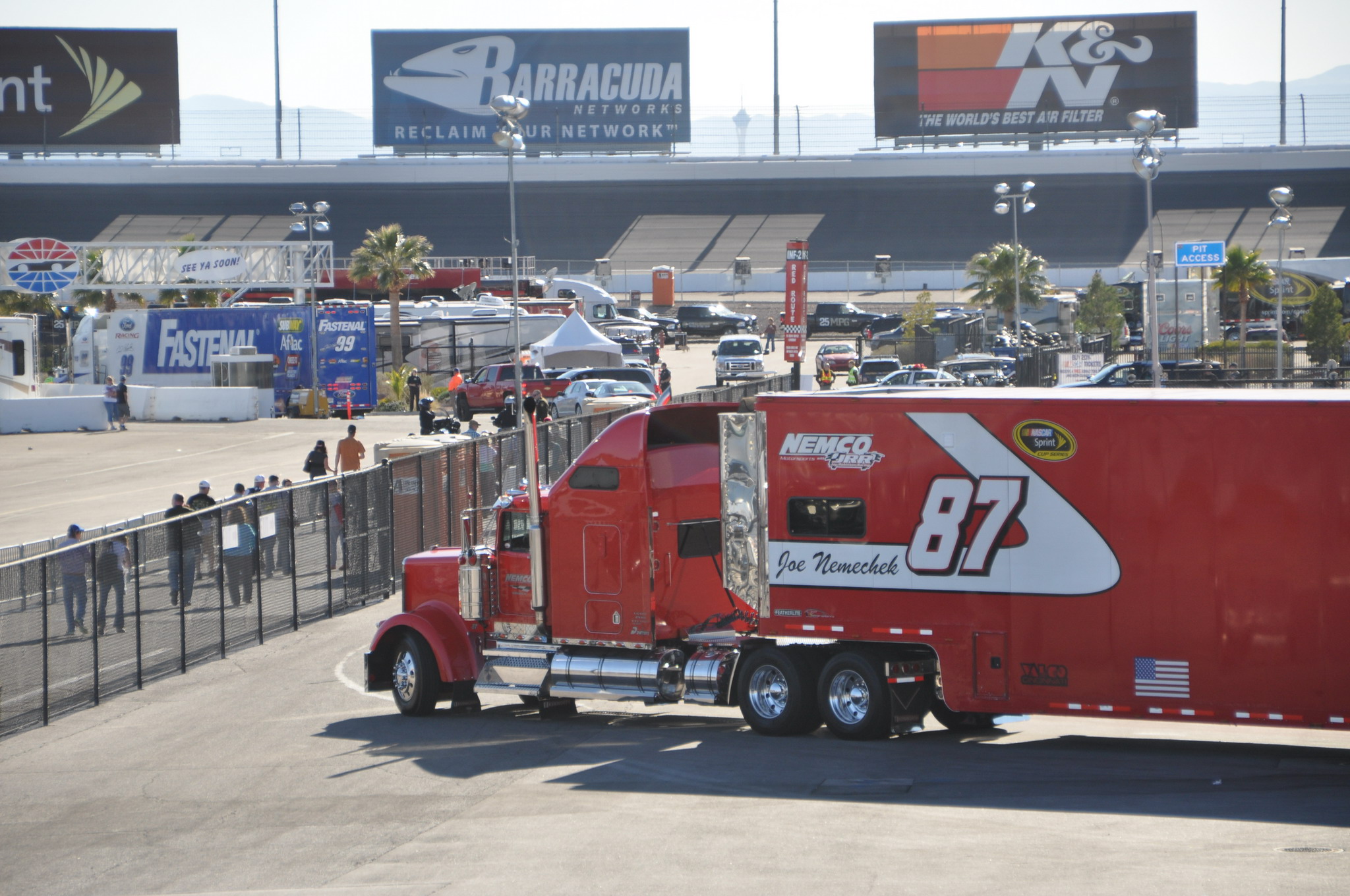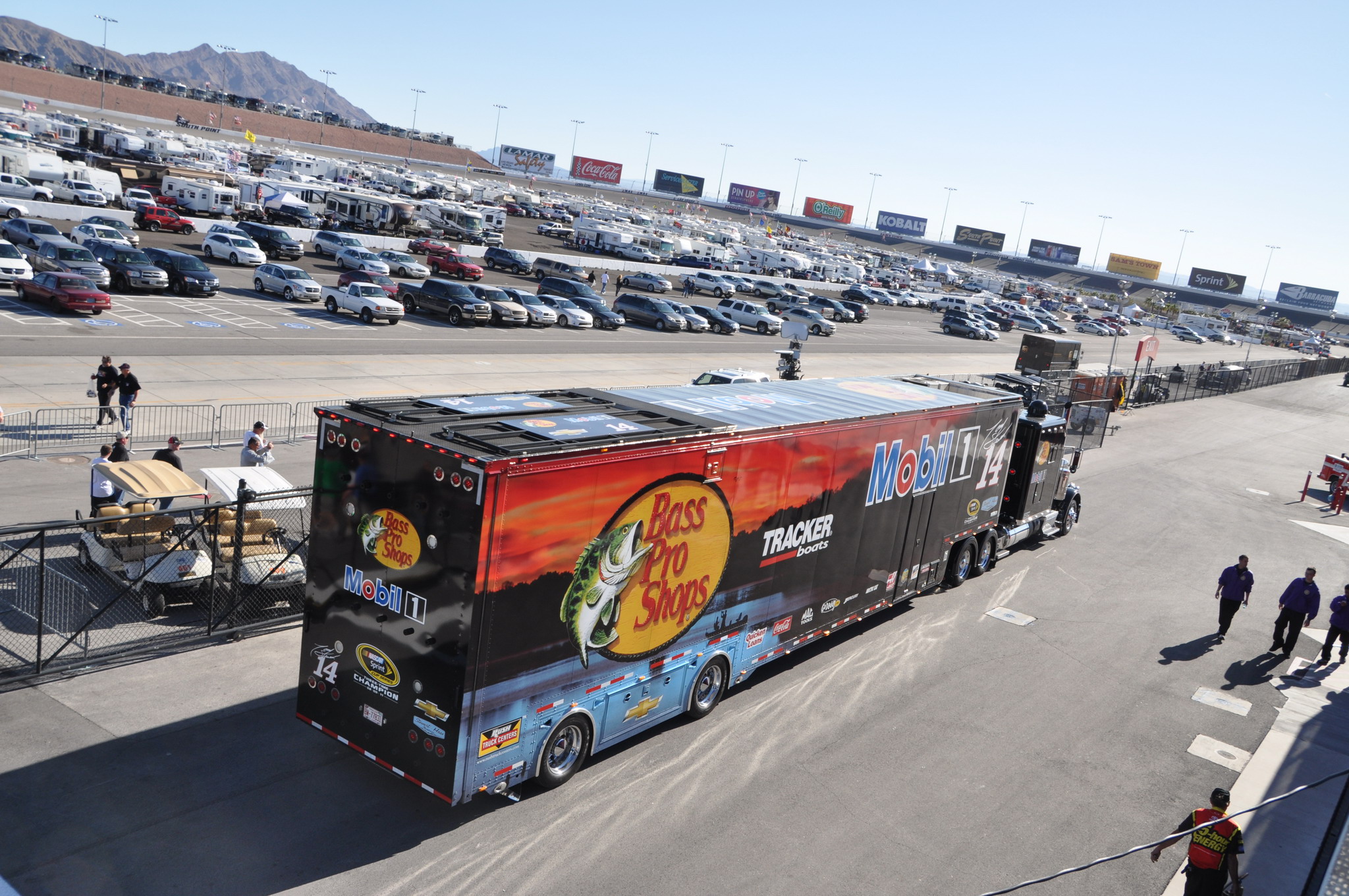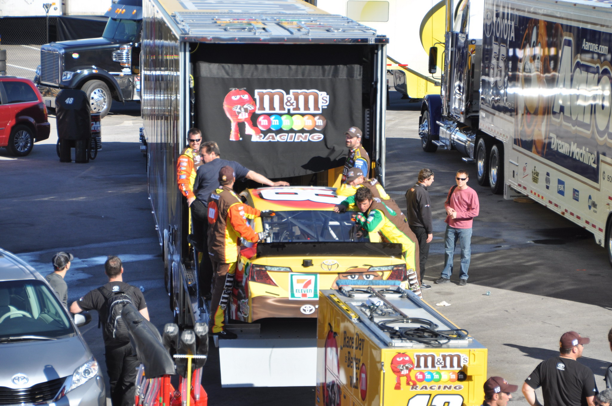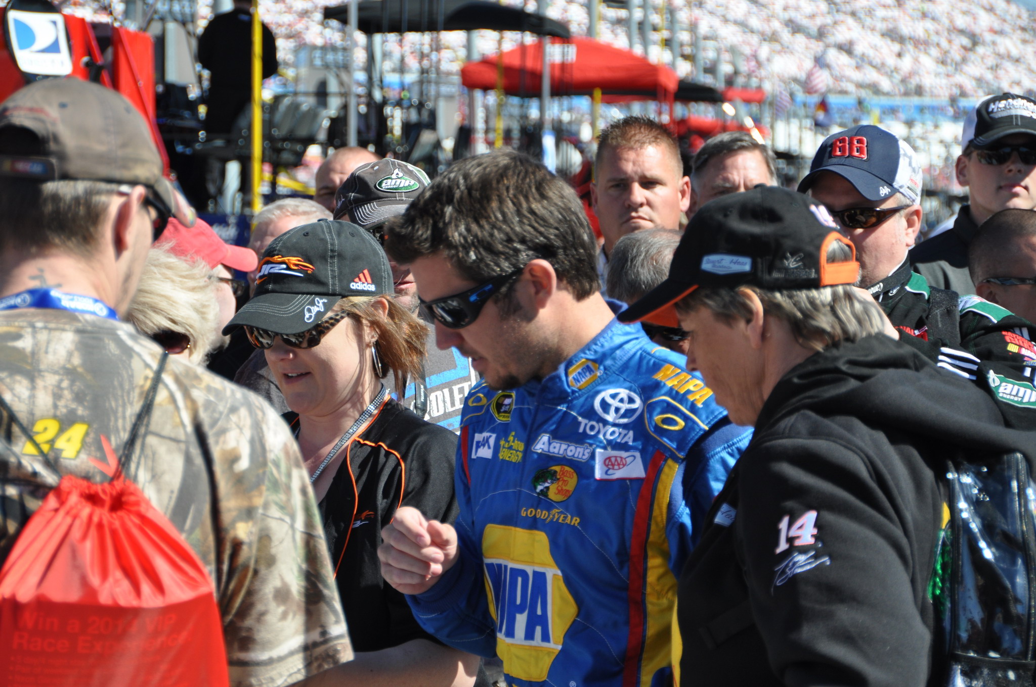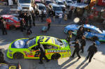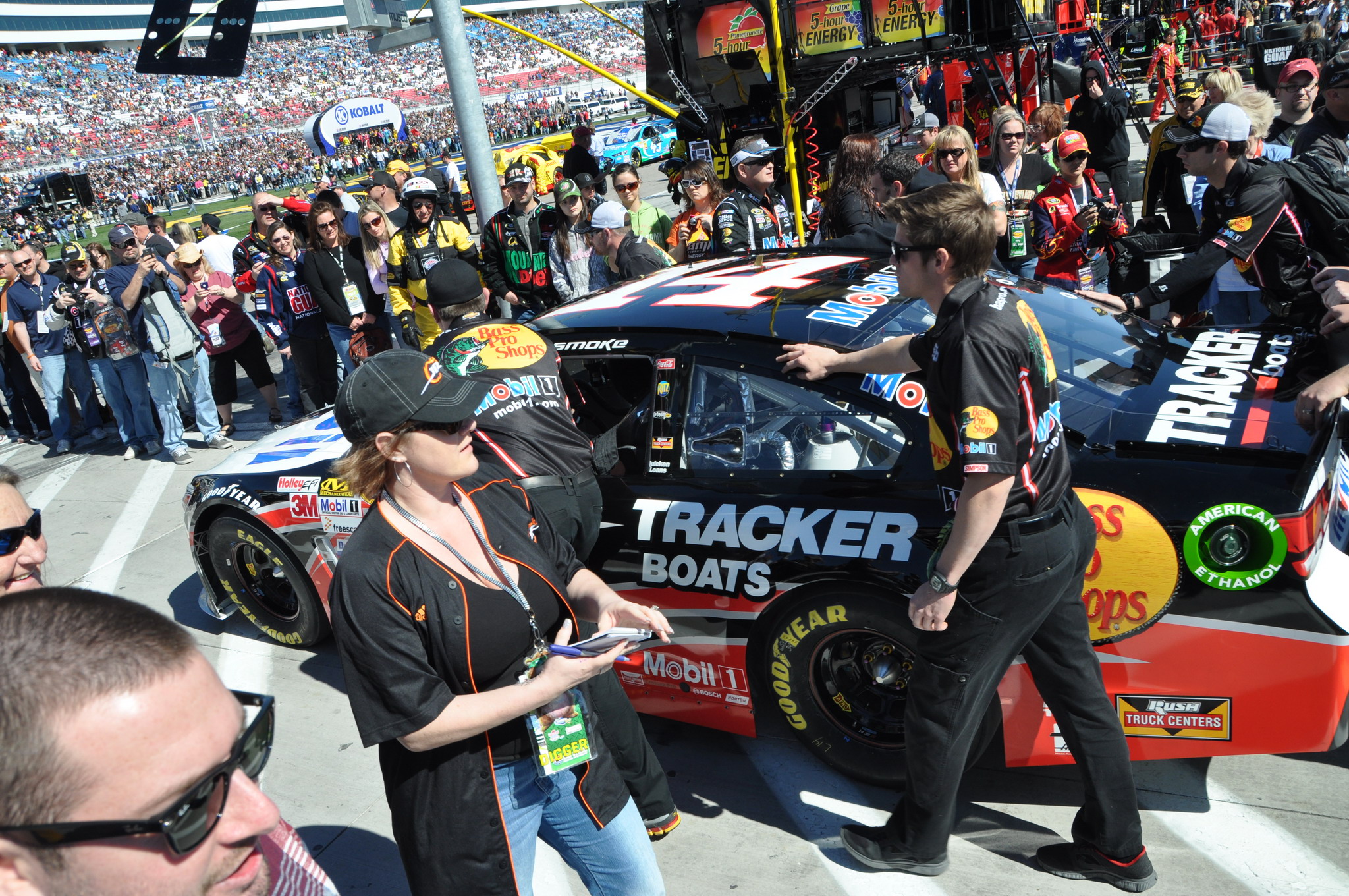 Et comme c'est de tradition le dimanche juste avant la course, et c'est aussi pour ça qu'on m'avait particulièrement conseillé la course de Vegas, toute la ligne des stands est ouverte aux fans. Les équipes, après l'inspection, y mettent les voitures, ce qui permet de toutes les voir de près, quelques animations sont organisées, avec un peu de chance, il est possible de voir les pilotes de près, le vrai spectacle de la Nascar pour les fans.