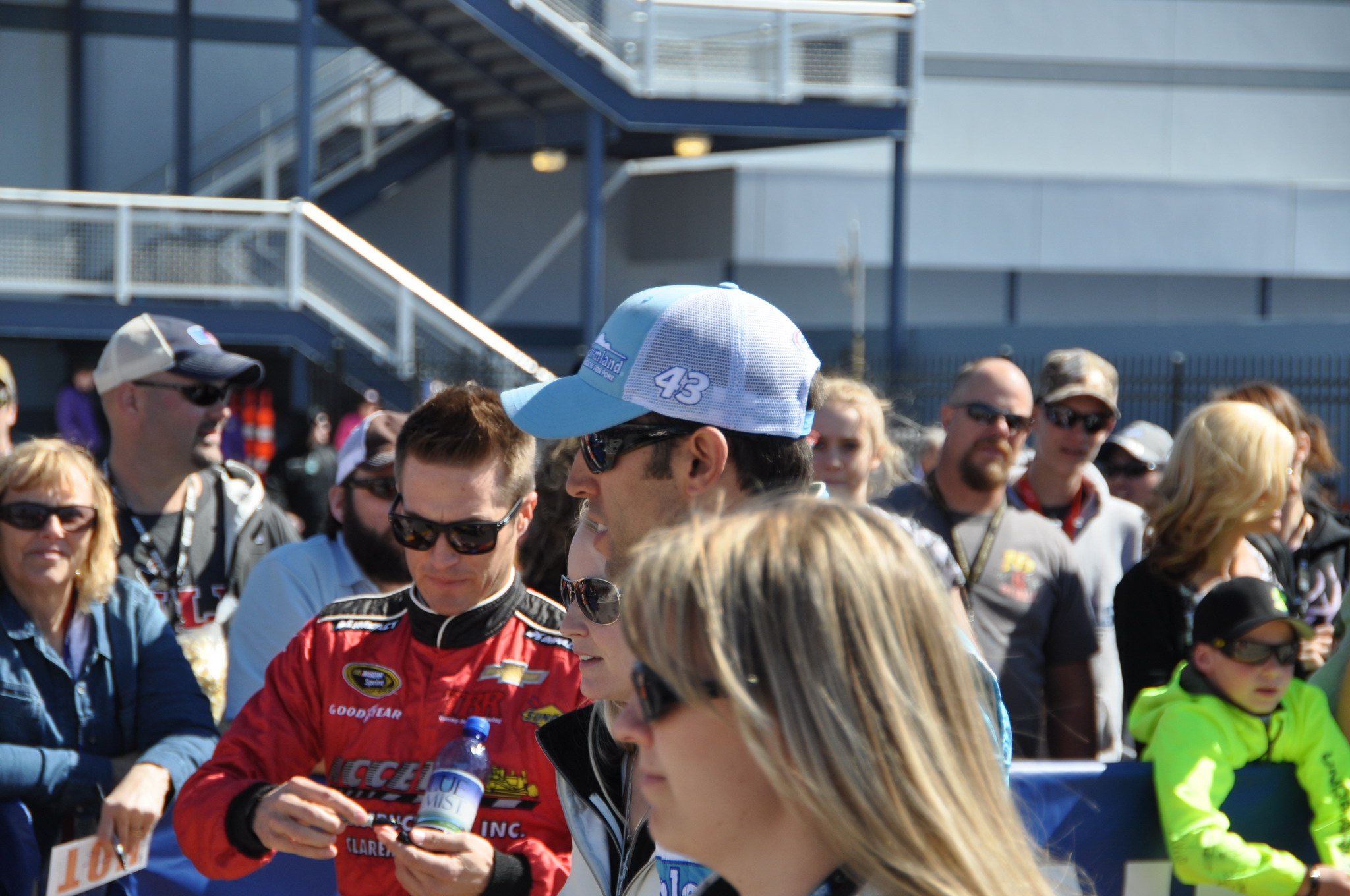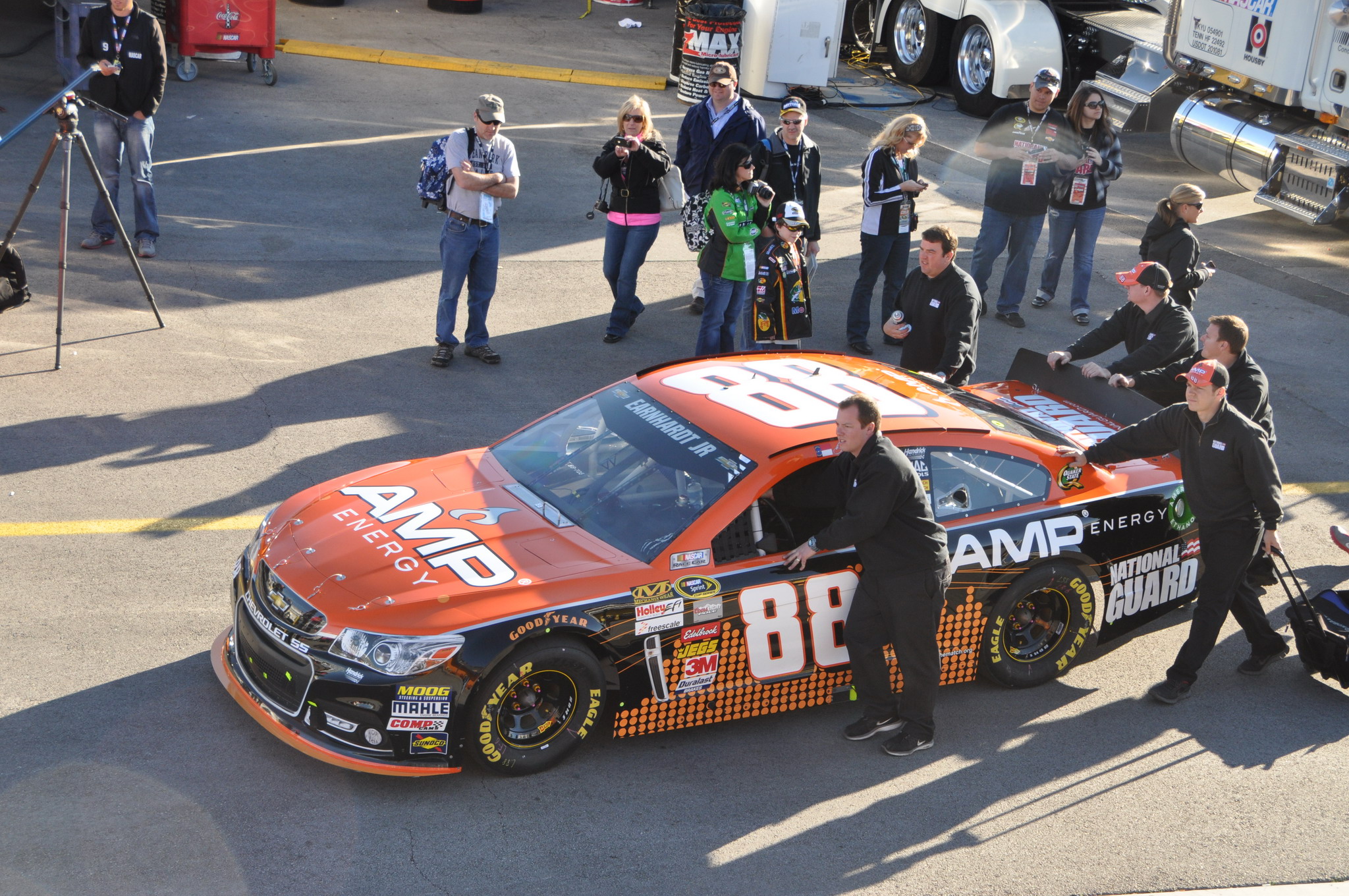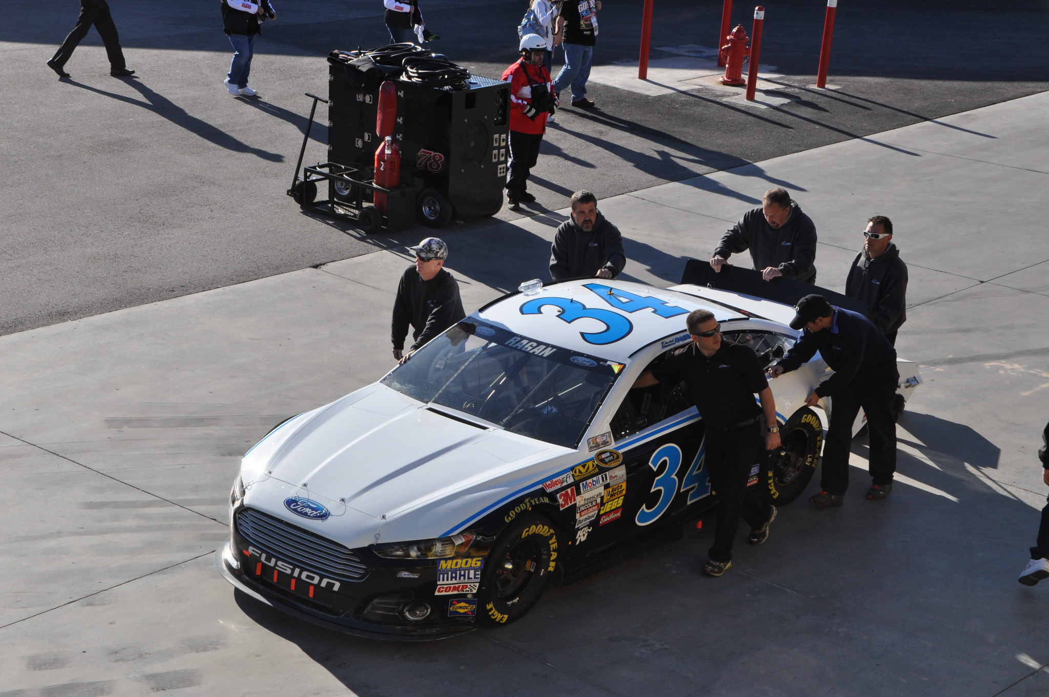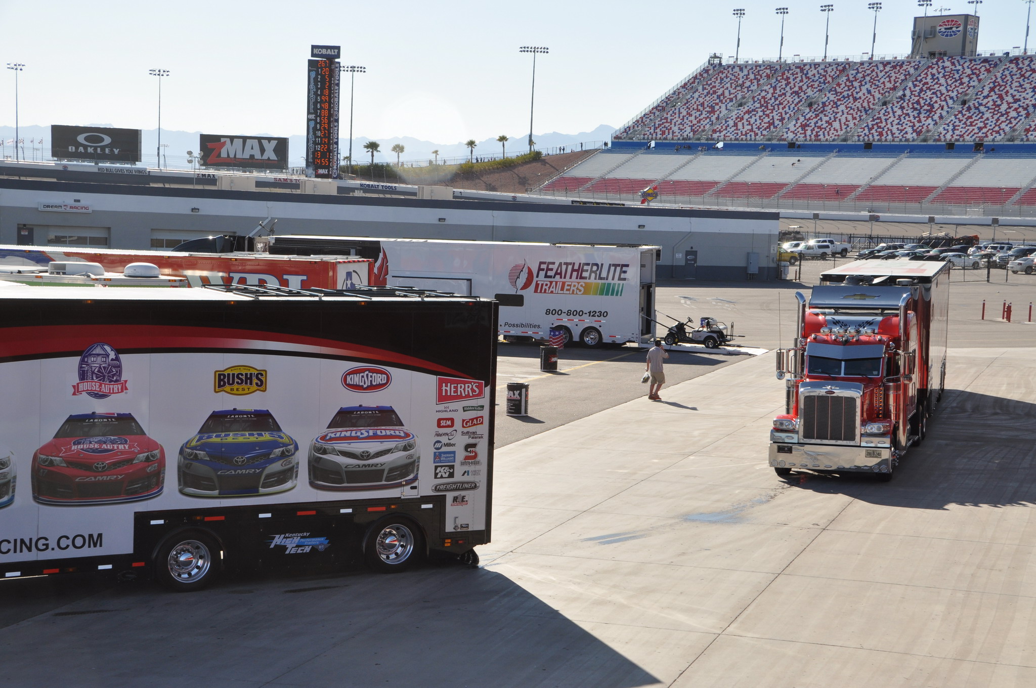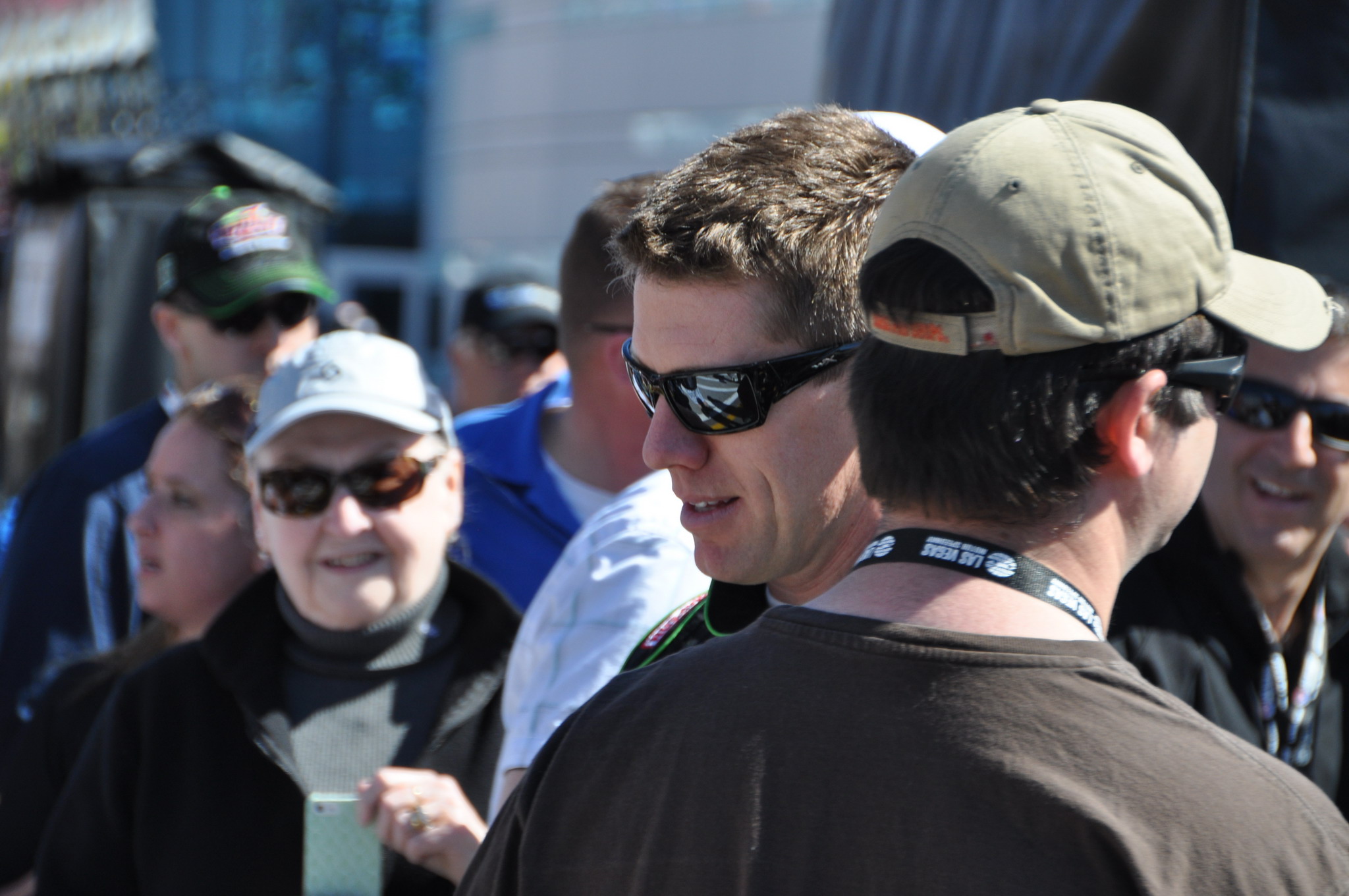 Et comme c'est de tradition le dimanche juste avant la course, et c'est aussi pour ça qu'on m'avait particulièrement conseillé la course de Vegas, toute la ligne des stands est ouverte aux fans. Les équipes, après l'inspection, y mettent les voitures, ce qui permet de toutes les voir de près, quelques animations sont organisées, avec un peu de chance, il est possible de voir les pilotes de près, le vrai spectacle de la Nascar pour les fans.