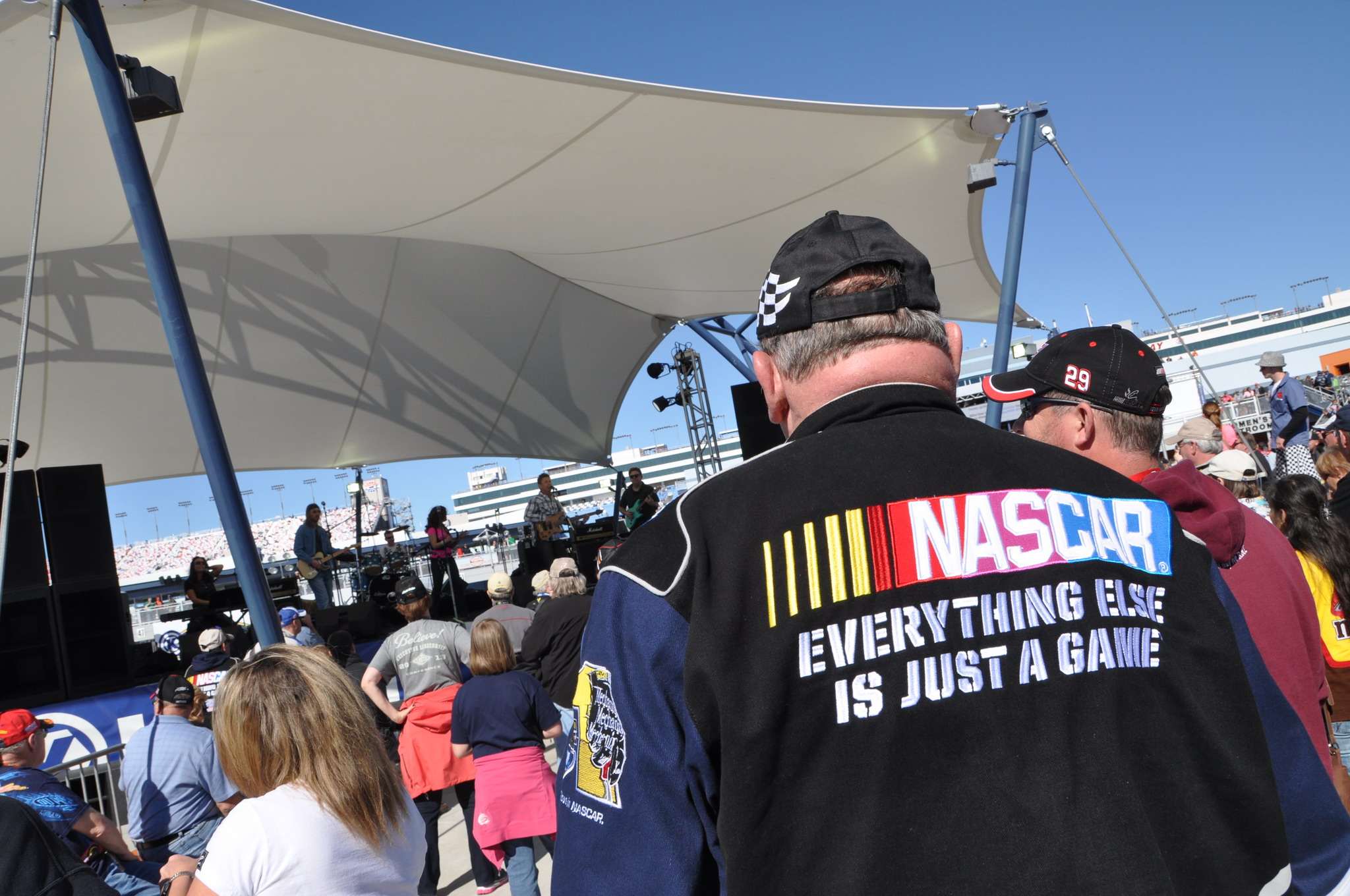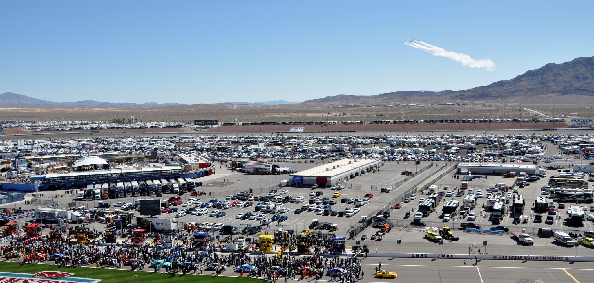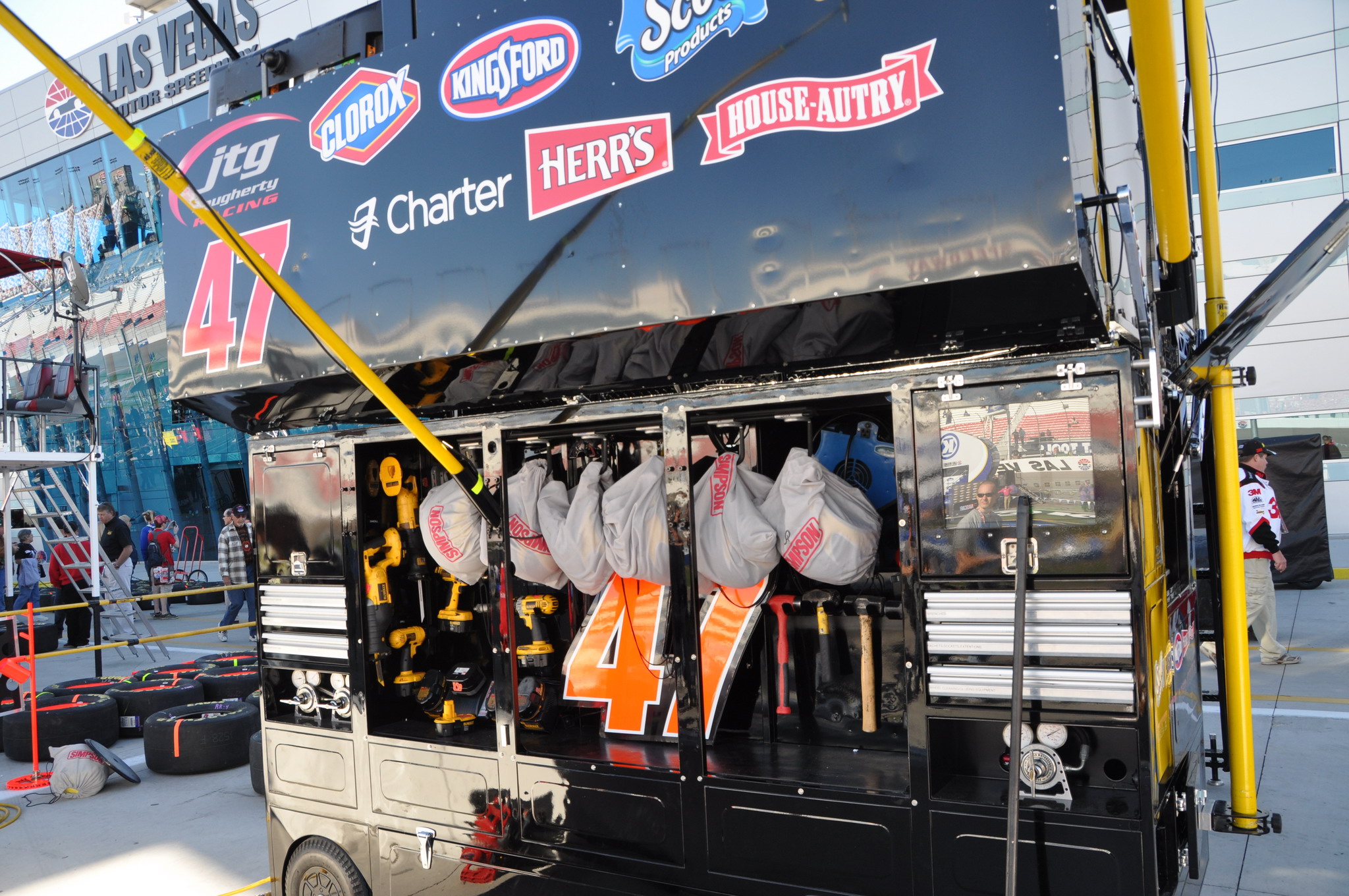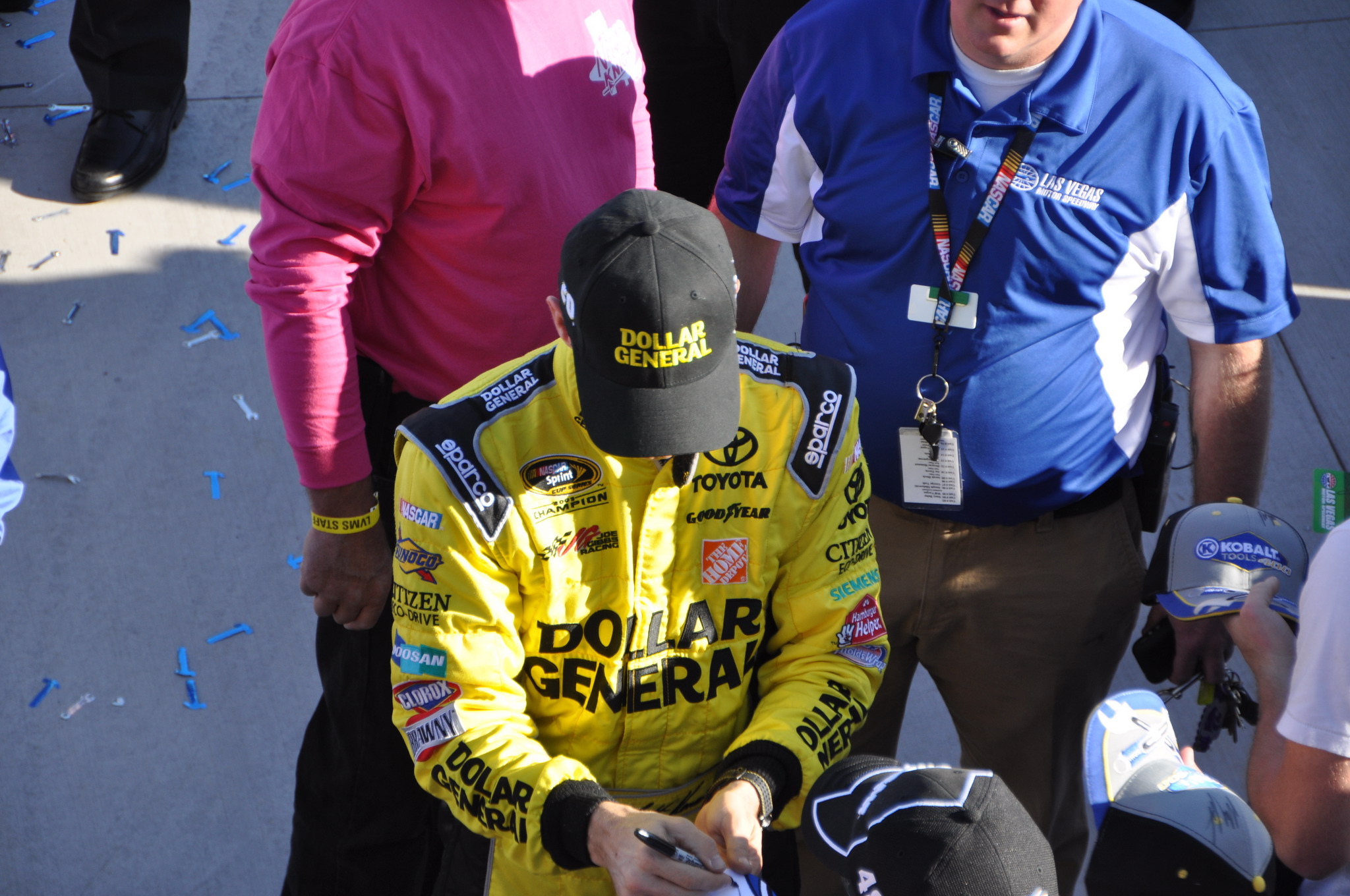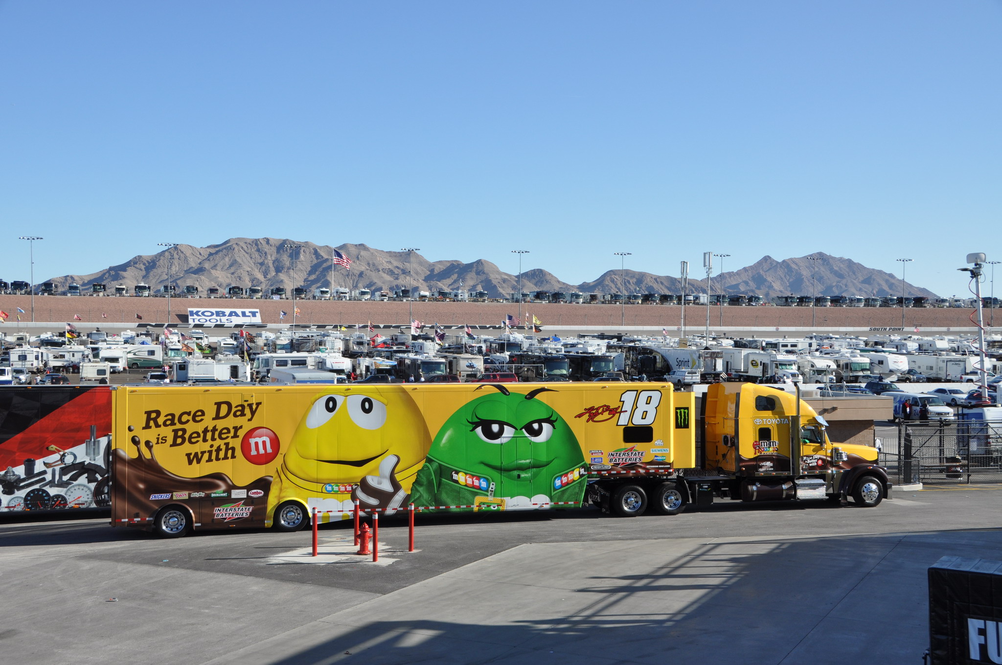 Et comme c'est de tradition le dimanche juste avant la course, et c'est aussi pour ça qu'on m'avait particulièrement conseillé la course de Vegas, toute la ligne des stands est ouverte aux fans. Les équipes, après l'inspection, y mettent les voitures, ce qui permet de toutes les voir de près, quelques animations sont organisées, avec un peu de chance, il est possible de voir les pilotes de près, le vrai spectacle de la Nascar pour les fans.