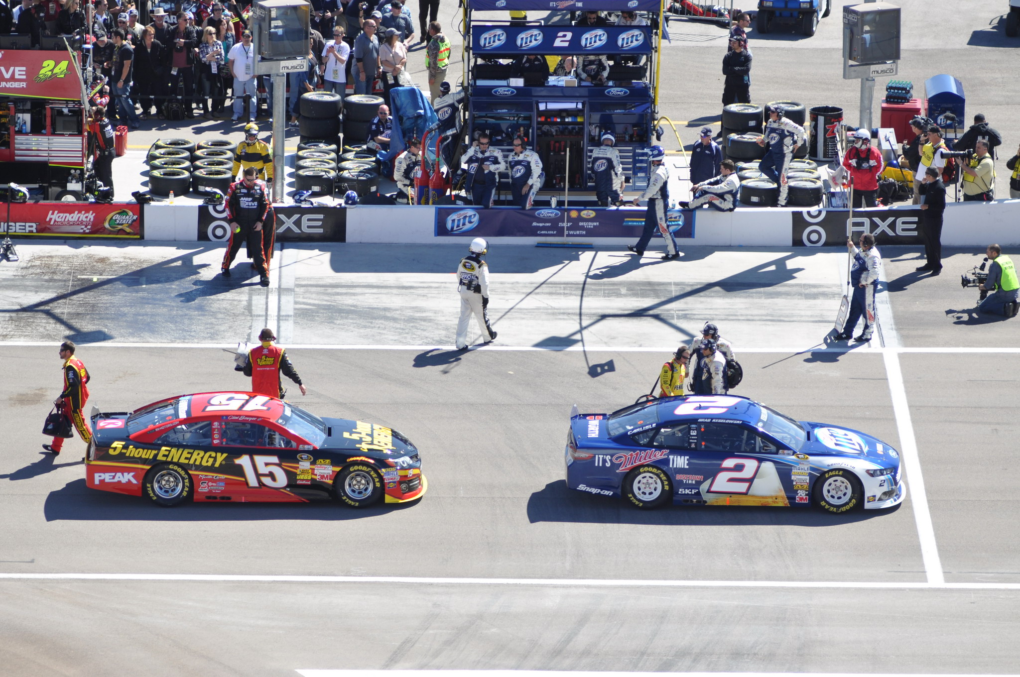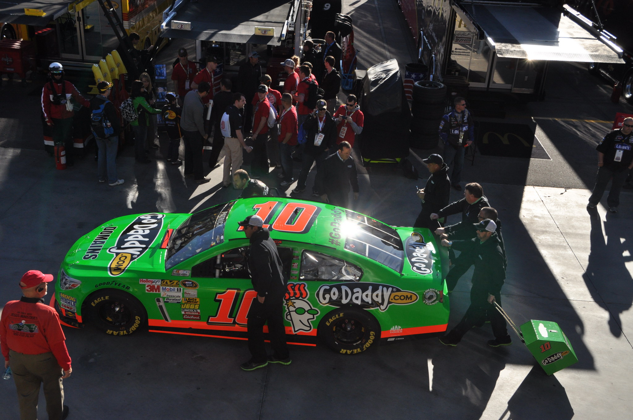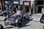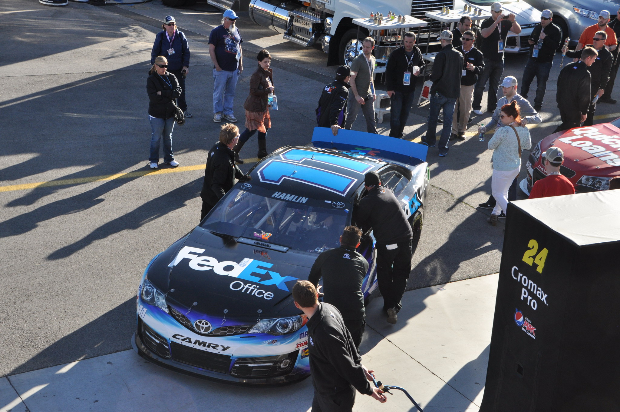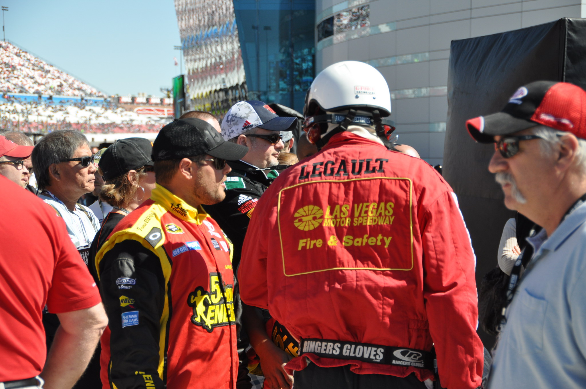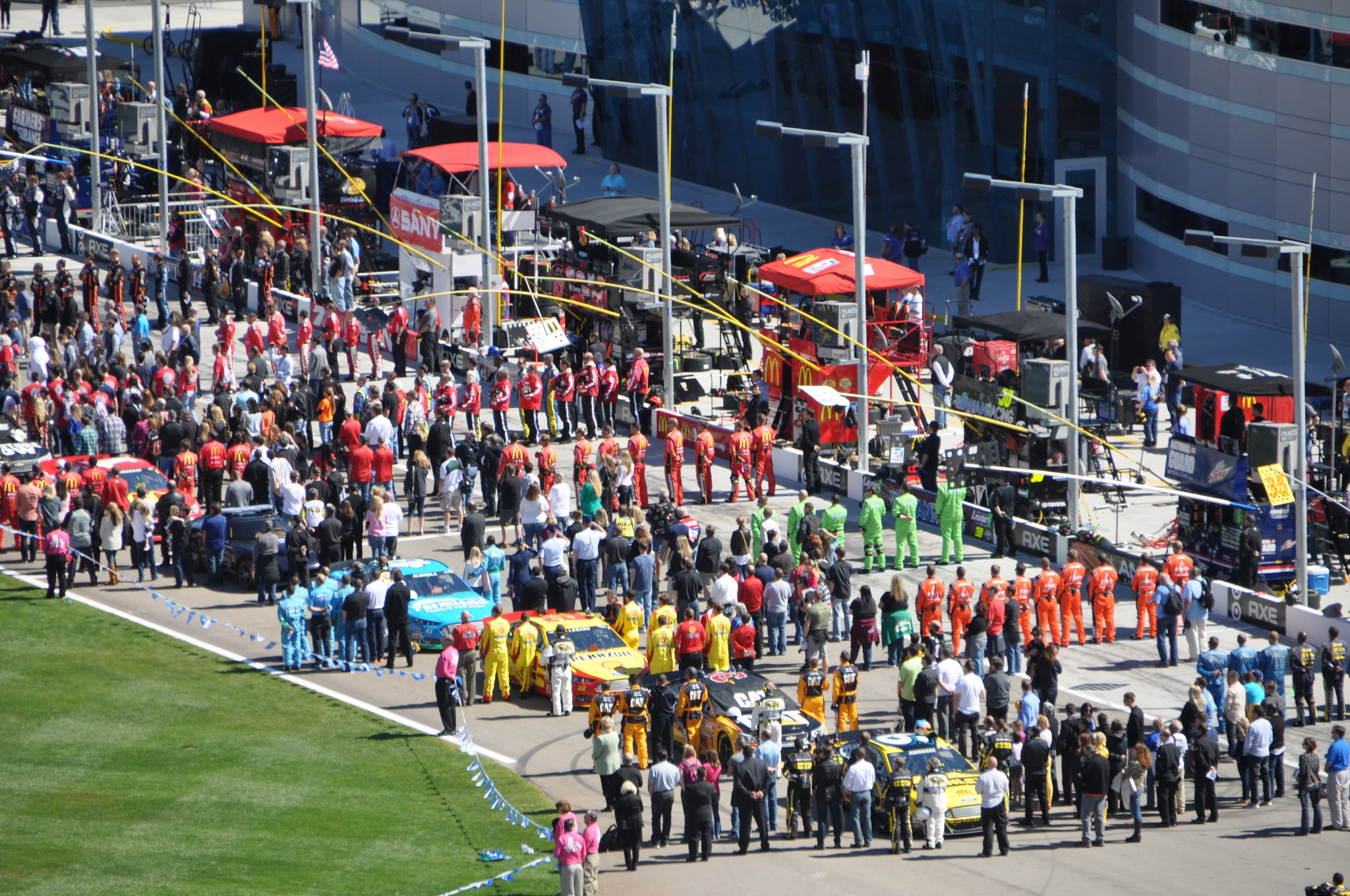 Et comme c'est de tradition le dimanche juste avant la course, et c'est aussi pour ça qu'on m'avait particulièrement conseillé la course de Vegas, toute la ligne des stands est ouverte aux fans. Les équipes, après l'inspection, y mettent les voitures, ce qui permet de toutes les voir de près, quelques animations sont organisées, avec un peu de chance, il est possible de voir les pilotes de près, le vrai spectacle de la Nascar pour les fans.