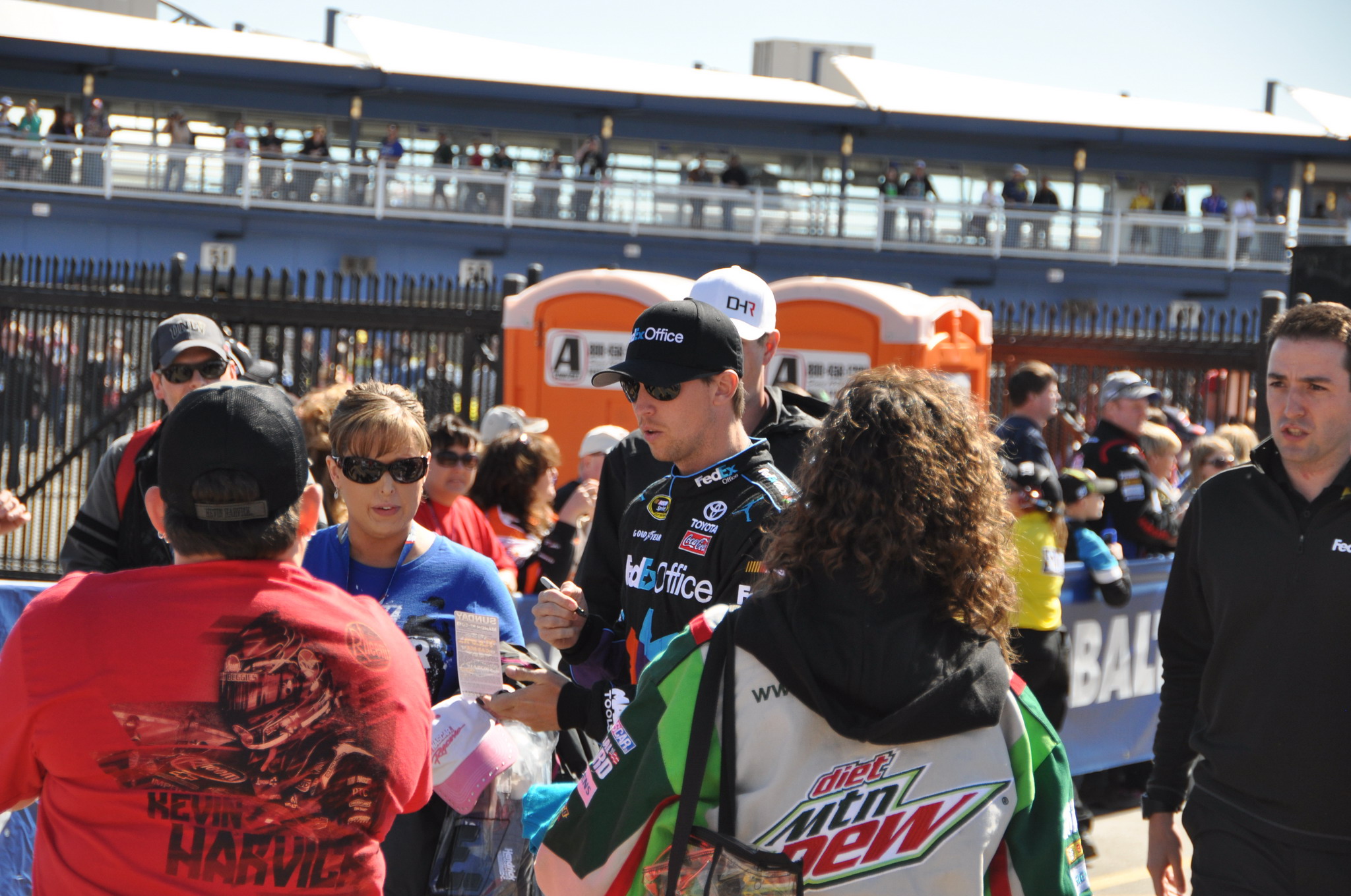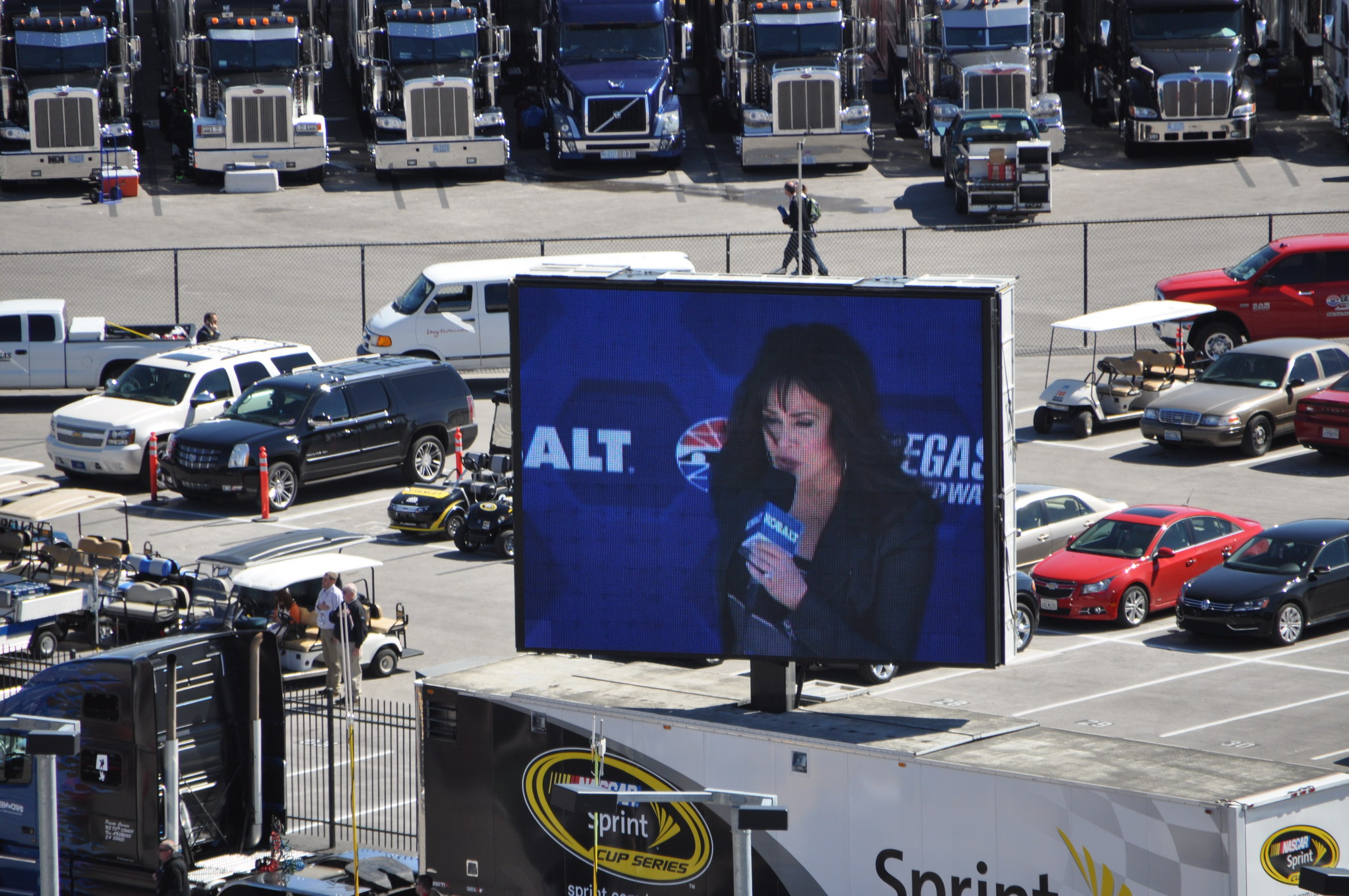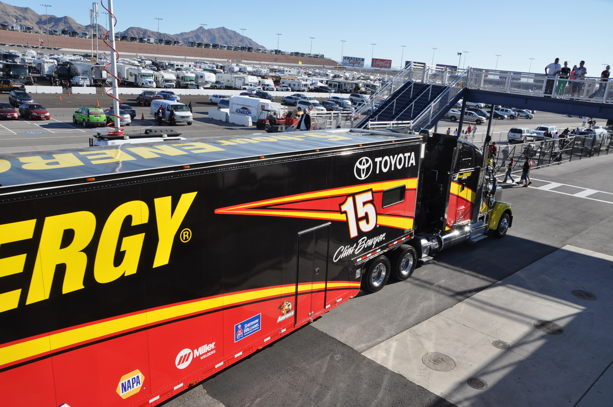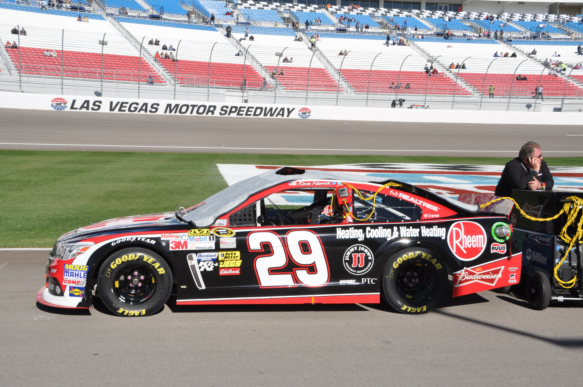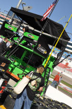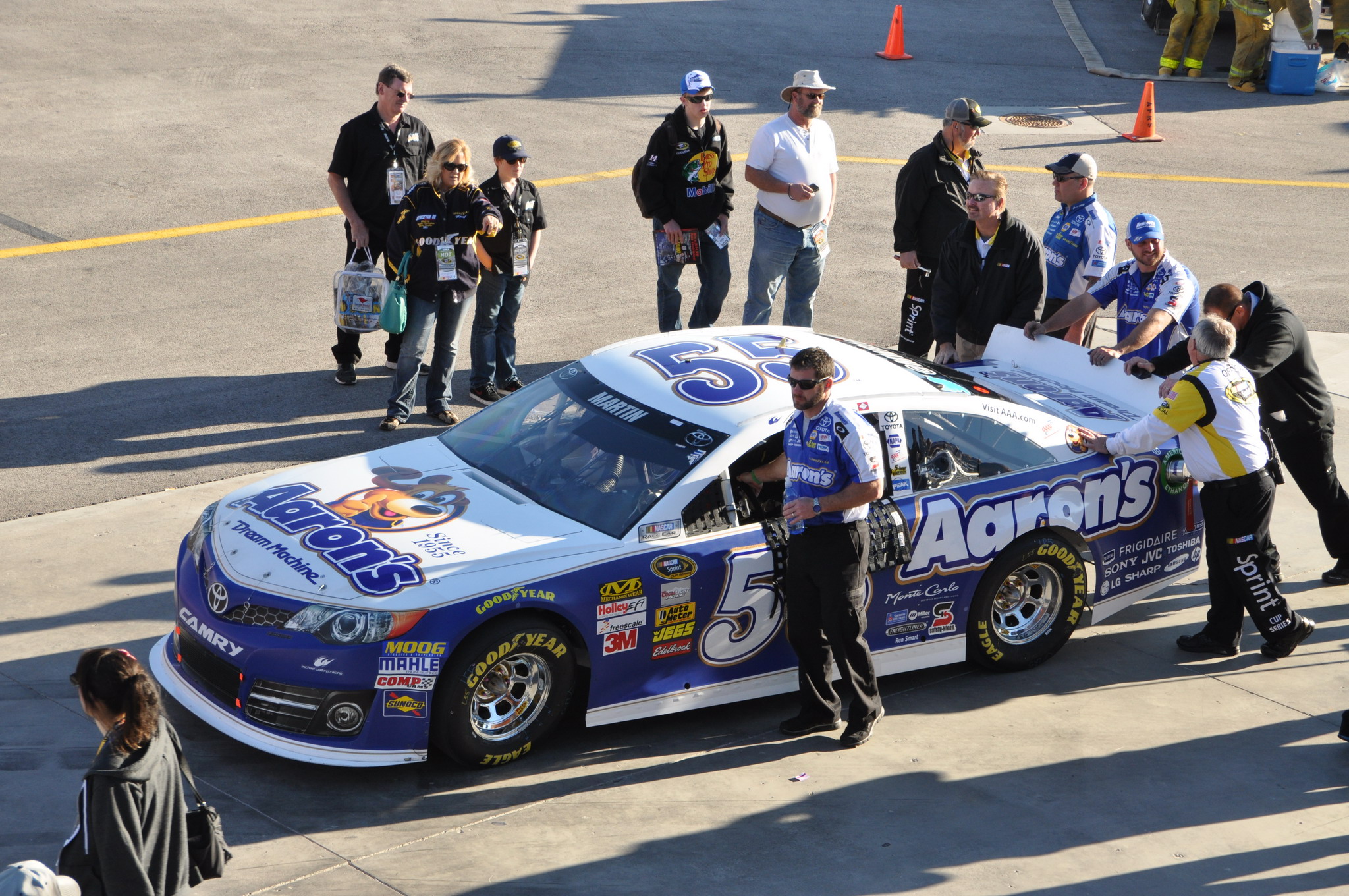Et comme c'est de tradition le dimanche juste avant la course, et c'est aussi pour ça qu'on m'avait particulièrement conseillé la course de Vegas, toute la ligne des stands est ouverte aux fans. Les équipes, après l'inspection, y mettent les voitures, ce qui permet de toutes les voir de près, quelques animations sont organisées, avec un peu de chance, il est possible de voir les pilotes de près, le vrai spectacle de la Nascar pour les fans.