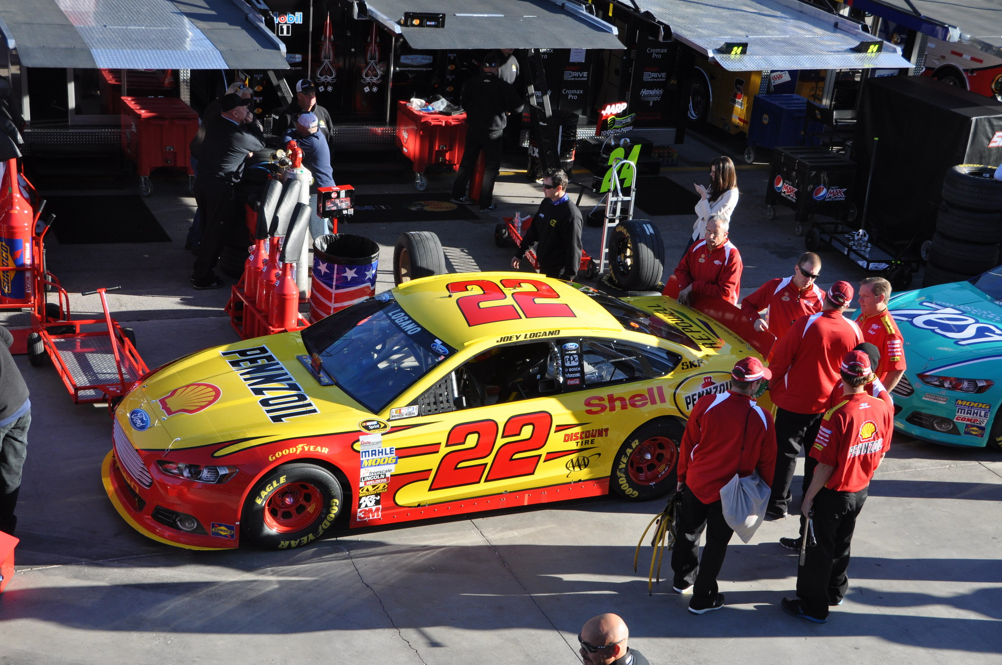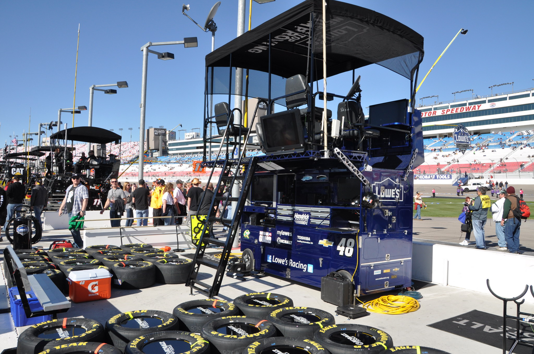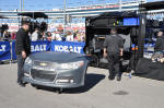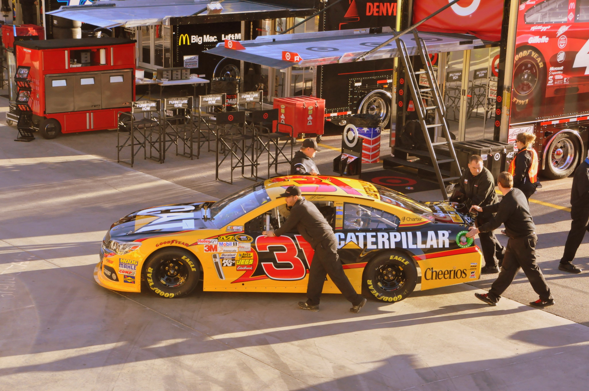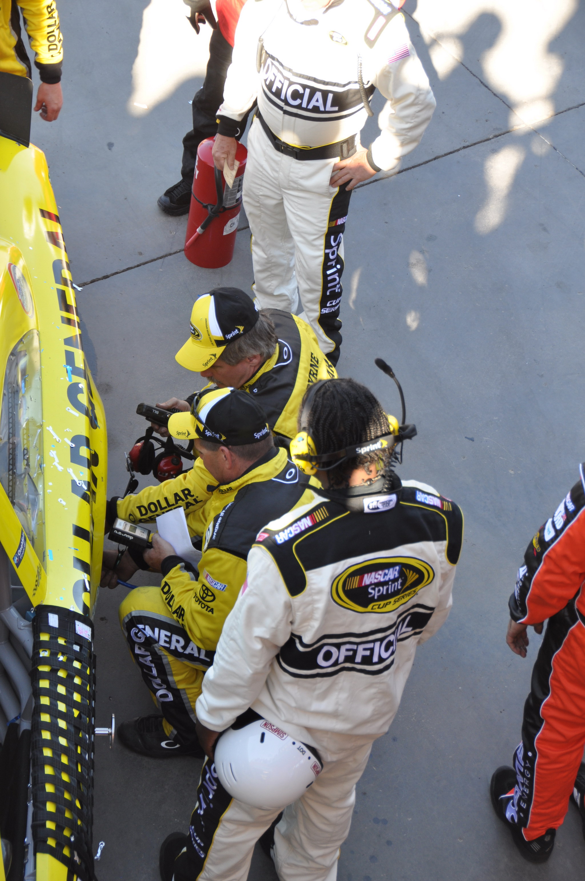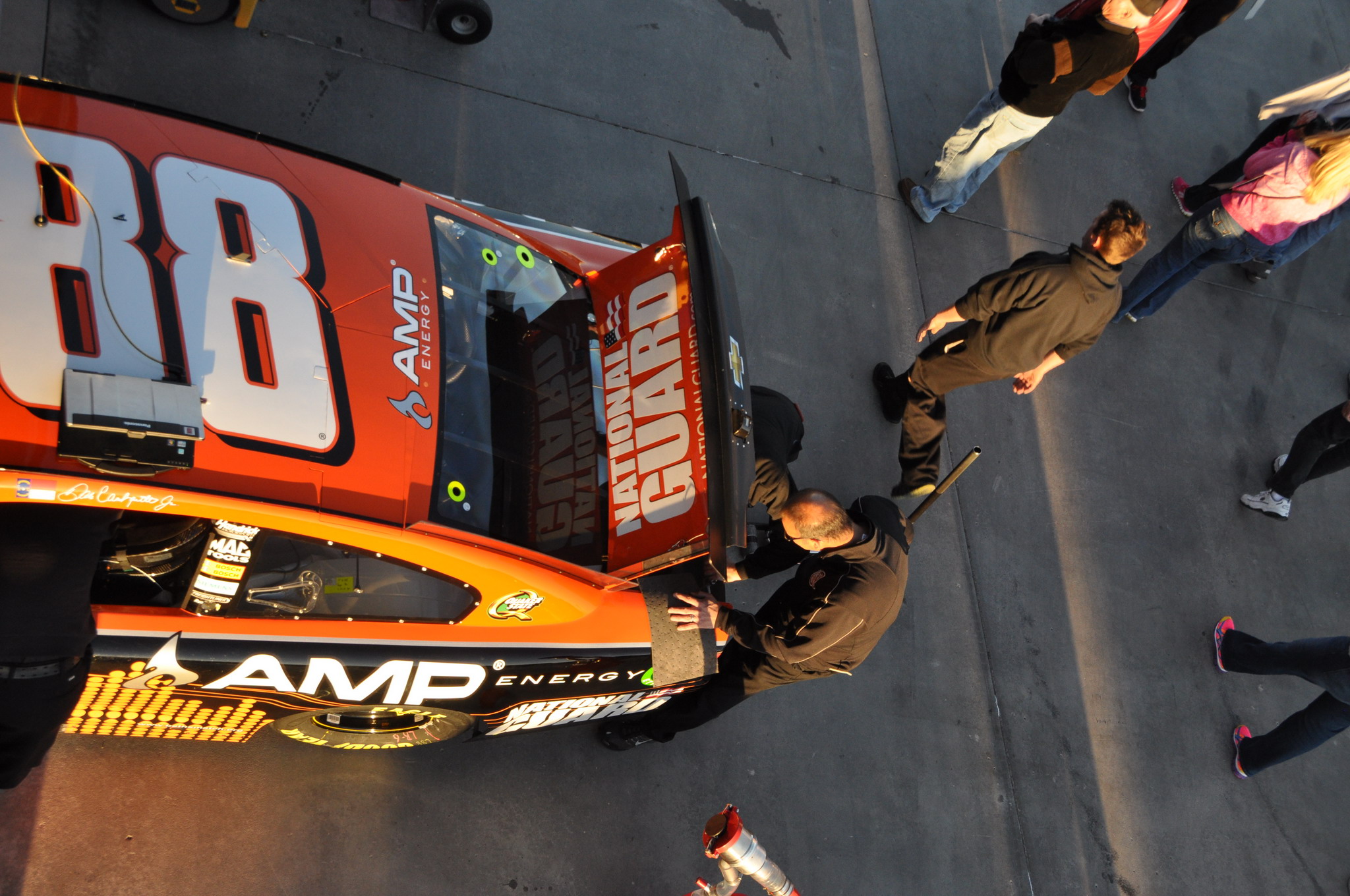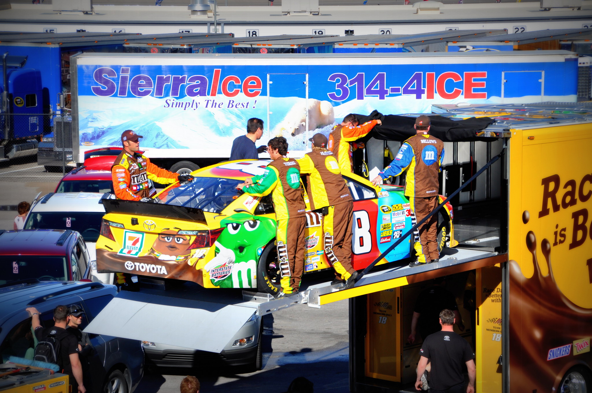 Et comme c'est de tradition le dimanche juste avant la course, et c'est aussi pour ça qu'on m'avait particulièrement conseillé la course de Vegas, toute la ligne des stands est ouverte aux fans. Les équipes, après l'inspection, y mettent les voitures, ce qui permet de toutes les voir de près, quelques animations sont organisées, avec un peu de chance, il est possible de voir les pilotes de près, le vrai spectacle de la Nascar pour les fans.