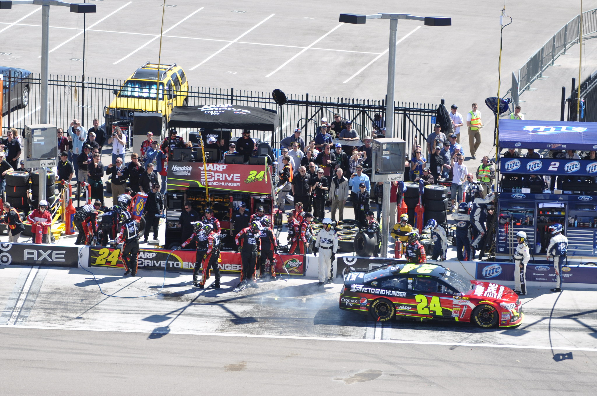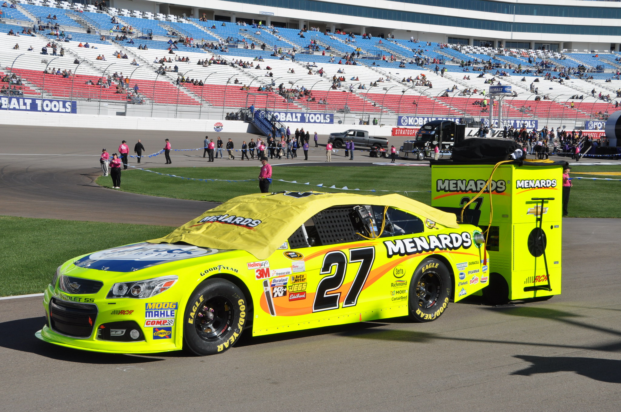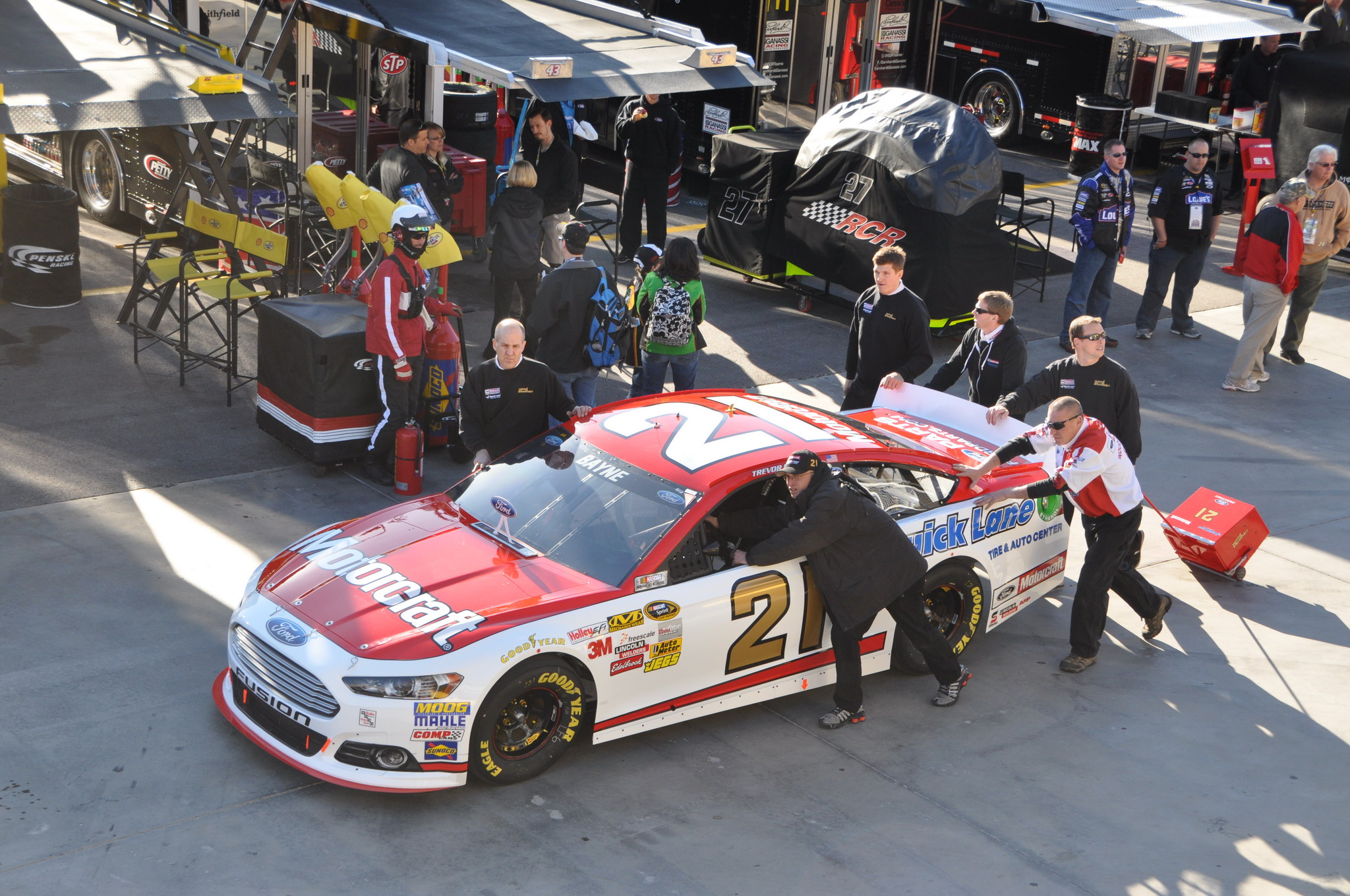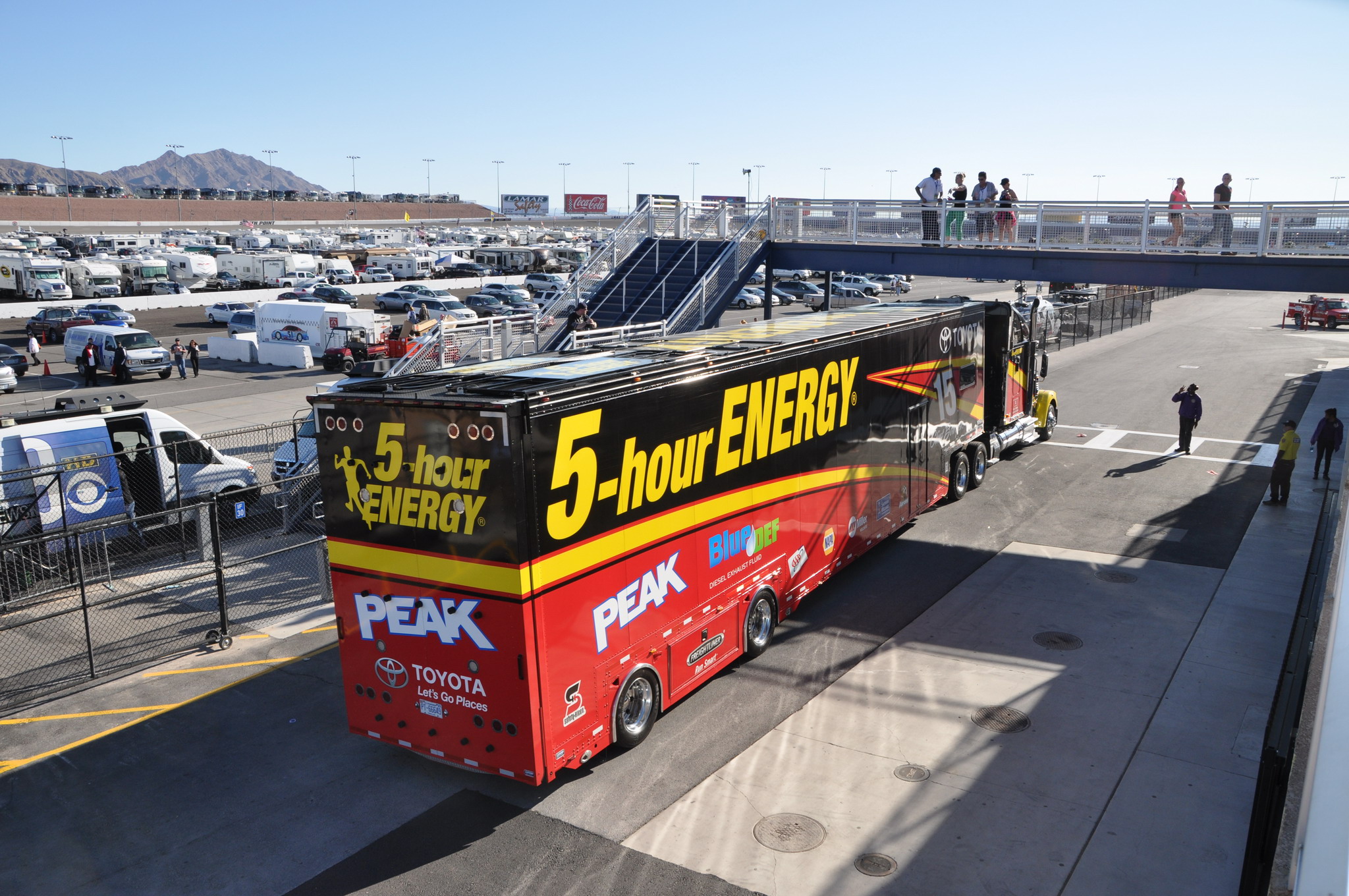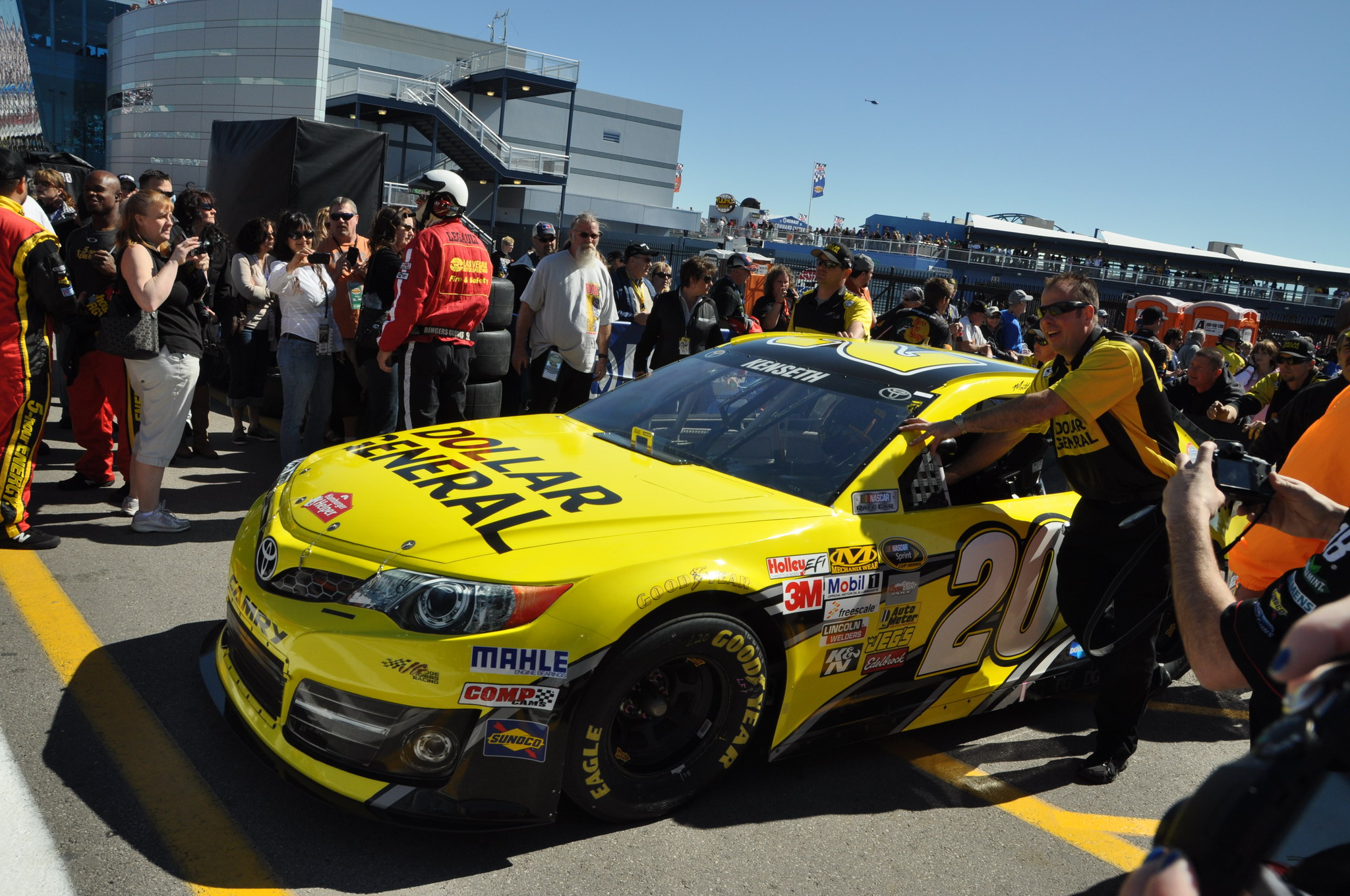 Et comme c'est de tradition le dimanche juste avant la course, et c'est aussi pour ça qu'on m'avait particulièrement conseillé la course de Vegas, toute la ligne des stands est ouverte aux fans. Les équipes, après l'inspection, y mettent les voitures, ce qui permet de toutes les voir de près, quelques animations sont organisées, avec un peu de chance, il est possible de voir les pilotes de près, le vrai spectacle de la Nascar pour les fans.