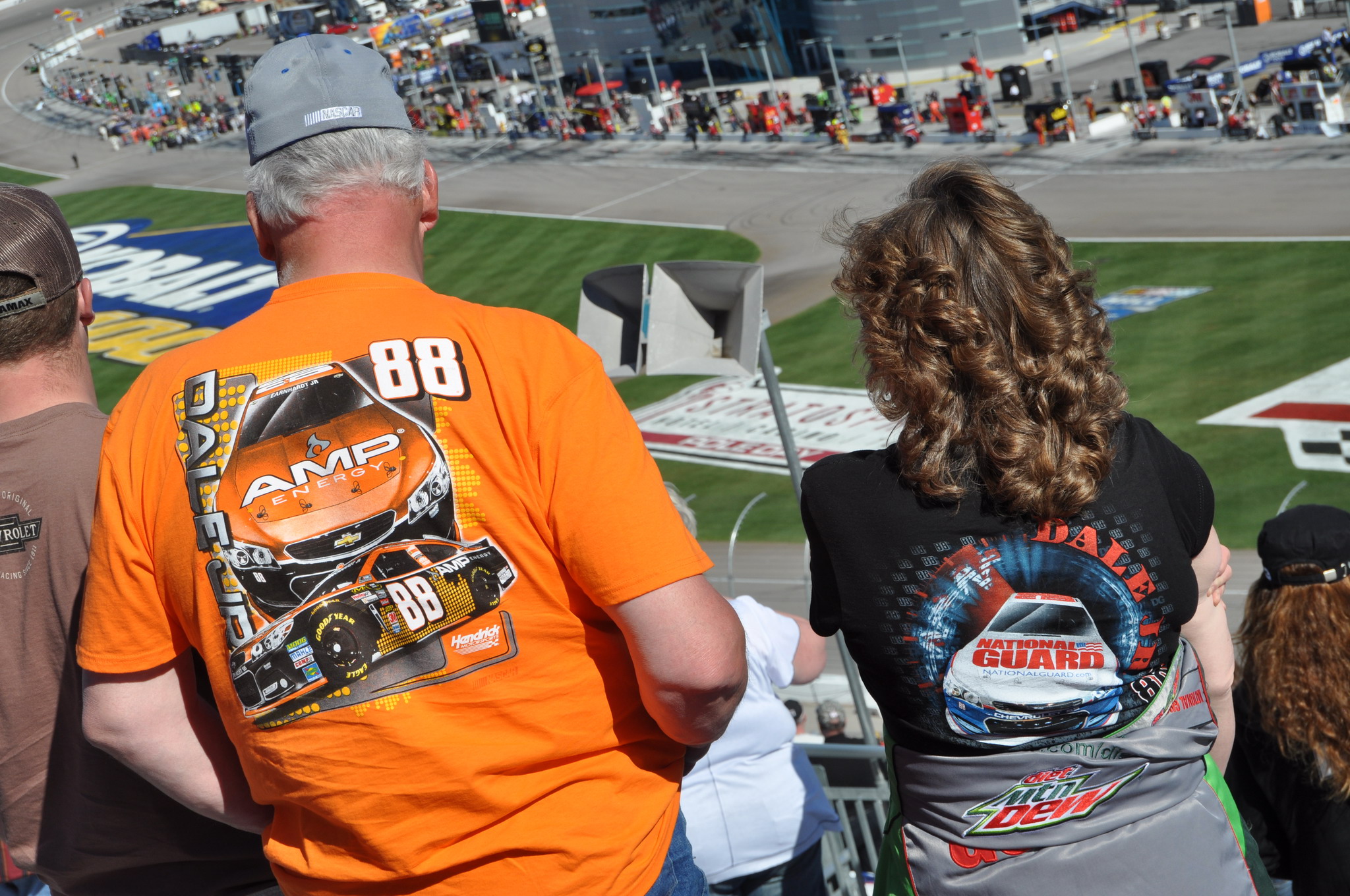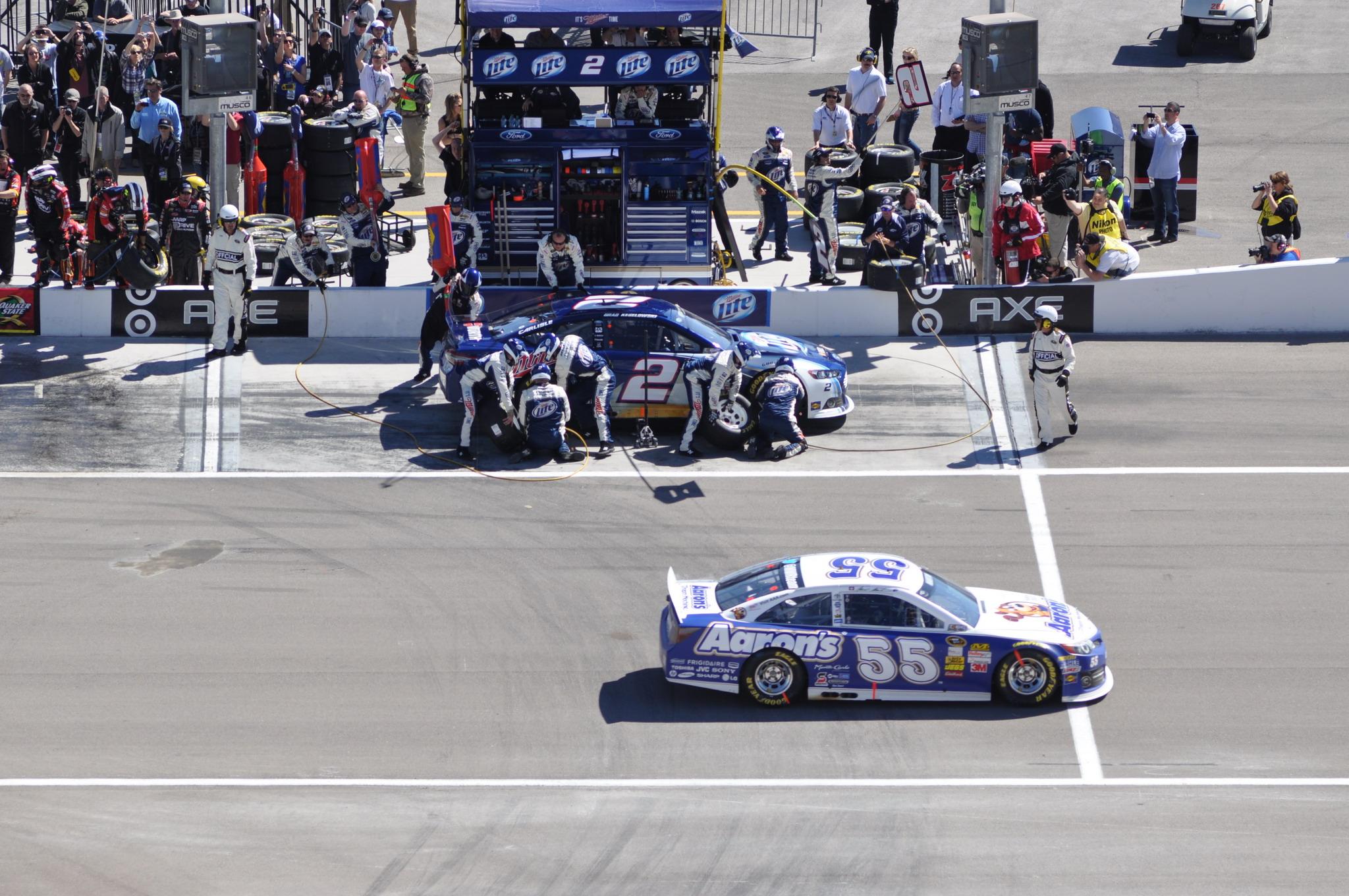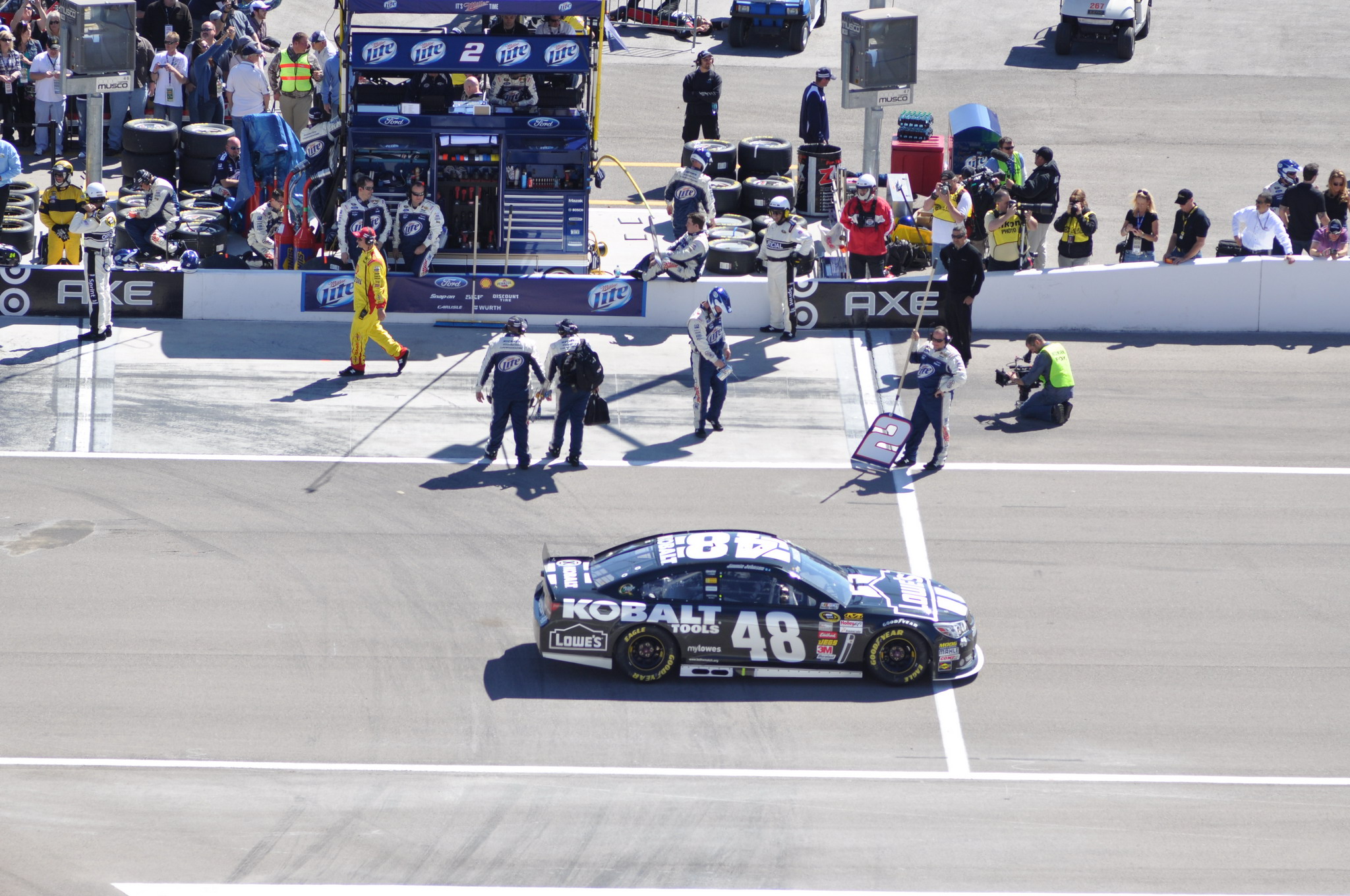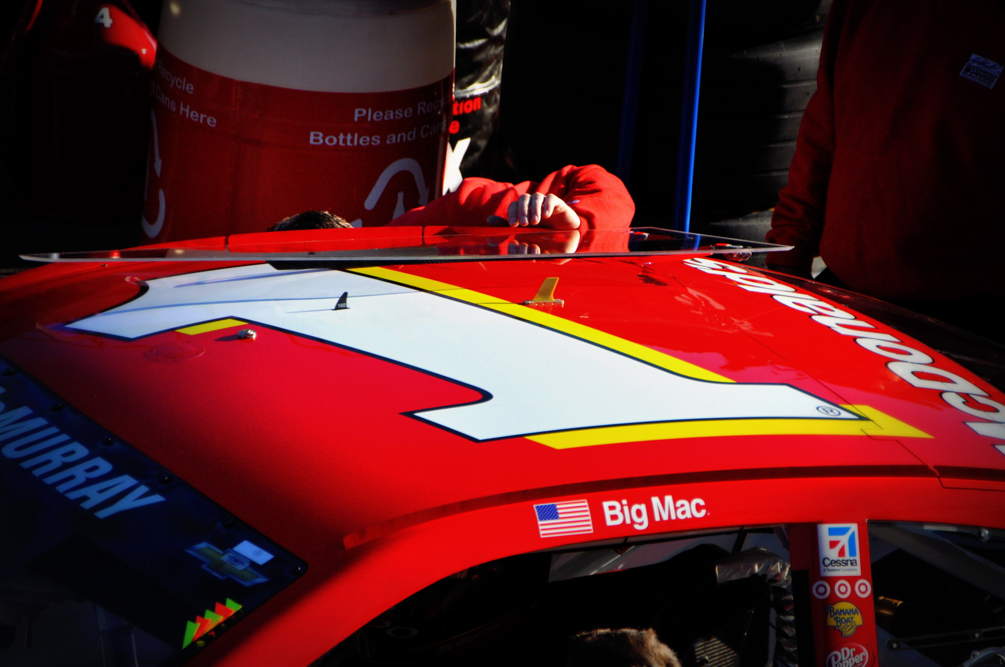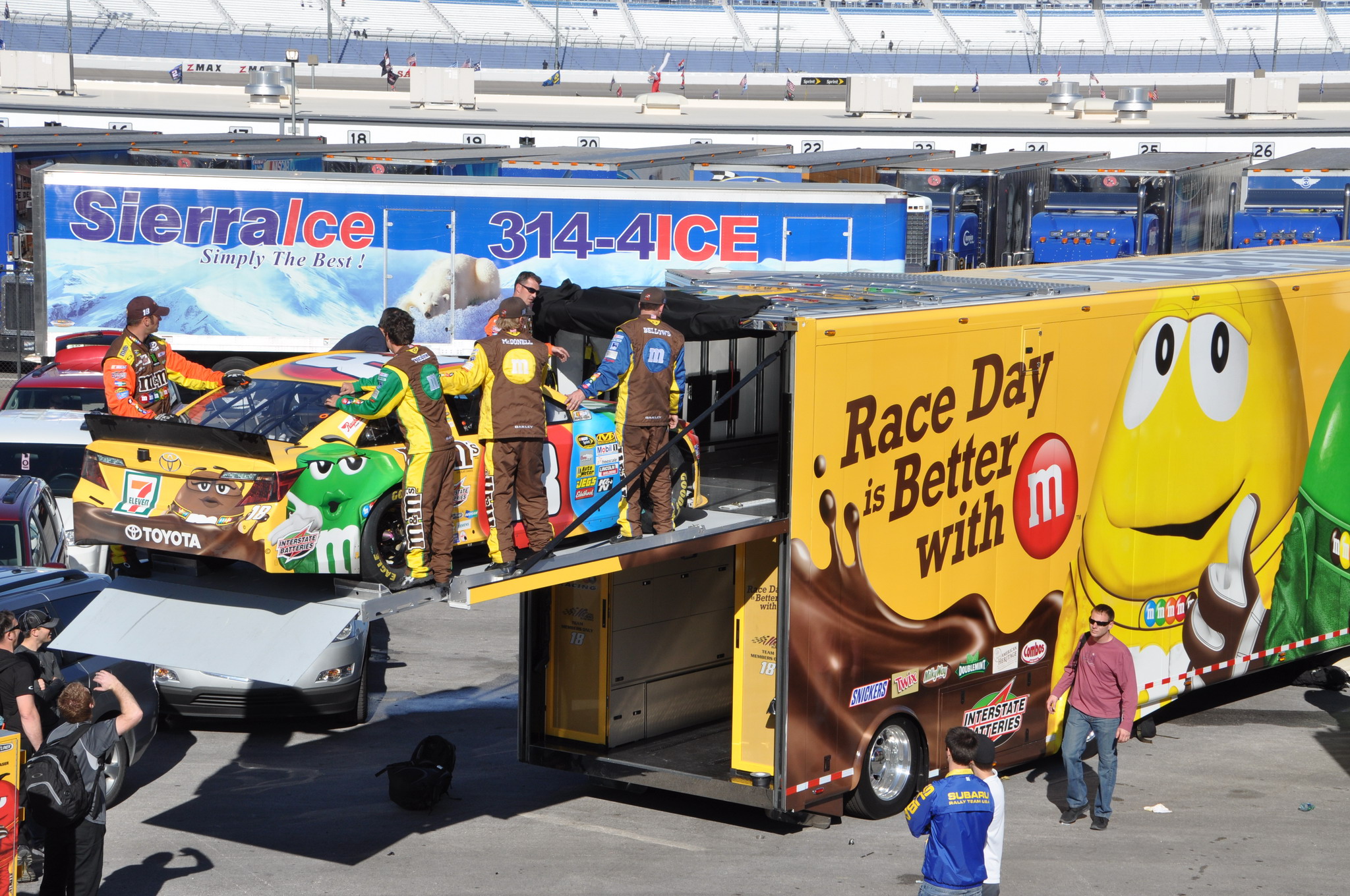 Et comme c'est de tradition le dimanche juste avant la course, et c'est aussi pour ça qu'on m'avait particulièrement conseillé la course de Vegas, toute la ligne des stands est ouverte aux fans. Les équipes, après l'inspection, y mettent les voitures, ce qui permet de toutes les voir de près, quelques animations sont organisées, avec un peu de chance, il est possible de voir les pilotes de près, le vrai spectacle de la Nascar pour les fans.