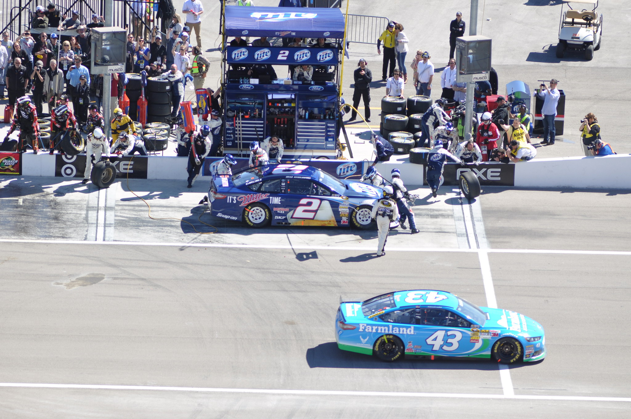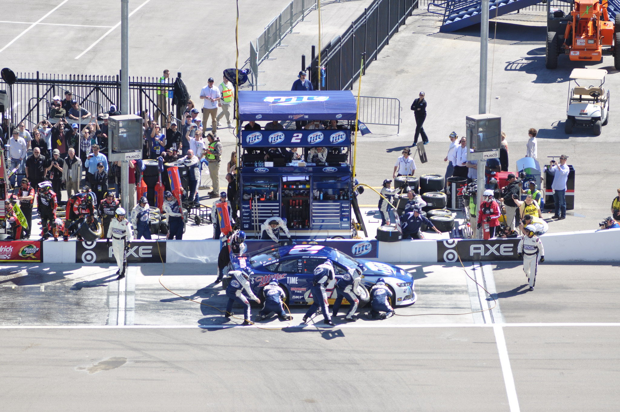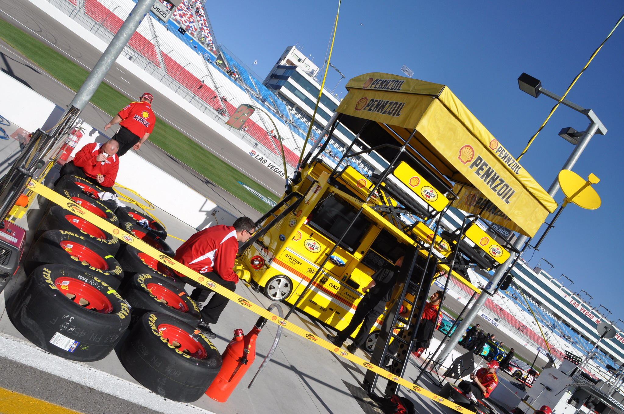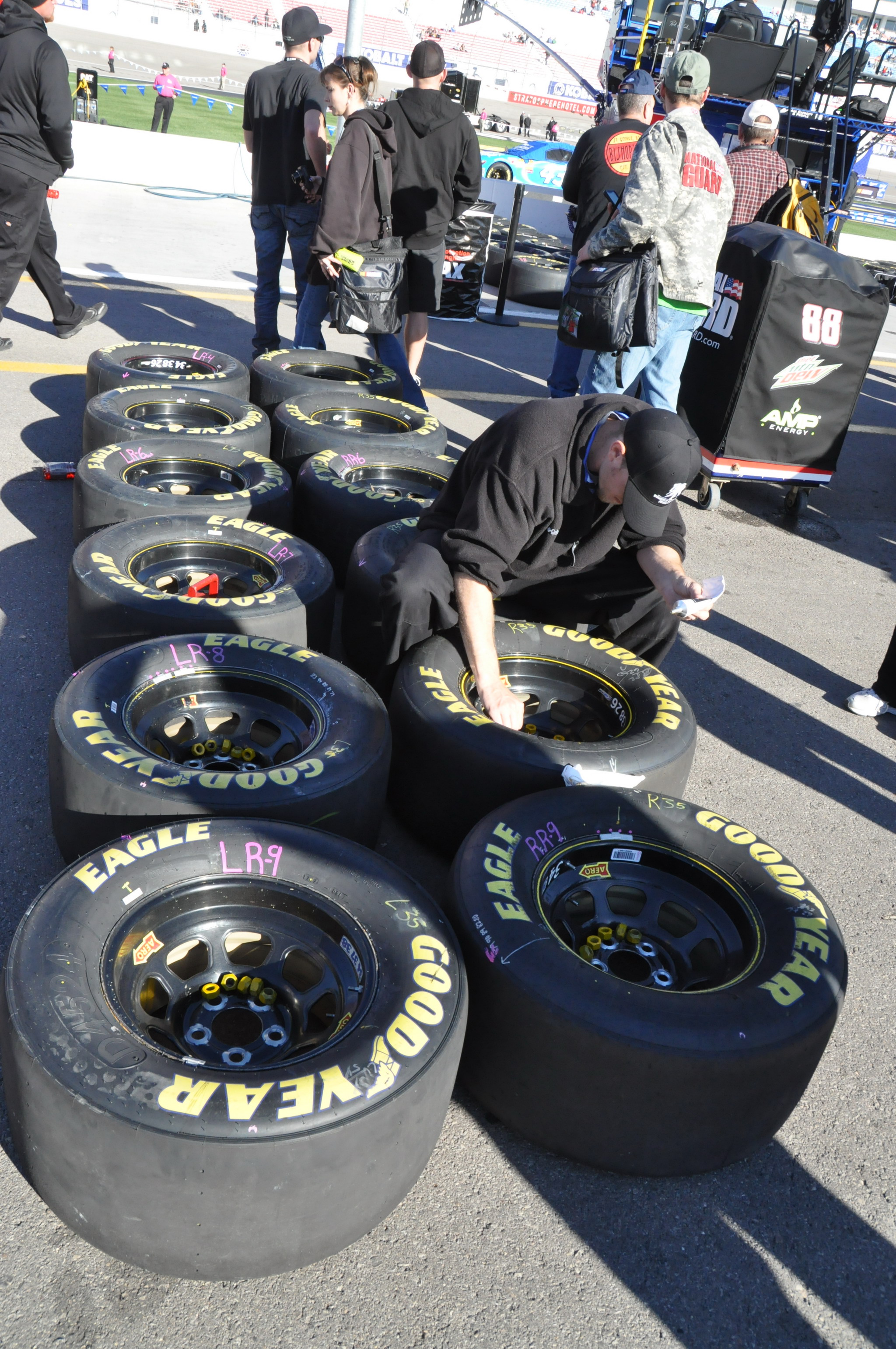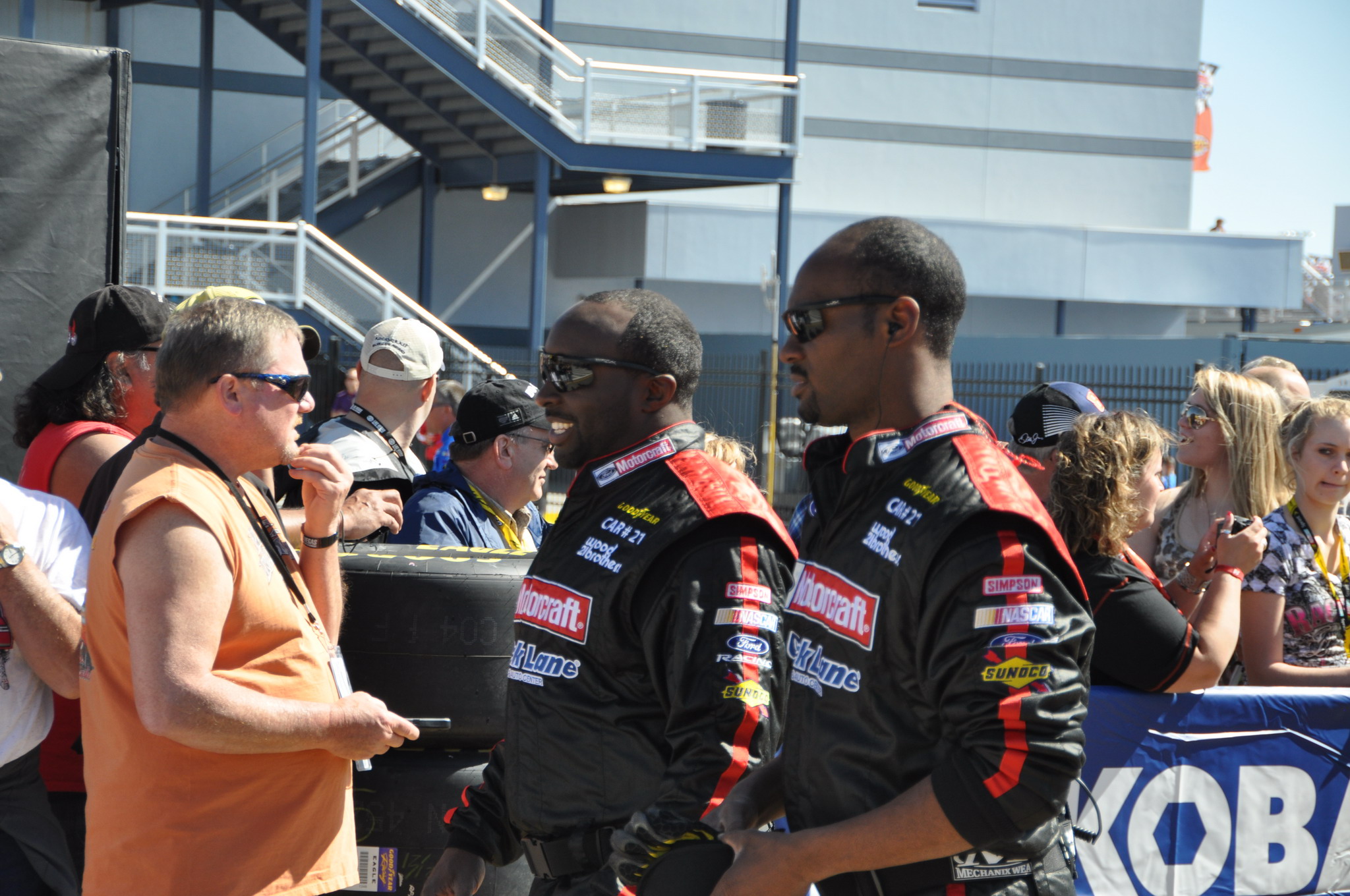 Et comme c'est de tradition le dimanche juste avant la course, et c'est aussi pour ça qu'on m'avait particulièrement conseillé la course de Vegas, toute la ligne des stands est ouverte aux fans. Les équipes, après l'inspection, y mettent les voitures, ce qui permet de toutes les voir de près, quelques animations sont organisées, avec un peu de chance, il est possible de voir les pilotes de près, le vrai spectacle de la Nascar pour les fans.