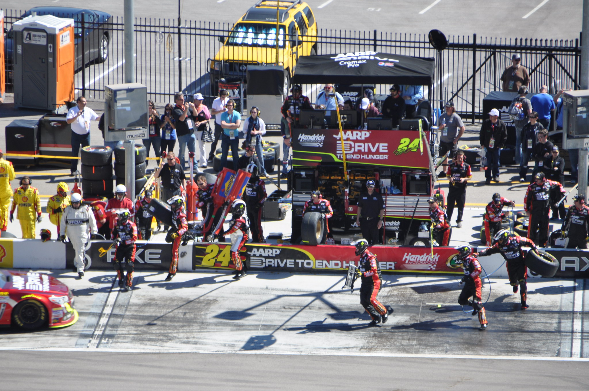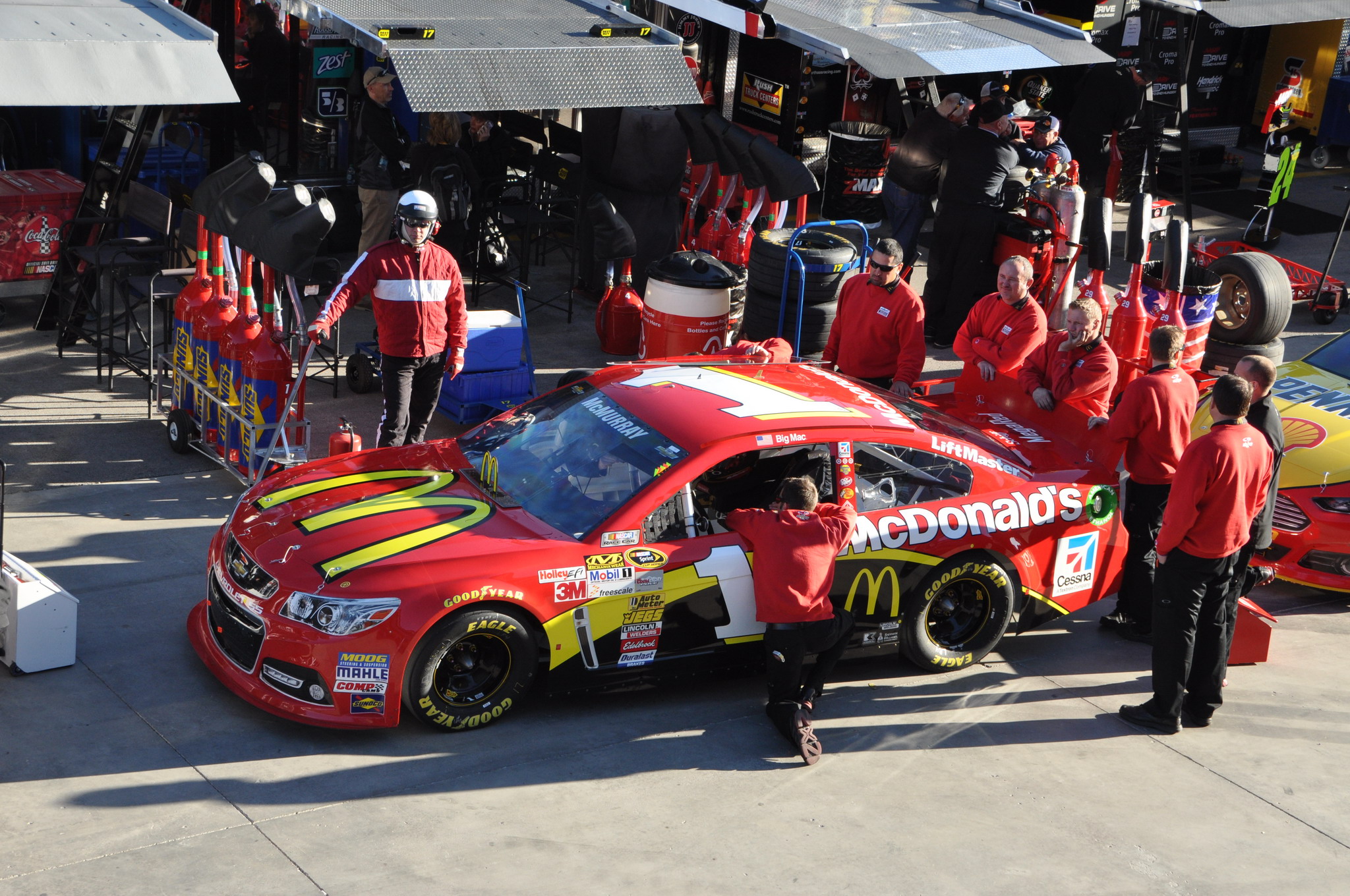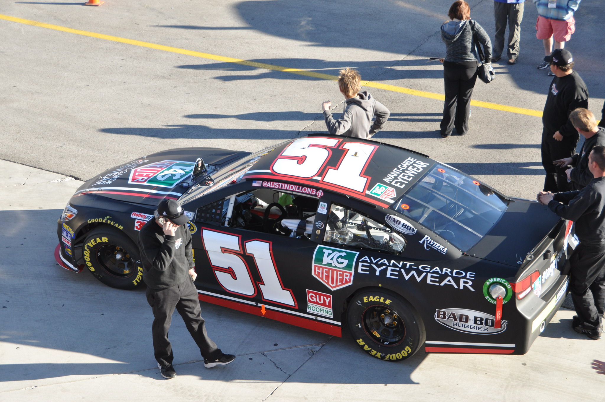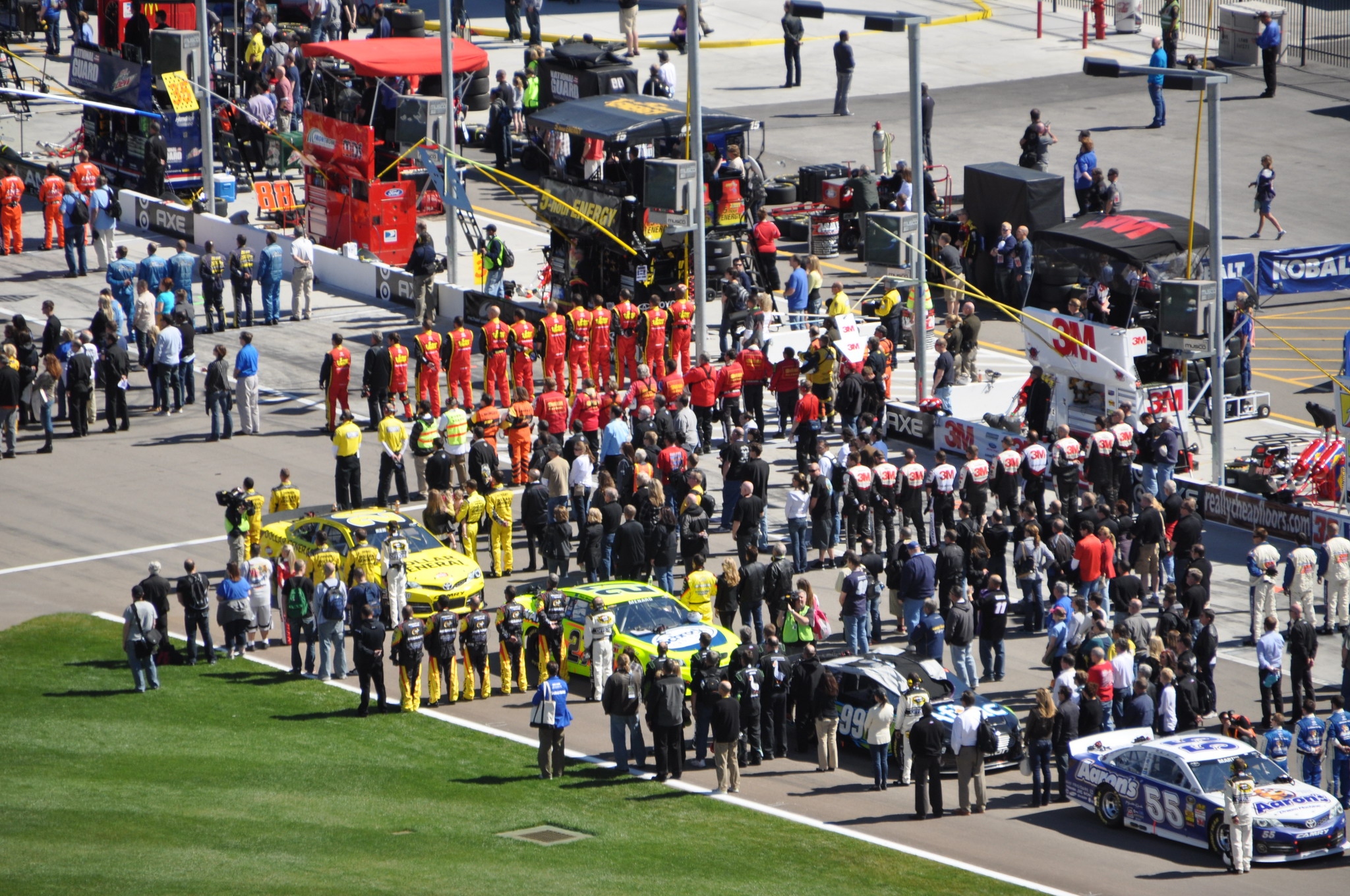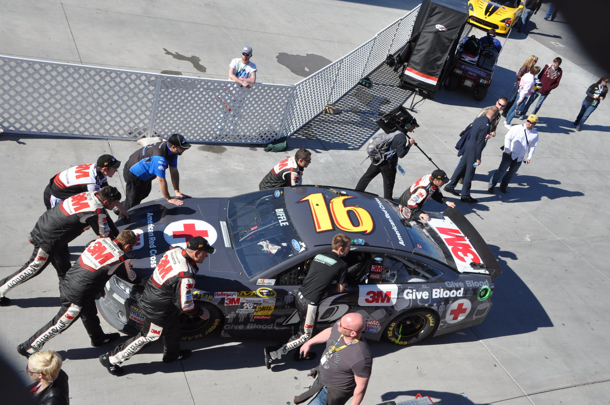 Et comme c'est de tradition le dimanche juste avant la course, et c'est aussi pour ça qu'on m'avait particulièrement conseillé la course de Vegas, toute la ligne des stands est ouverte aux fans. Les équipes, après l'inspection, y mettent les voitures, ce qui permet de toutes les voir de près, quelques animations sont organisées, avec un peu de chance, il est possible de voir les pilotes de près, le vrai spectacle de la Nascar pour les fans.