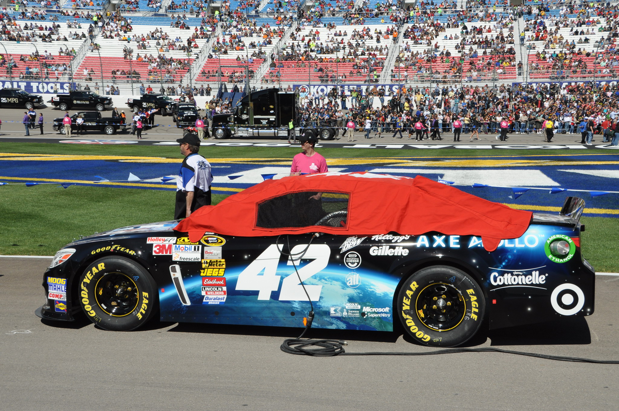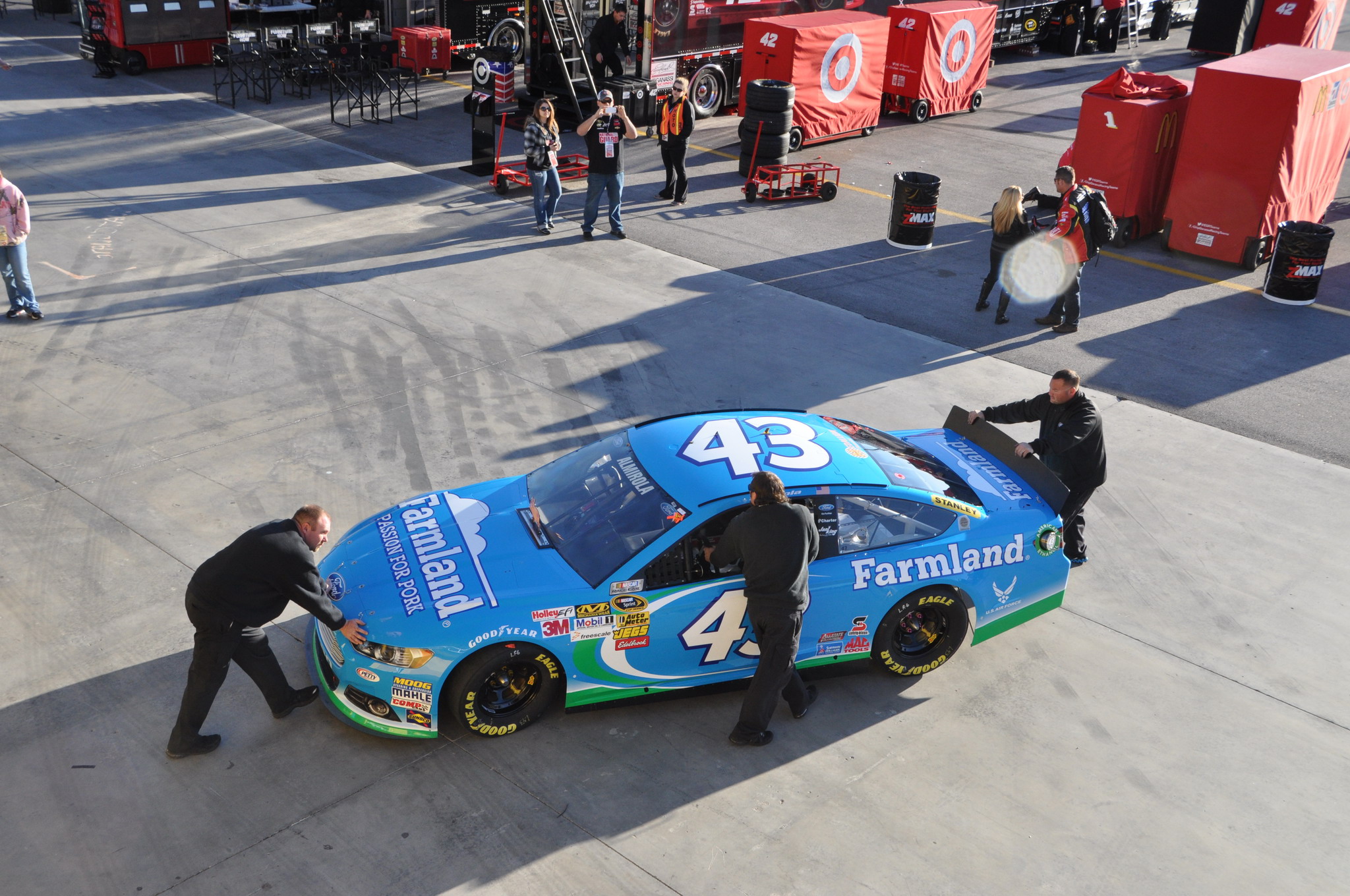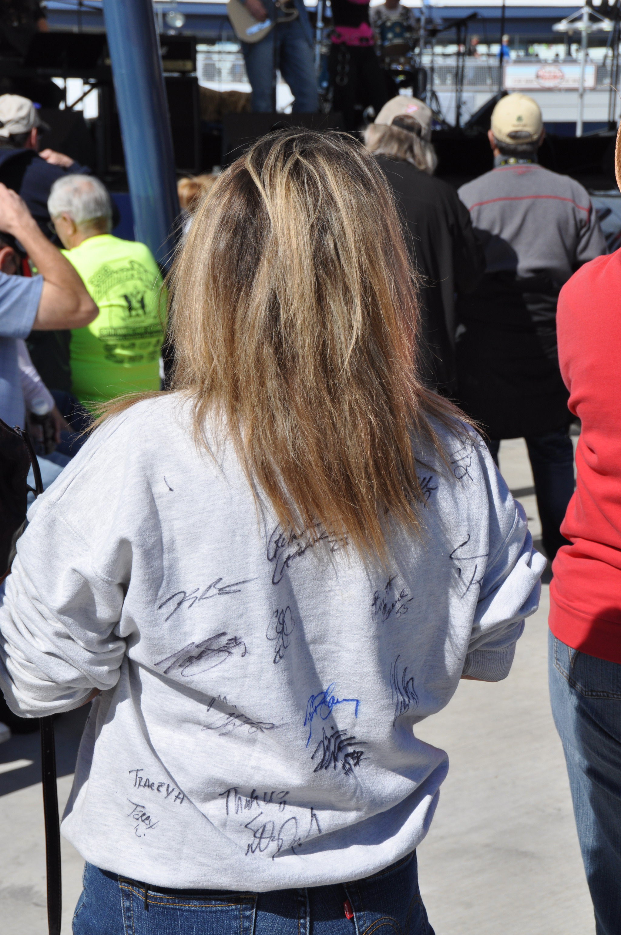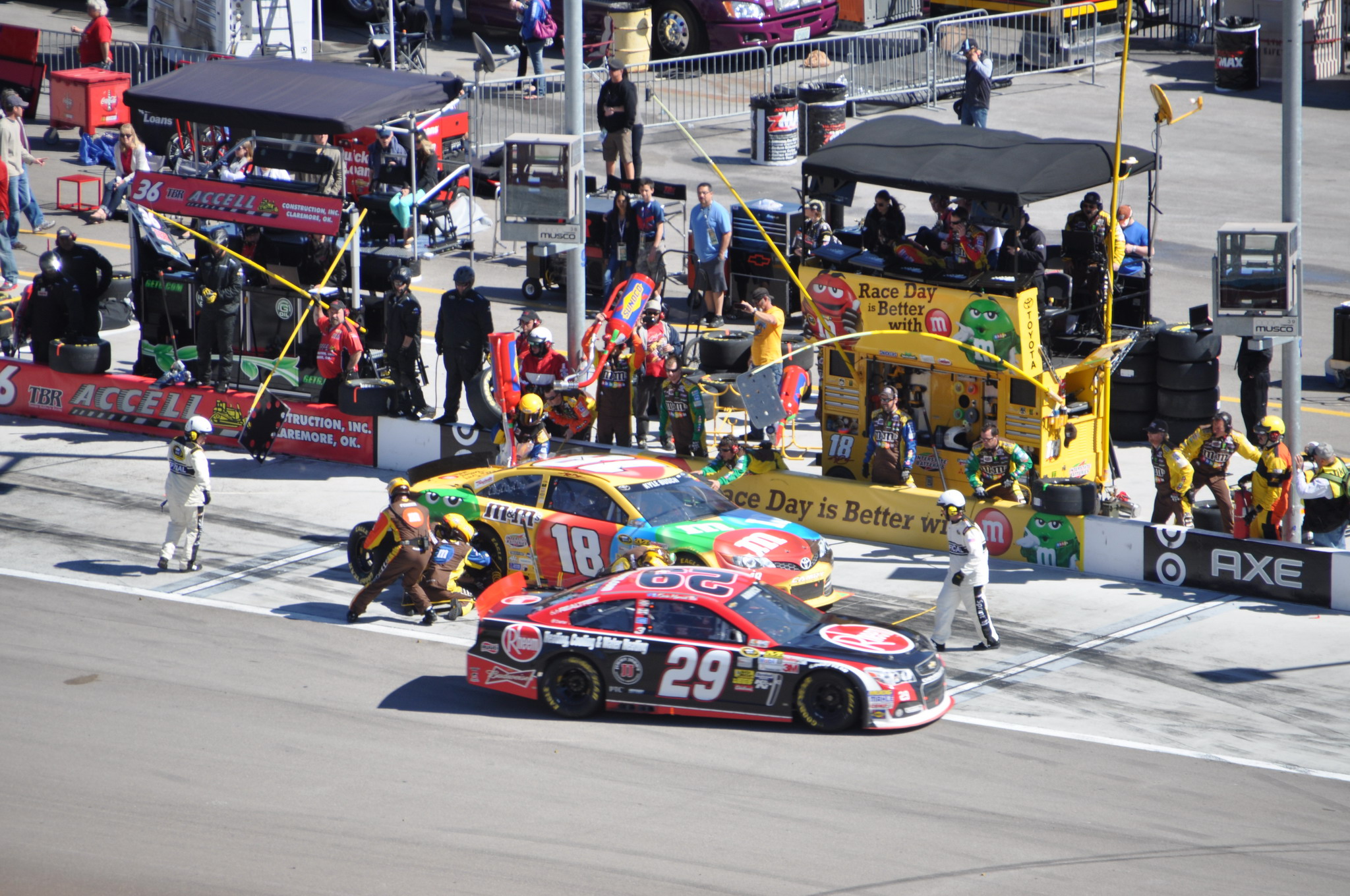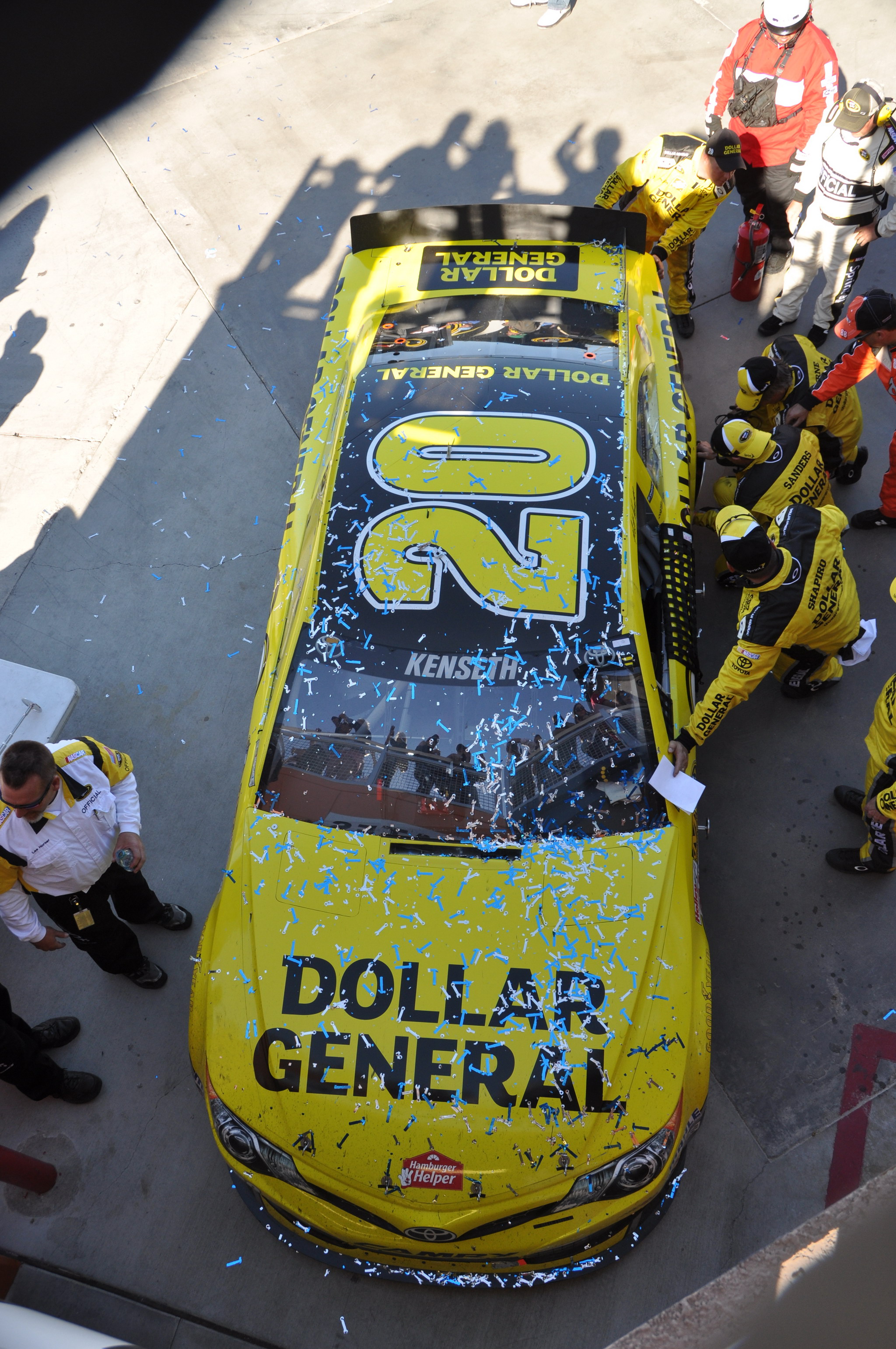 Et comme c'est de tradition le dimanche juste avant la course, et c'est aussi pour ça qu'on m'avait particulièrement conseillé la course de Vegas, toute la ligne des stands est ouverte aux fans. Les équipes, après l'inspection, y mettent les voitures, ce qui permet de toutes les voir de près, quelques animations sont organisées, avec un peu de chance, il est possible de voir les pilotes de près, le vrai spectacle de la Nascar pour les fans.