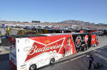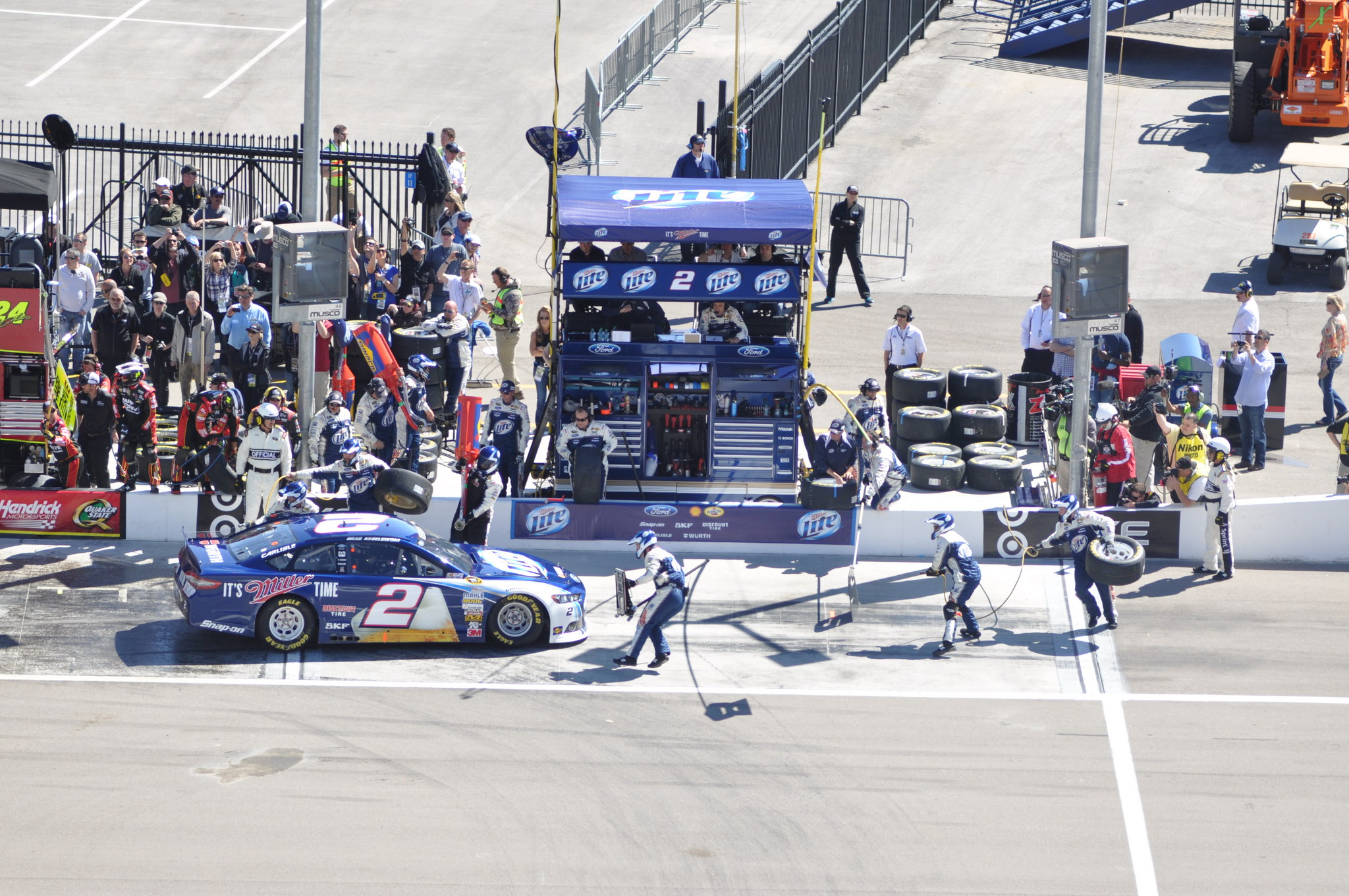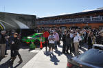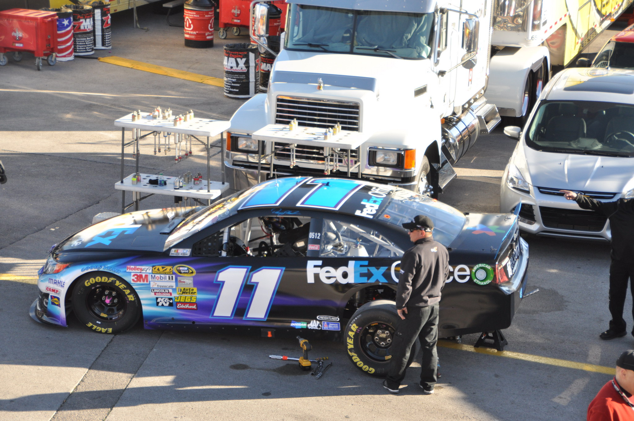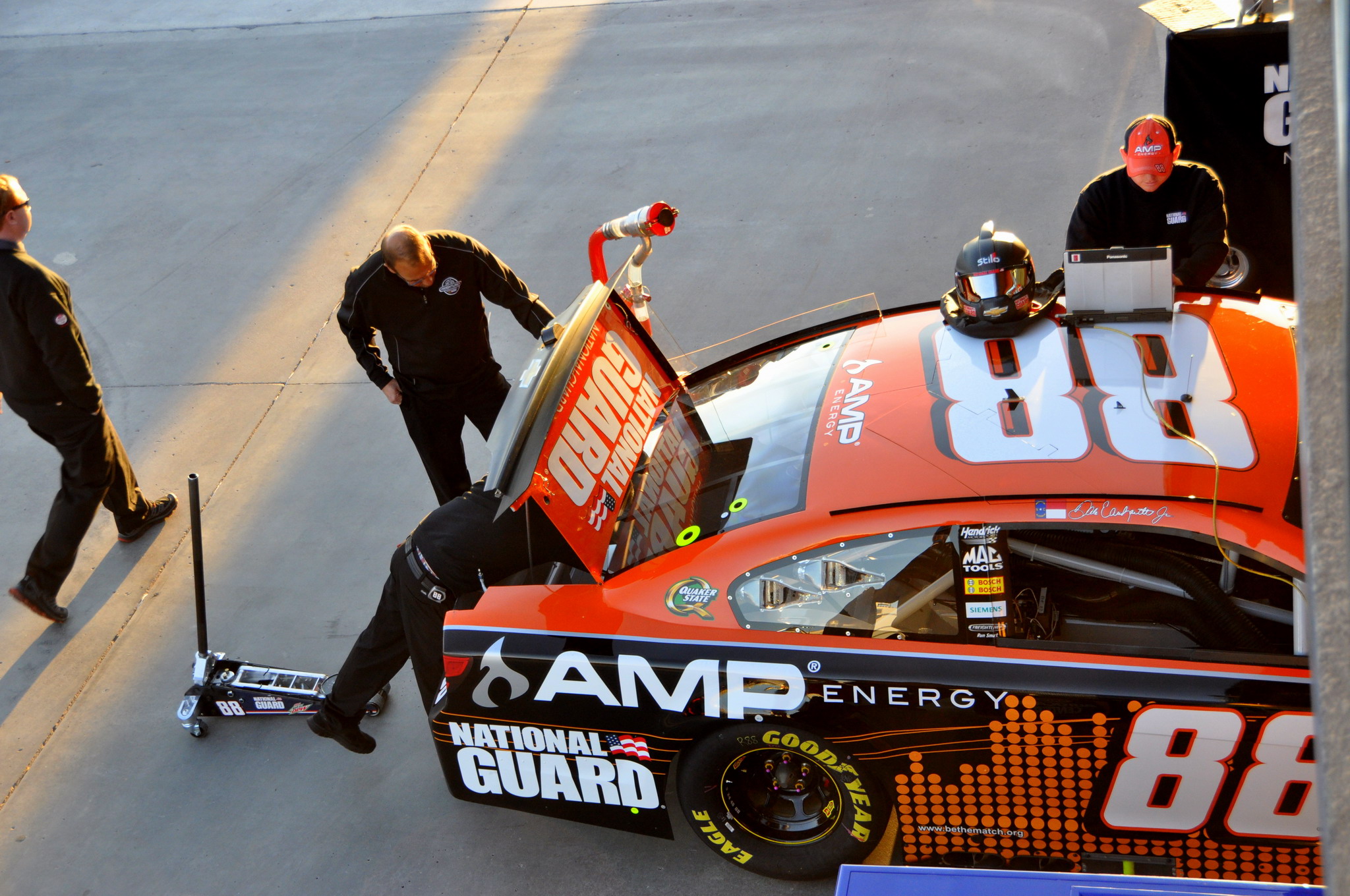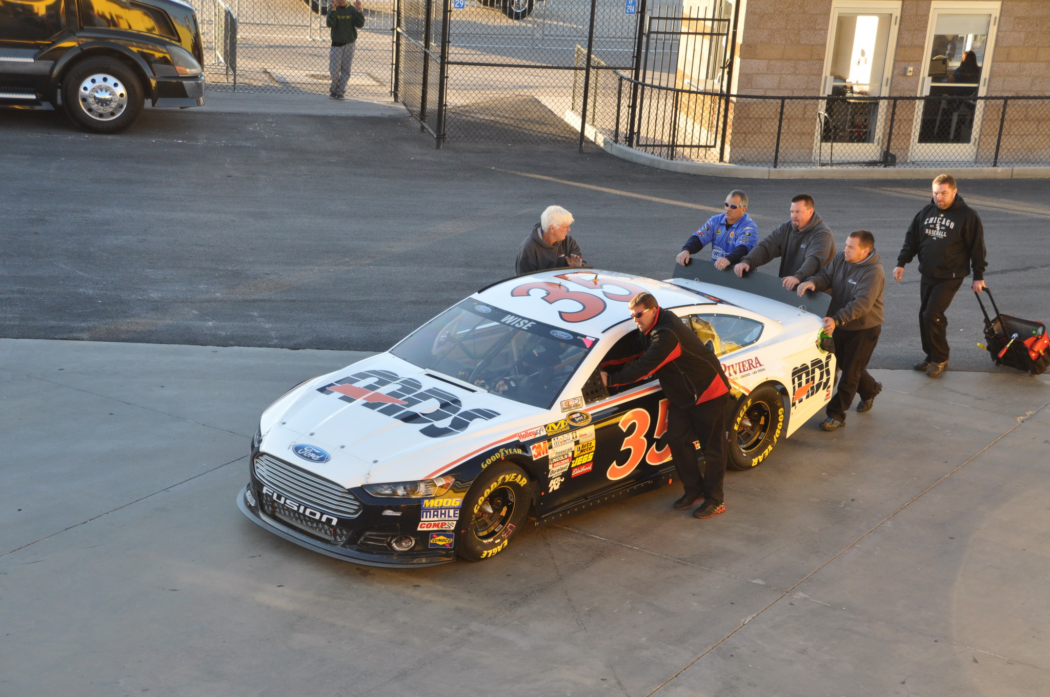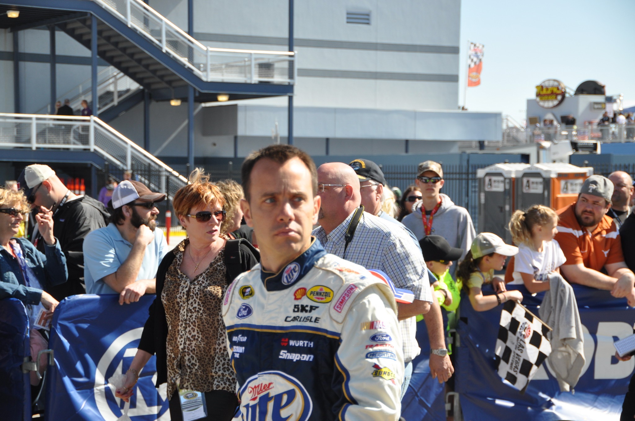 Et comme c'est de tradition le dimanche juste avant la course, et c'est aussi pour ça qu'on m'avait particulièrement conseillé la course de Vegas, toute la ligne des stands est ouverte aux fans. Les équipes, après l'inspection, y mettent les voitures, ce qui permet de toutes les voir de près, quelques animations sont organisées, avec un peu de chance, il est possible de voir les pilotes de près, le vrai spectacle de la Nascar pour les fans.