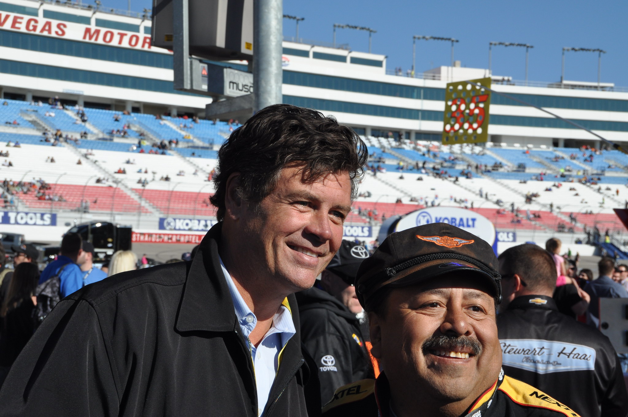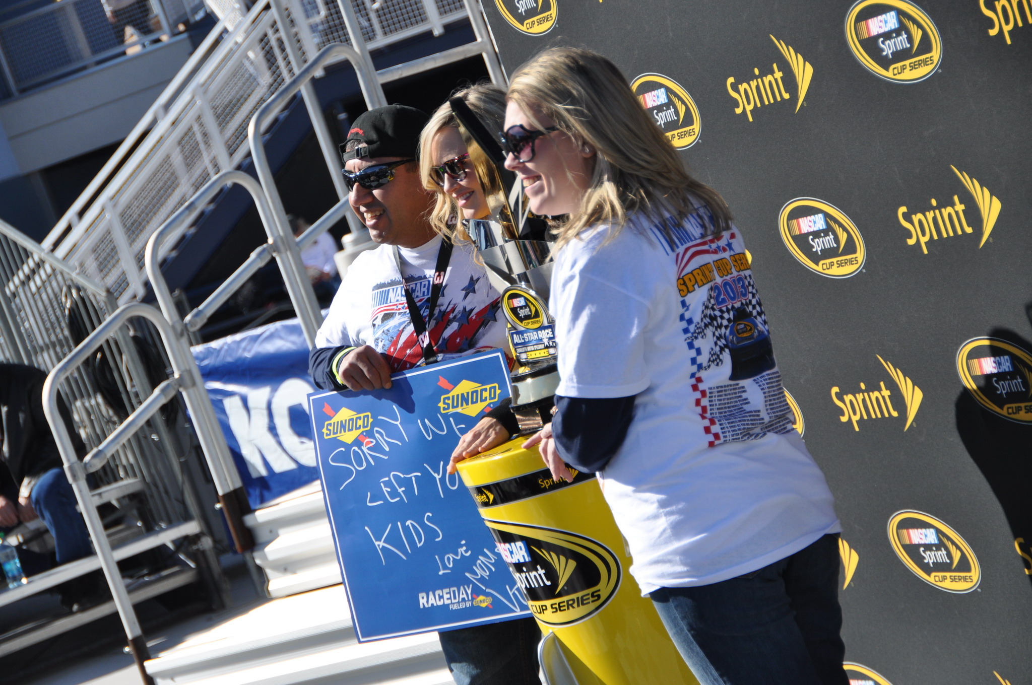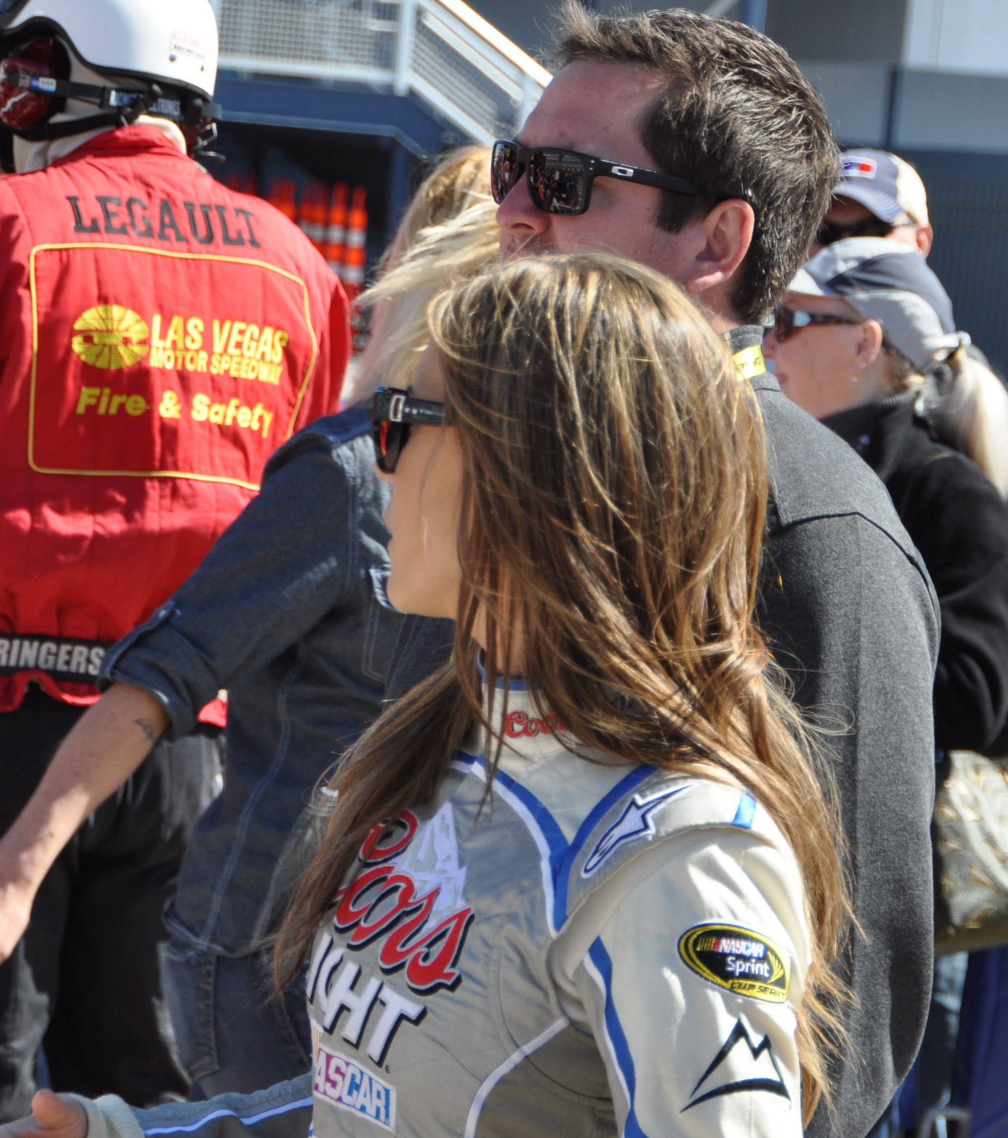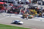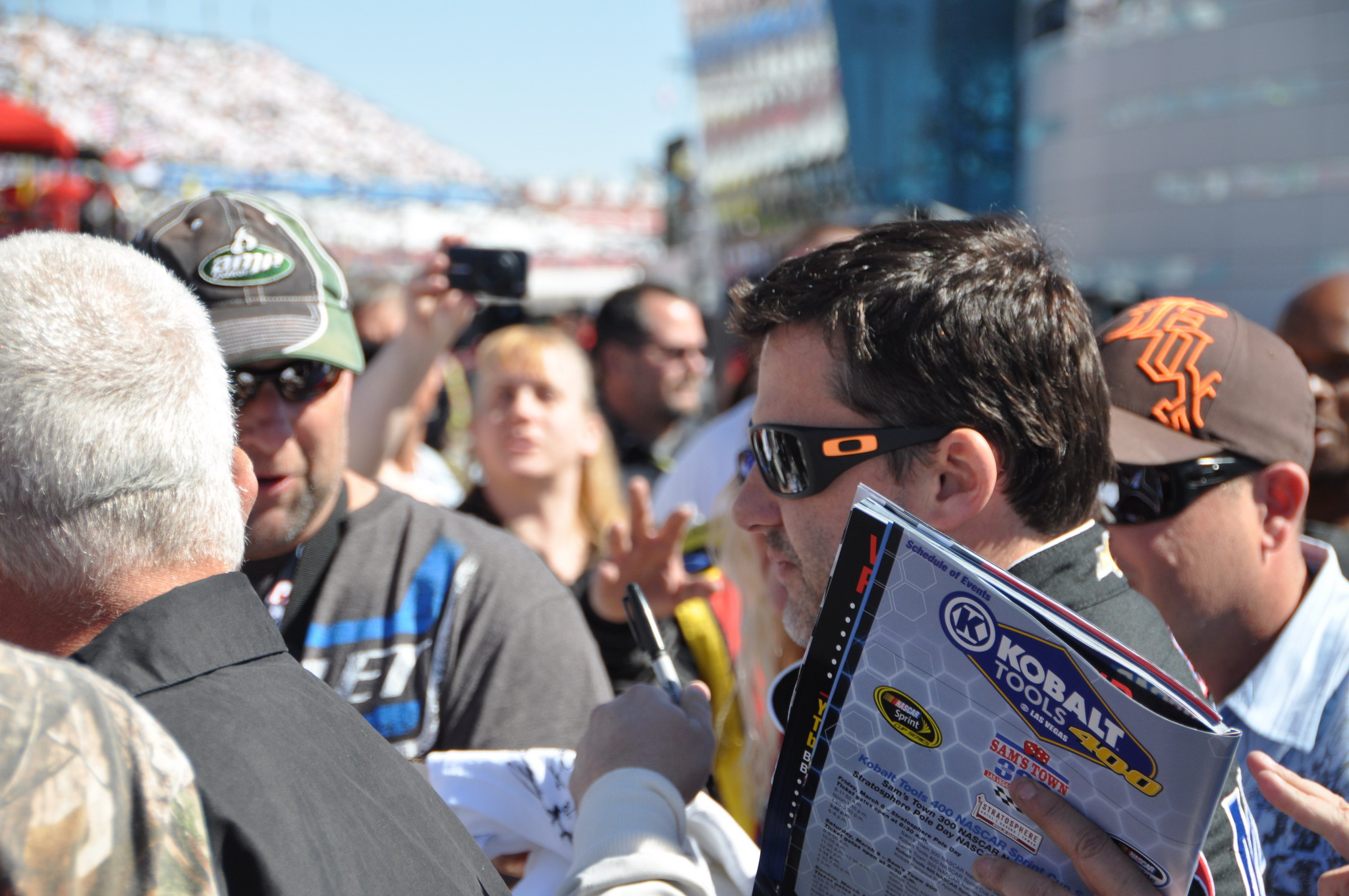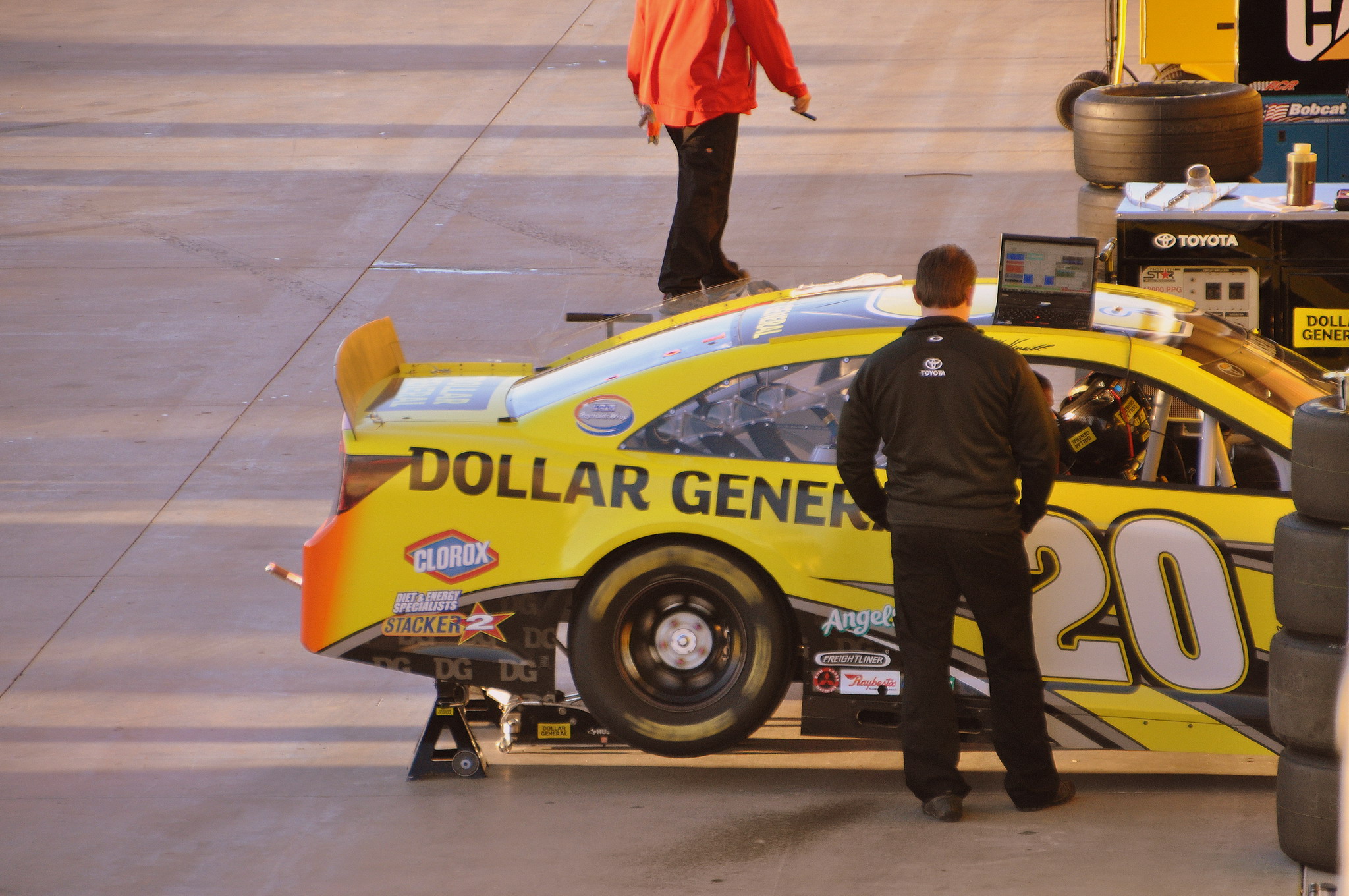 Et comme c'est de tradition le dimanche juste avant la course, et c'est aussi pour ça qu'on m'avait particulièrement conseillé la course de Vegas, toute la ligne des stands est ouverte aux fans. Les équipes, après l'inspection, y mettent les voitures, ce qui permet de toutes les voir de près, quelques animations sont organisées, avec un peu de chance, il est possible de voir les pilotes de près, le vrai spectacle de la Nascar pour les fans.