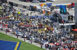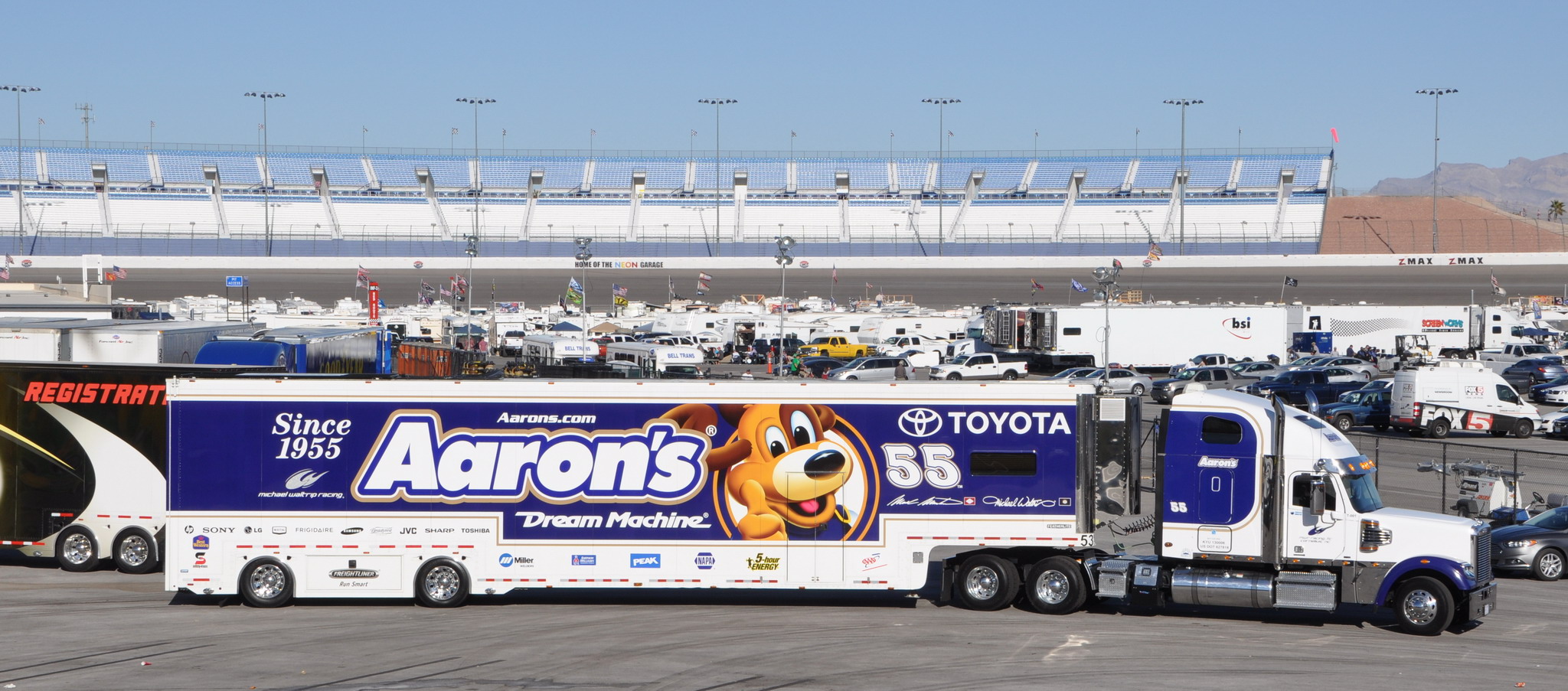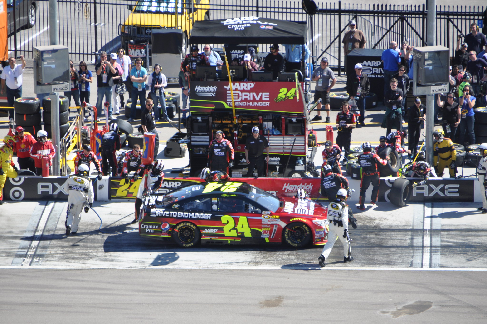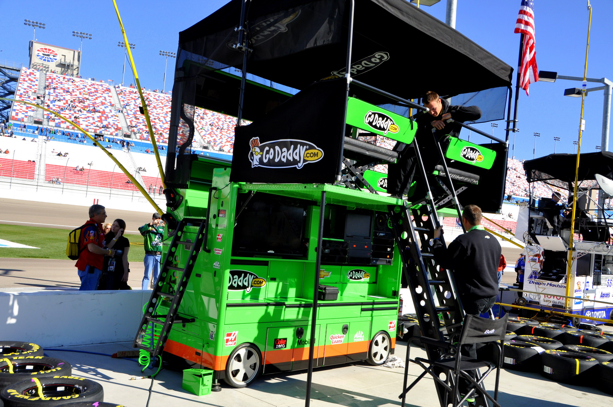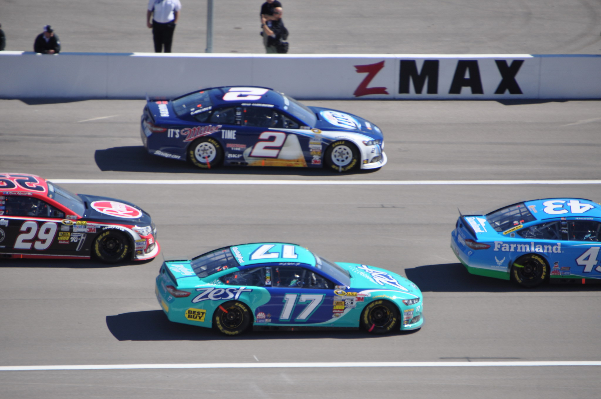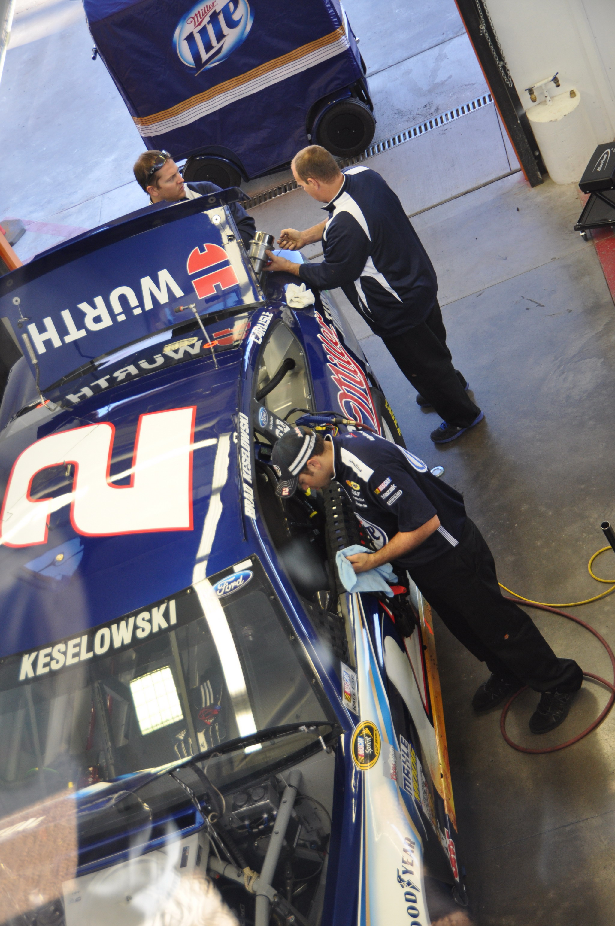 Et comme c'est de tradition le dimanche juste avant la course, et c'est aussi pour ça qu'on m'avait particulièrement conseillé la course de Vegas, toute la ligne des stands est ouverte aux fans. Les équipes, après l'inspection, y mettent les voitures, ce qui permet de toutes les voir de près, quelques animations sont organisées, avec un peu de chance, il est possible de voir les pilotes de près, le vrai spectacle de la Nascar pour les fans.