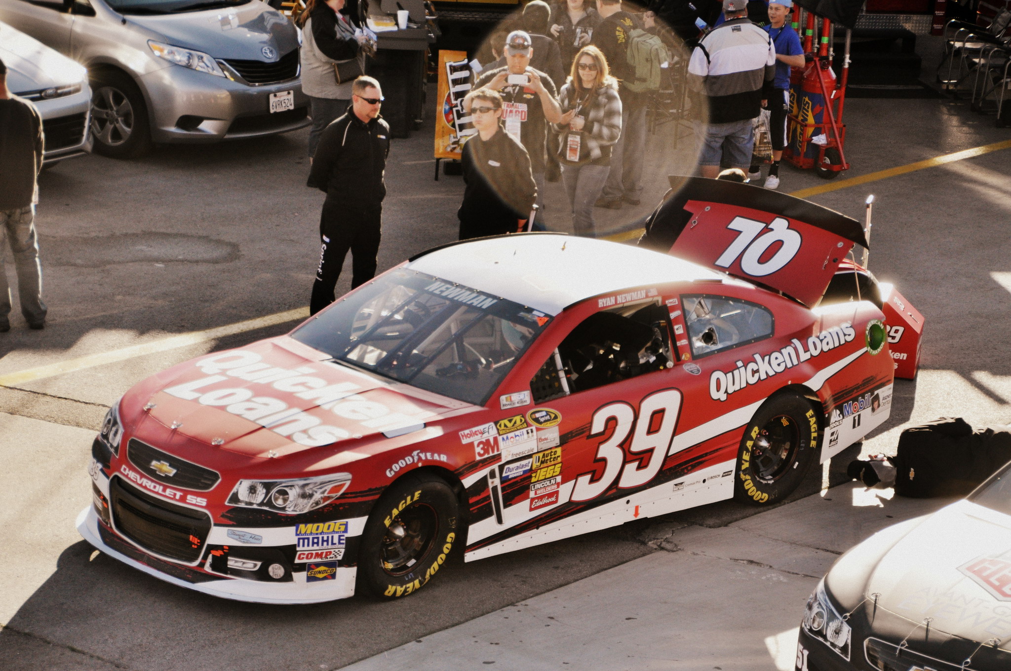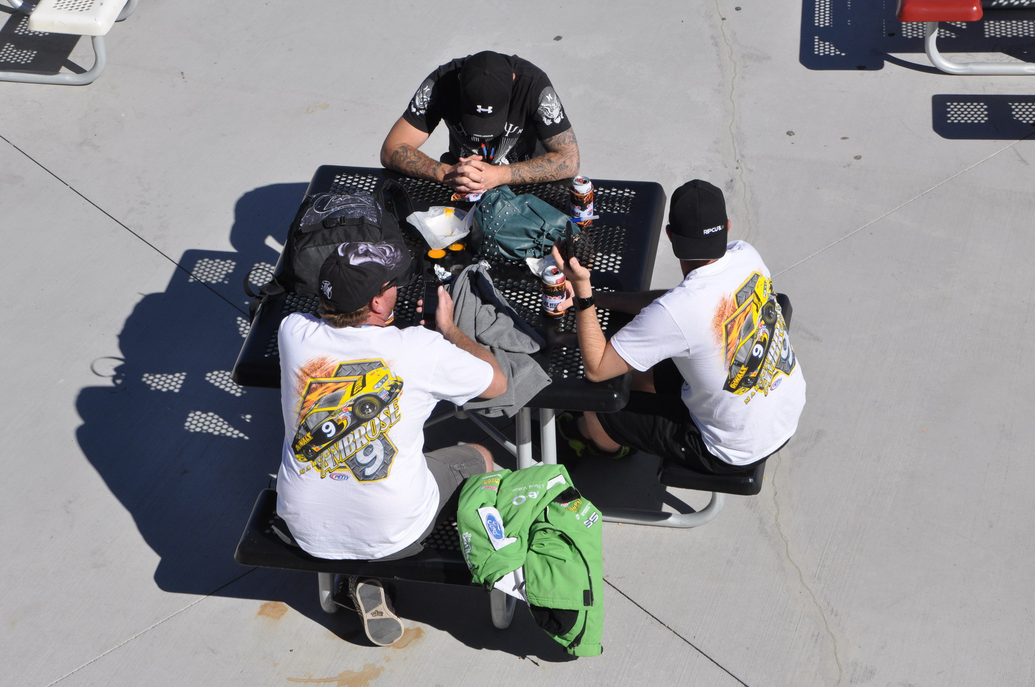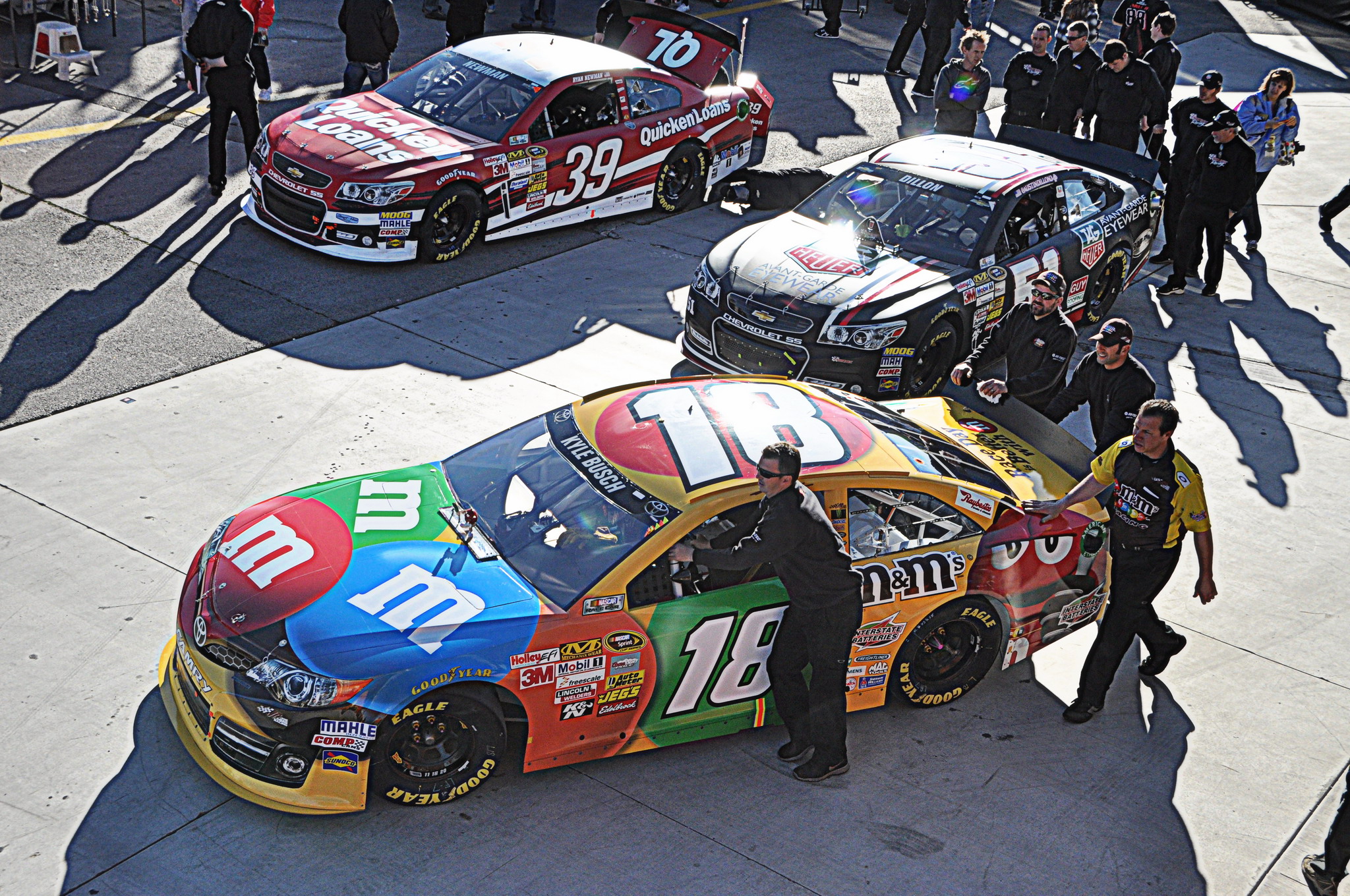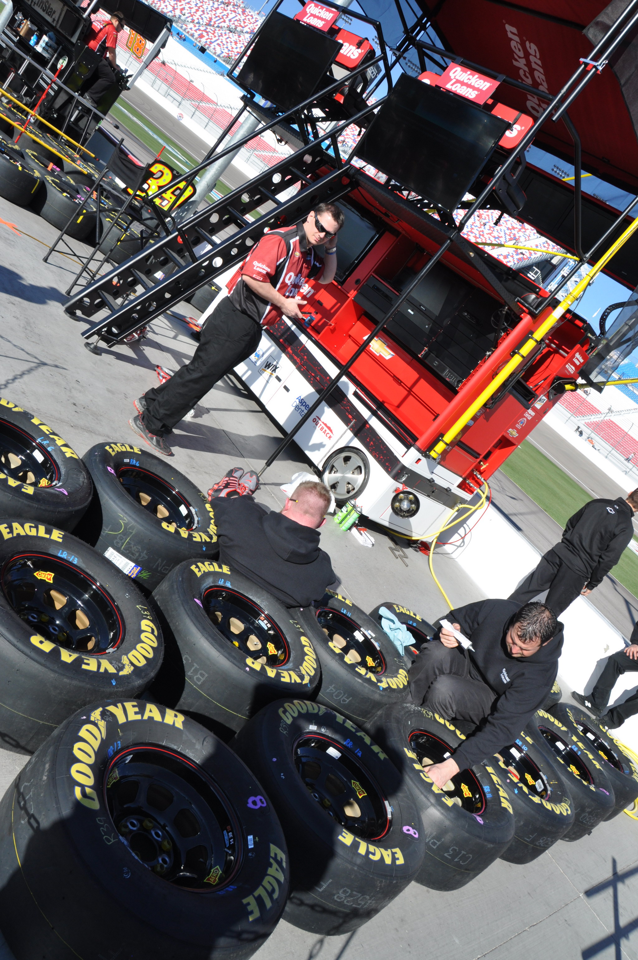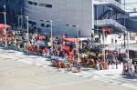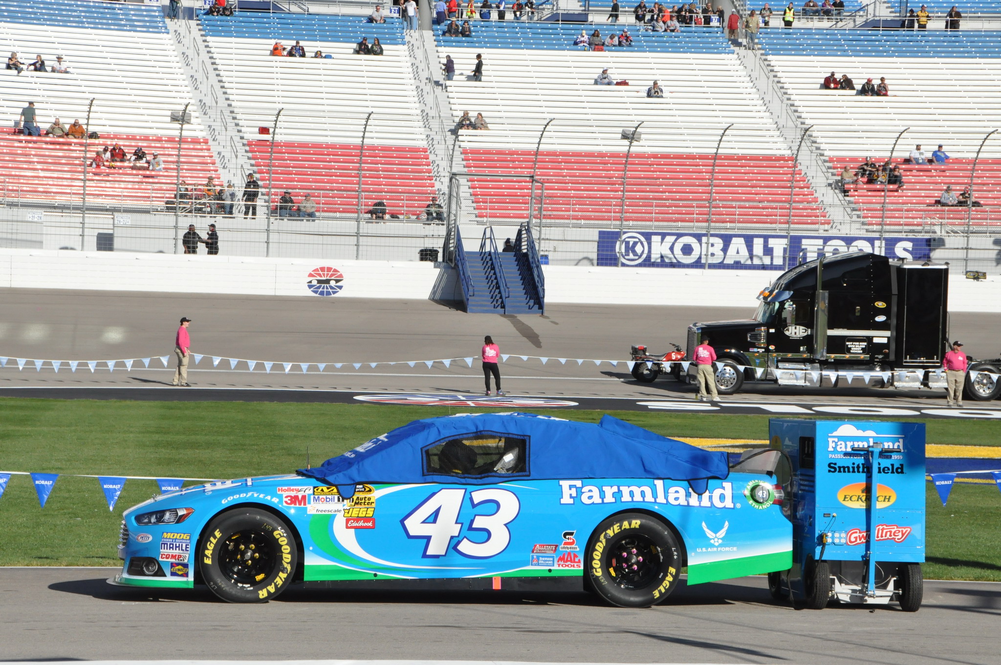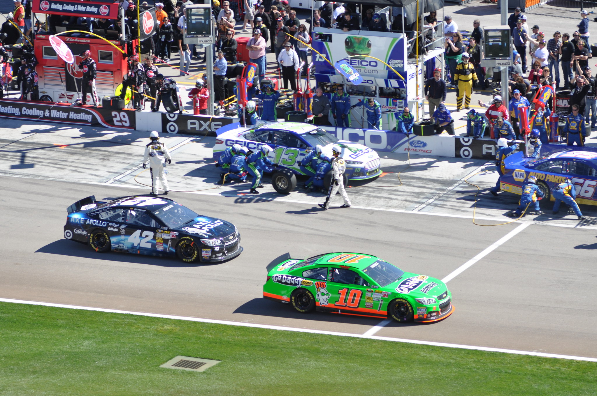 Et comme c'est de tradition le dimanche juste avant la course, et c'est aussi pour ça qu'on m'avait particulièrement conseillé la course de Vegas, toute la ligne des stands est ouverte aux fans. Les équipes, après l'inspection, y mettent les voitures, ce qui permet de toutes les voir de près, quelques animations sont organisées, avec un peu de chance, il est possible de voir les pilotes de près, le vrai spectacle de la Nascar pour les fans.