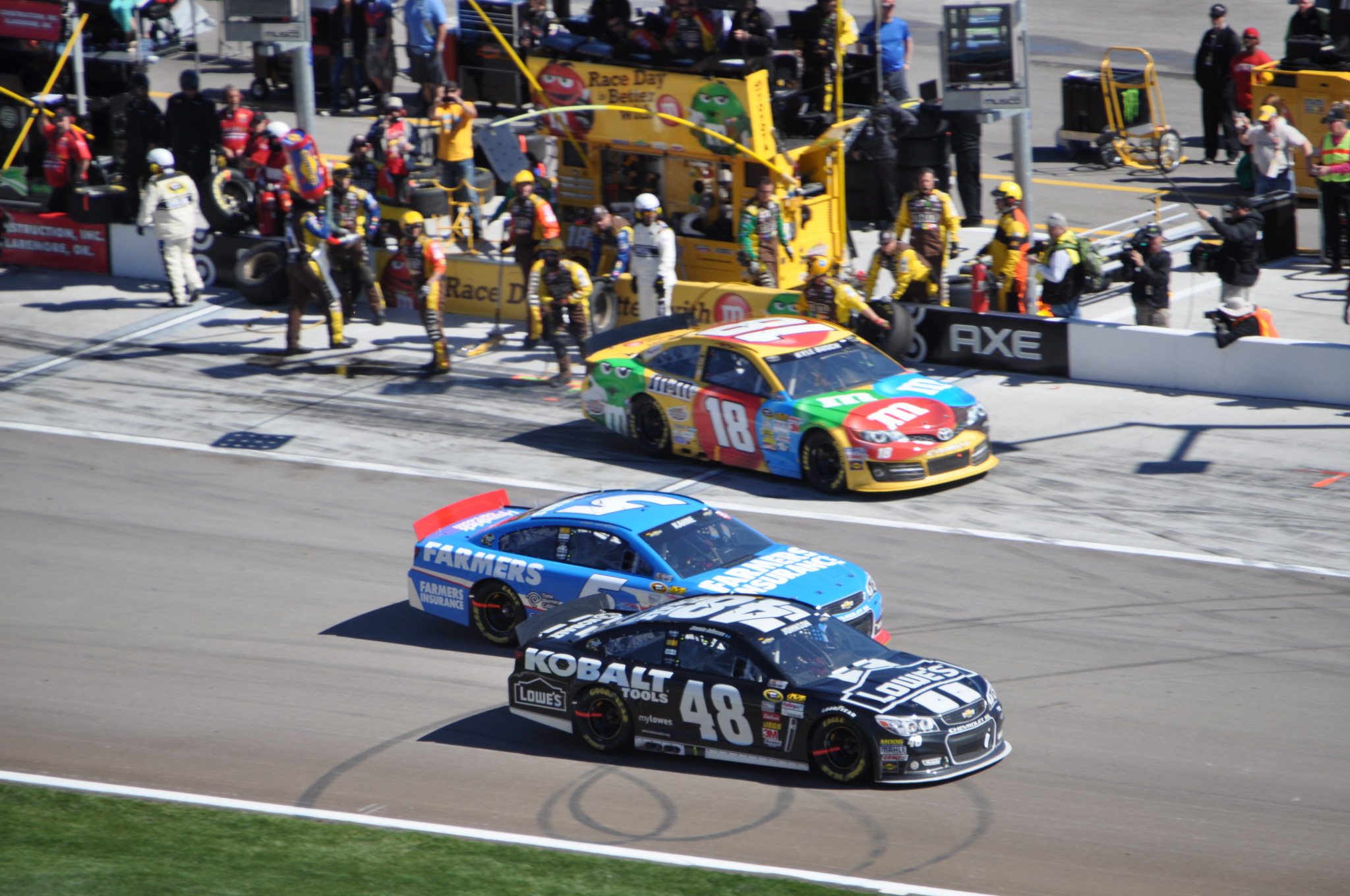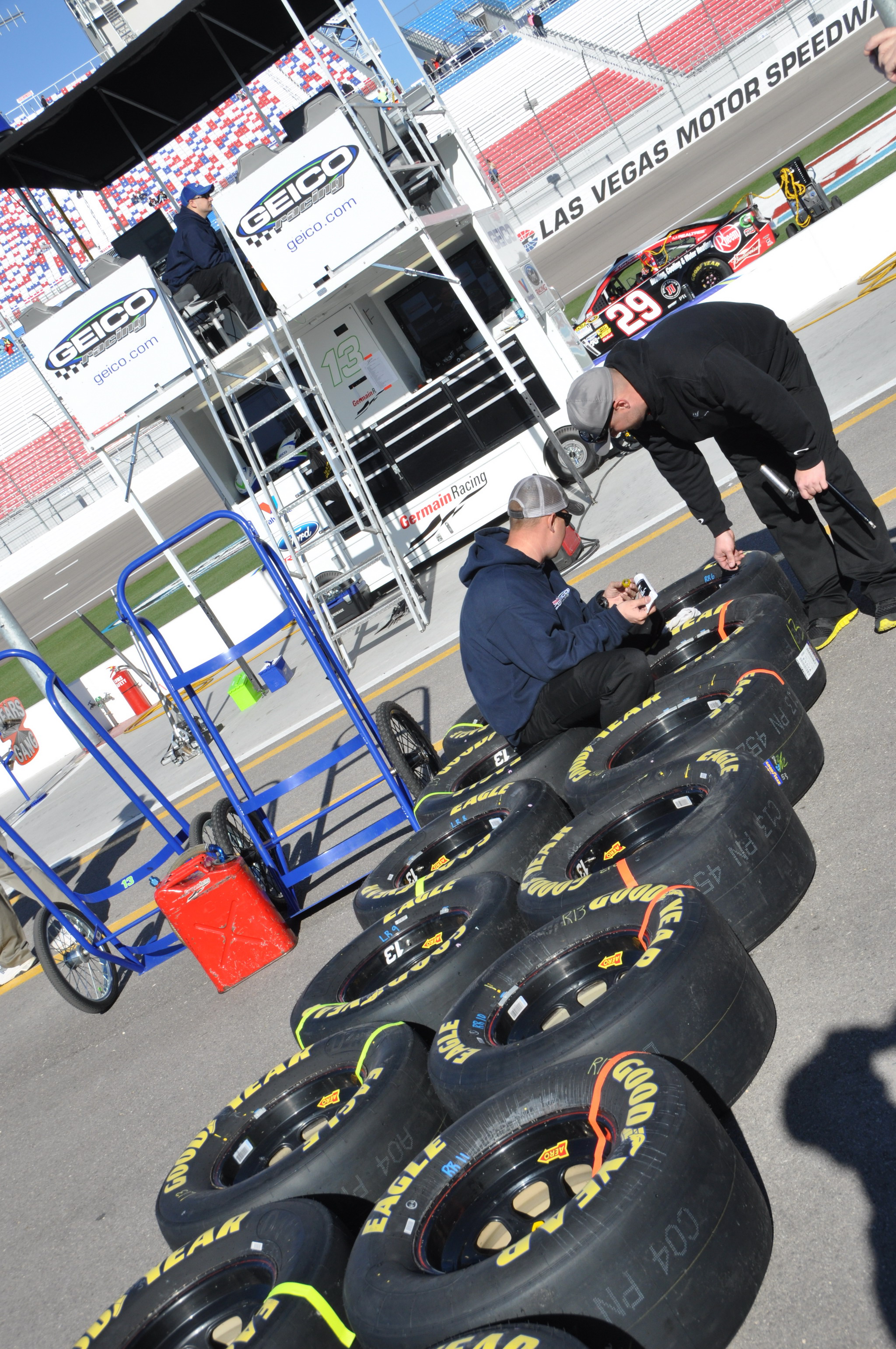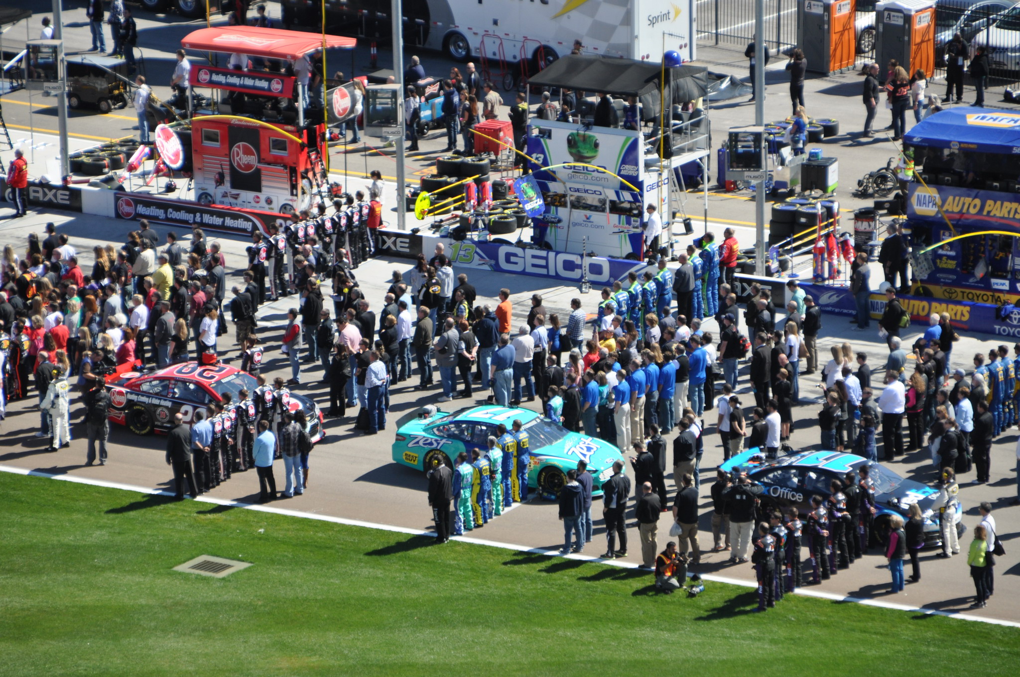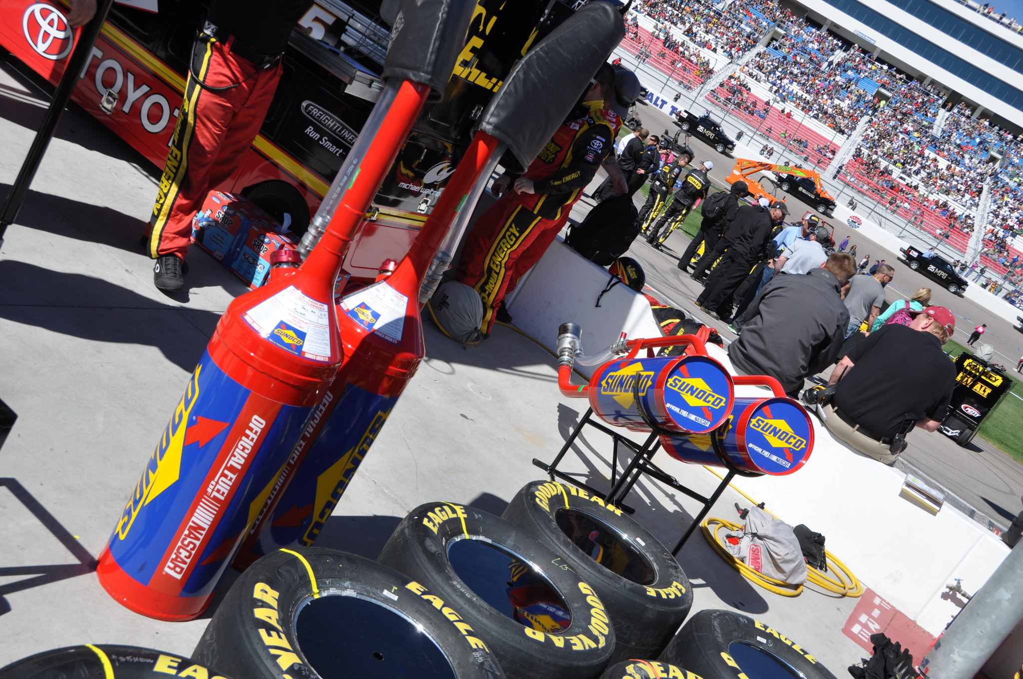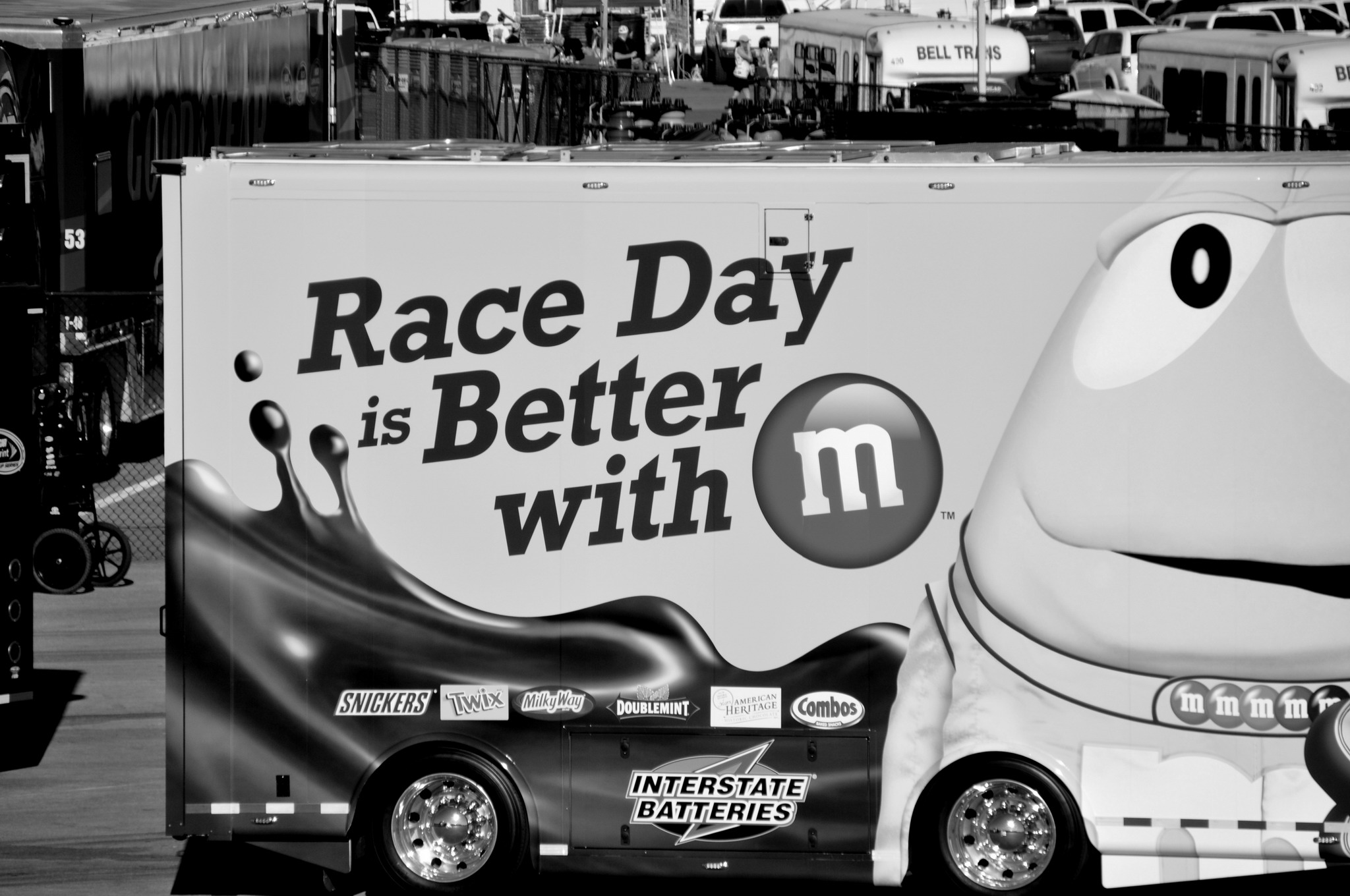 Et comme c'est de tradition le dimanche juste avant la course, et c'est aussi pour ça qu'on m'avait particulièrement conseillé la course de Vegas, toute la ligne des stands est ouverte aux fans. Les équipes, après l'inspection, y mettent les voitures, ce qui permet de toutes les voir de près, quelques animations sont organisées, avec un peu de chance, il est possible de voir les pilotes de près, le vrai spectacle de la Nascar pour les fans.