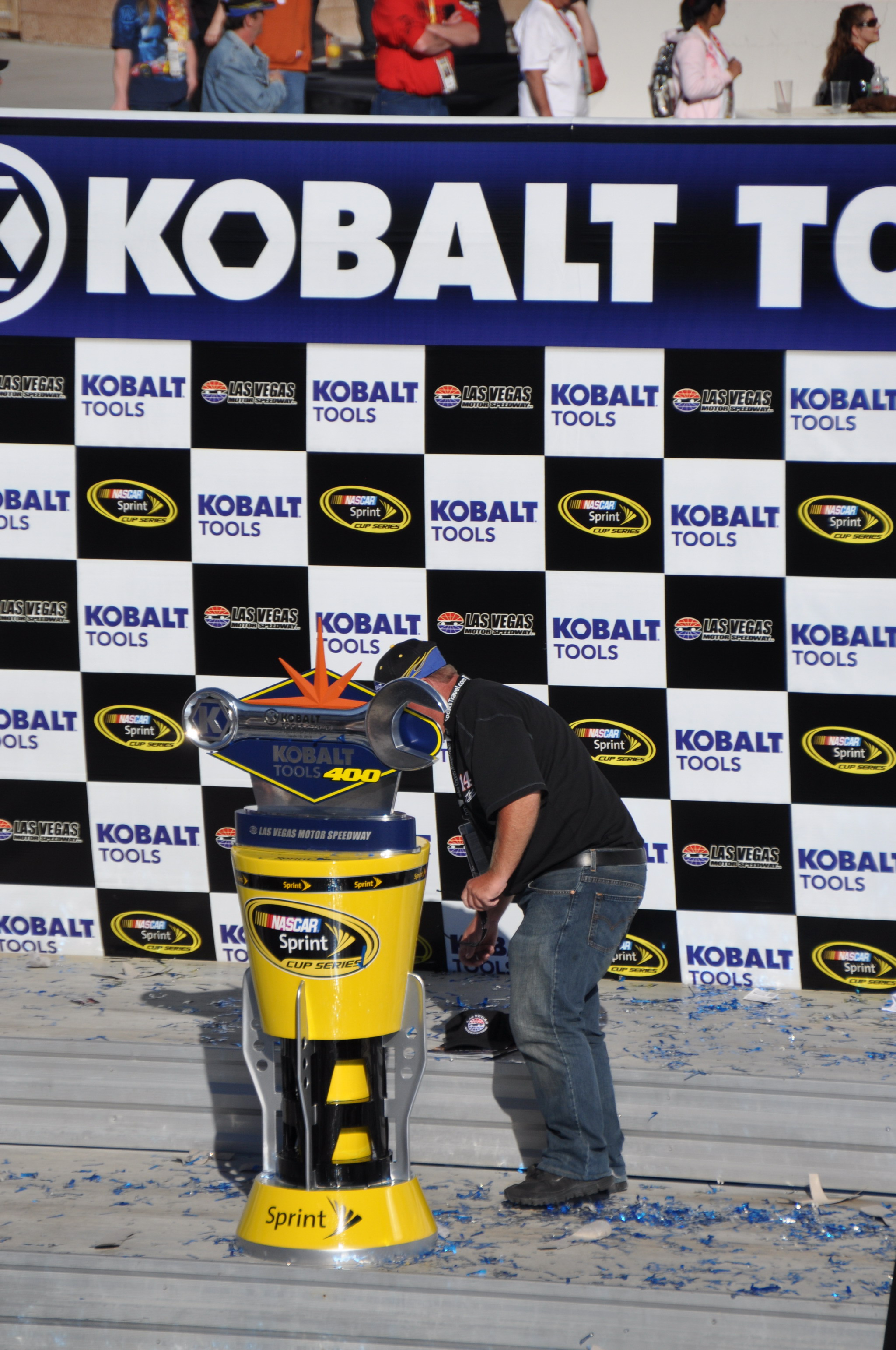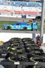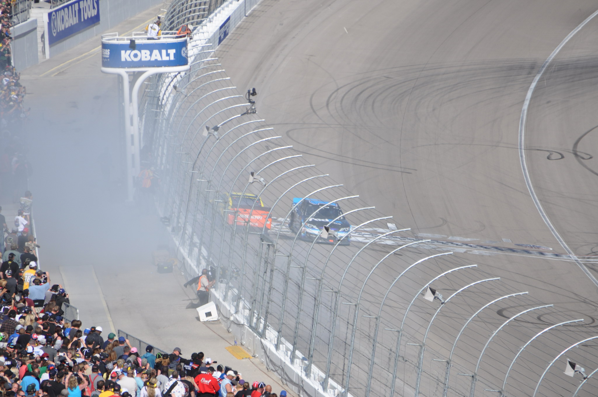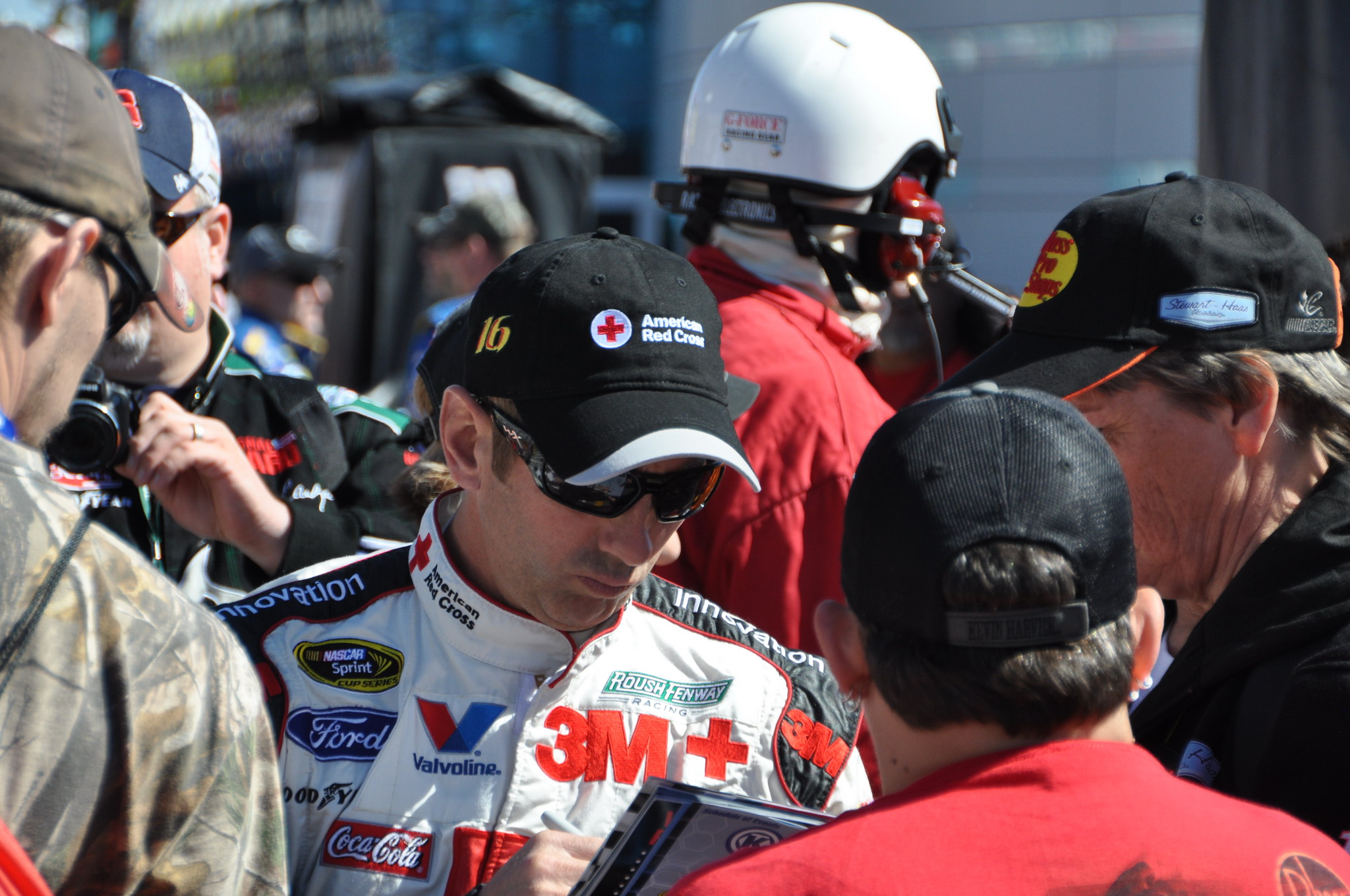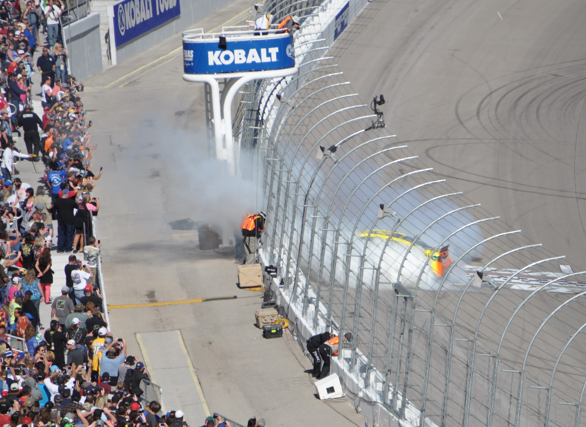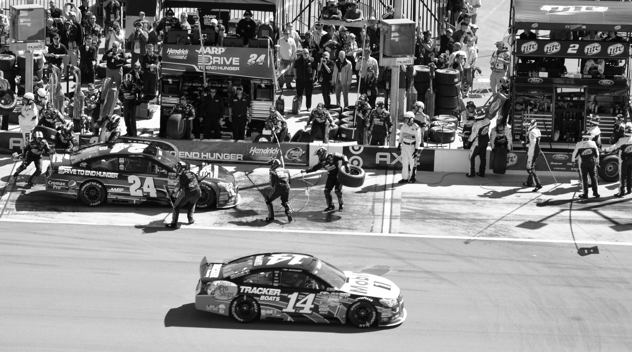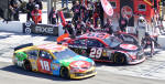 Et comme c'est de tradition le dimanche juste avant la course, et c'est aussi pour ça qu'on m'avait particulièrement conseillé la course de Vegas, toute la ligne des stands est ouverte aux fans. Les équipes, après l'inspection, y mettent les voitures, ce qui permet de toutes les voir de près, quelques animations sont organisées, avec un peu de chance, il est possible de voir les pilotes de près, le vrai spectacle de la Nascar pour les fans.