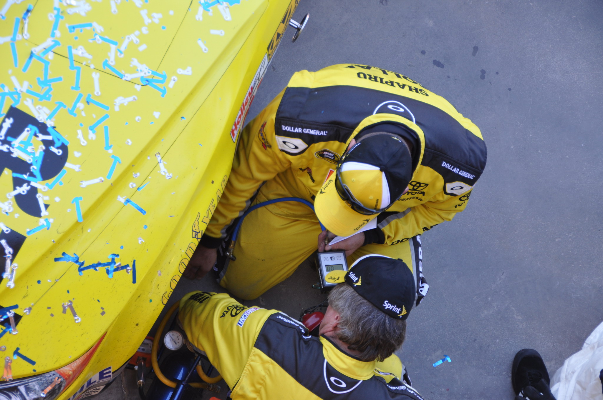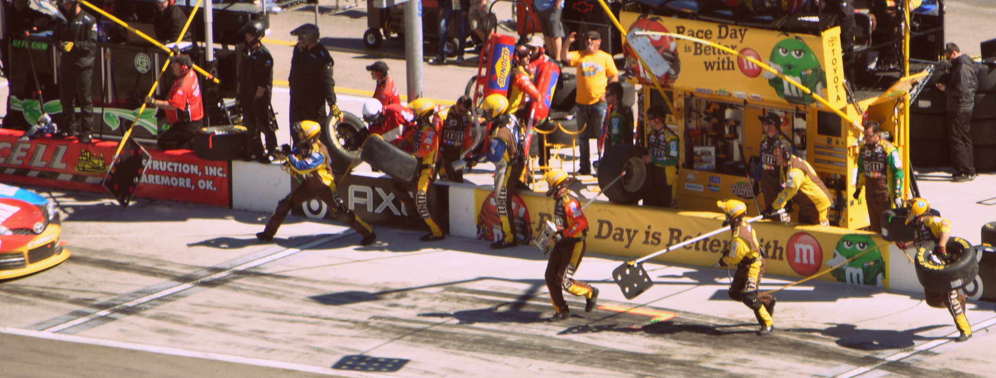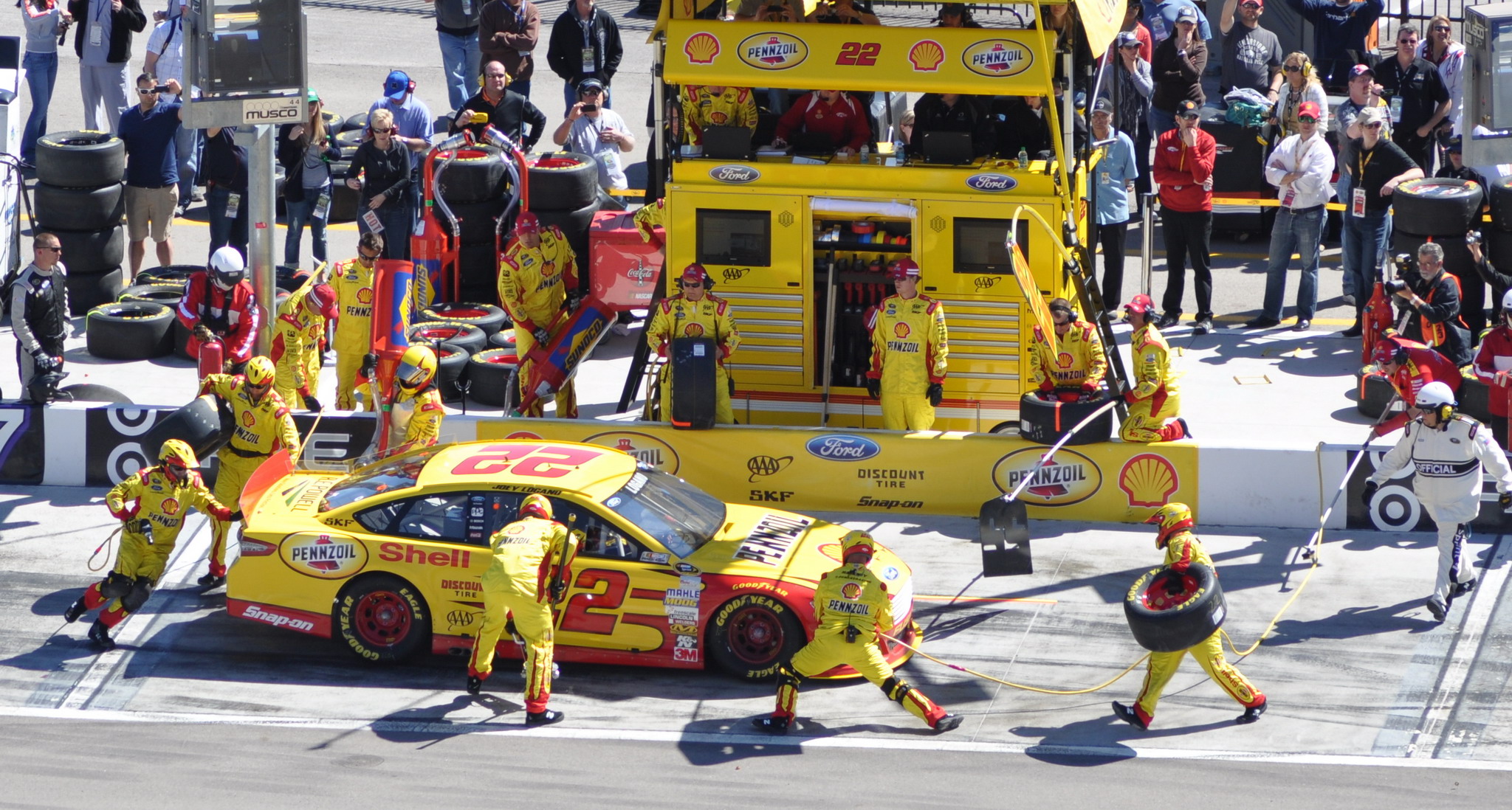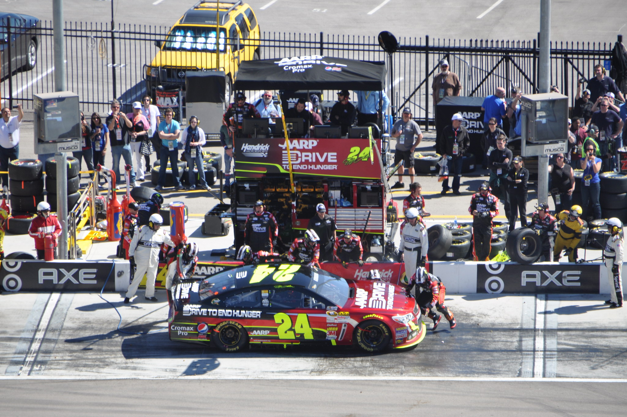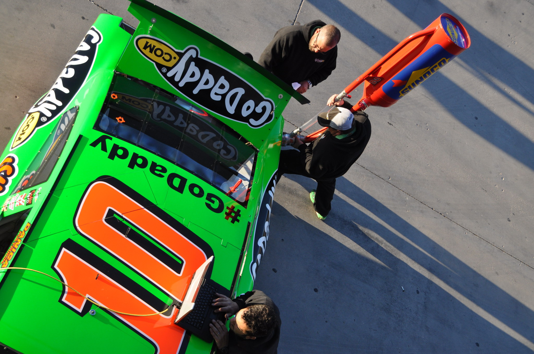 Et comme c'est de tradition le dimanche juste avant la course, et c'est aussi pour ça qu'on m'avait particulièrement conseillé la course de Vegas, toute la ligne des stands est ouverte aux fans. Les équipes, après l'inspection, y mettent les voitures, ce qui permet de toutes les voir de près, quelques animations sont organisées, avec un peu de chance, il est possible de voir les pilotes de près, le vrai spectacle de la Nascar pour les fans.