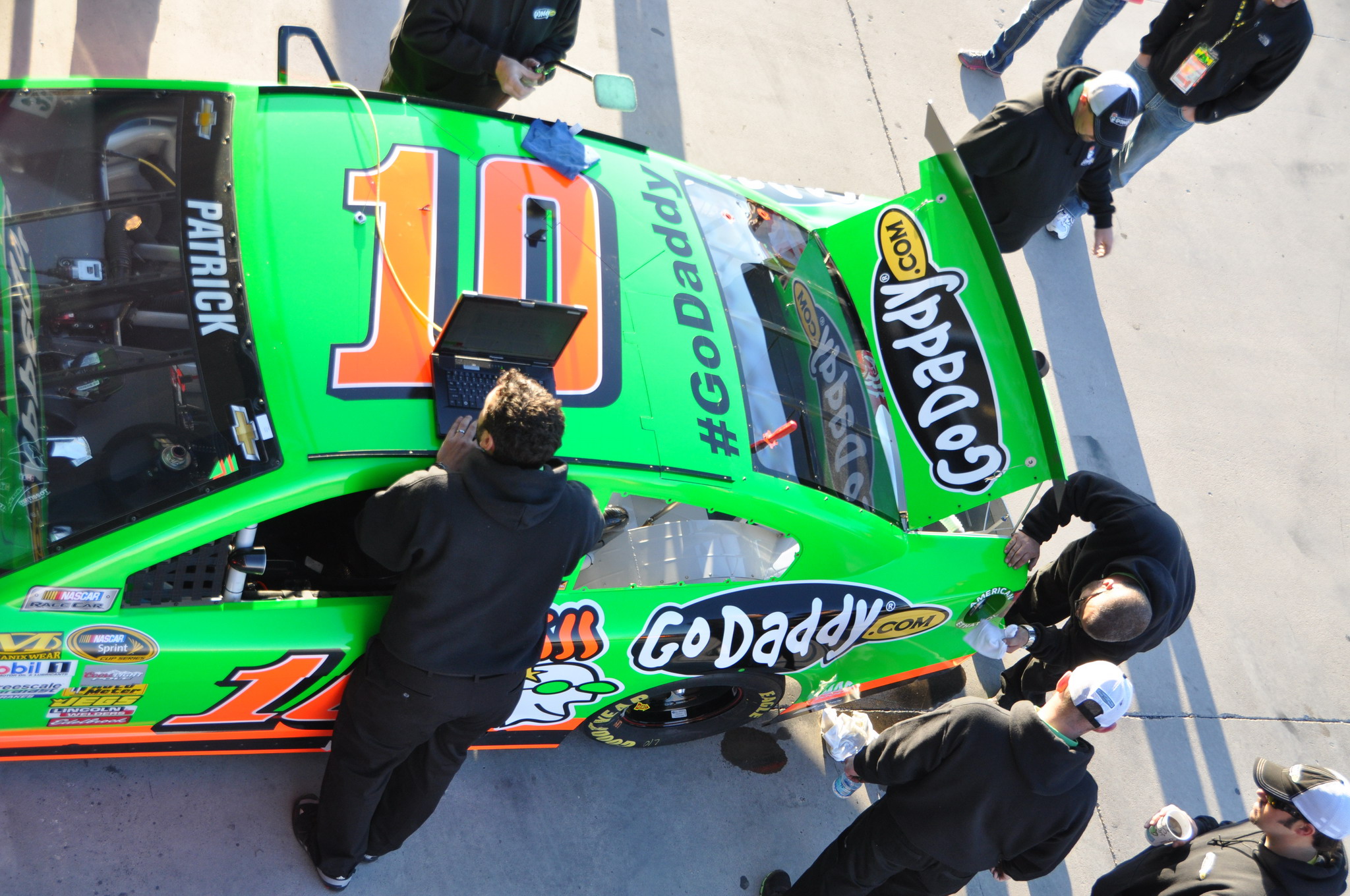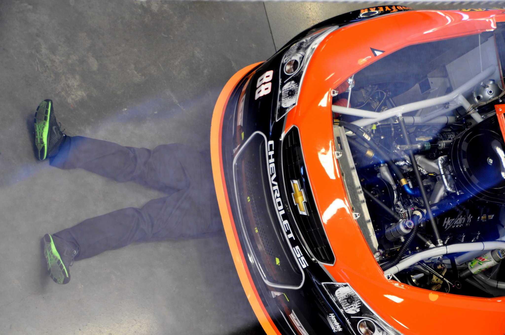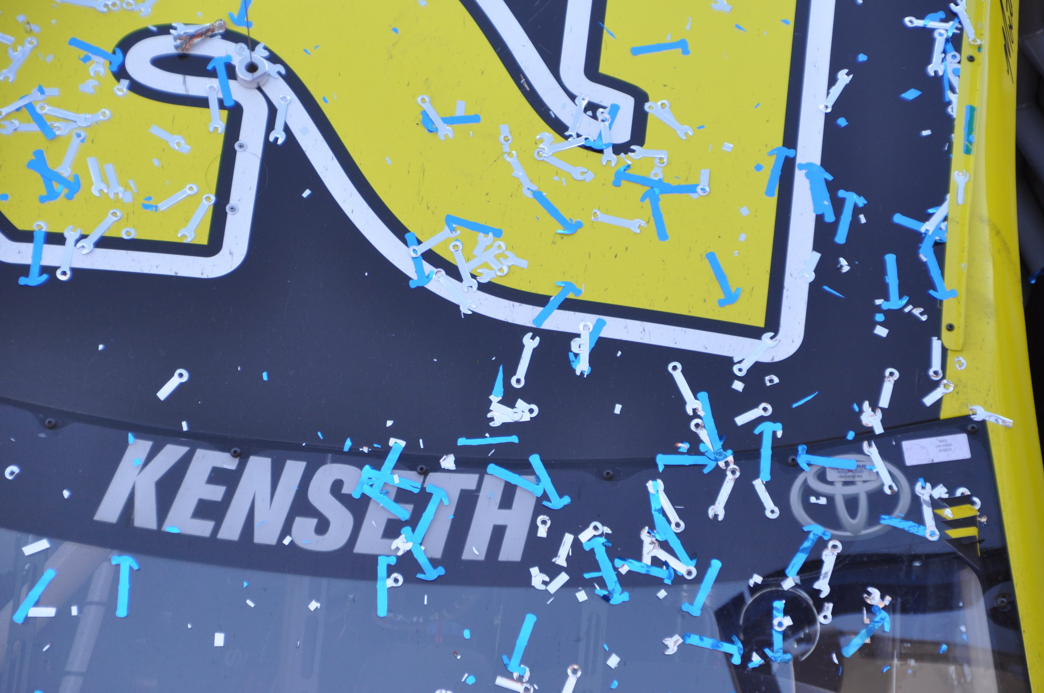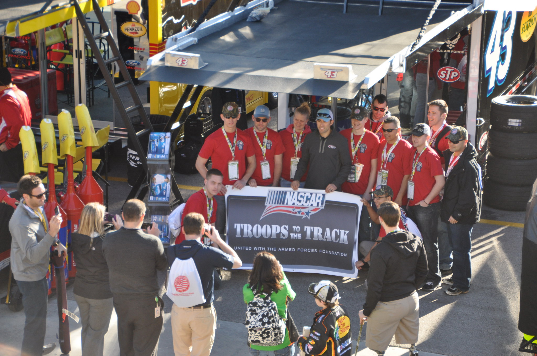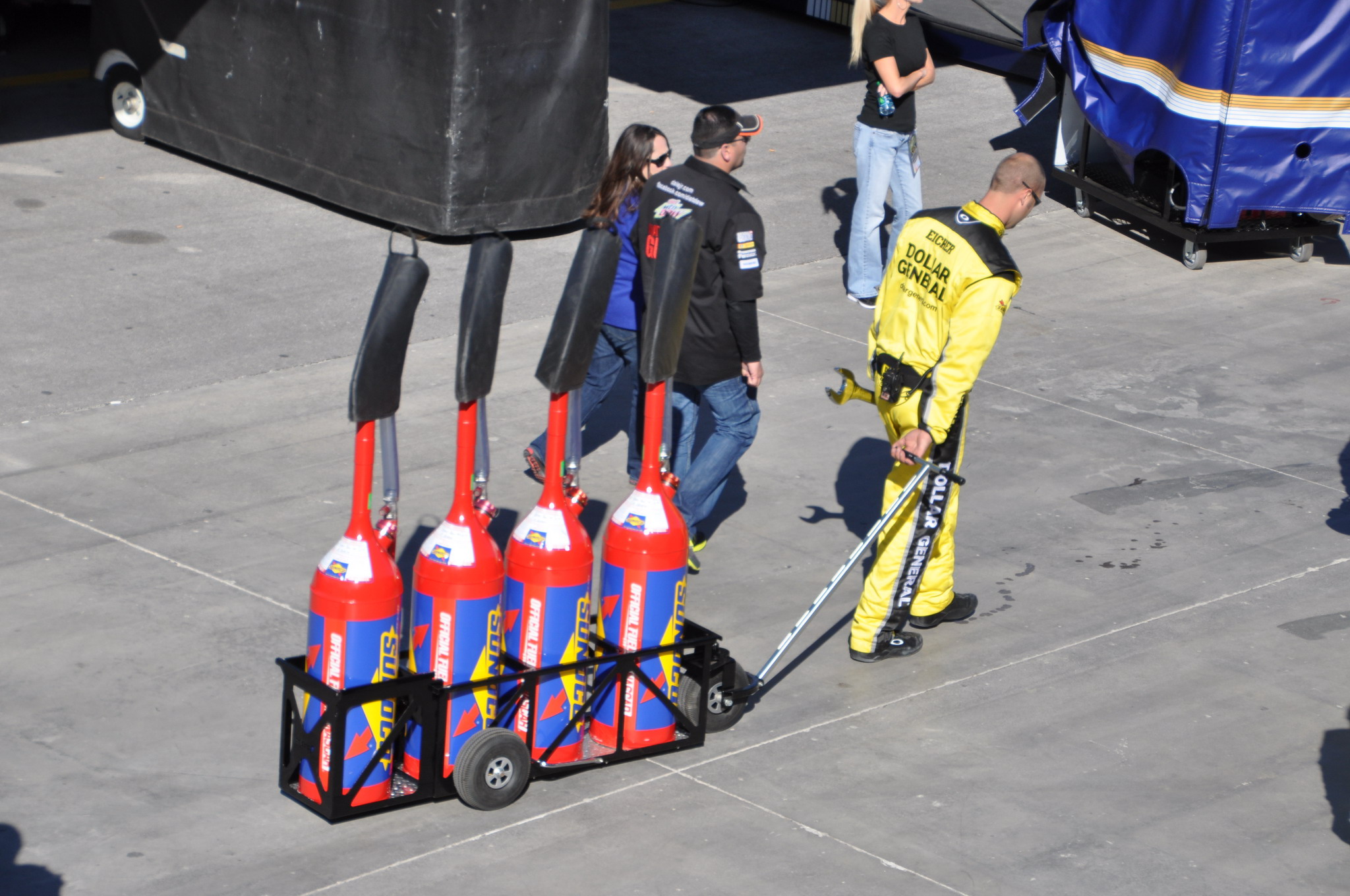 Et comme c'est de tradition le dimanche juste avant la course, et c'est aussi pour ça qu'on m'avait particulièrement conseillé la course de Vegas, toute la ligne des stands est ouverte aux fans. Les équipes, après l'inspection, y mettent les voitures, ce qui permet de toutes les voir de près, quelques animations sont organisées, avec un peu de chance, il est possible de voir les pilotes de près, le vrai spectacle de la Nascar pour les fans.