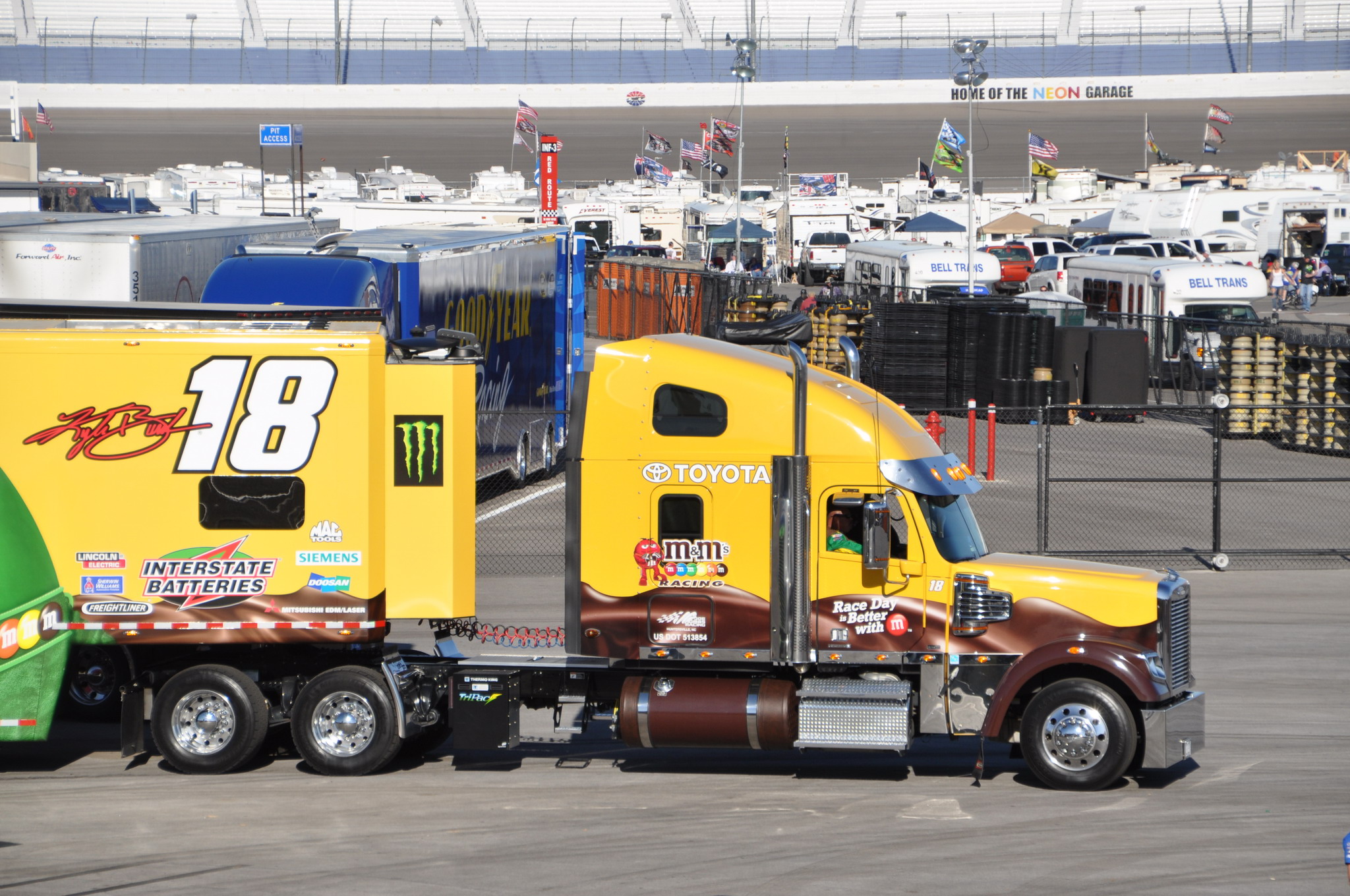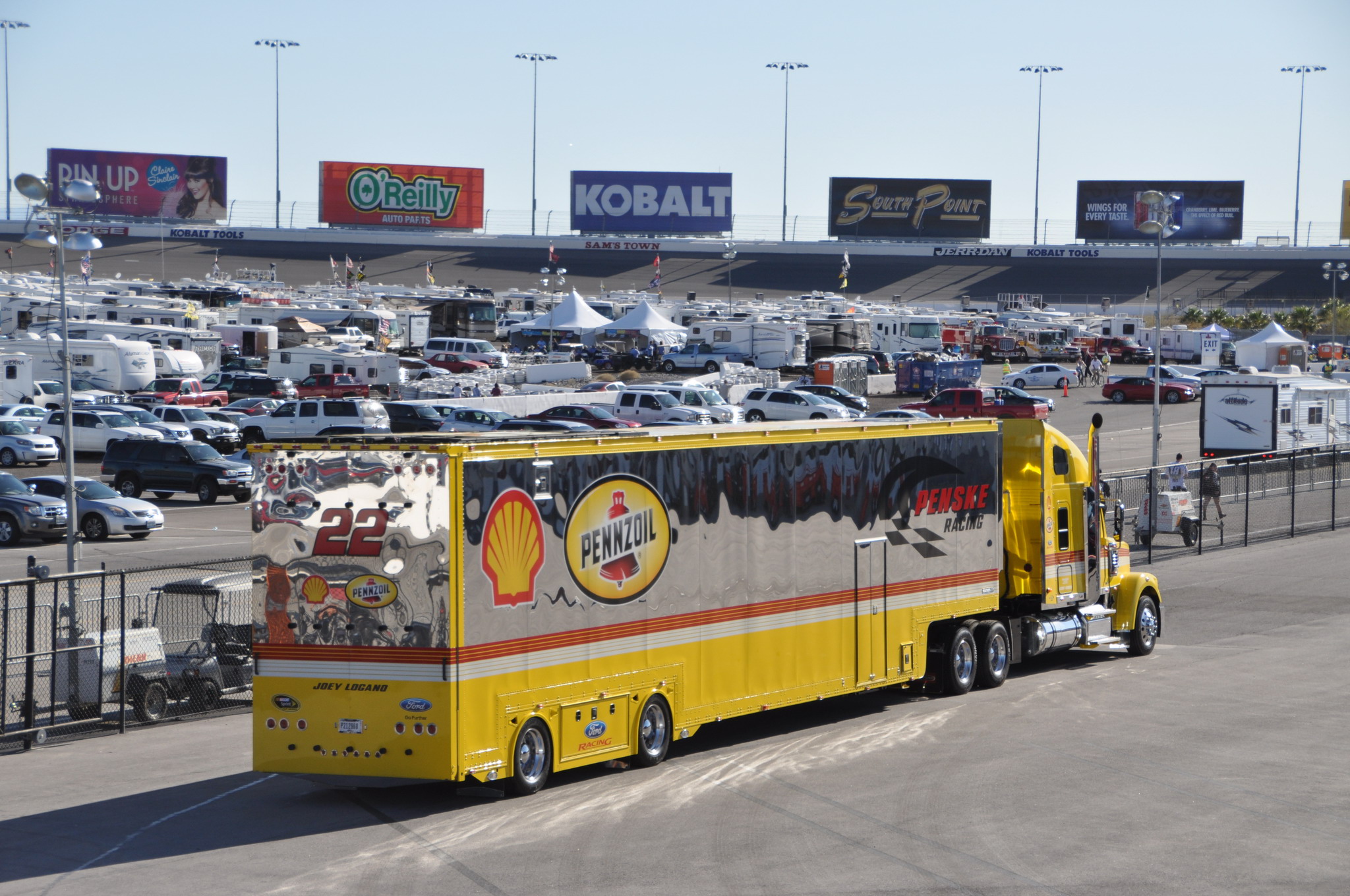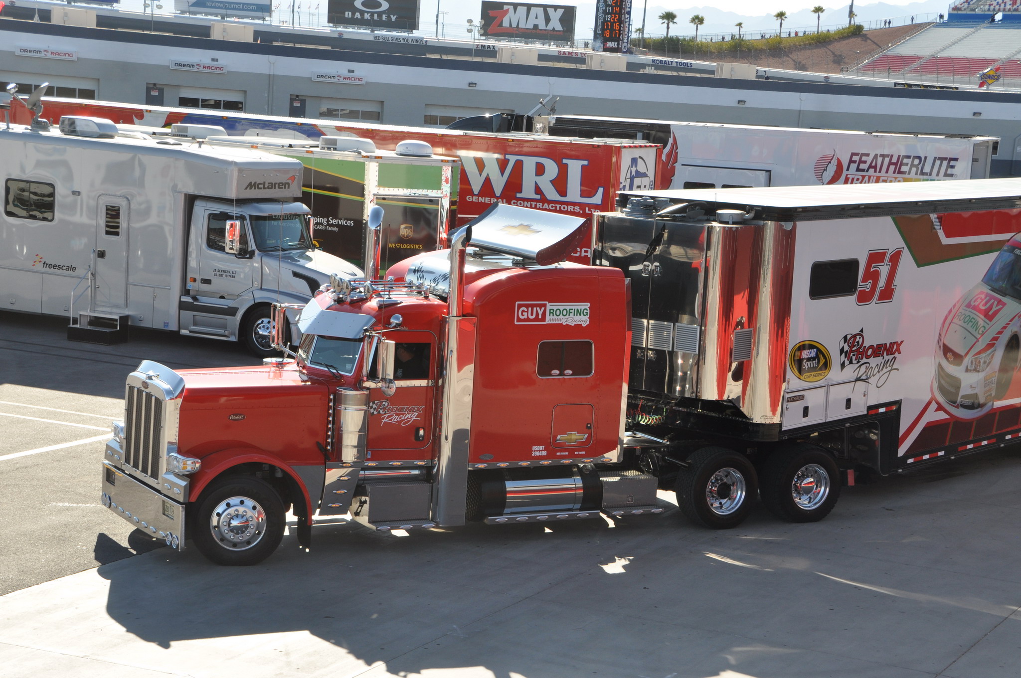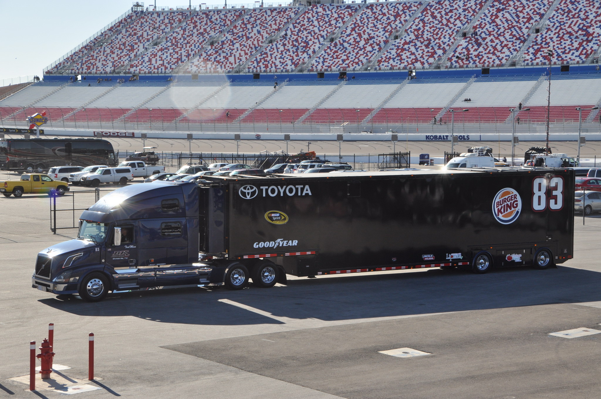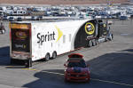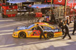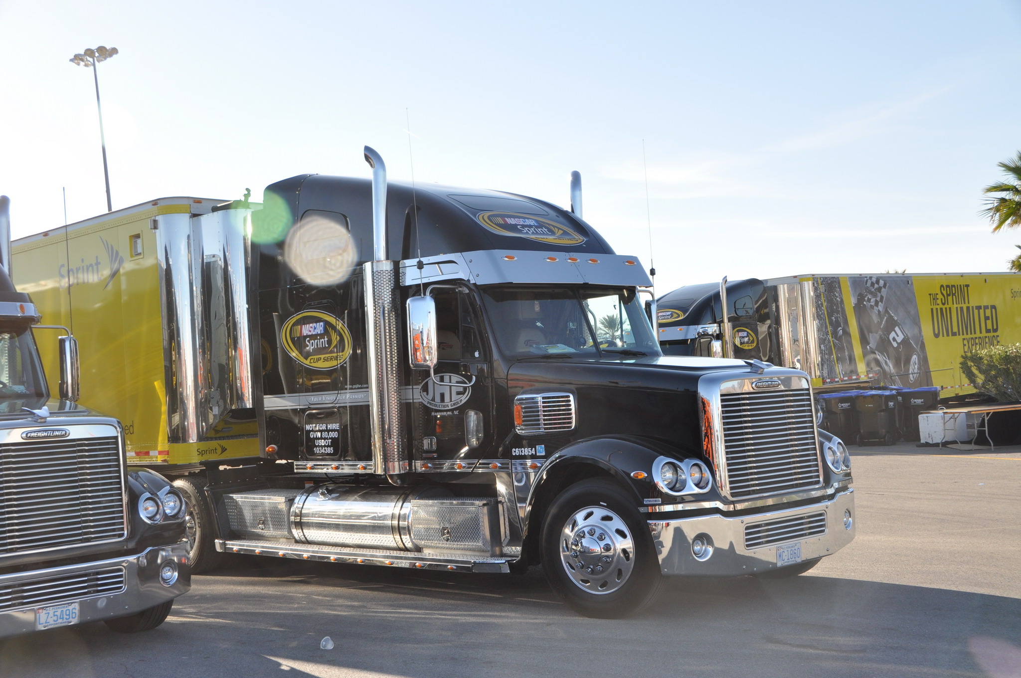 A la fin de la course, je décide dare-dare de retourner dans l'infield pour voir encore le maximum de choses, et j'arrive ainsi à m'approcher tout près par le haut de la voiture #20 de Matt Kenseth, l'interveiiew du vainqueur, et je reste même un bon moment pour regarder les équipes plier tout le matos, et surtout voir défiler tous ces superbes haulers qui partent dévorer le bitume des highways au soleil couchant pour regagner les usines ou se rendre directement sur le speedway de la prochaine course ....