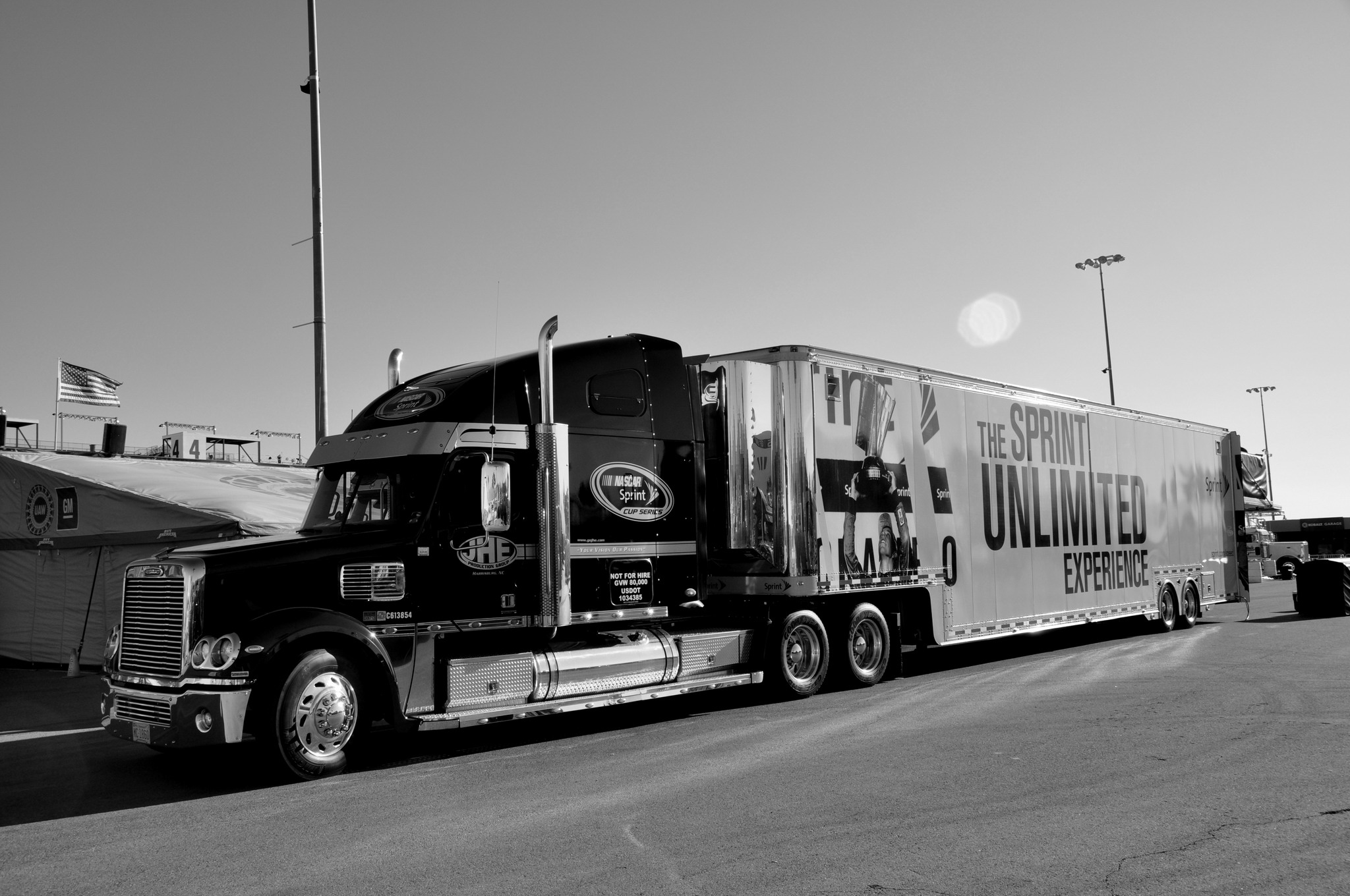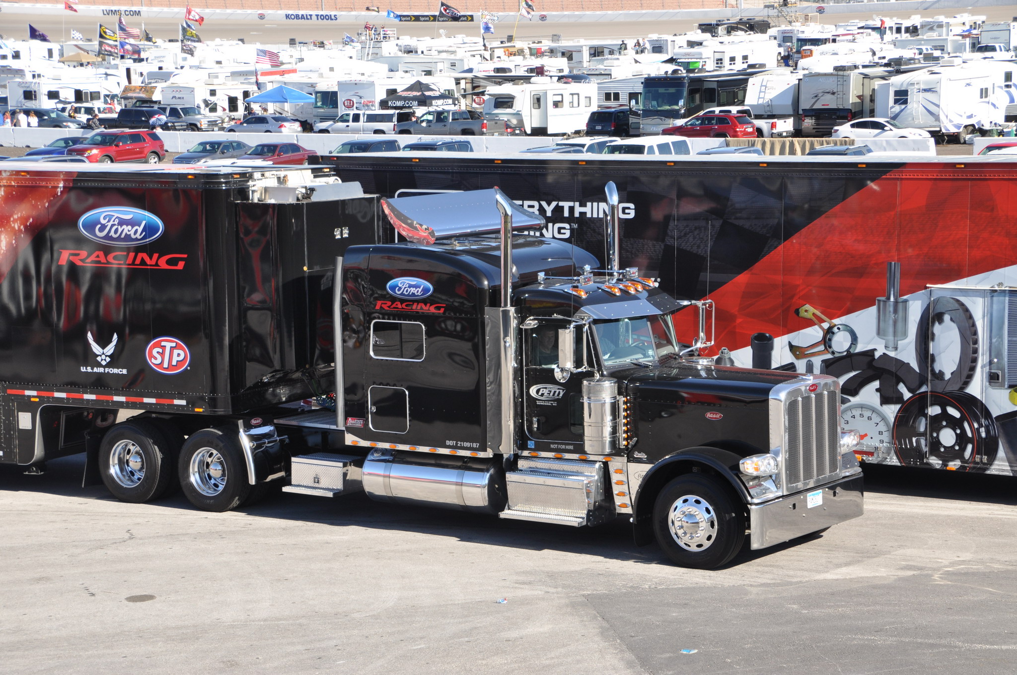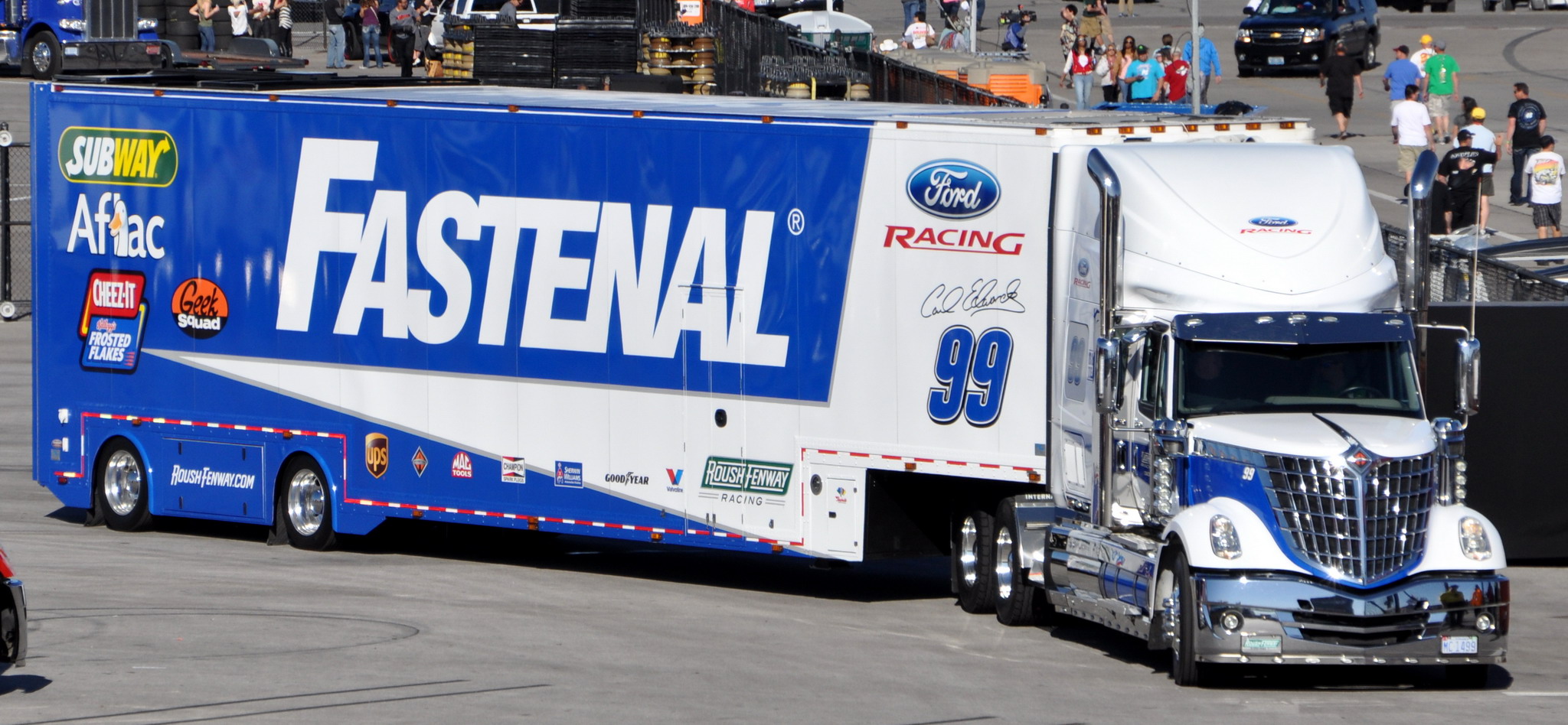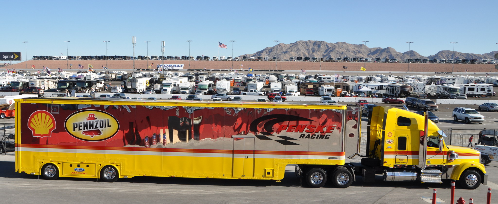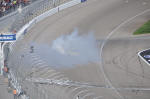 A la fin de la course, je décide dare-dare de retourner dans l'infield pour voir encore le maximum de choses, et j'arrive ainsi à m'approcher tout près par le haut de la voiture #20 de Matt Kenseth, l'interveiiew du vainqueur, et je reste même un bon moment pour regarder les équipes plier tout le matos, et surtout voir défiler tous ces superbes haulers qui partent dévorer le bitume des highways au soleil couchant pour regagner les usines ou se rendre directement sur le speedway de la prochaine course ....