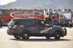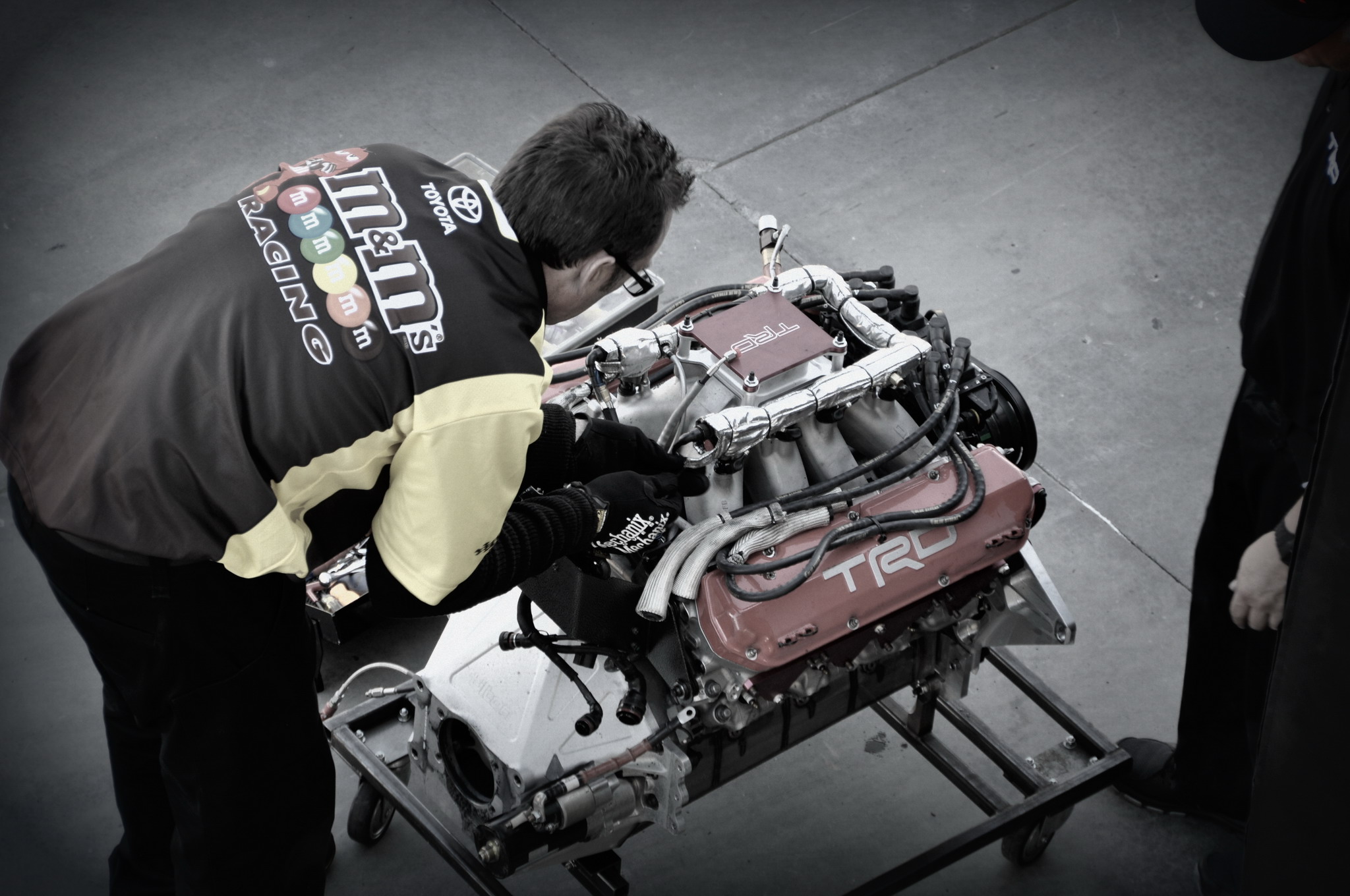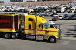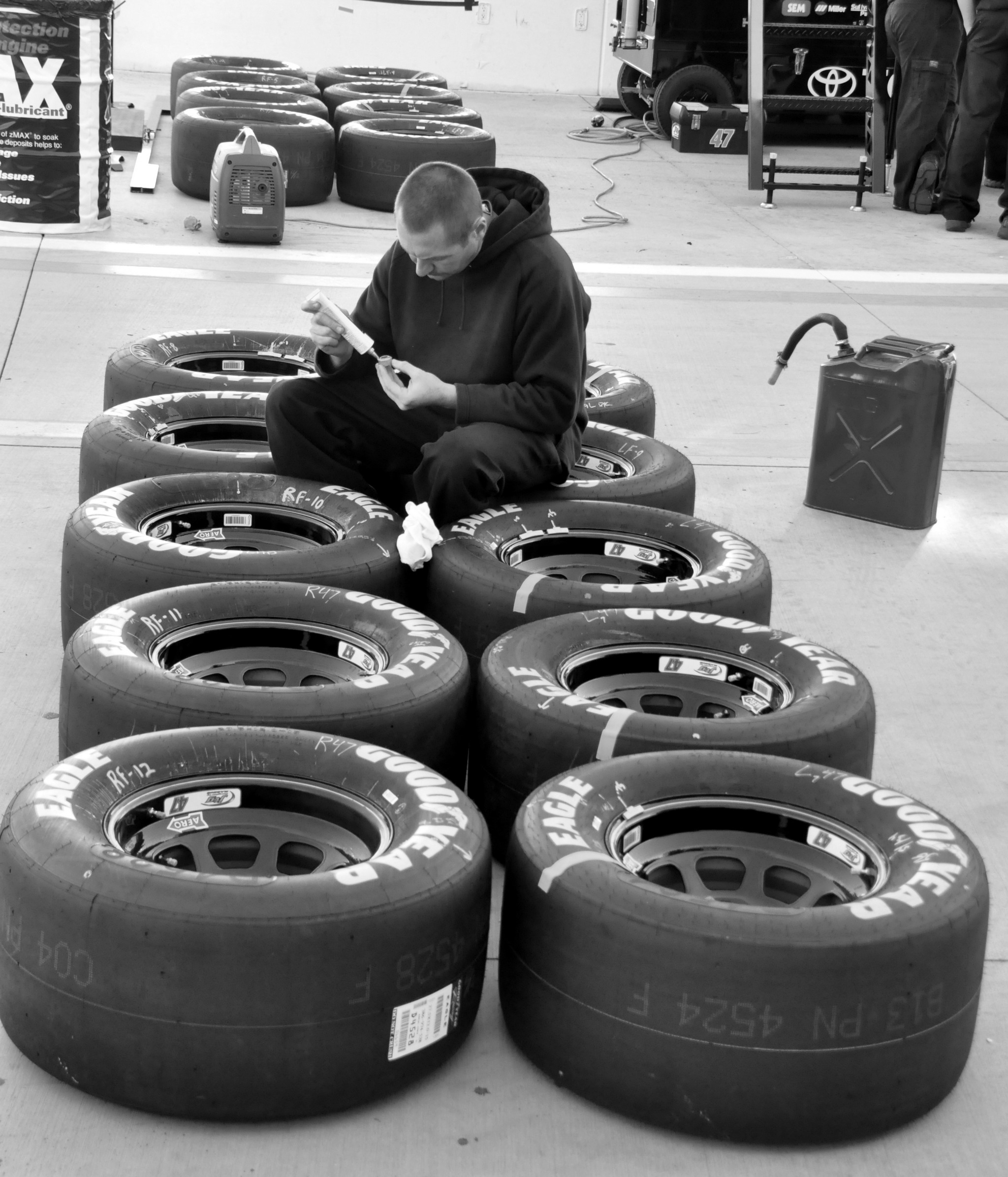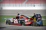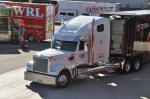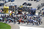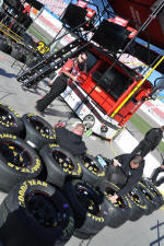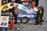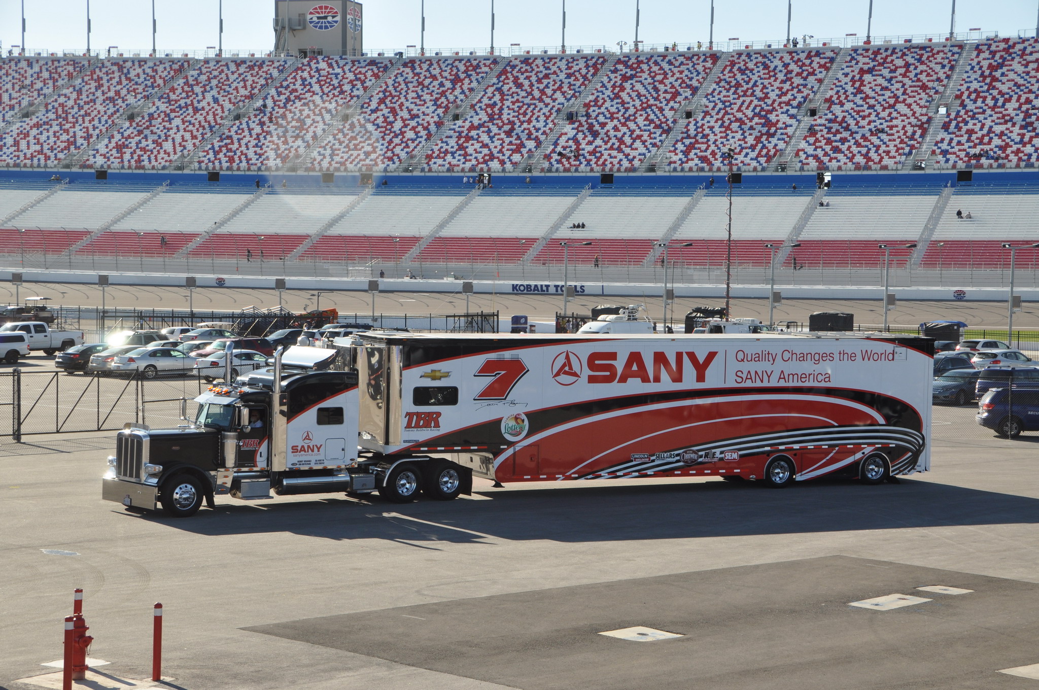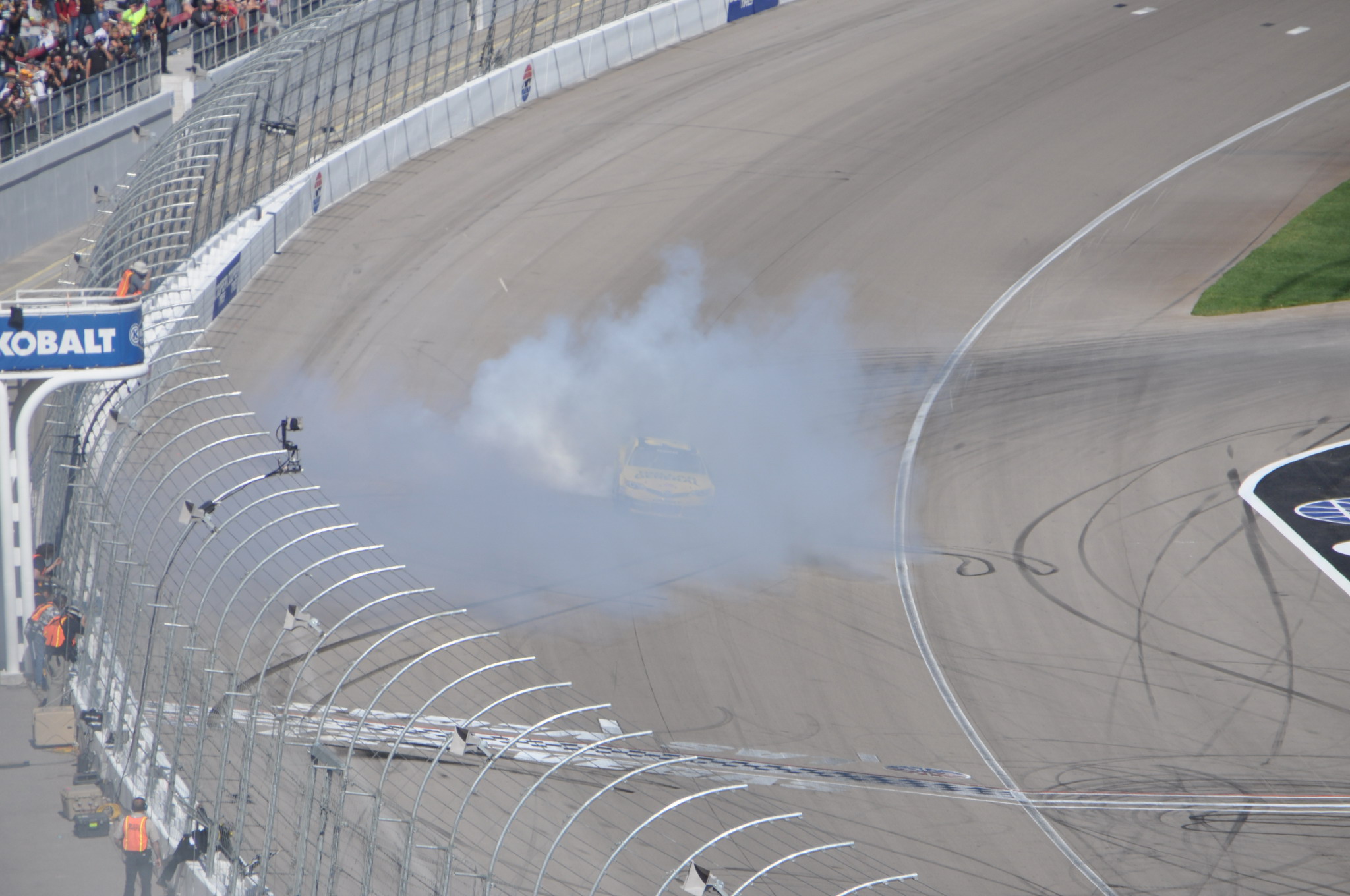 A la fin de la course, je décide dare-dare de retourner dans l'infield pour voir encore le maximum de choses, et j'arrive ainsi à m'approcher tout près par le haut de la voiture #20 de Matt Kenseth, l'interveiiew du vainqueur, et je reste même un bon moment pour regarder les équipes plier tout le matos, et surtout voir défiler tous ces superbes haulers qui partent dévorer le bitume des highways au soleil couchant pour regagner les usines ou se rendre directement sur le speedway de la prochaine course ....