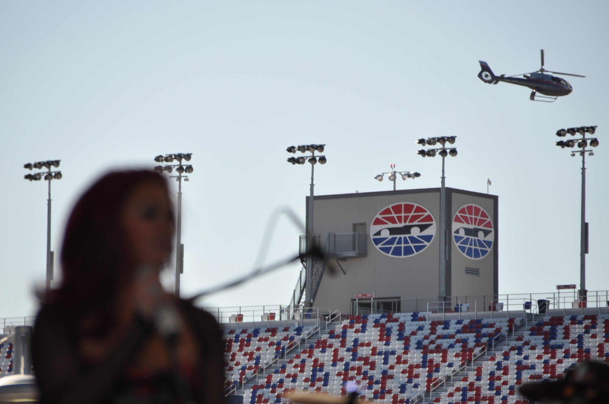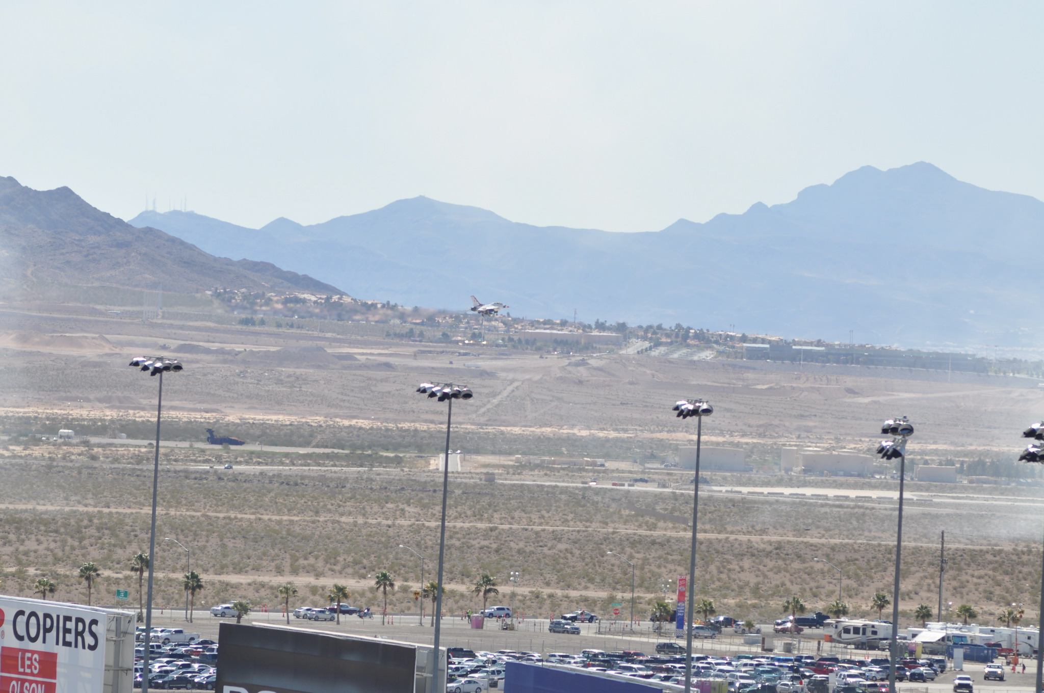 Et tout le monde évacue la piste une petite heure avant le départ, je regagne donc ma place dans les tribunes pour les traditionnelles cérémonies d'avant course, la prière, l'hymne national qui prend toujours aux tripes, le survol des fabuleux F16 des Thunderbirds qui cette fois sont à domicile, le "drivers start your engines", et le départ est donné.