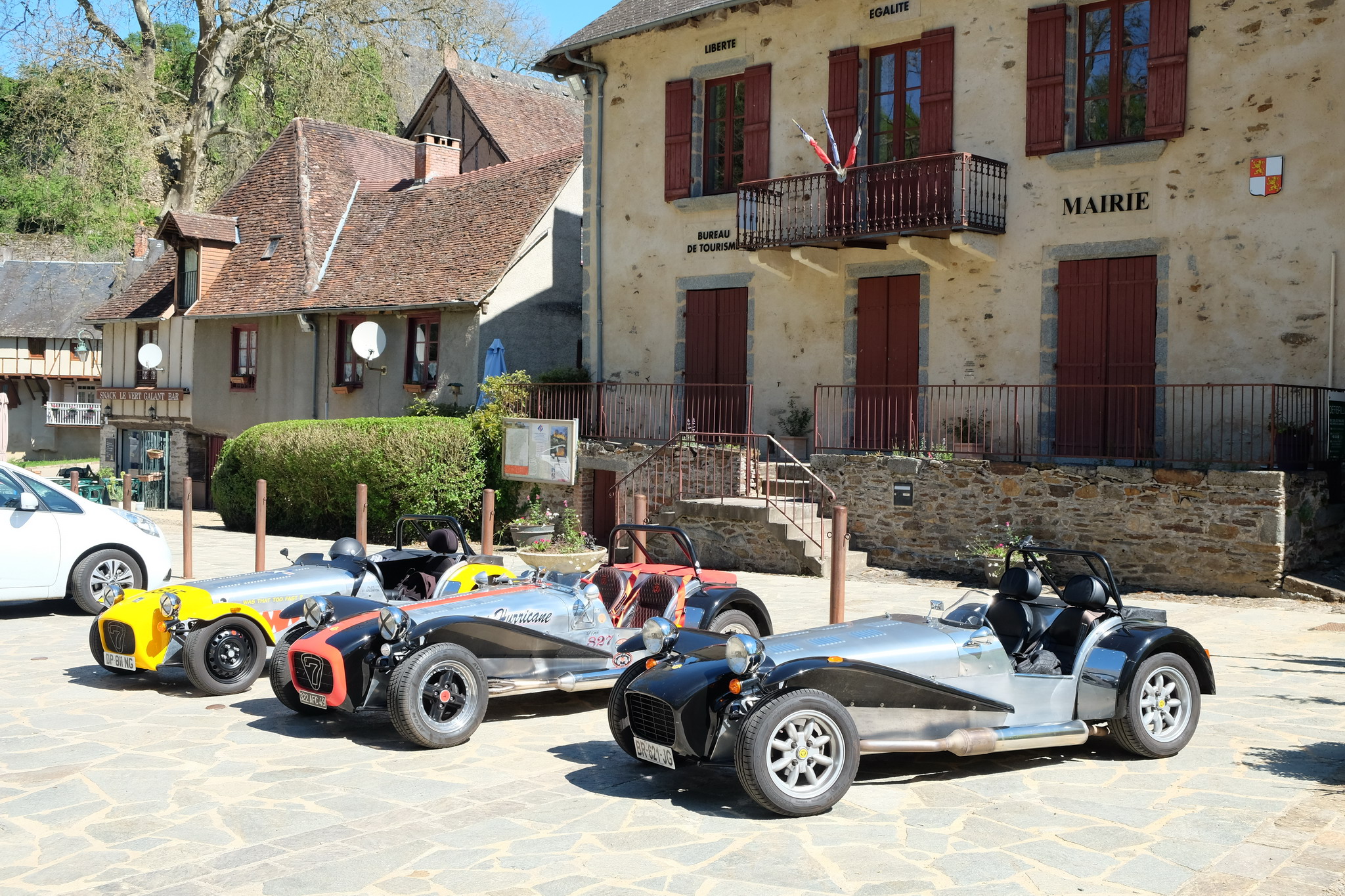 Comme souvent, nous prenons notre route fétiche pour se mettre en jambe pour un road trip, la belle départementale qui passe par Airvault pour rejoindre Poitiers; puis pause photo à la sortie de Smarves vers 8h00 du mat, que je voulais absolument faire car c'est la ville de mon enfance et jeunesse (et mes parents y habitent toujours), puis le premier vrai arrêt traditionnel pour le petit-déjeuner, que nous ferons à Confolens sous un soleil qui commence à bien chauffer, nous enlevons donc plusieurs couches pour continuer à rouler sur ces belles départementales de la Charente, de la Haute-Vienne, de la Corrèze, nous traversons alors le très beau village de Ségur le Chateau, où nous décidons de faire demi-tour tellement c'est attirant de s'y arrêter, nous apercevons un bar avec terrasse de l'autre coté de la rivière et retraversons donc le village pour y aller, mais malheureusement les deux bars sont fermés, on se contentera donc d'une petite séance photo devant la mairie.