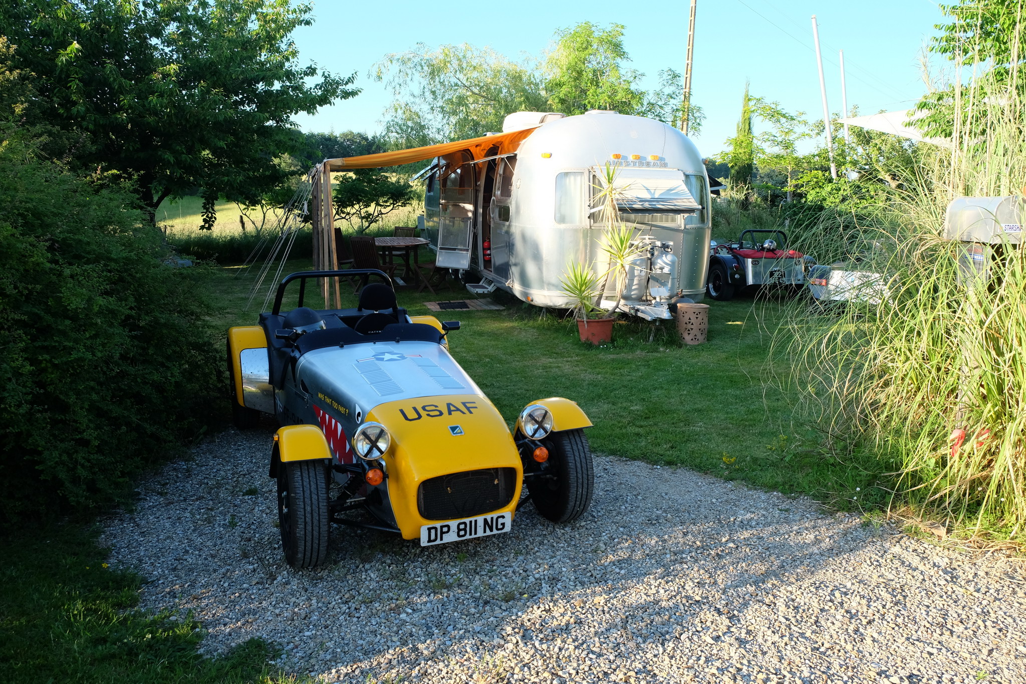 Gaillac, l'Aude, Castelnaudary, l'Ariège, nous approchons du but, et là je commence un peu à halluciner ! En effet, j'avais réservé dans le superbe camping BelRepayre Airstream & Retro Trailer Park situé sur la commune de Manses, et nous y accédons par une toute petite route où il est difficile de se croiser, dans les derniers kilomètres on aborde même des bouts de route s'apparentant à des rampes, pas de soucis pour les Cat mais ce camping est surtout destiné aux américaines, je les imagine donc très mal à l'aise sur ces routes, et je n'ose penser comment les Airstreams sont arrivées jusque là !! En tout cas, ça augmente le mérite d'y arriver, car l'endroit est magnifique.