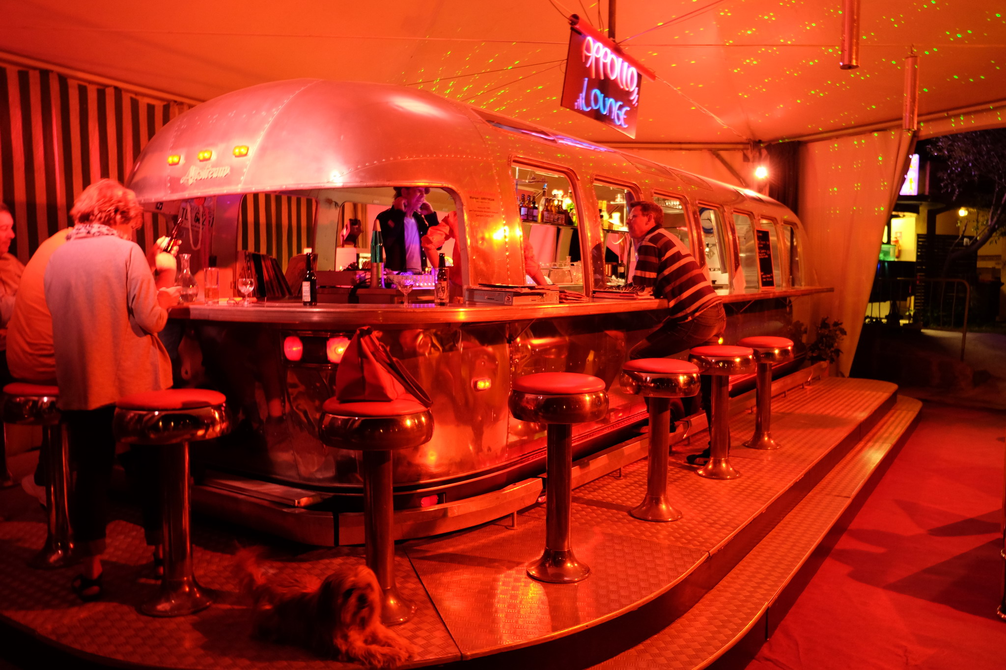 Il commence à être déjà tard mais on fait un rapide tour du propriétaire, ce lieu regorge d'objets en tout genre dans tous les recoins, on adore, et ces Airstream sont envoutantes, et on va bien en profiter pour le diner car nous nous installons à l'Apollo Lounge, une superbe Airstream dessinée par un architecte français (je vous conseille d'aller lire son histoire assez extraordinaire) transformée en bar lounge avec ambiance musicale comme il faut, et nous découvrons aussi l'extraordinaire Lucy's Diner où Coline est entrain de cuisiner, un modèle unique de trailer Clipper transformé en 1946 en food-truck (peut être le premier existant!), il fait bon vivre ici et nous en profitons bien ....