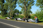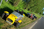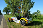 Mais pas le temps de trainer, Figeac, l'Aveyron, après Villefranche-de-Rouergue, on attaque la belle départementale D922, je profite du paysage tout en allumant un peu car ça fait déjà un bon moment que je me suis fait larguer par mes deux acolytes, et au moment d'entrer dans le Tarn, j'entends un gros "klong" sous la voiture, oups pas bon ça, même si le comportement de la Cat n'a pas bougé, je réussis à m'arrêter un peu plus loin, descends fait le tour de pitite cat et rien de suspect, puis je pense à un truc .... bingo, j'ai encore perdu ma foutue plaque d'immat avant !! fais ch .... bon cette fois je fais demi-tour pour partir à sa recherche, et je trouve en effet un truc blanc sur le bord de la route, cassée en deux mais encore un peu vivante ! bon, pas le temps de m'en occuper en tout cas, je la ramasse et gazzzz car je suis encore plus à la bourre ....