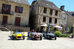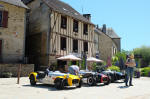 Puis j'arrive dans le village de Cordes-sur-ciel, charmant village mais bondé de monde quand j'approche de la place centrale, et qu'est ce que je vois pas ?? mes deux acolytes entrain de siropeter à une terrasse !! Je stoppe sur le bord de la chaussée mais aucune place en vue pour stationner, ils me font alors signe de rentrer sur la place pour stationner à coté de la terrasse, genre où se garent les motos ! place de choix et entrée discrète, et en plus ma pitite dose de grenadine m'attend à la table, royal !!!!
