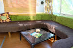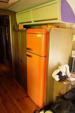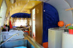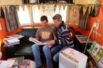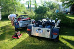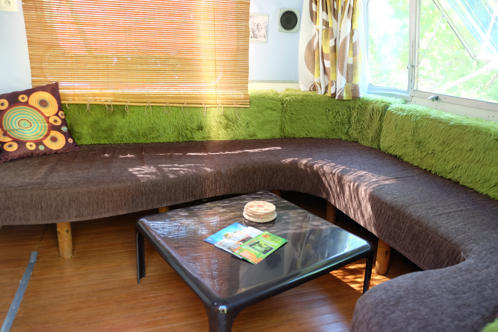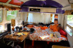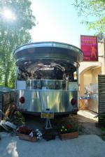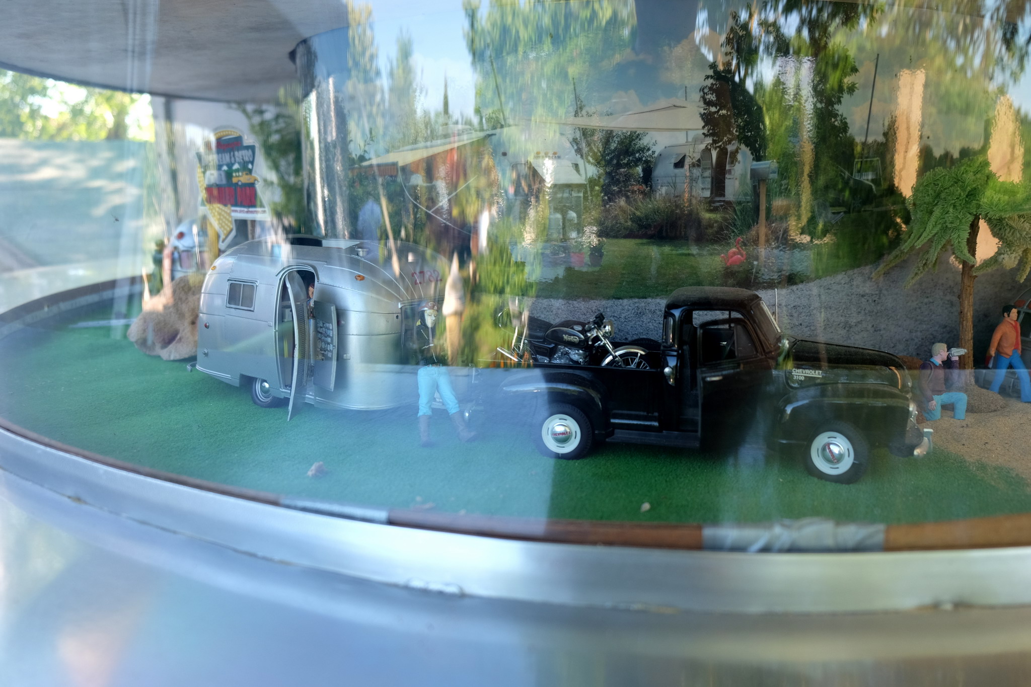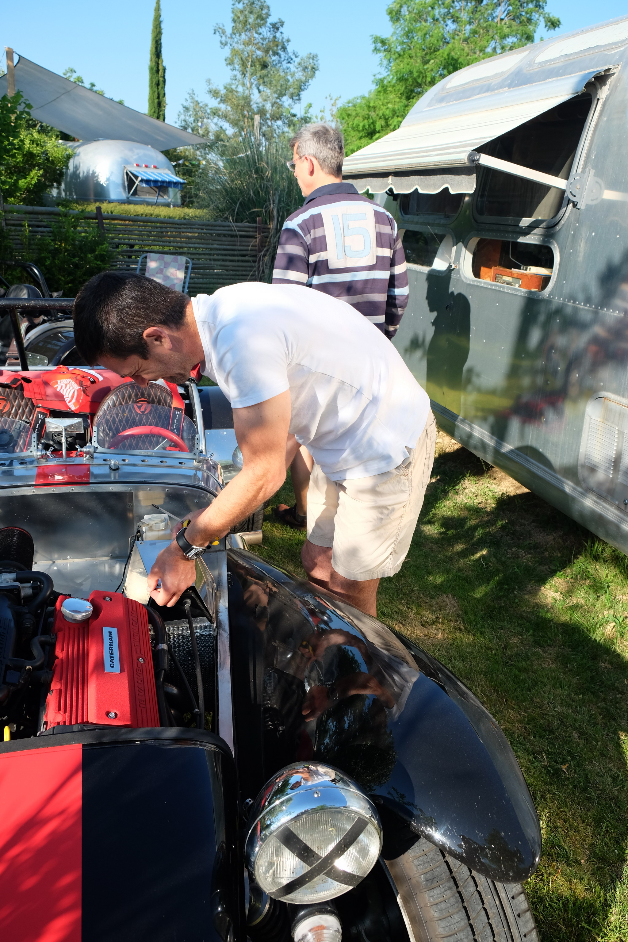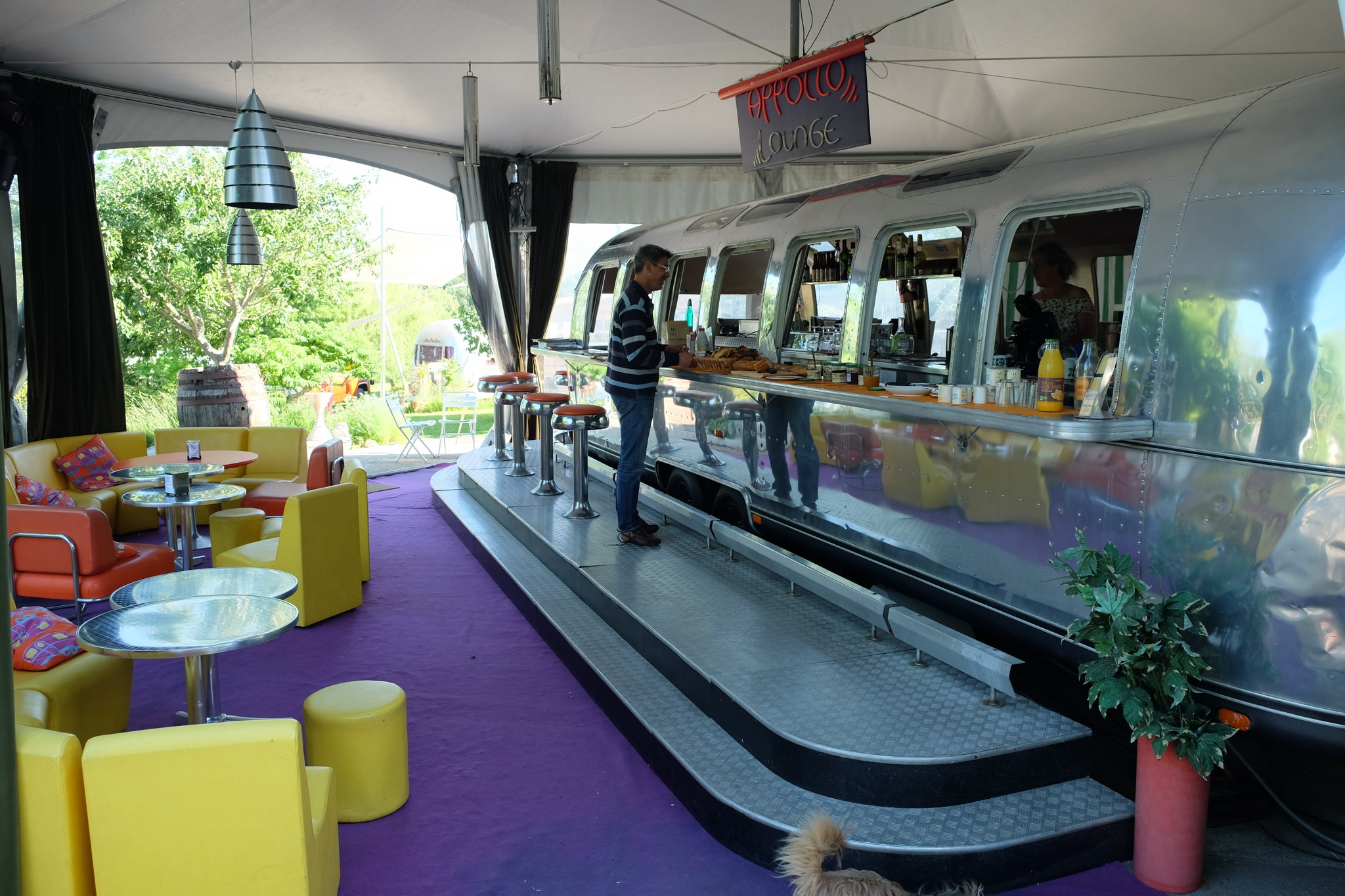 Hummmm, qu'il fait bon vivre ici, on y resterait bien :-)) Ce camping est vraiment un havre de paix, et avec ce soleil levant, ça a vraiment un petit goût de paradis .... On prend son temps et j'en profite pour continuer à découvrir cette fantastique Aistream, et tous ses détails et accessoires, très seventies, j'adore ! Mes acolytes en profitent pour bricoler un peu sur leurs ancêtres, pour ma part je n'enlève même pas le capot, elle est quasi neuve donc on va pas s'embarrasser avec ça! Et je refais donc un petit tour du terrain pour déguster à nouveau tout ce qui émerveille mes yeux, mais cette fois avec cette belle lumière matinale, on discute un peu avec les voisins d'en face (un irlandais et une néo-zélandaise de mémoire!) un peu intrigués par ces Cat et leurs deux chères têtes blondes ne résistant pas à envahir ma Cat ! Puis direction l'Apollo Lounge pour un copieux petit déjeuner, en continuant à s'extasier devant le Lucy's Diner, vraiment fantastique !