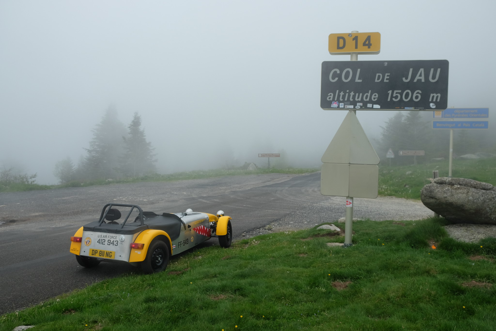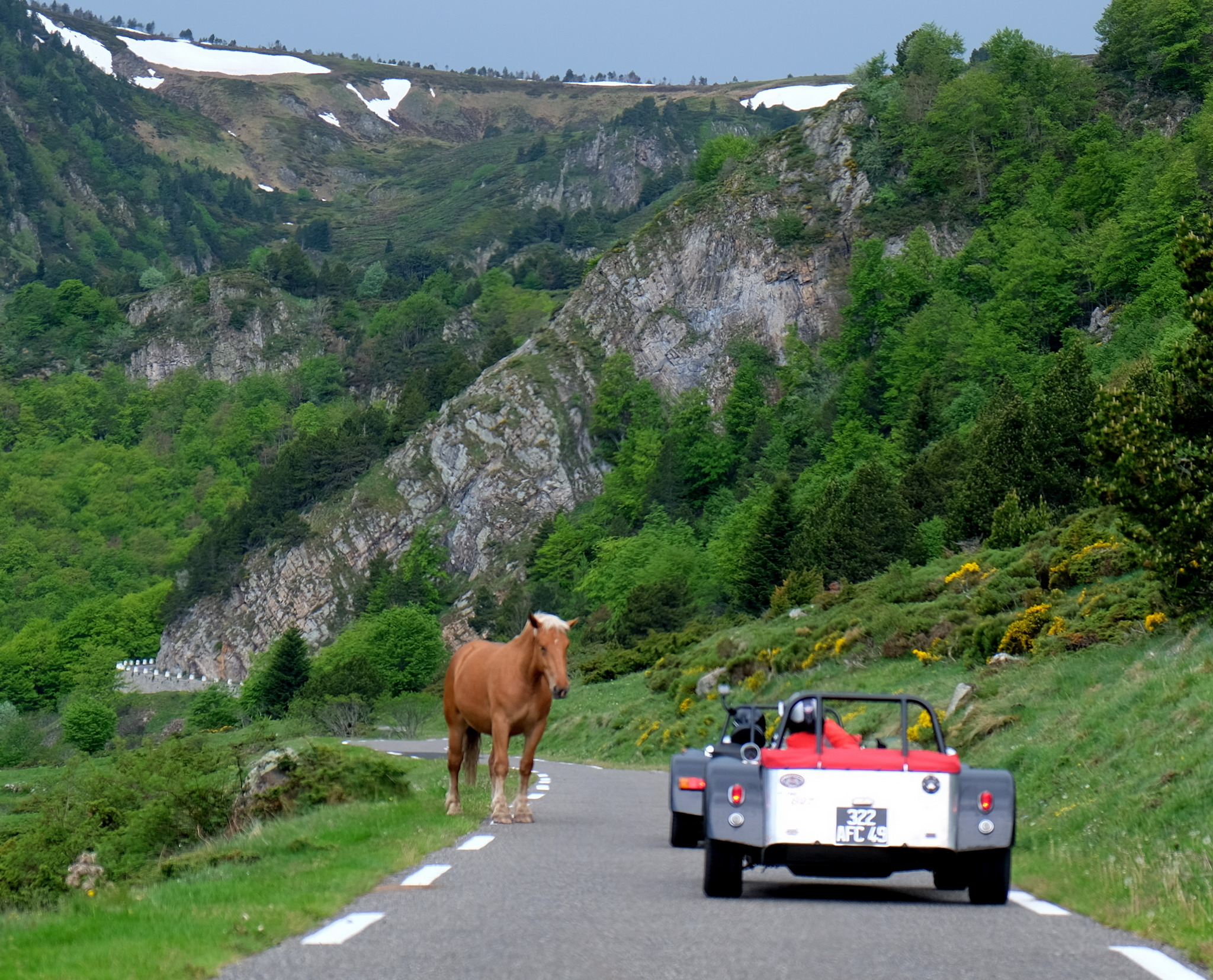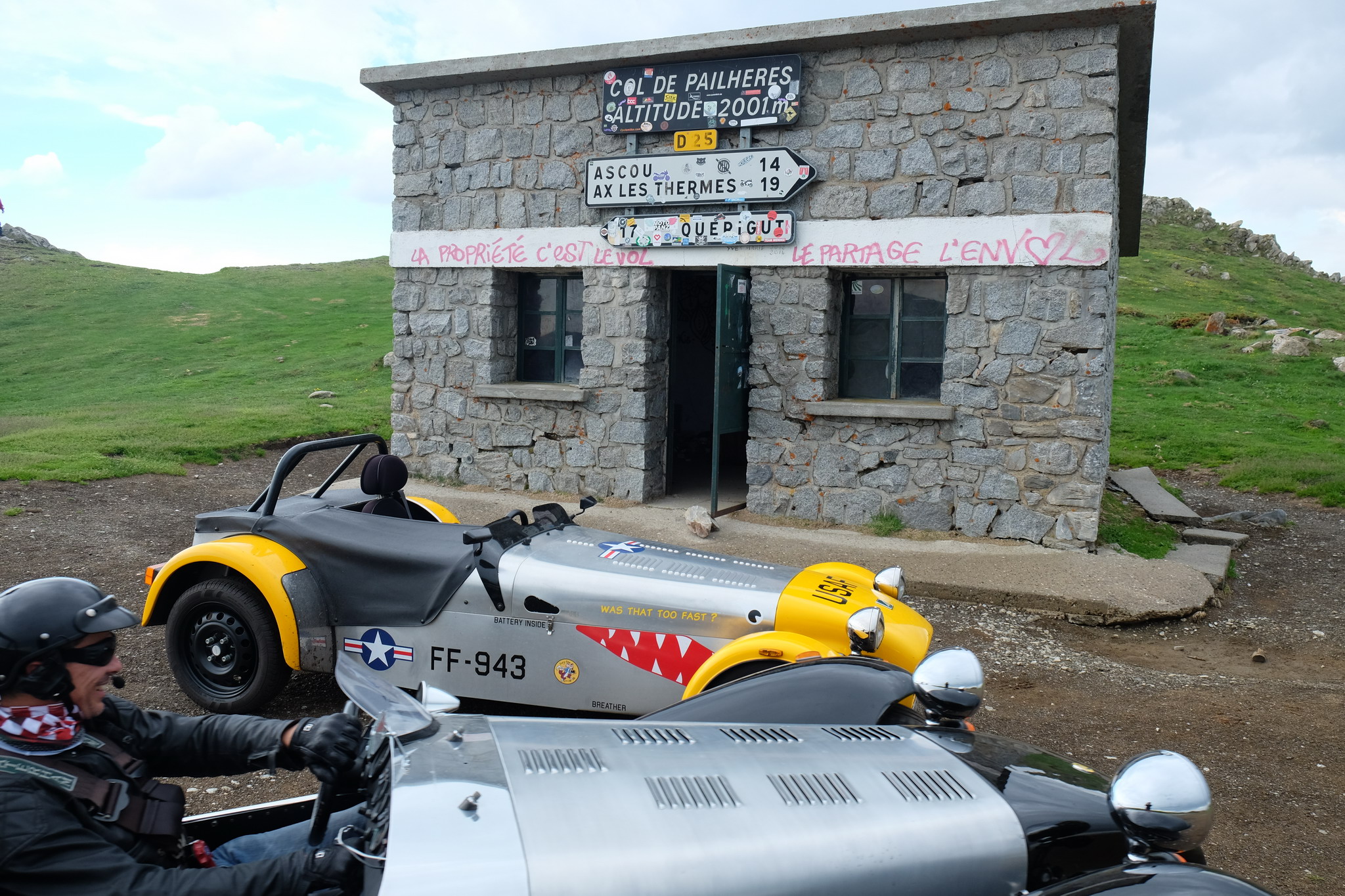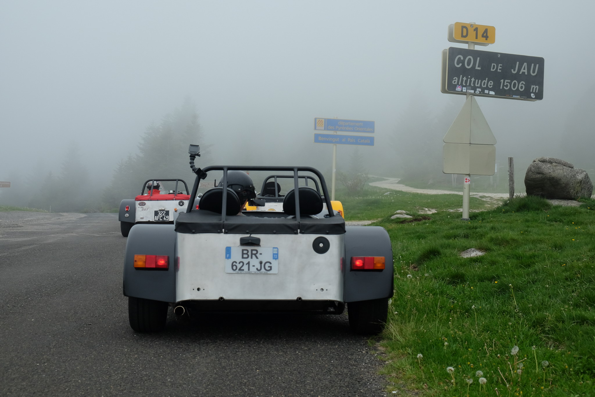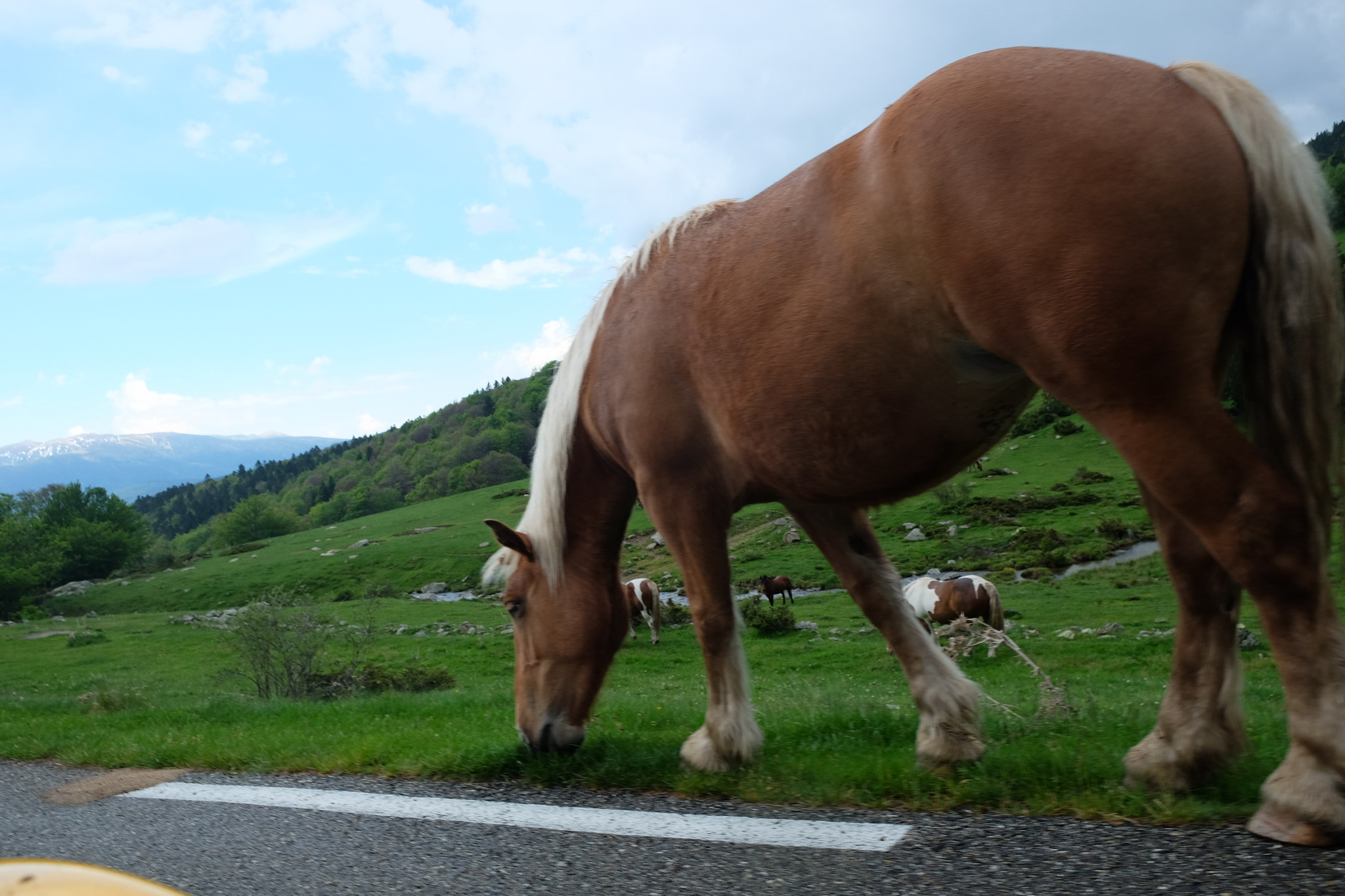Puis nous atteignons le Col de Jau à 1500 mètres d'altitude dans le brouillard, belle descente qui fera nous stopper sous le beau village de Mosset car Sly a (encore!!) un peu trop forcé sur ces freins (le lâche!!), passage par Prades, Mont-Louis puis nous remontons par le Col de la Quillane, rencontre avec de très beaux chevaux en bord de route, nous sommes quasi seuls sur ces routes, le bonheur à l'état pur, col de Pailhères à 2000 mètres où nous profitons du panorama...