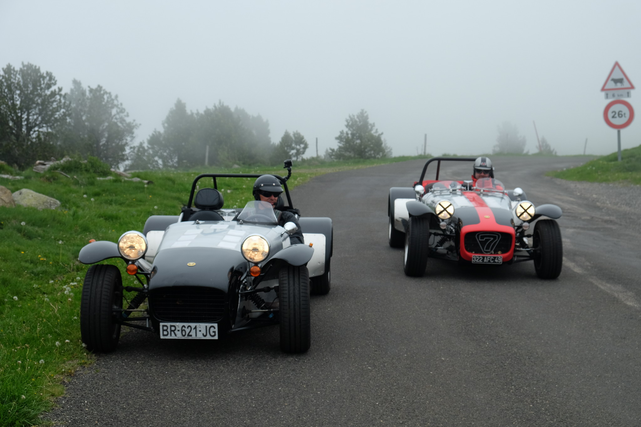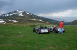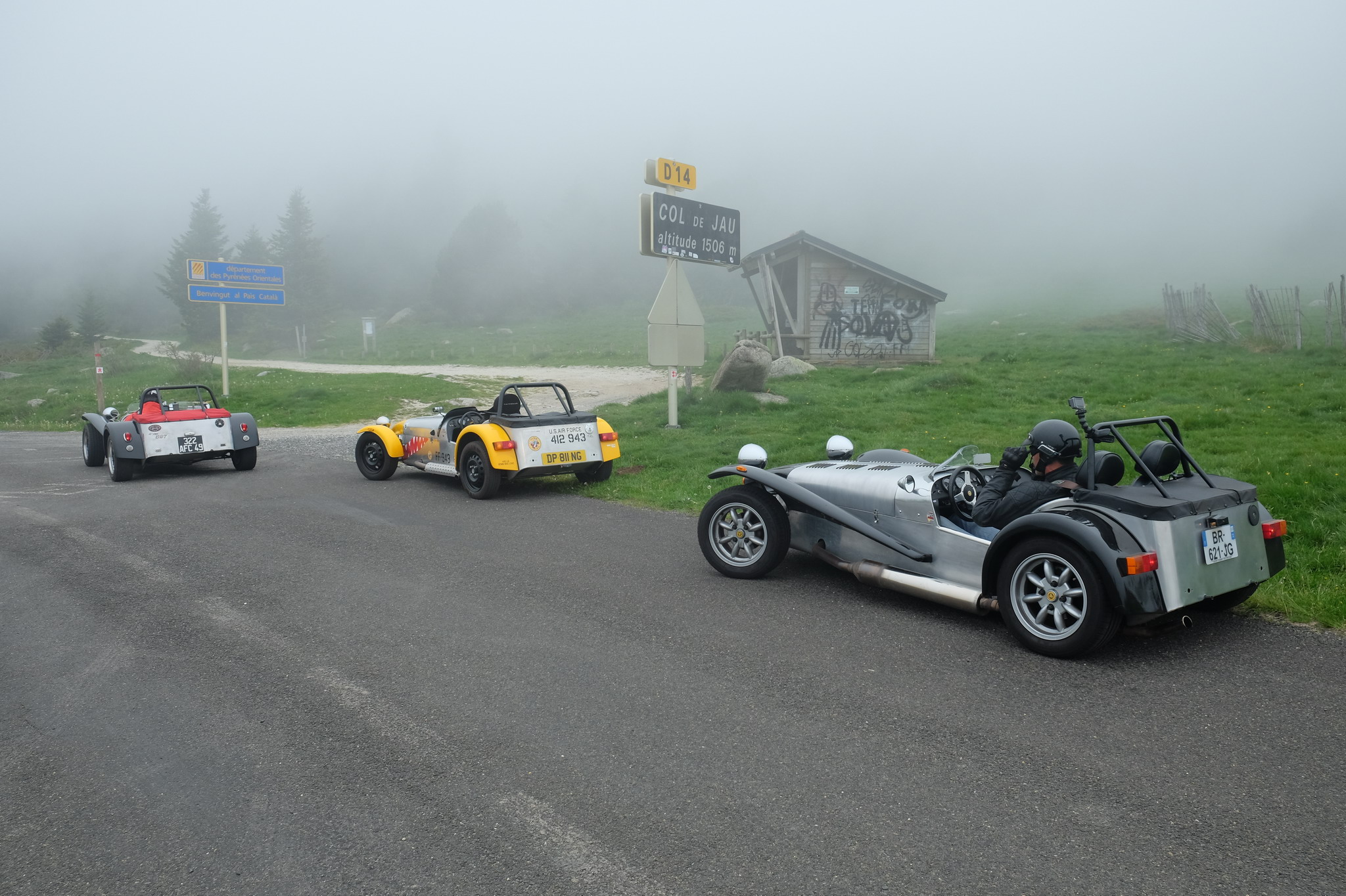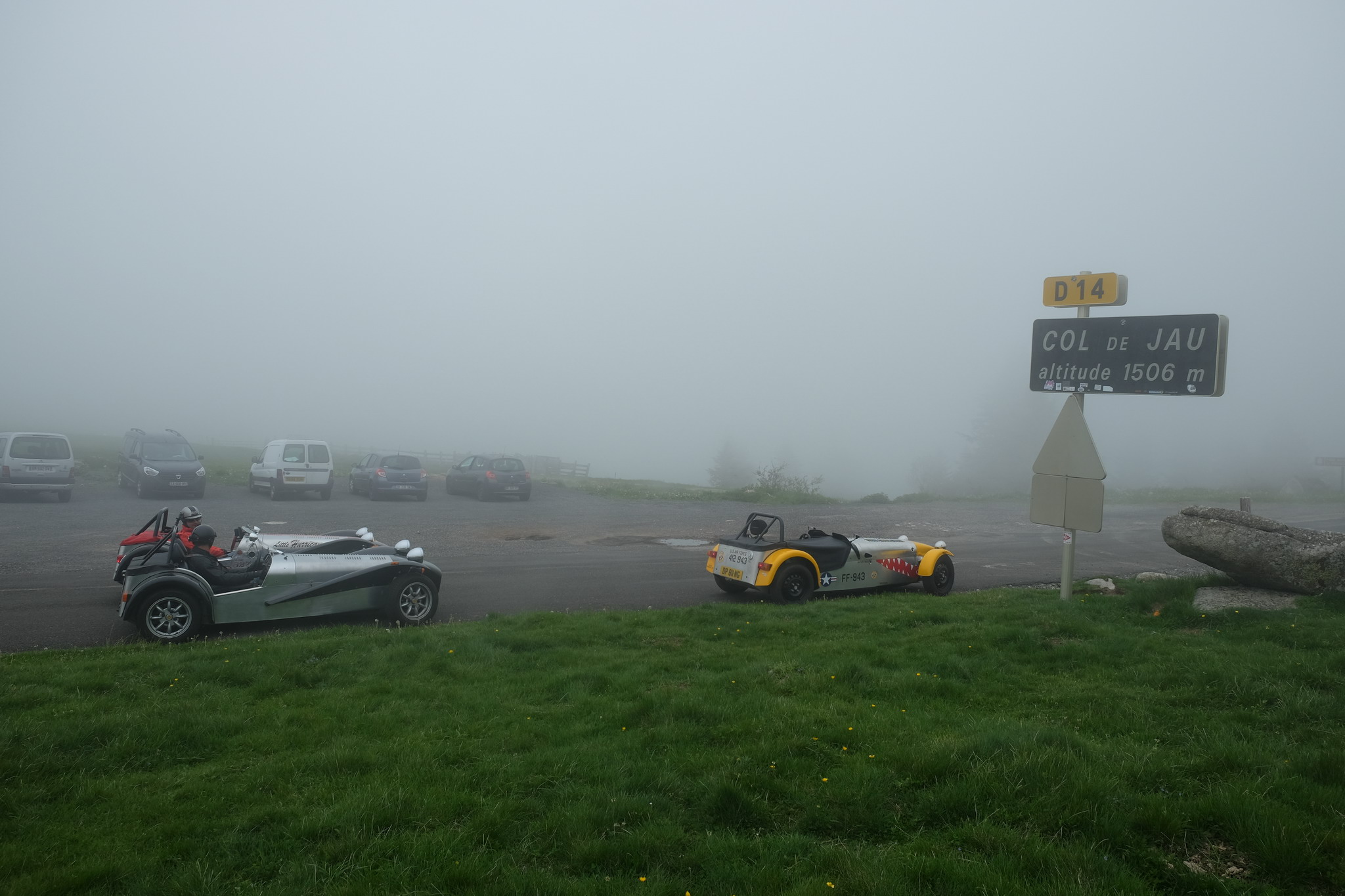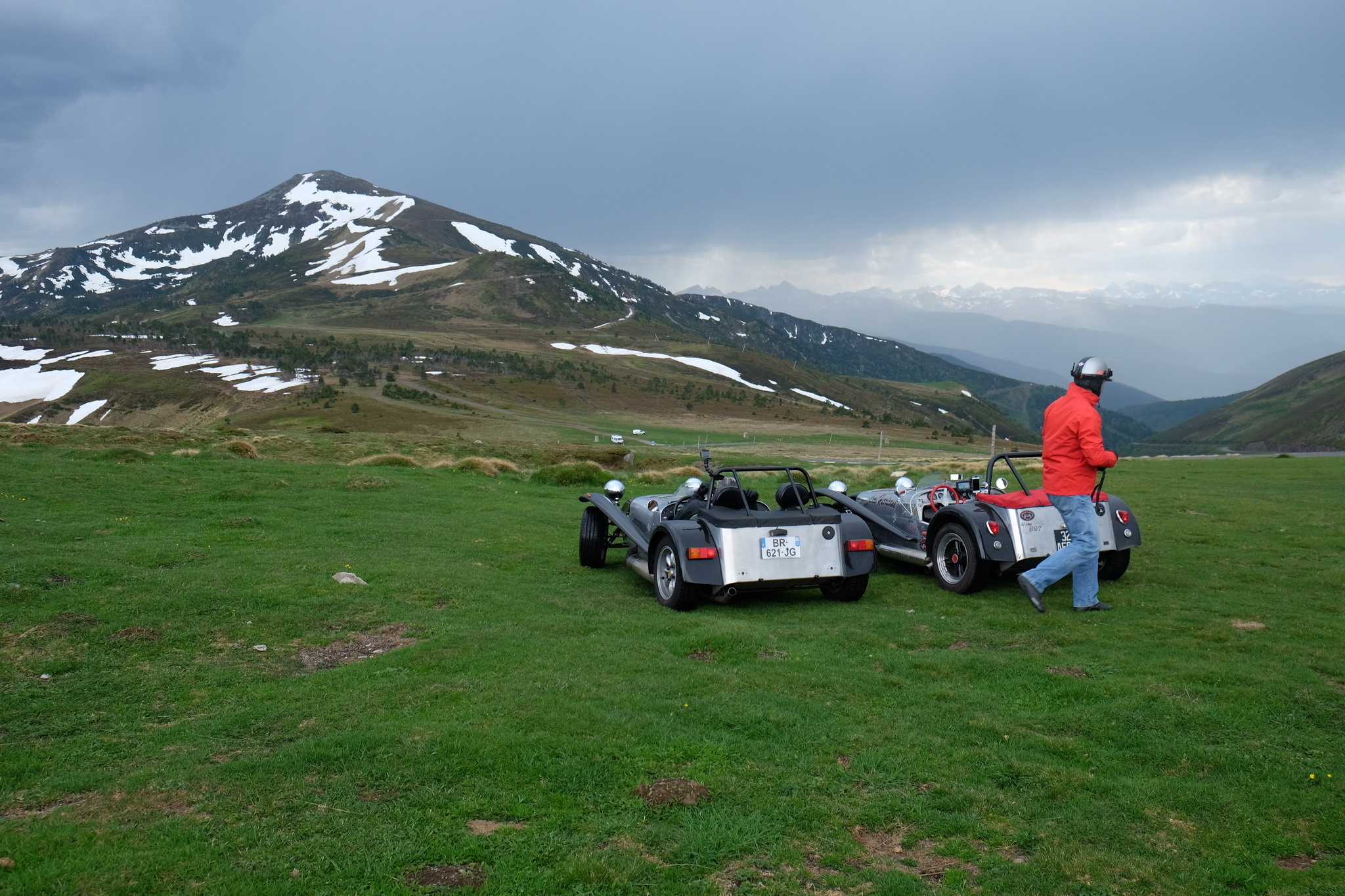 Puis nous atteignons le Col de Jau à 1500 mètres d'altitude dans le brouillard, belle descente qui fera nous stopper sous le beau village de Mosset car Sly a (encore!!) un peu trop forcé sur ces freins (le lâche!!), passage par Prades, Mont-Louis puis nous remontons par le Col de la Quillane, rencontre avec de très beaux chevaux en bord de route, nous sommes quasi seuls sur ces routes, le bonheur à l'état pur, col de Pailhères à 2000 mètres où nous profitons du panorama...
