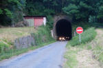 Puis il faut tracer un peu car le temps tourne sans s'arrêter, donc Ax-les-Therms, N20 jusqu'à Tarascon sur Ariège, que je parcours seul car mes acolytes m'ont encore proprement largué ! Puis col de Port à 1250 mètres en direction d'un lieu que j'avais découvert grâce au forum Sevener ! Une petite route en sens unique qui est une ancienne voie ferrée et emprunte plusieurs tunnels (non éclairés!!), et j'arrive bien à trouver cette D3 qui arrive à Lacourt, très sympa à faire, mais je ne m'attarde pas car il est déjà tard, je ne sais pas où sont les autres donc je file, j'arrive à les joindre quelques kilomètres plus loin mais ces couillons (je commence à les connaître!) ne sont pas même pas encore passés par là, je fais donc demi-tour pour les attendre à la sortie du dernier tunnel !