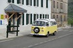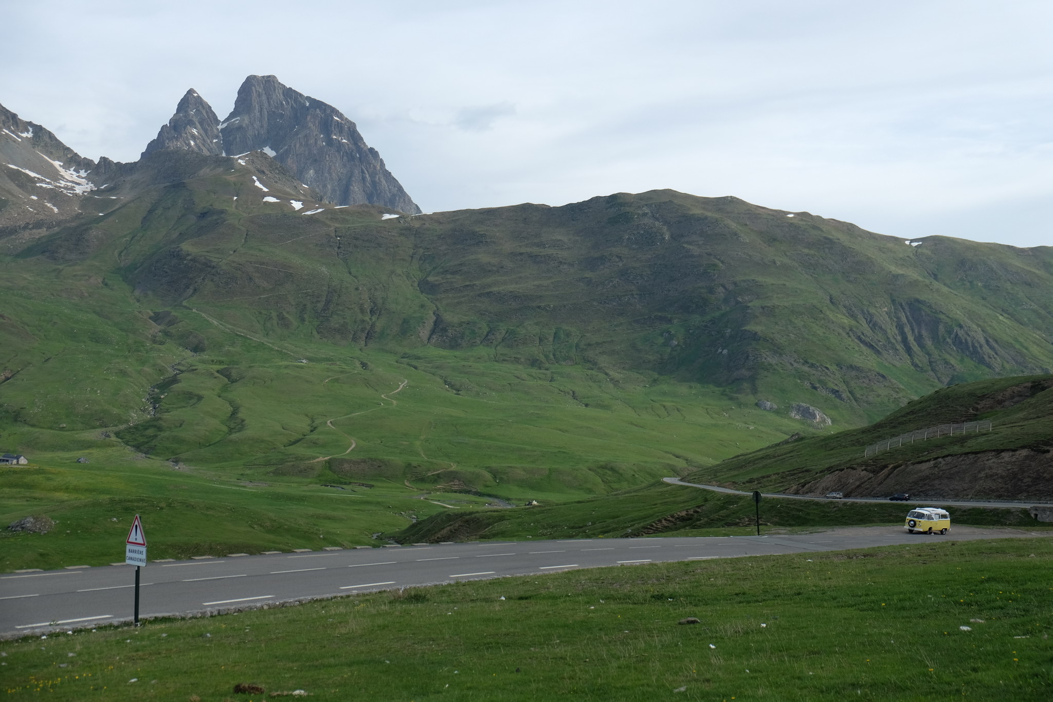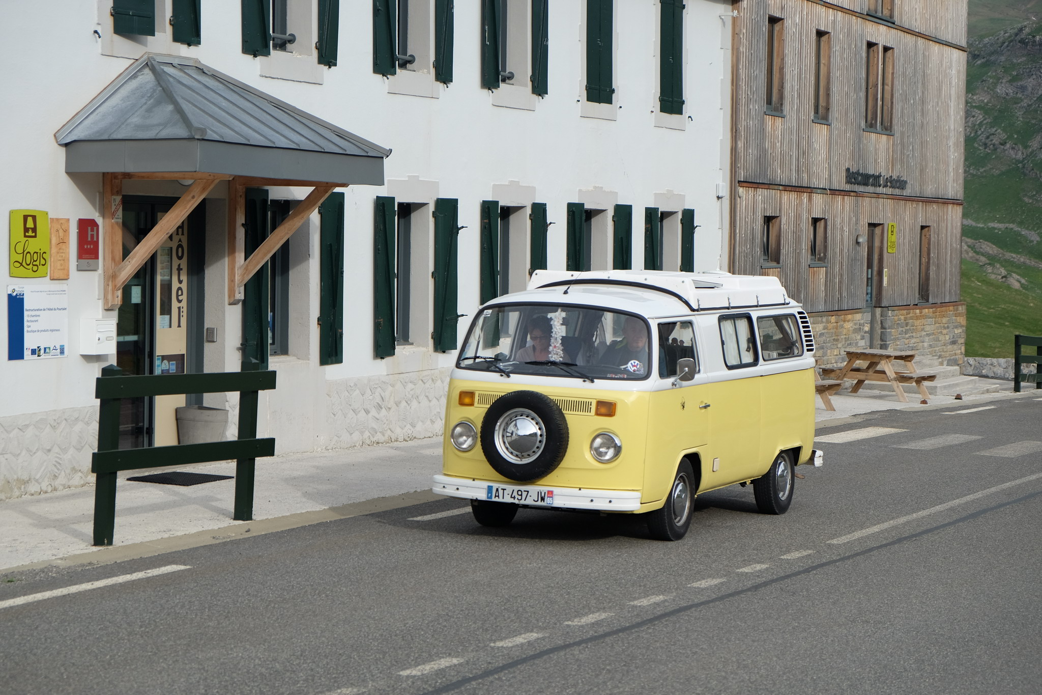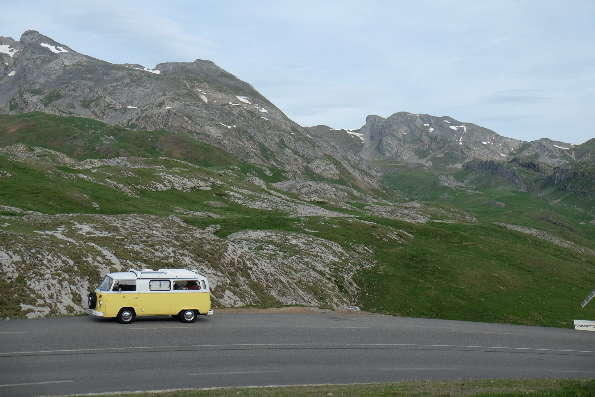 Qu'est ce qu'on dort bien à la montagne, le bonheur total, et un réveil avec un tel panorama, ça n'a pas de prix .... Je sors rapidement dehors pour profiter encore plus du grand air de ces montagnes, aller dire bonjour aux Cat qui elles aussi ont beaucoup apprécié ce cadre idyllique, et je sors au bon moment car un beau Combi est entrain de s'approcher tranquillement du haut du col, un sympathique couple avec lequel je vais discutailler cinq bonnes minutes, ils habitaient la vallée et prenaient tout simplement du plaisir à se balader en Combi, la vie et le bonheur peuvent être simples !